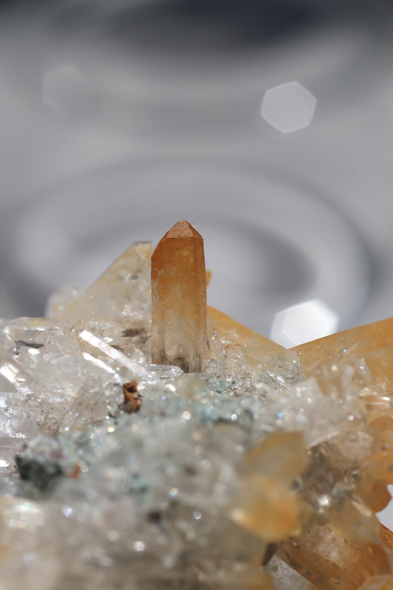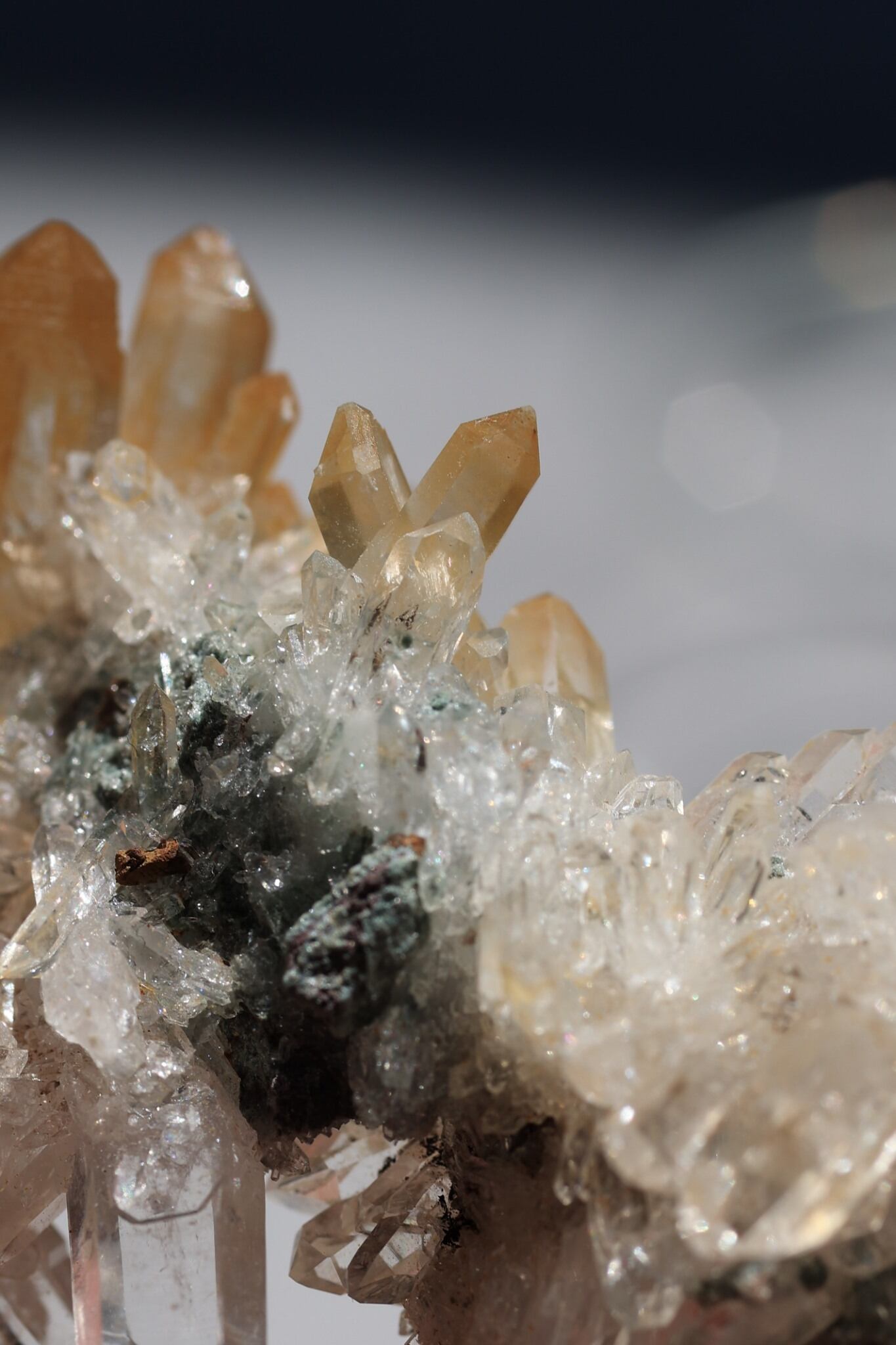 透明感のある結晶の中に、金色のベールがふんわりと溶け込んだような神秘的な輝き。