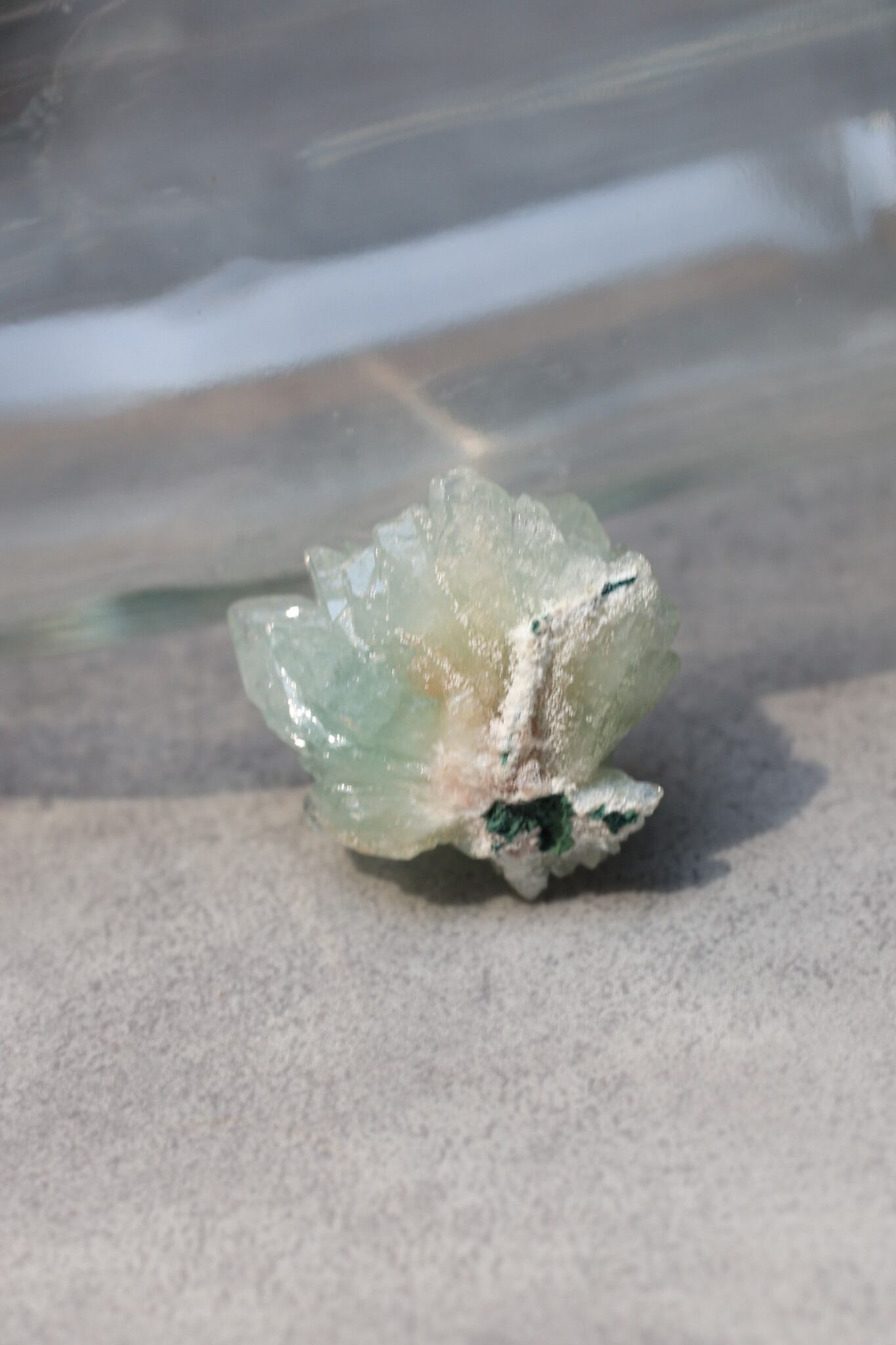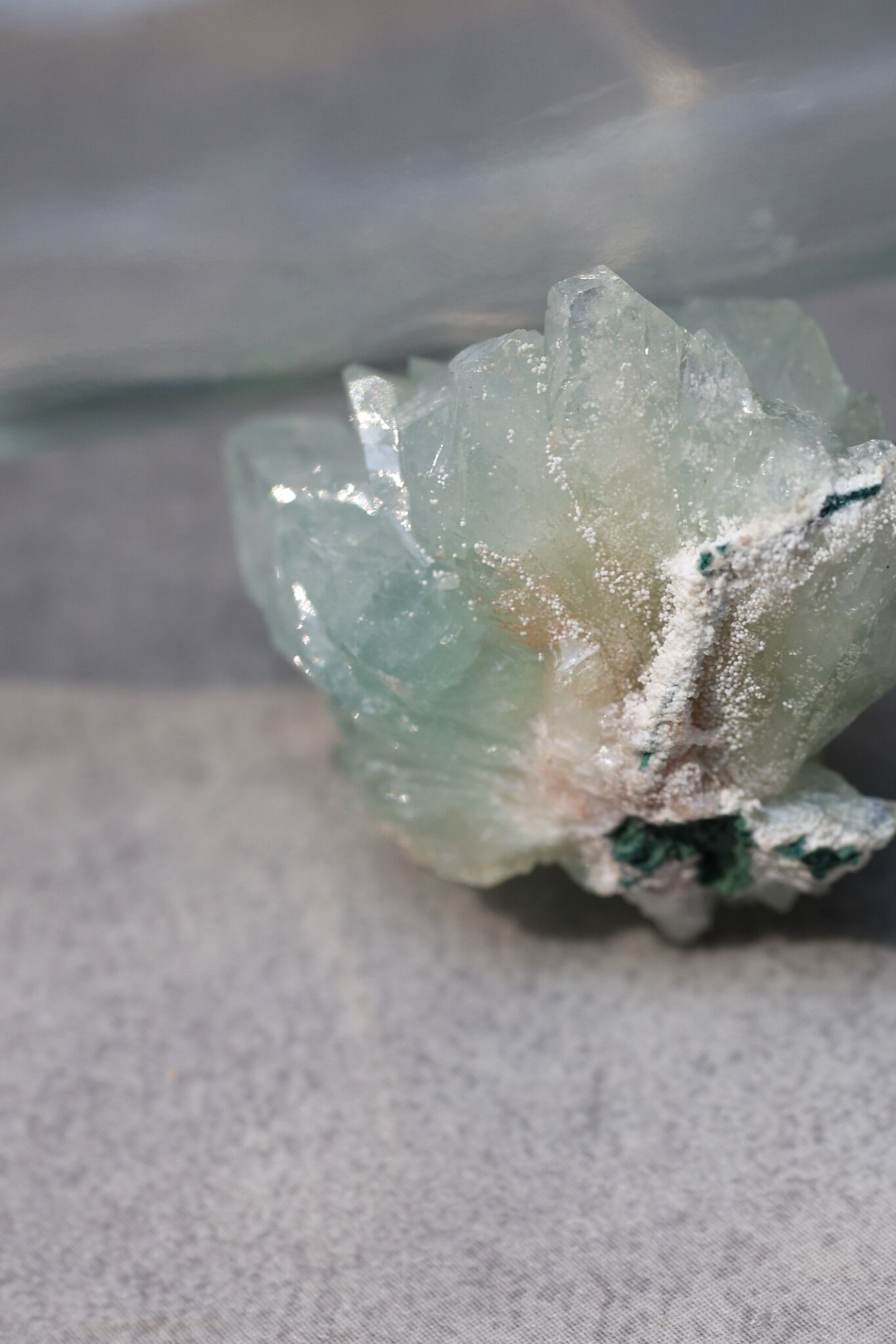 シャープで透明感のある結晶と、淡く柔らかな緑──