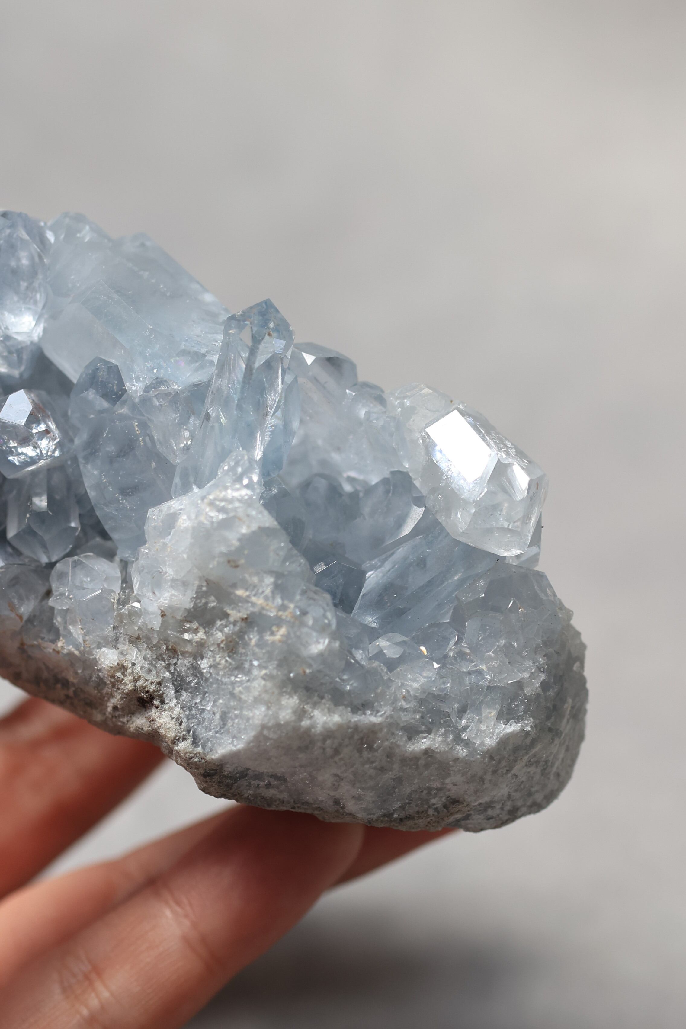 マダガスカル産のセレスタライトは特に透明感が高く、まるで南国の空を閉じ込めたかのような、みずみずしい輝きが魅力。