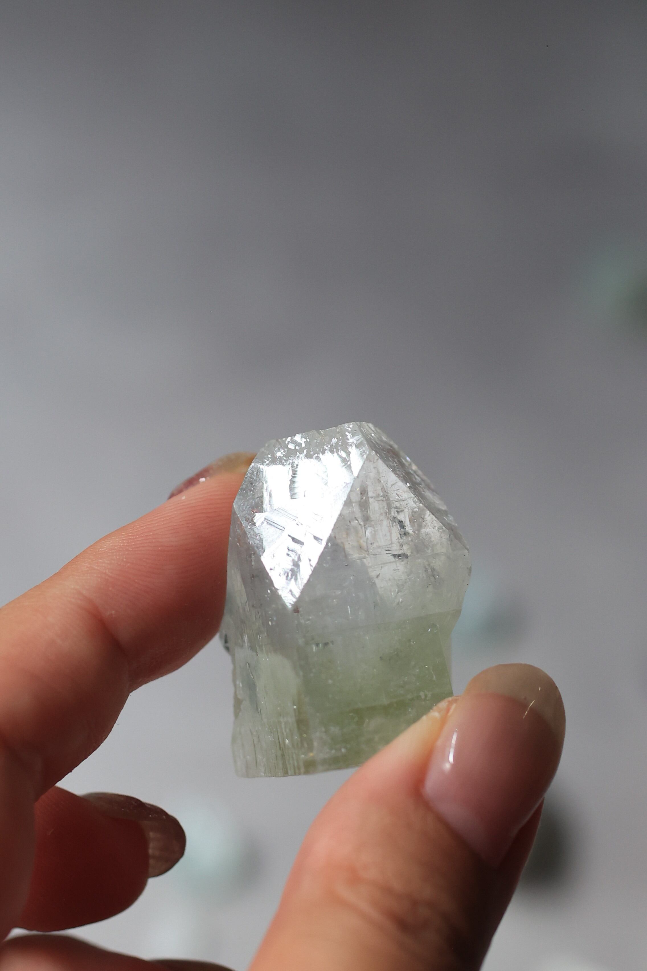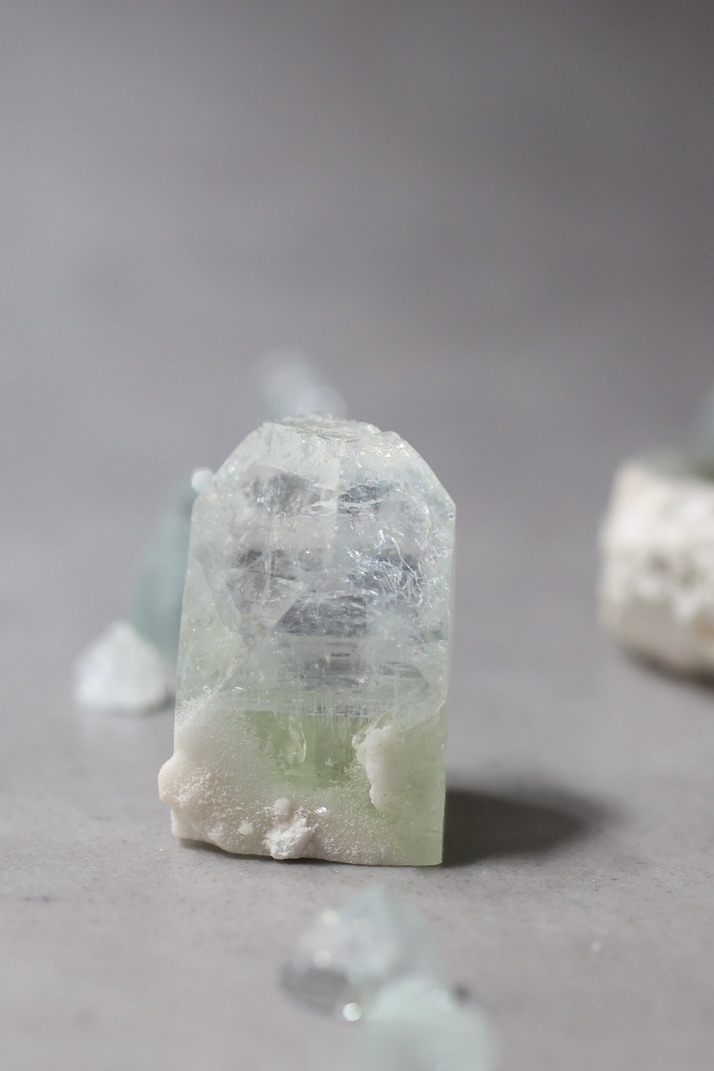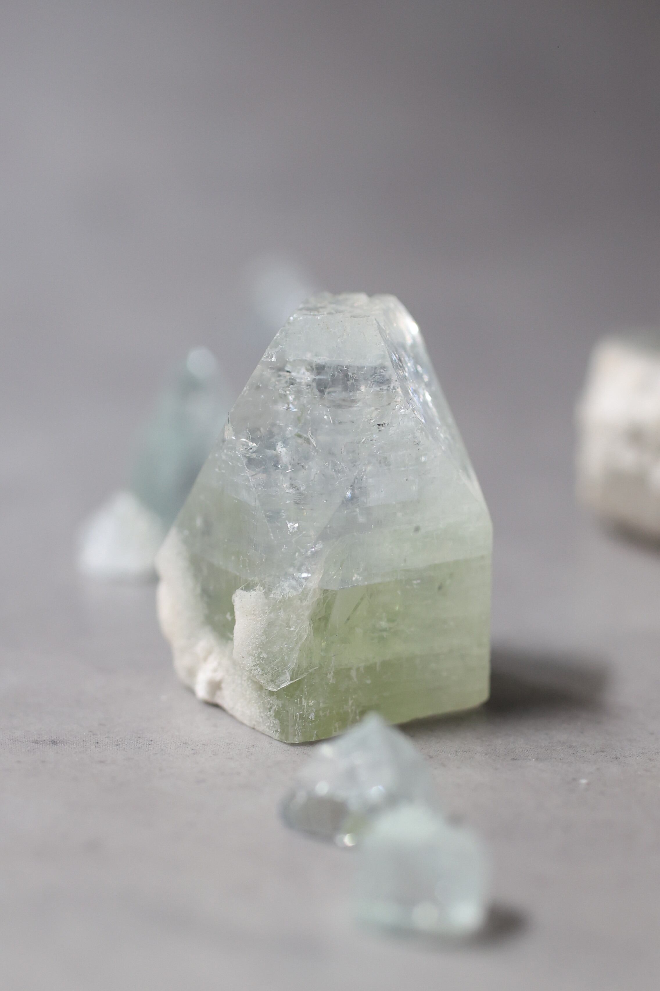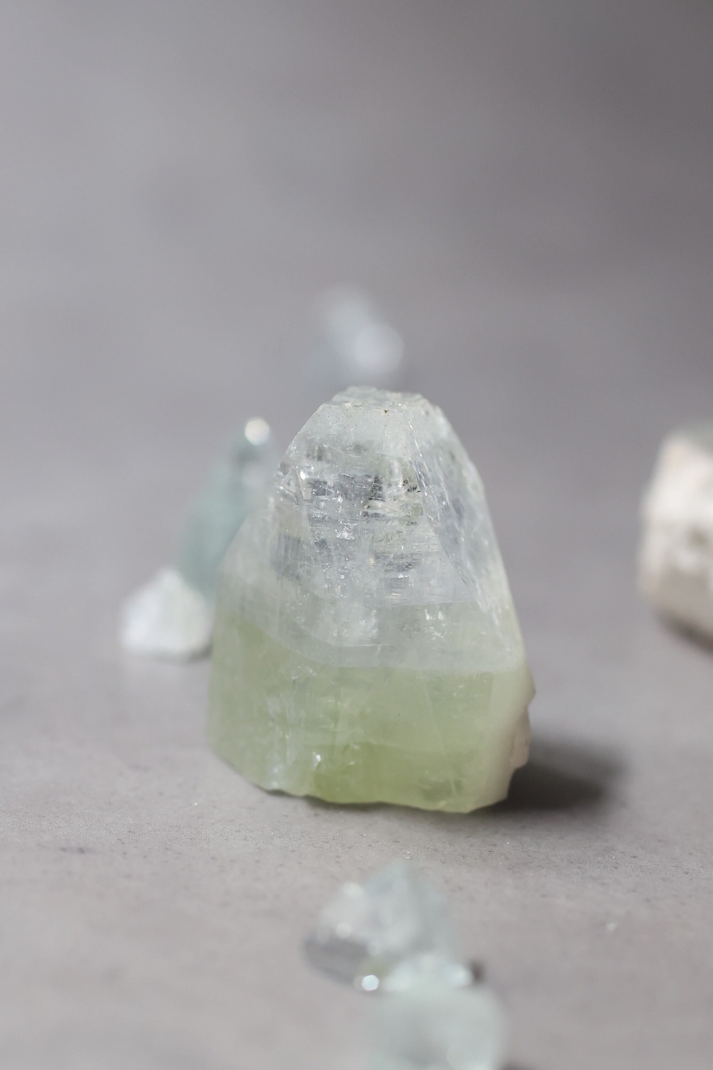 シャープで透明感のある結晶と、淡く柔らかな緑──