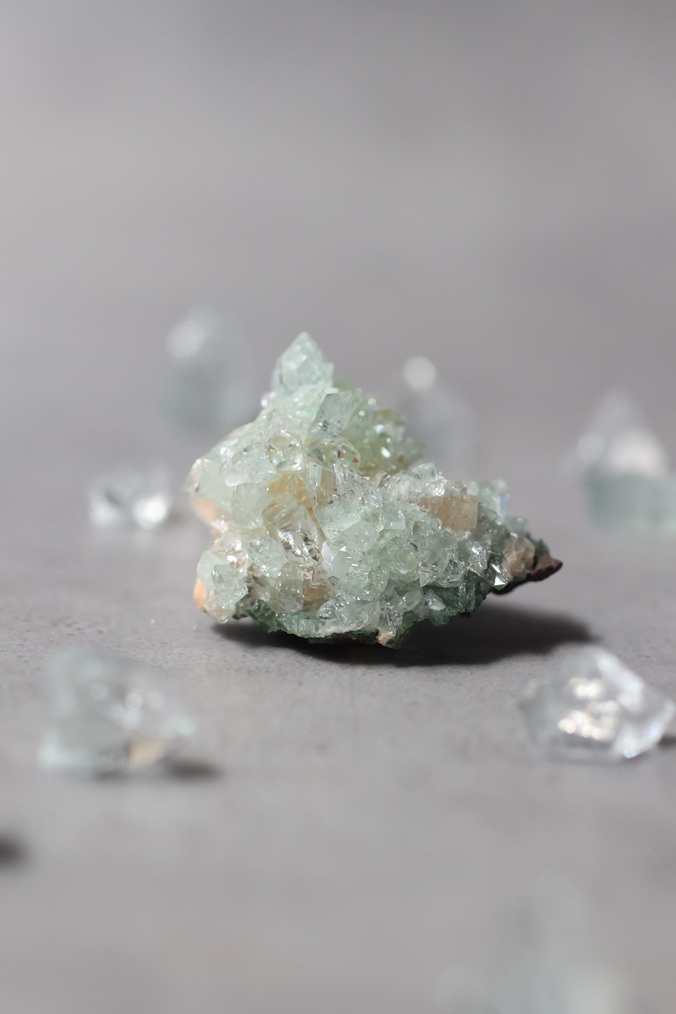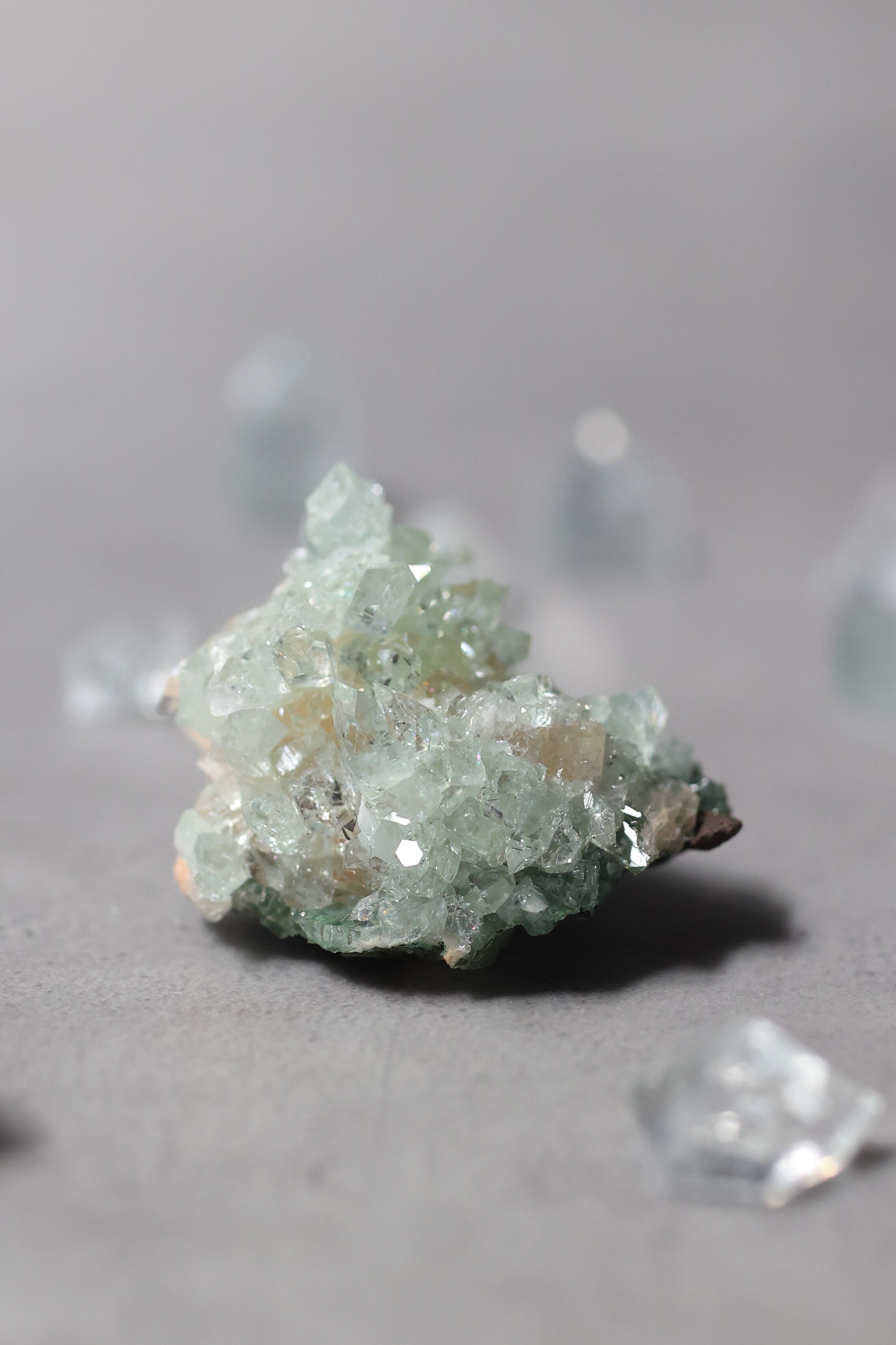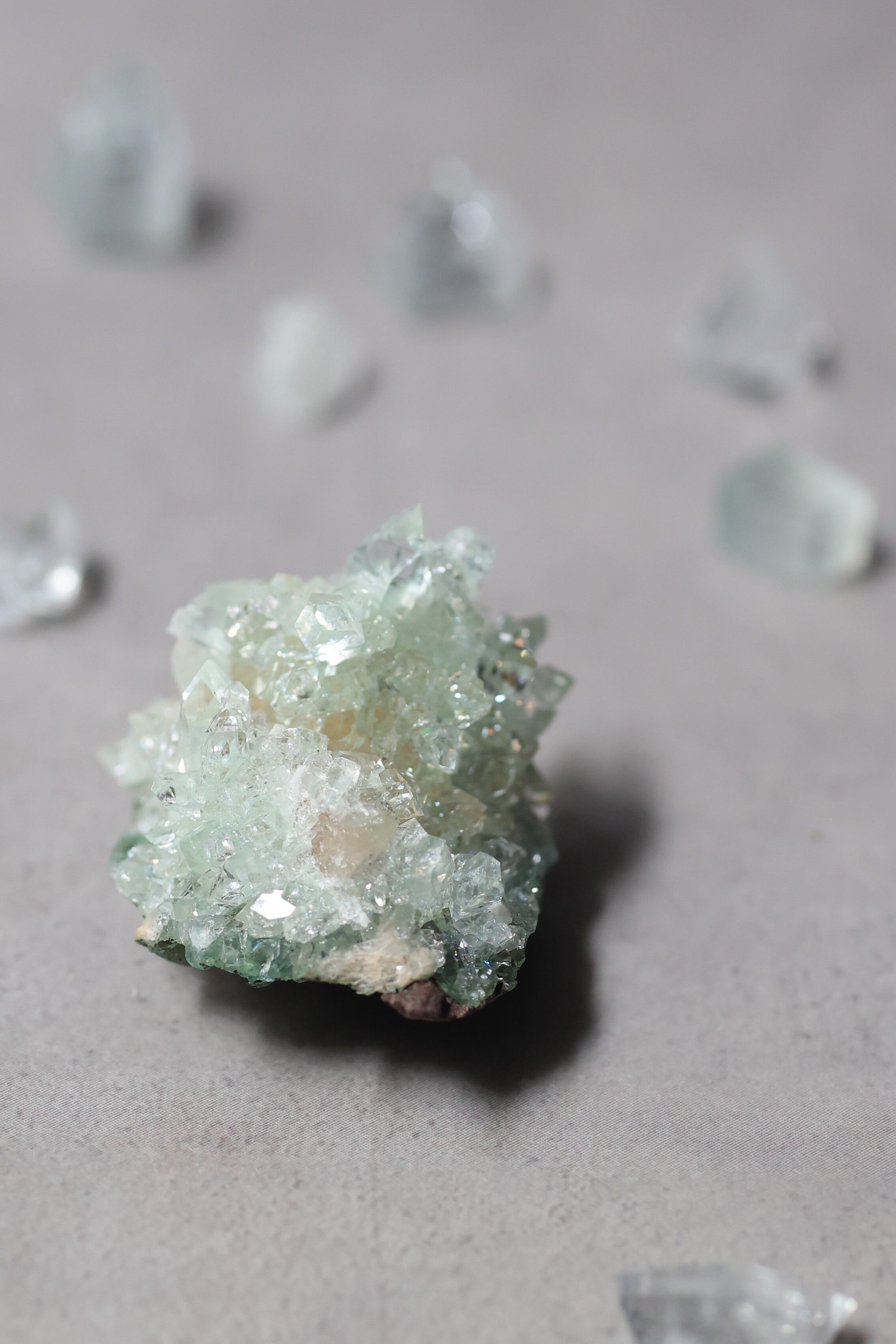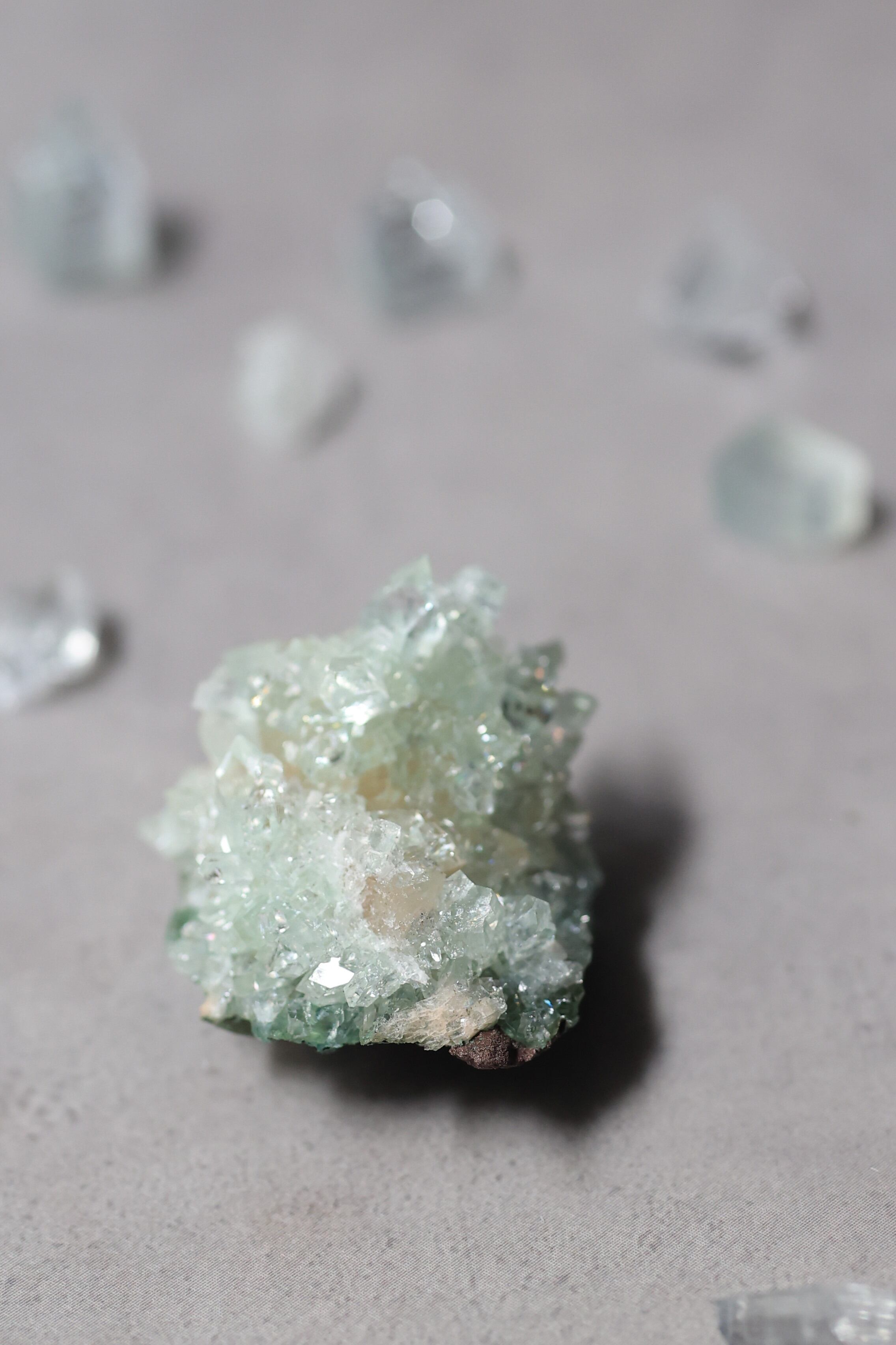 こちらのグリーンアポフィライトは、アポフィライトの中でもダイヤモンドアポフィライトと呼ばれる種類で透明度がかなり高いのが特徴です。
