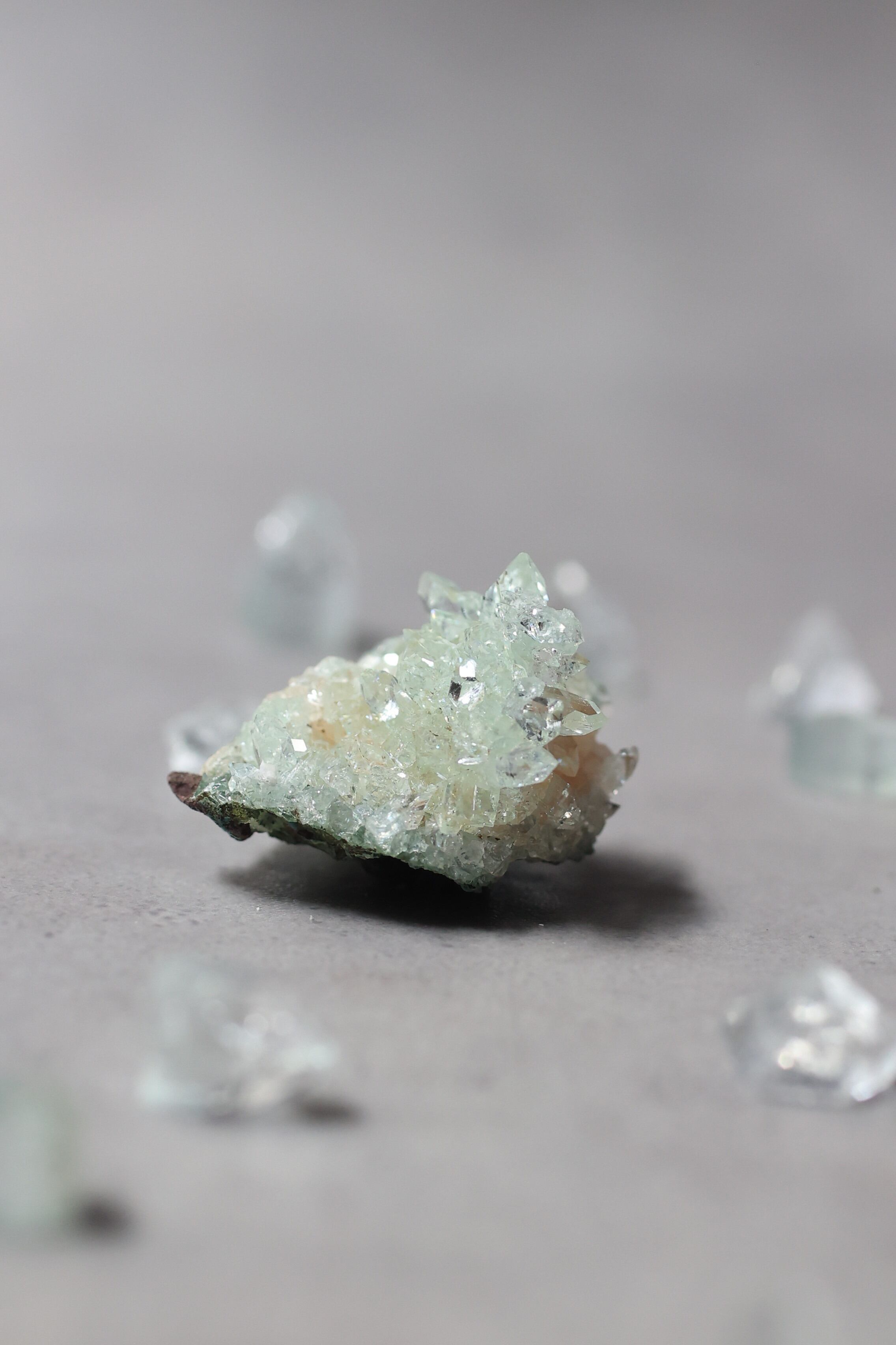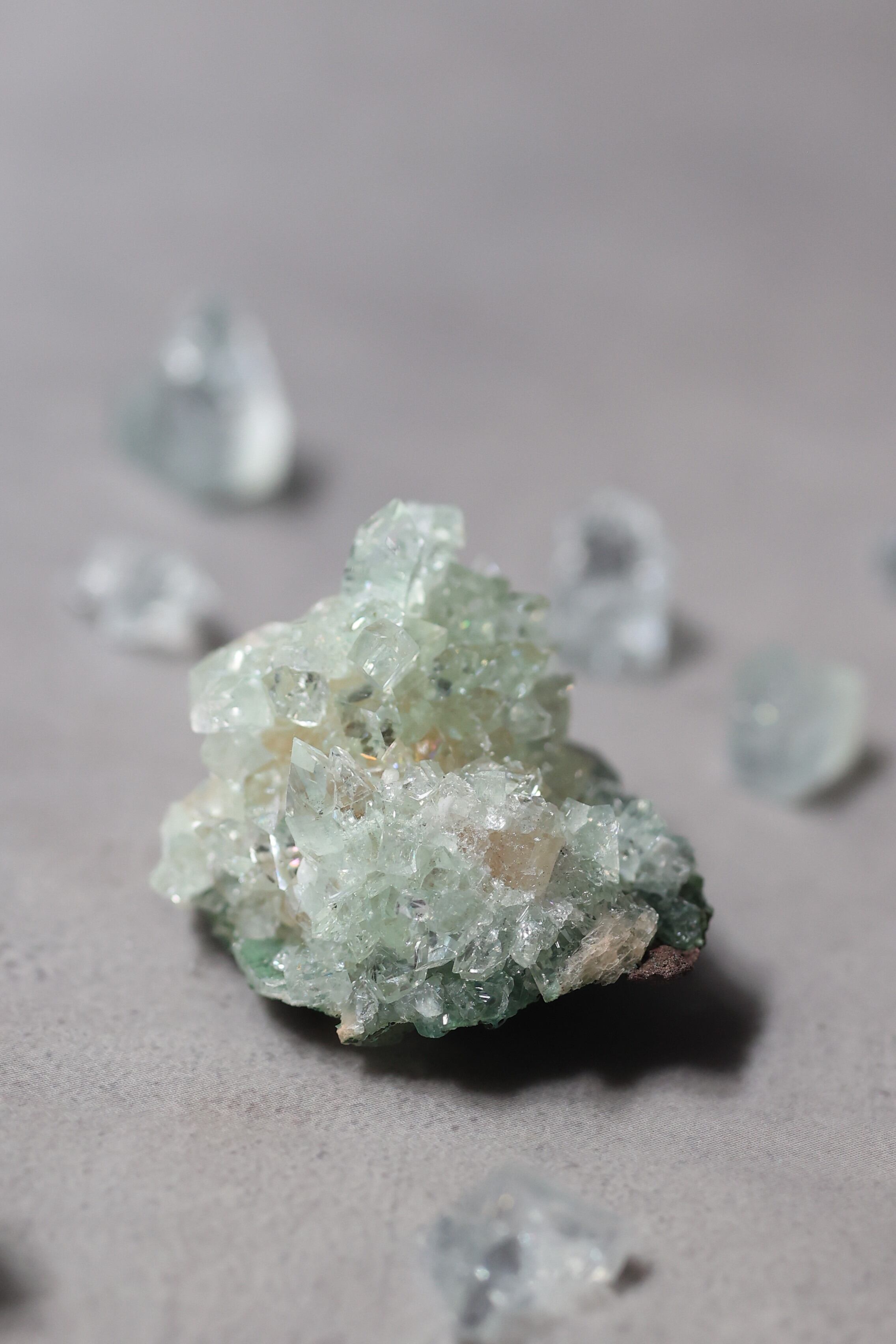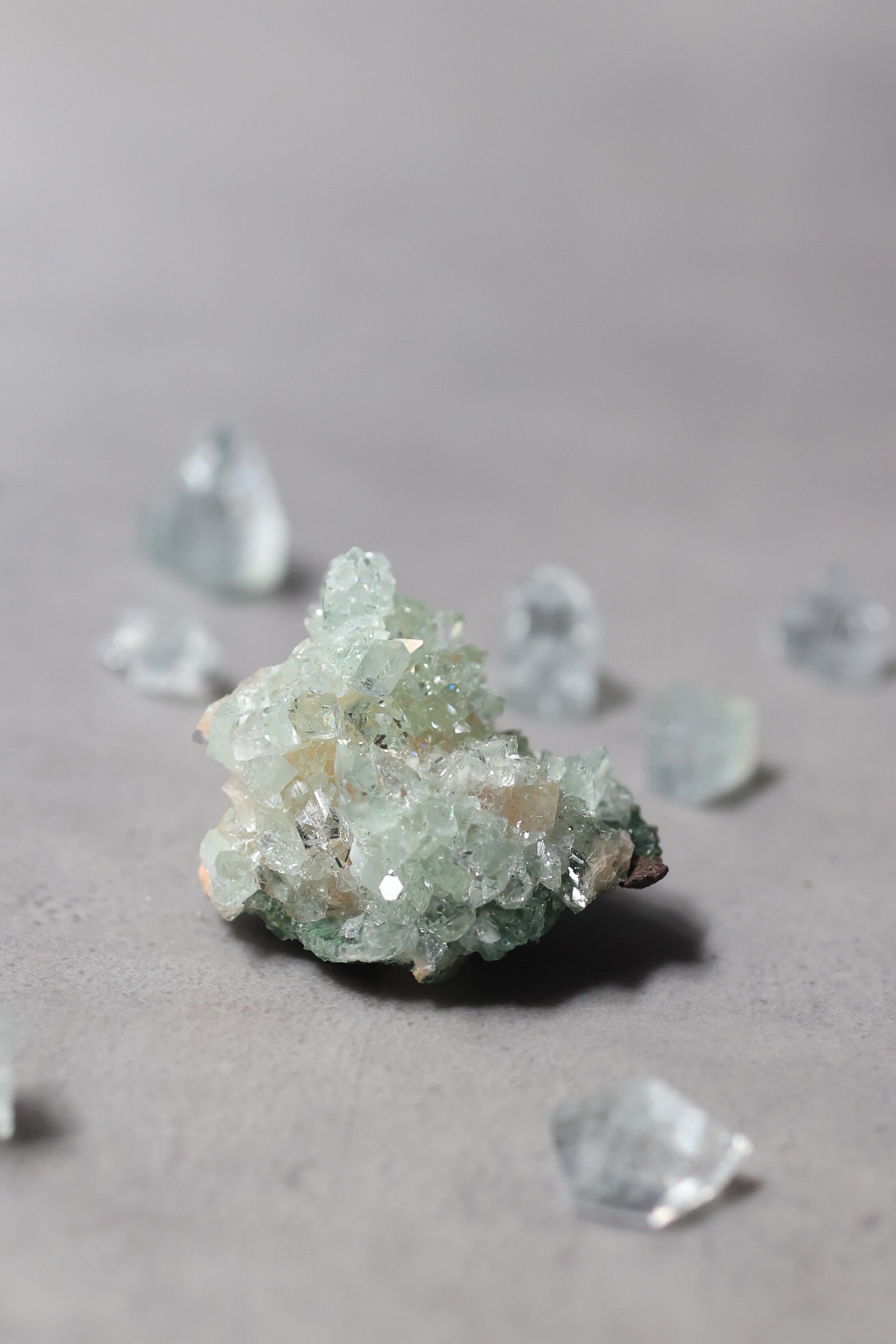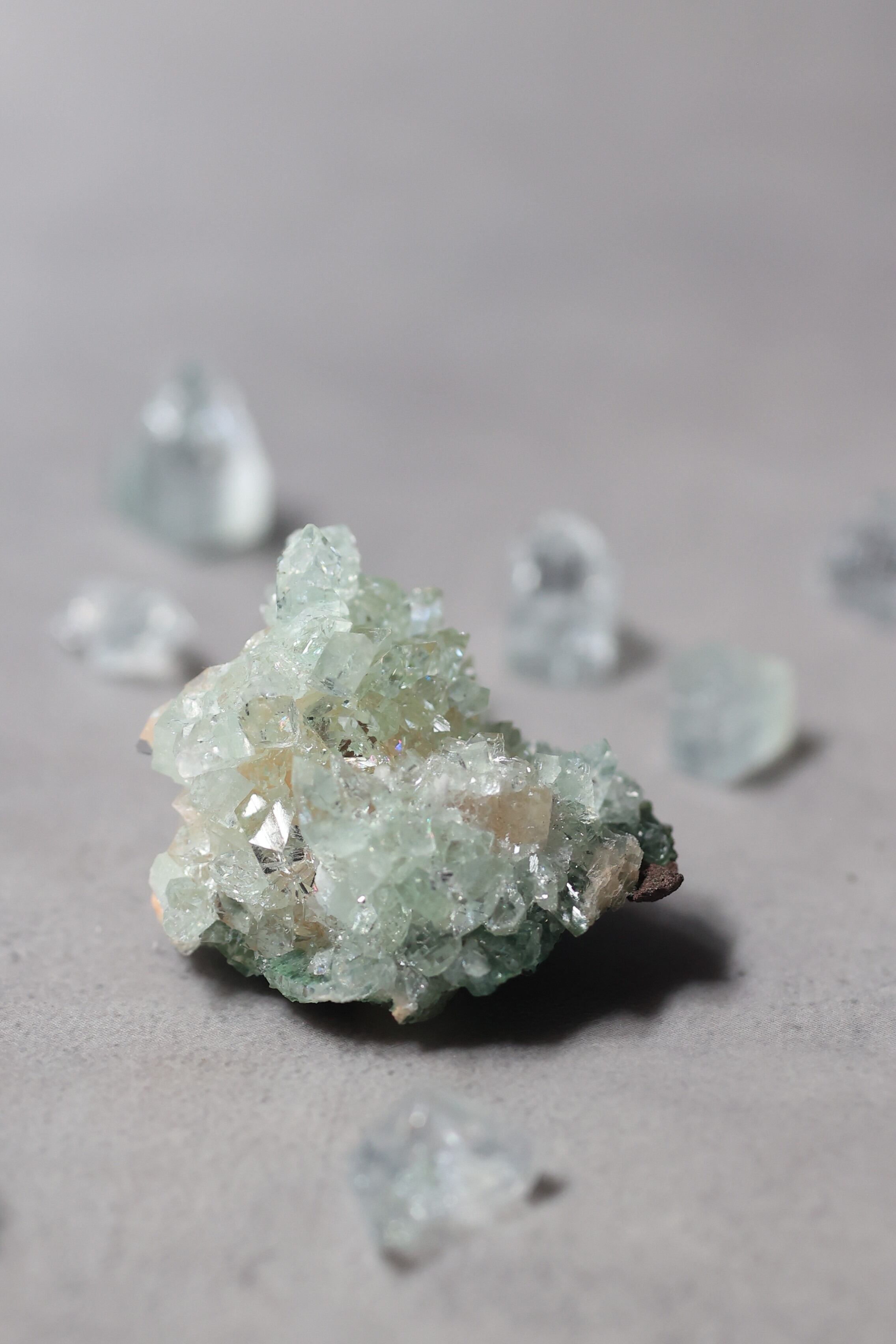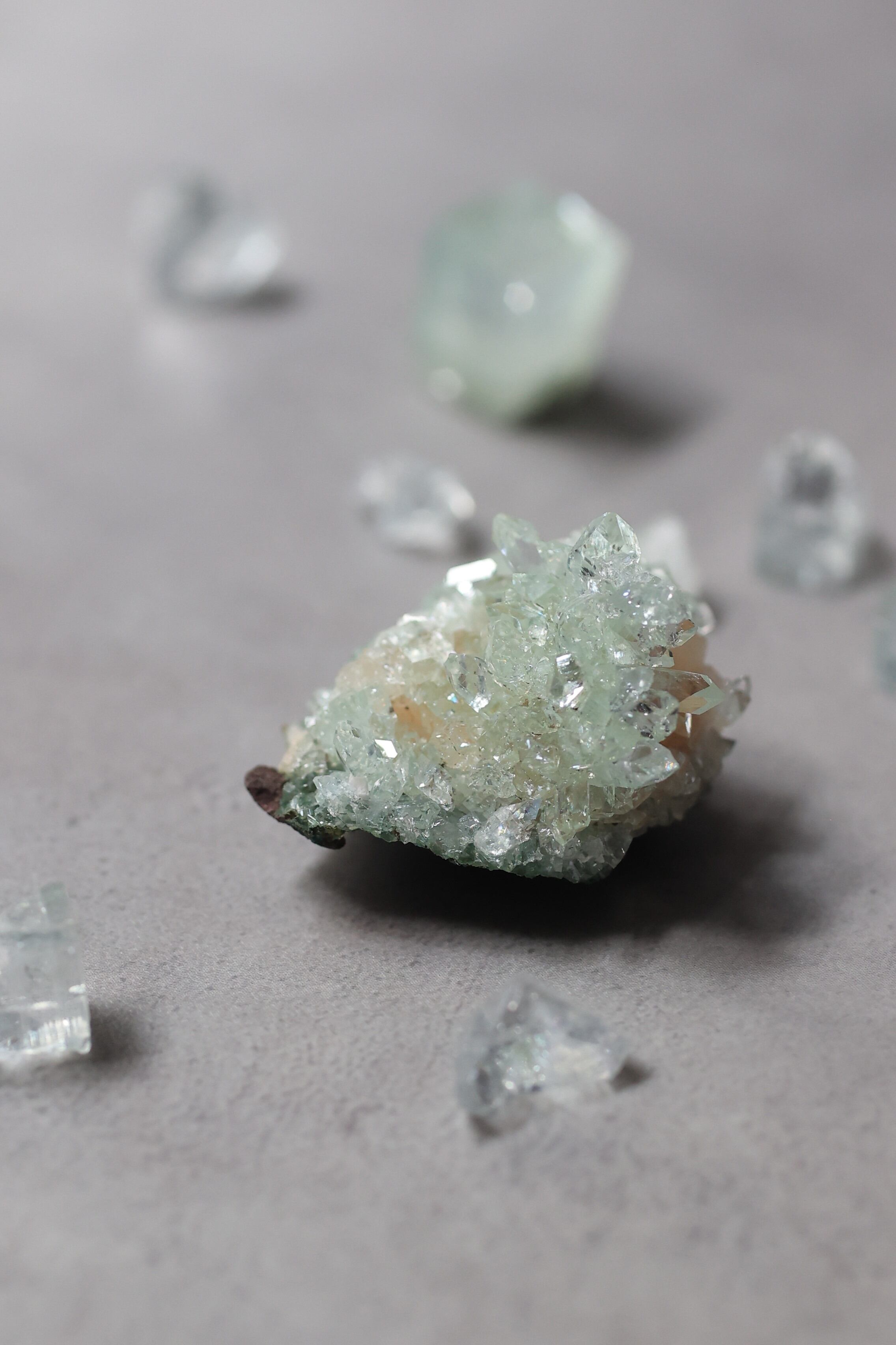 こちらのグリーンアポフィライトは、アポフィライトの中でもダイヤモンドアポフィライトと呼ばれる種類で透明度がかなり高いのが特徴です。
