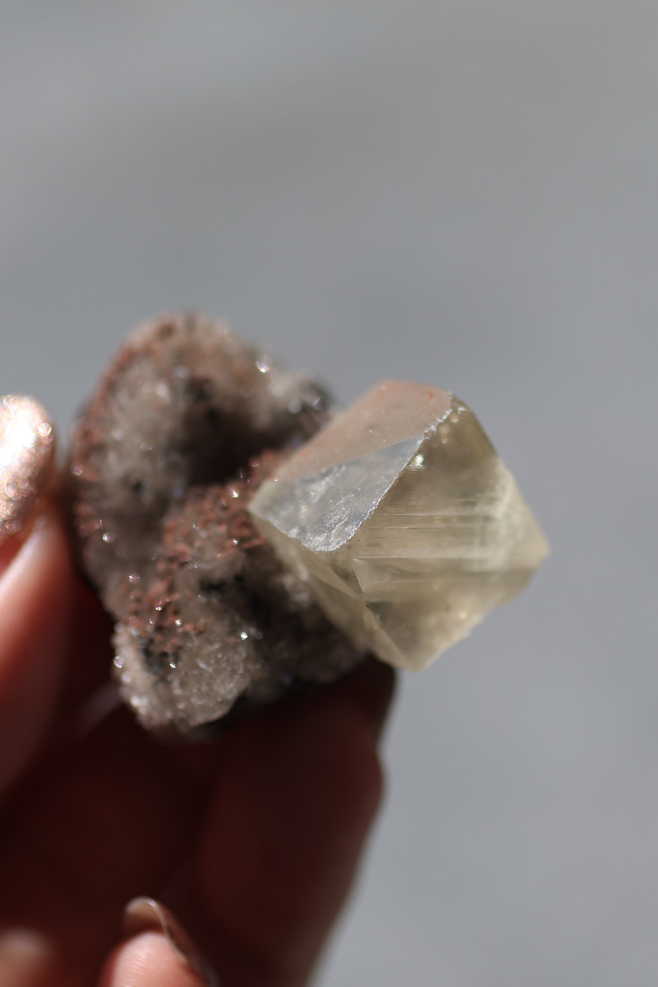 カルサイトの結晶は光を反射して柔らかく輝き、