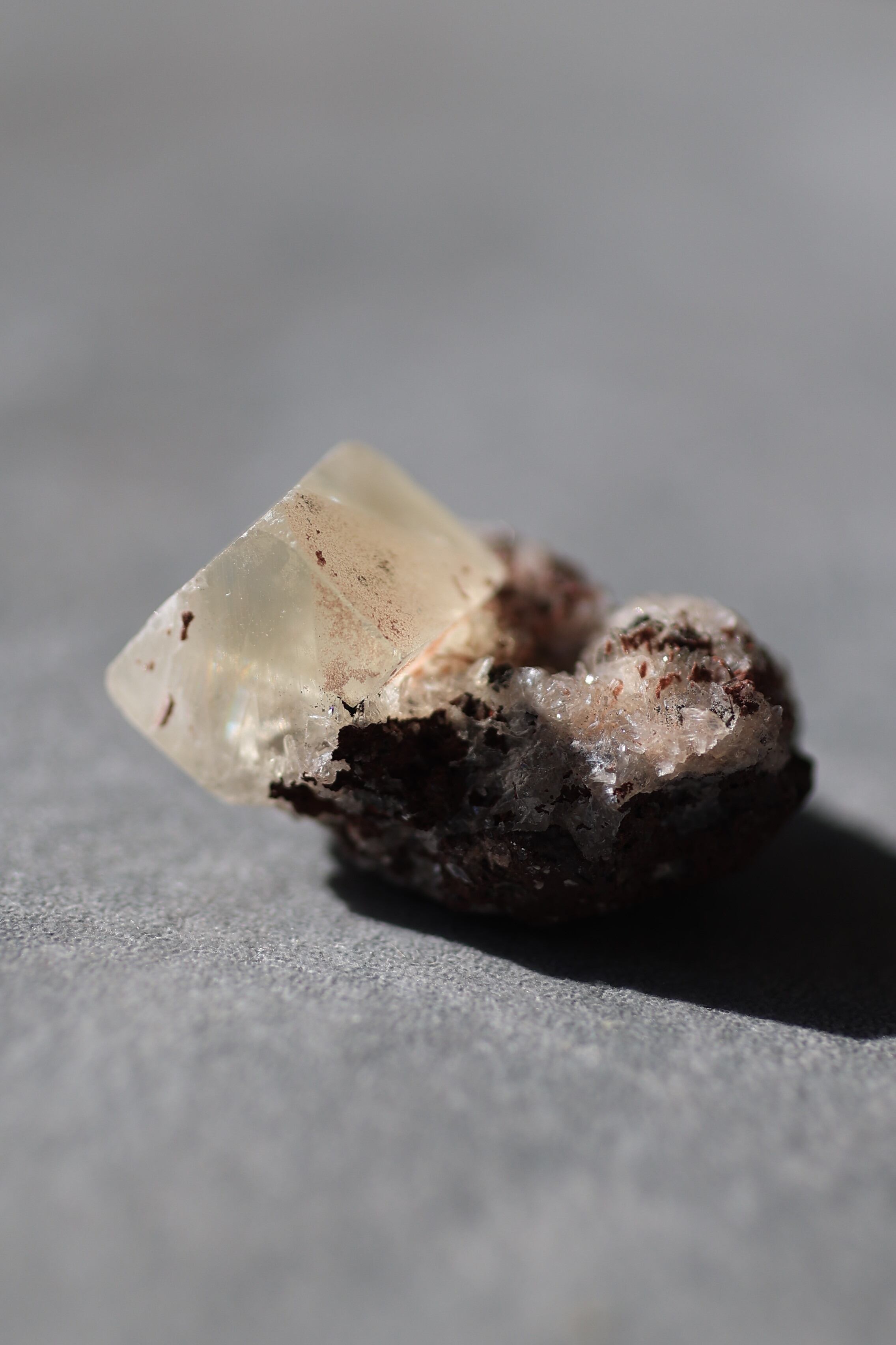 カルサイトとヒューランダイトが同じ空洞の中で育つことがあります。