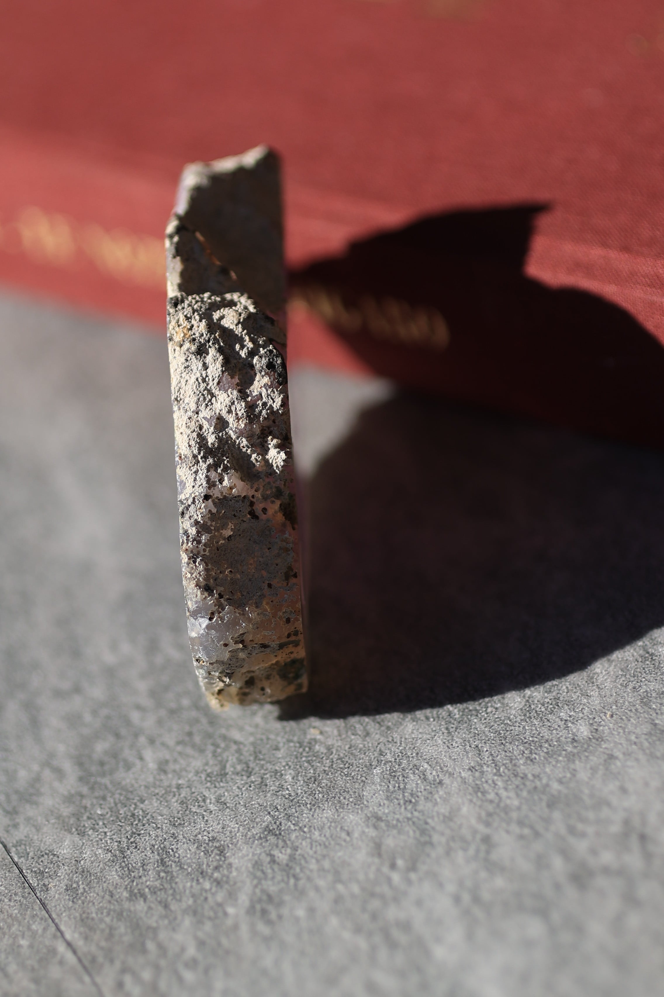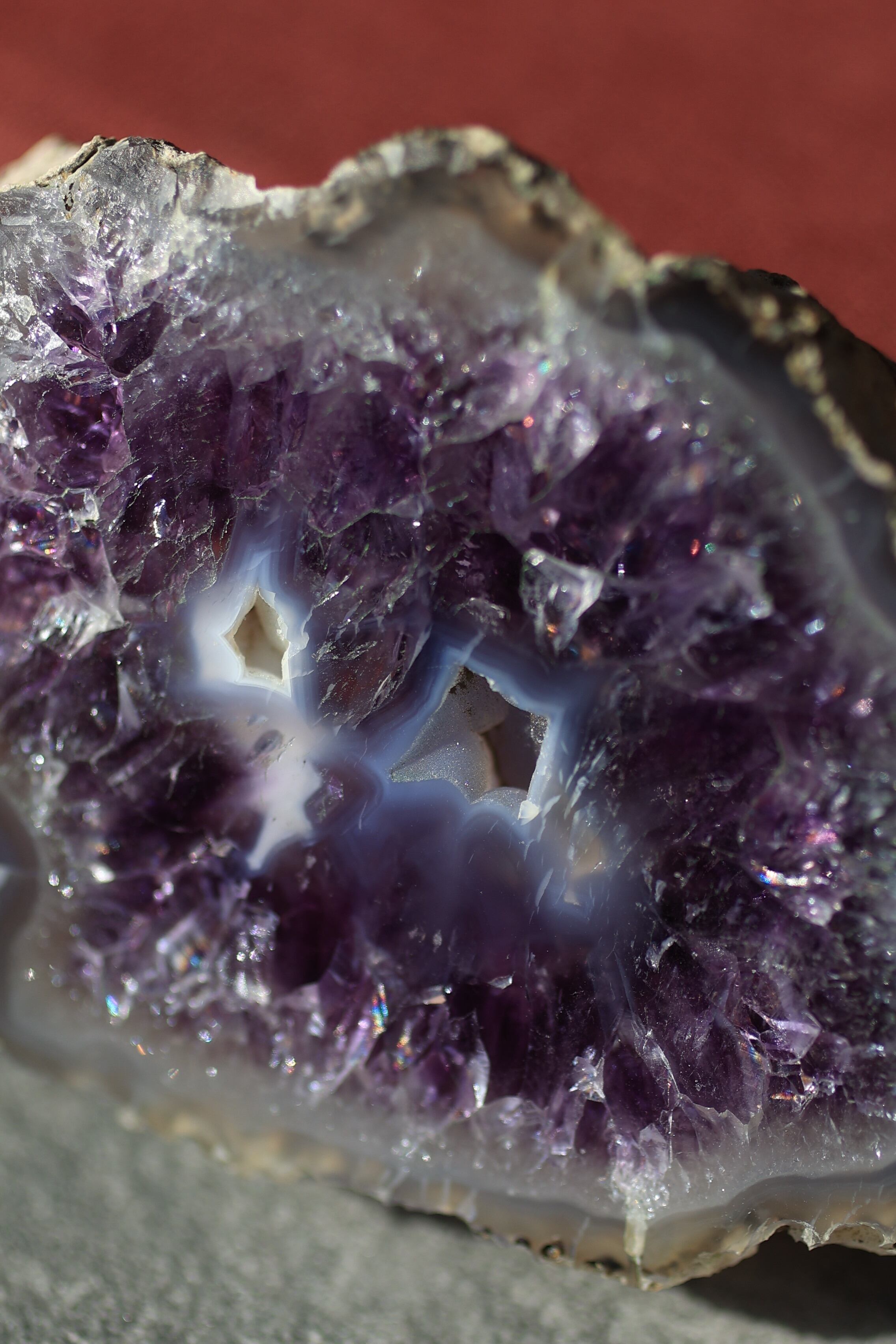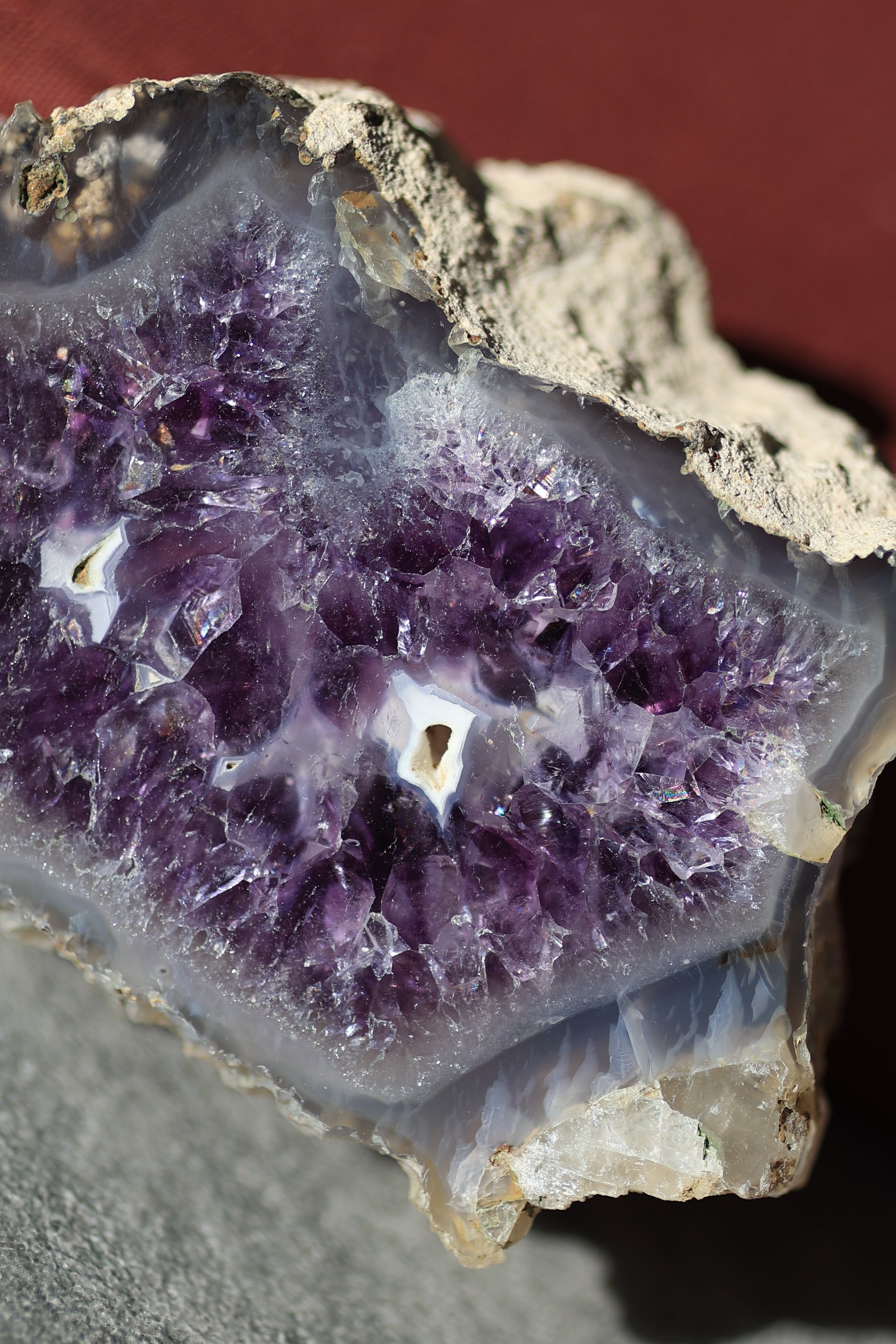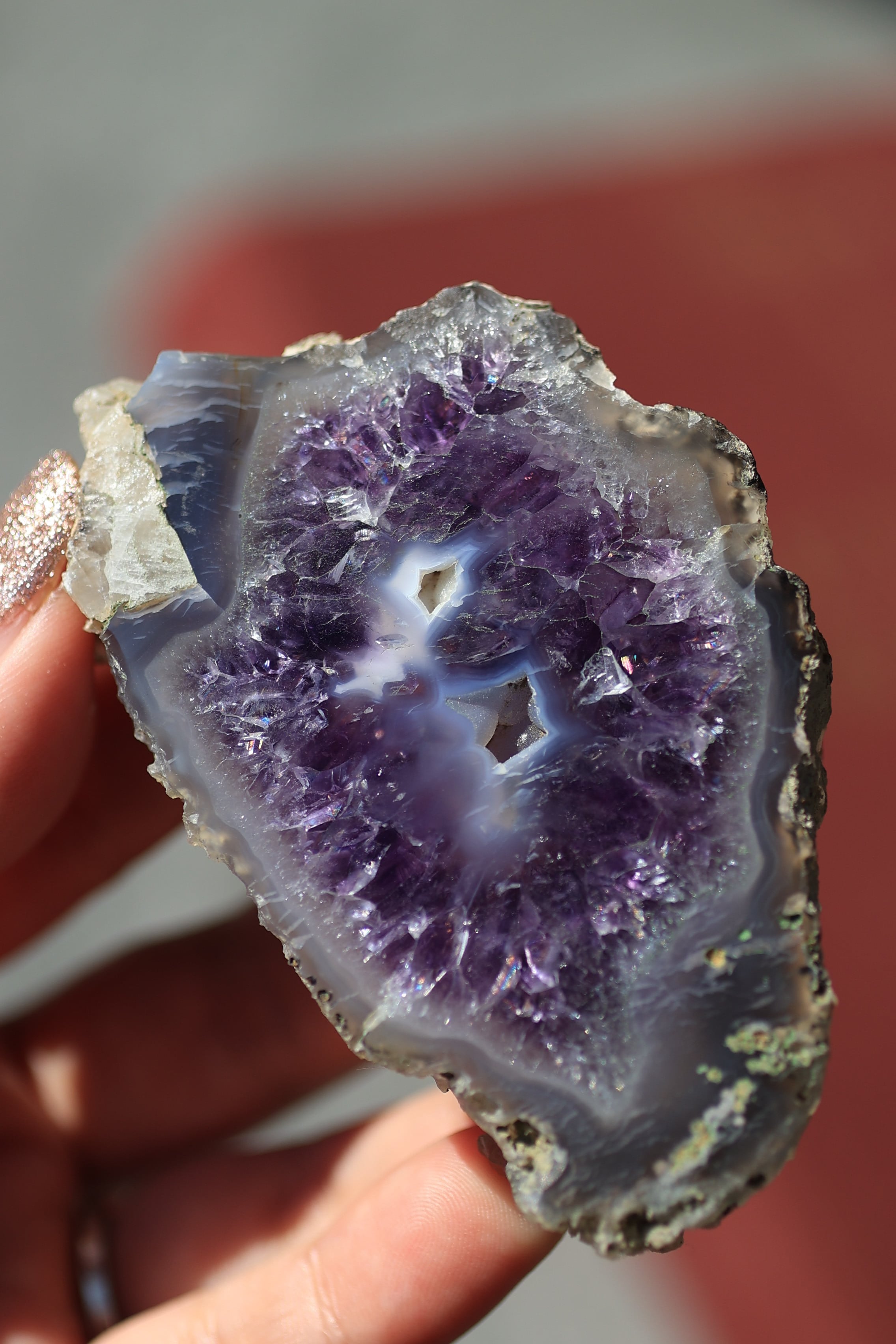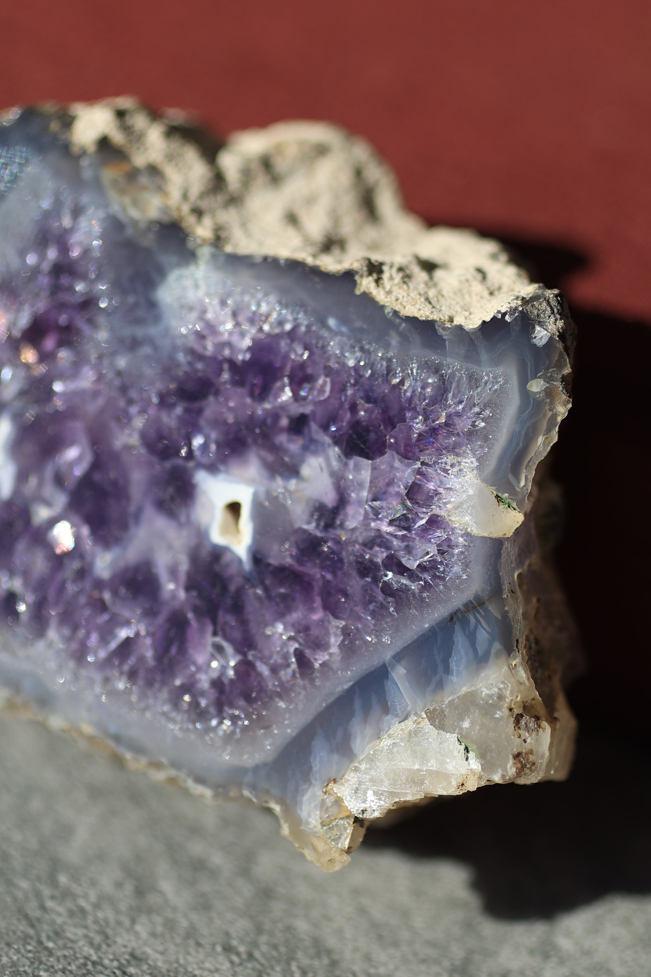 スライスされたアメジストは、原石の力強さと上品さが共存しており、
