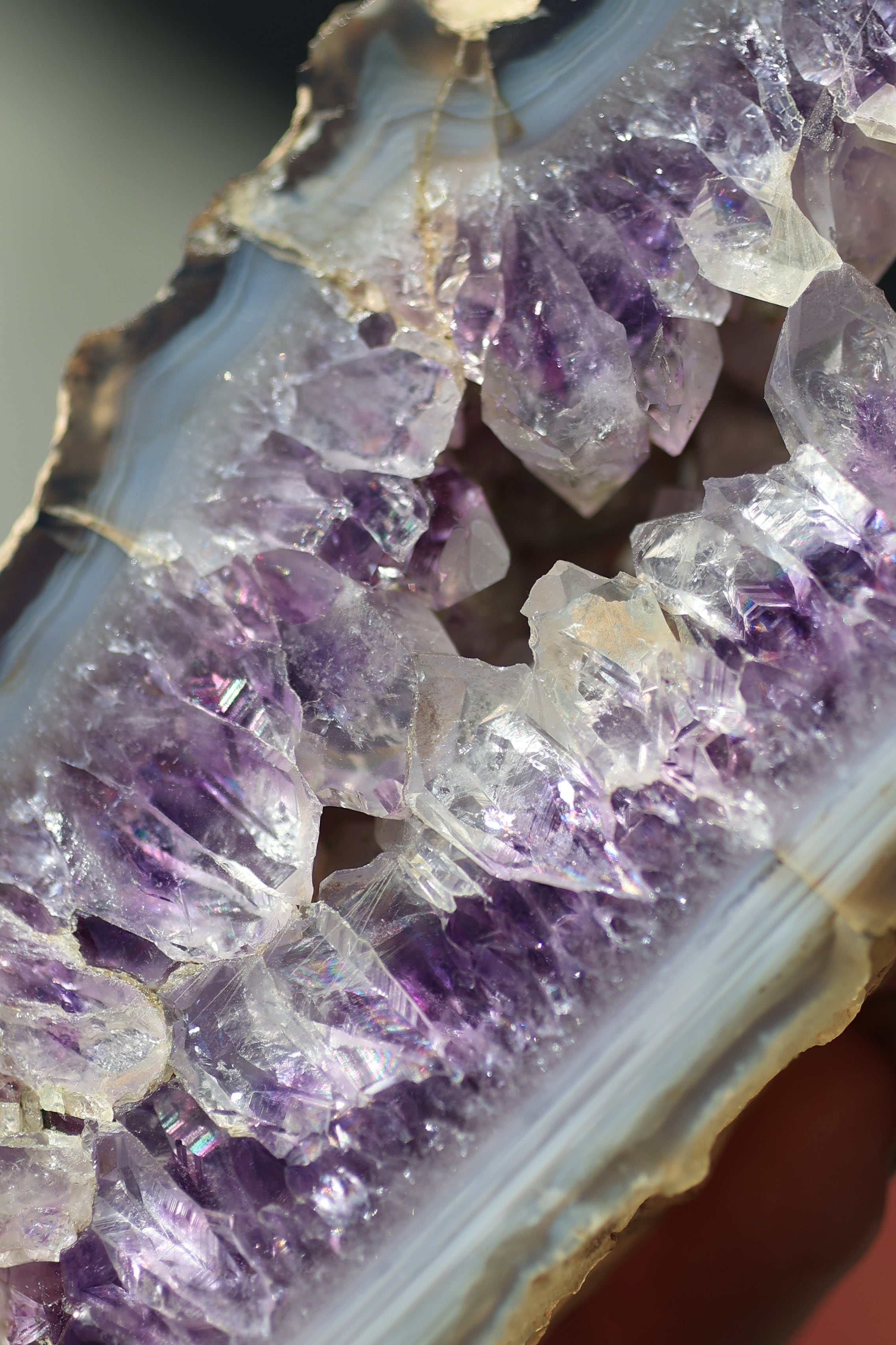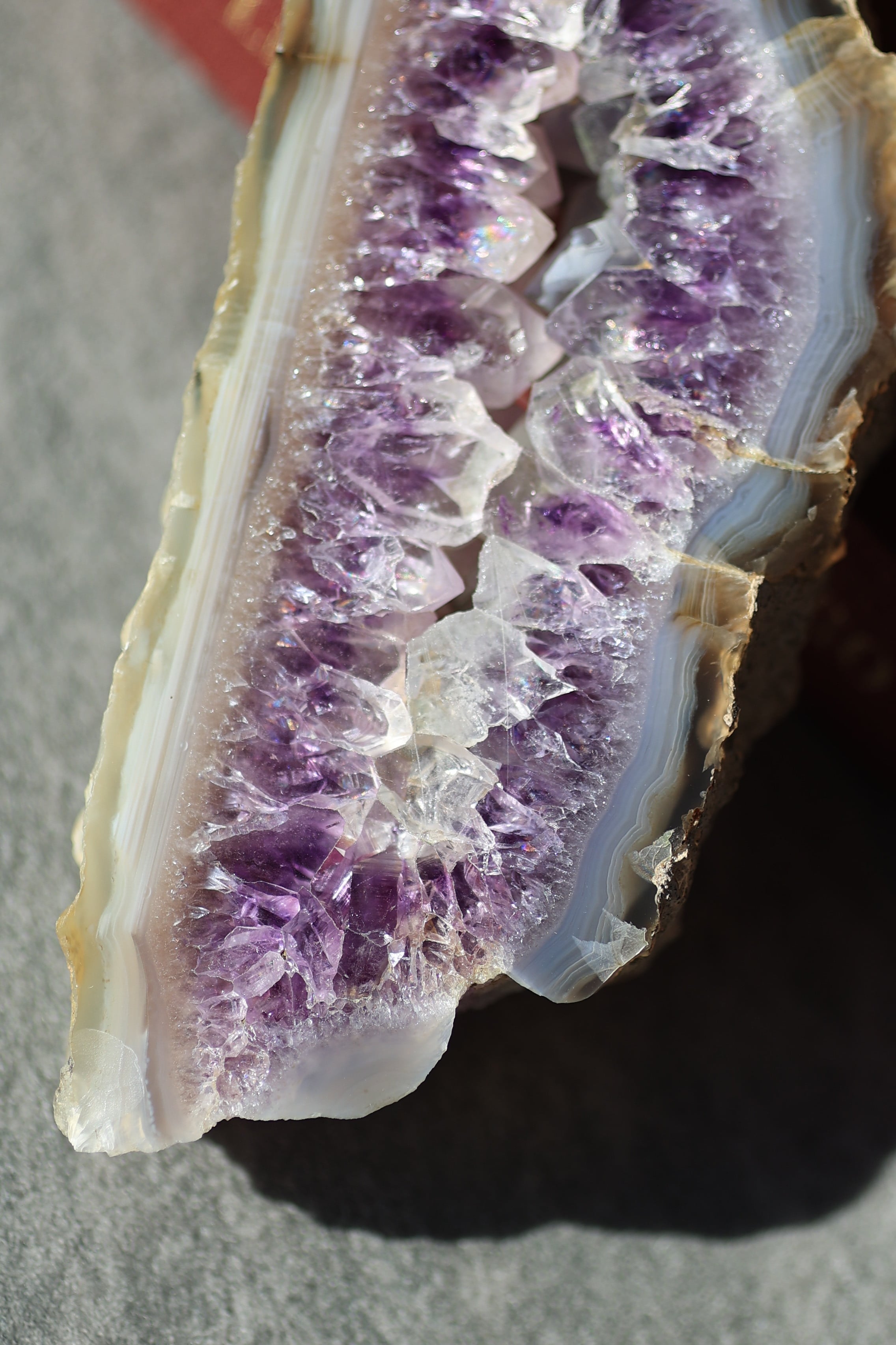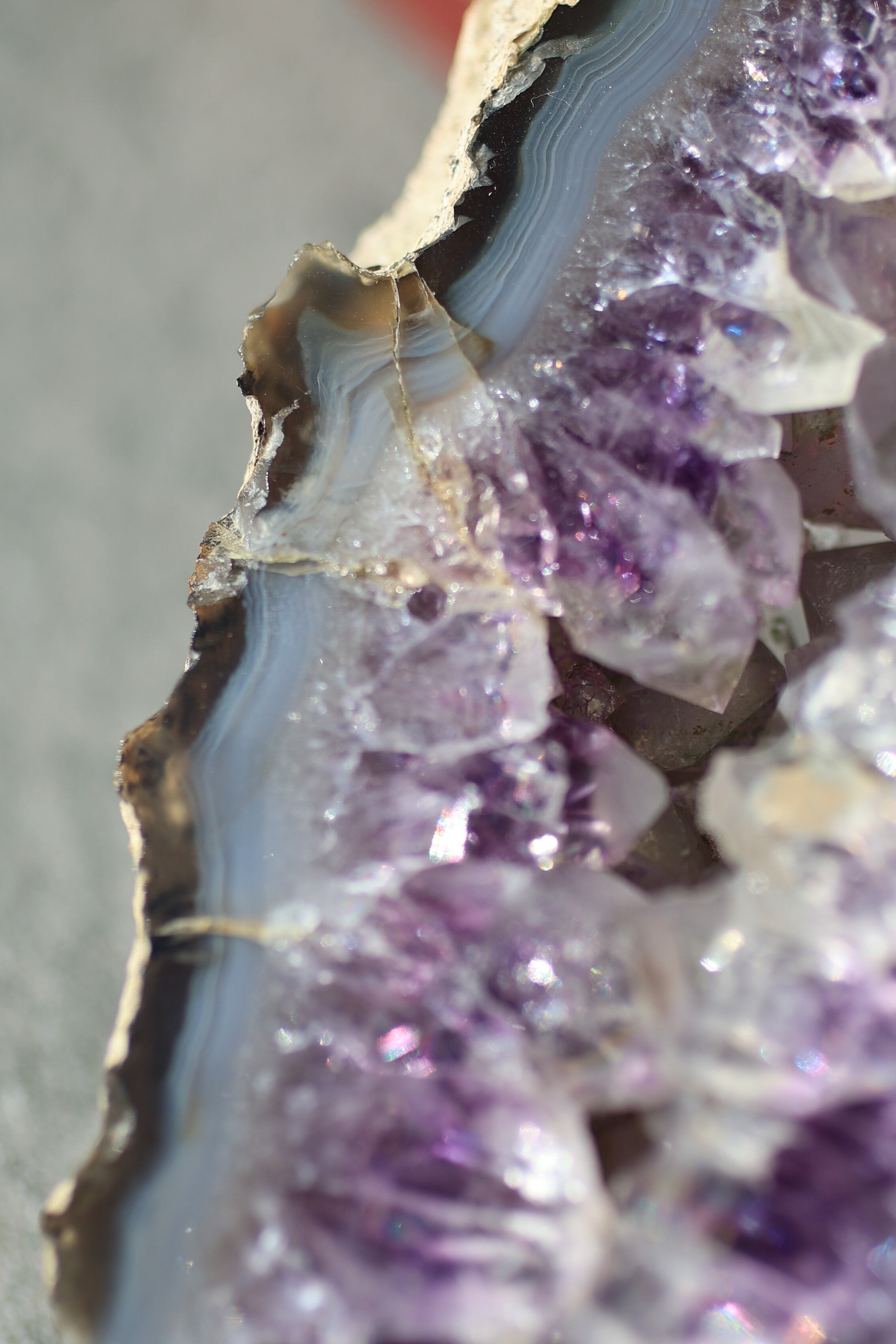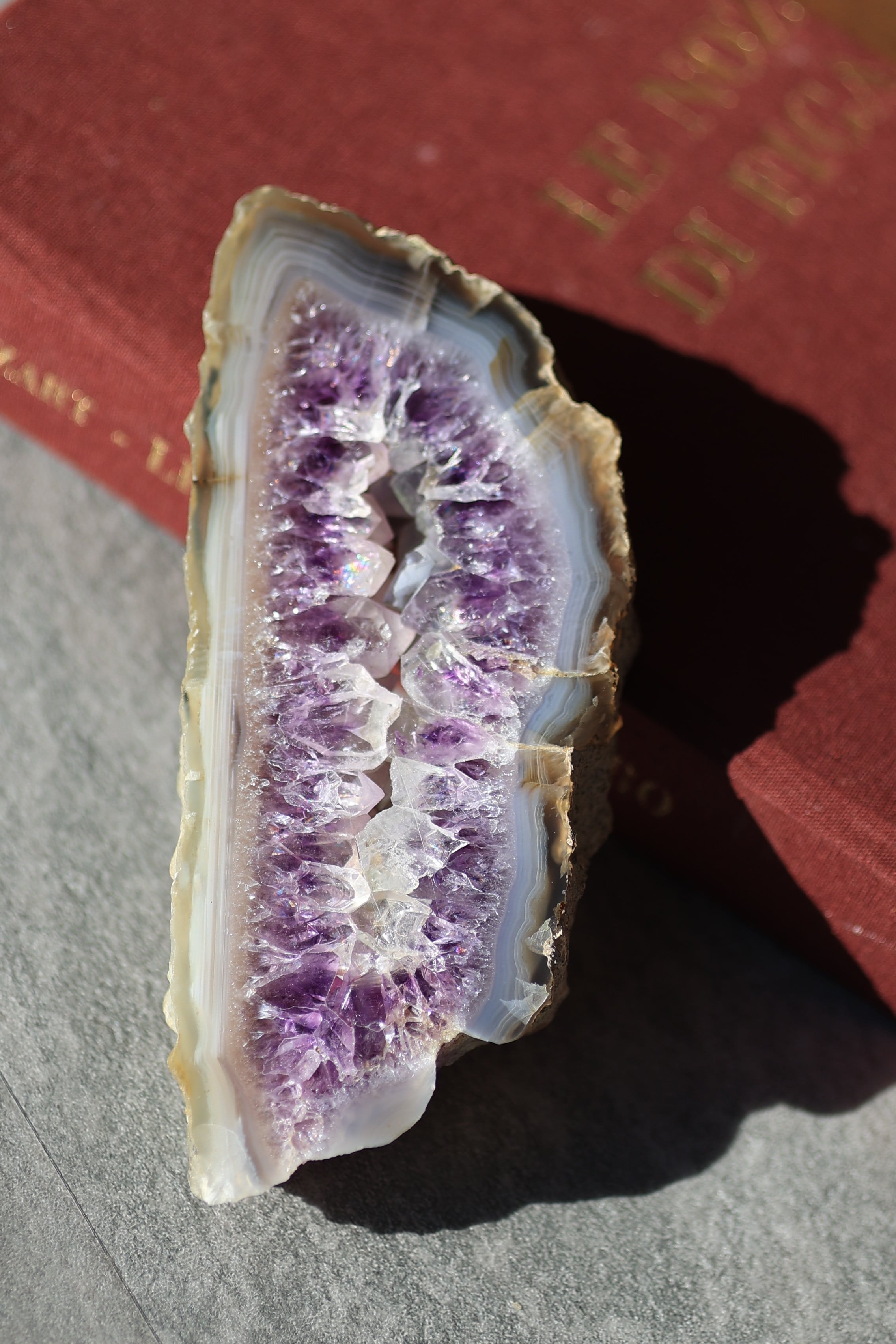 スライスされたアメジストは、原石の力強さと上品さが共存しており、