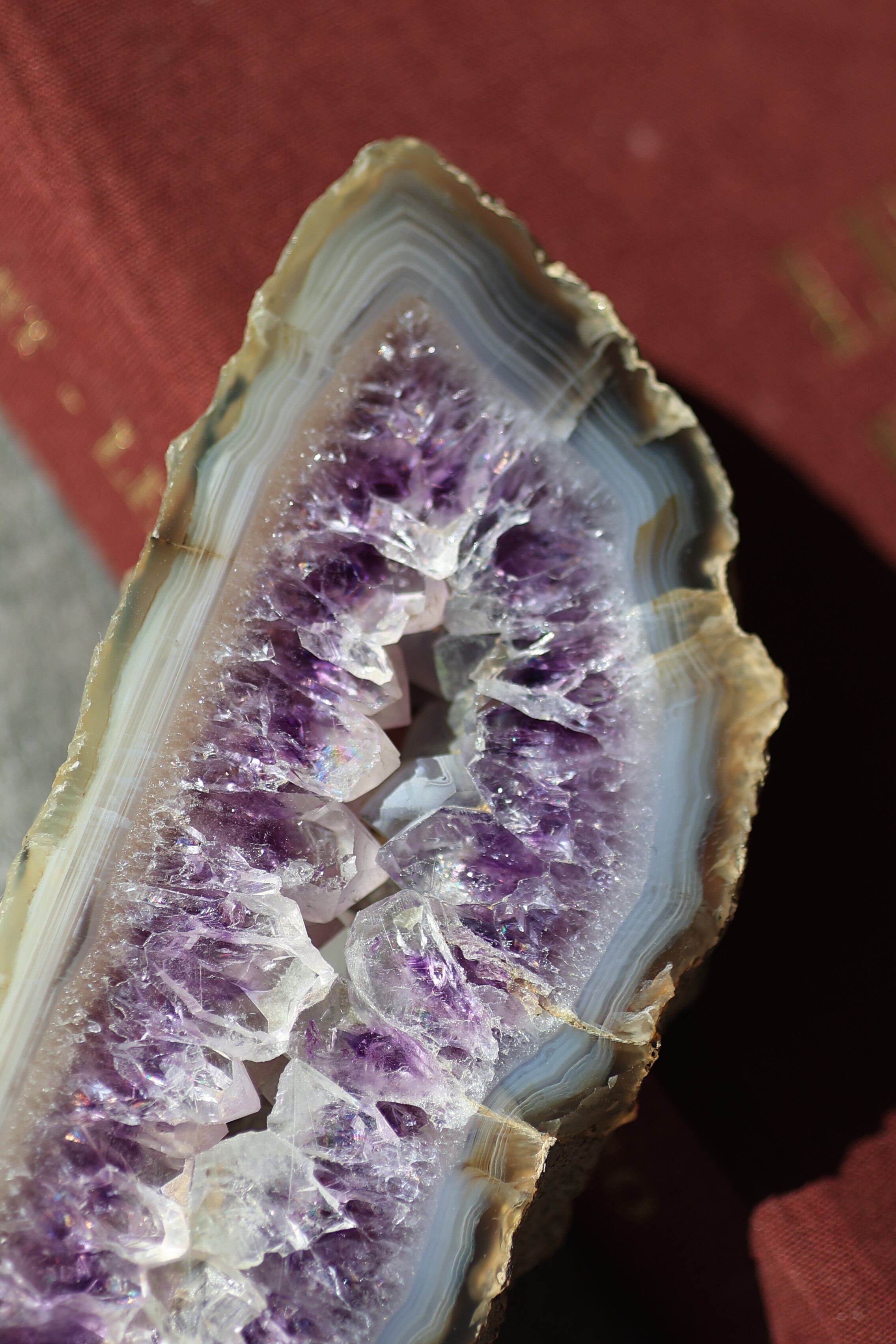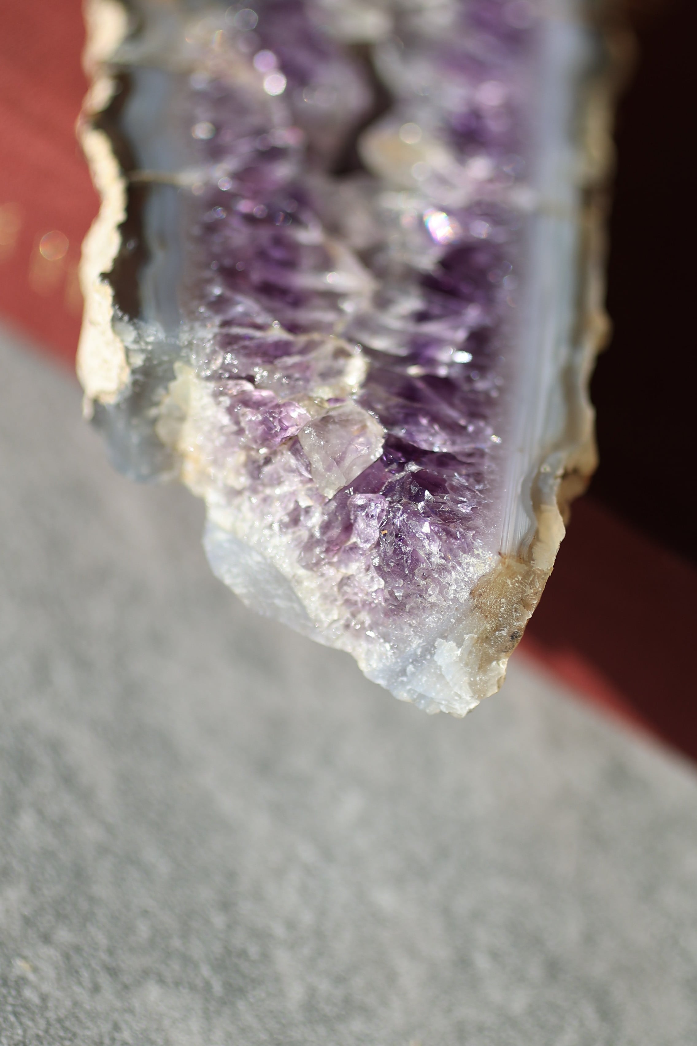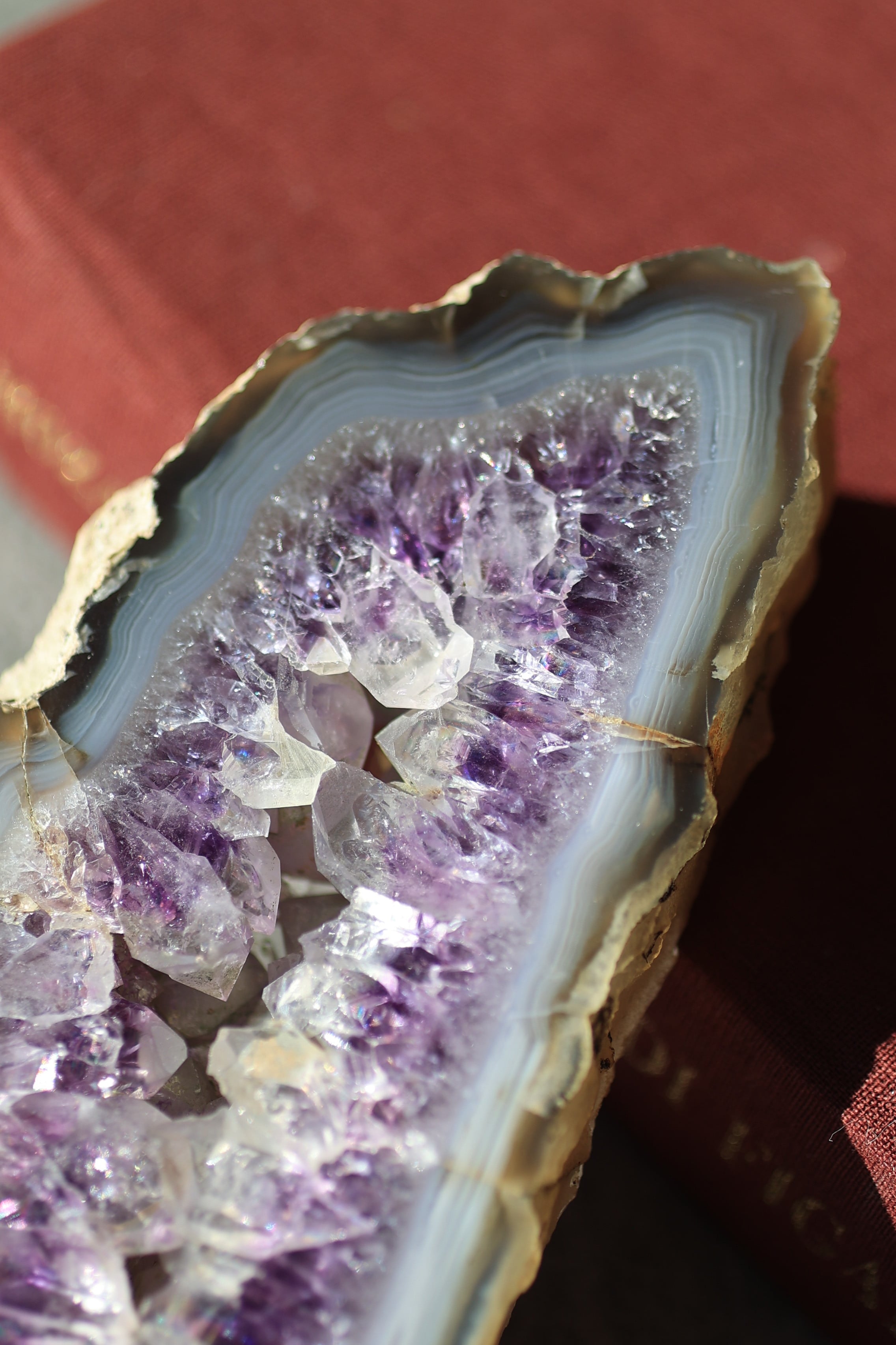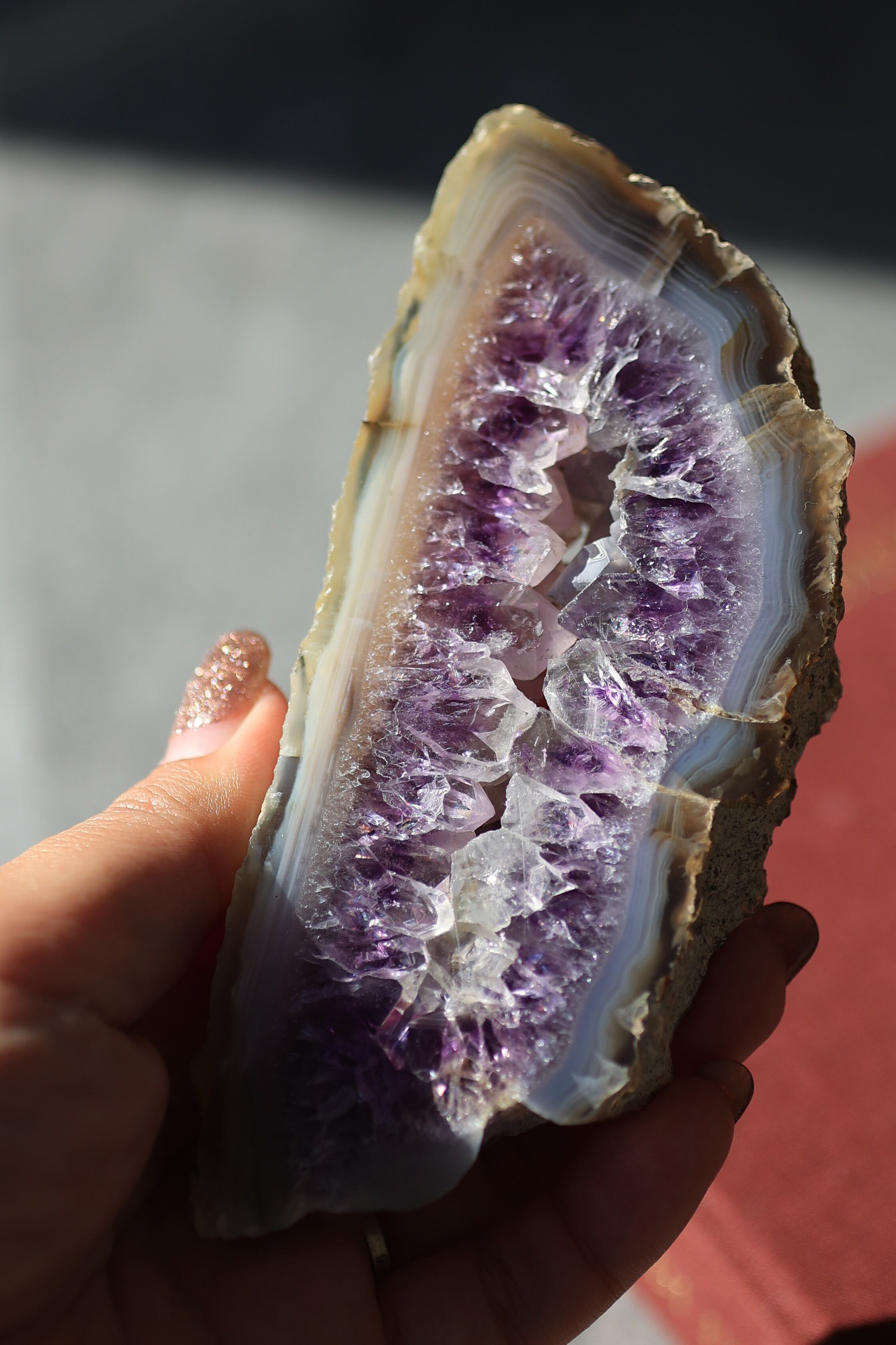 スライスされたアメジストは、原石の力強さと上品さが共存しており、