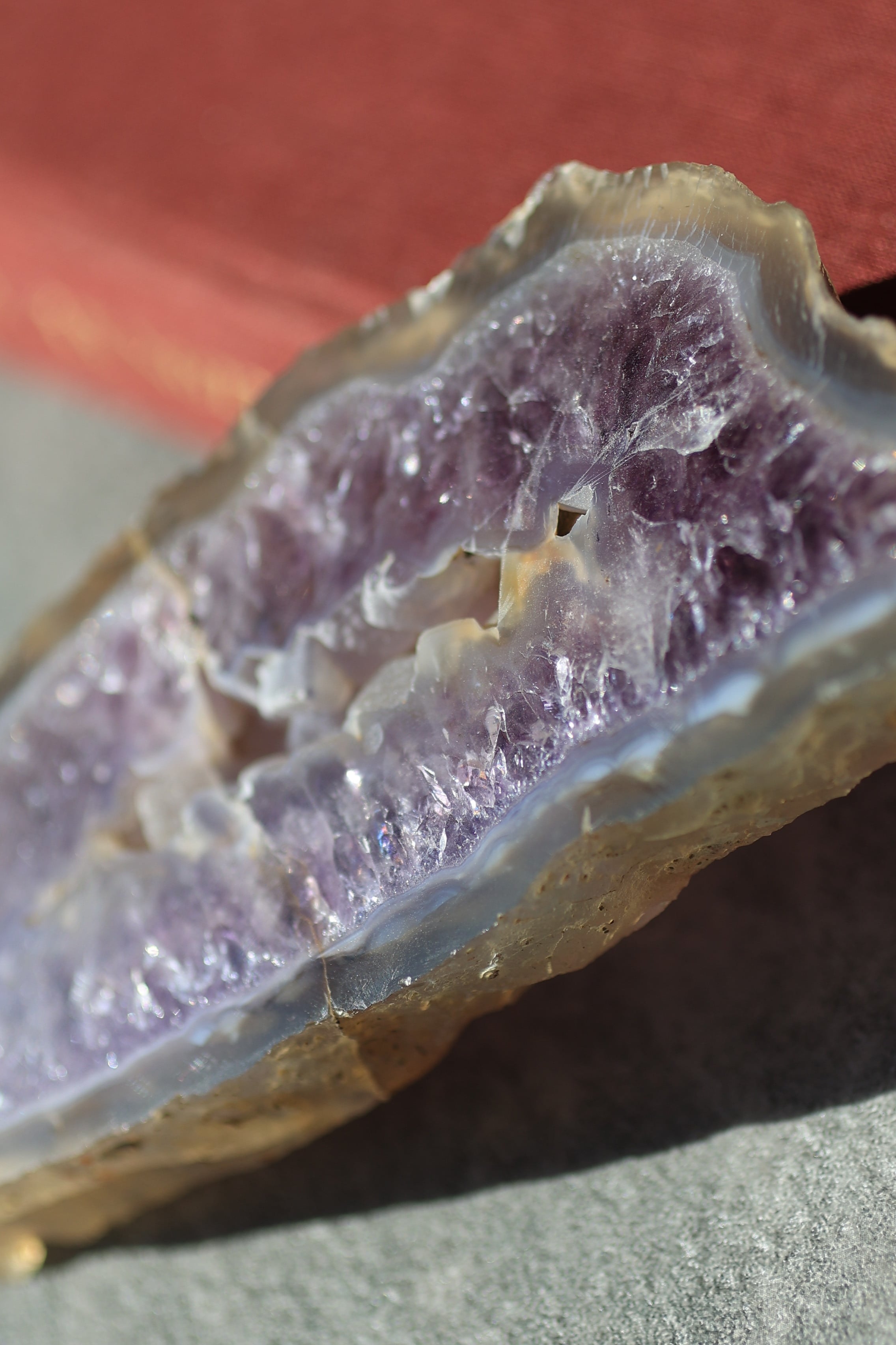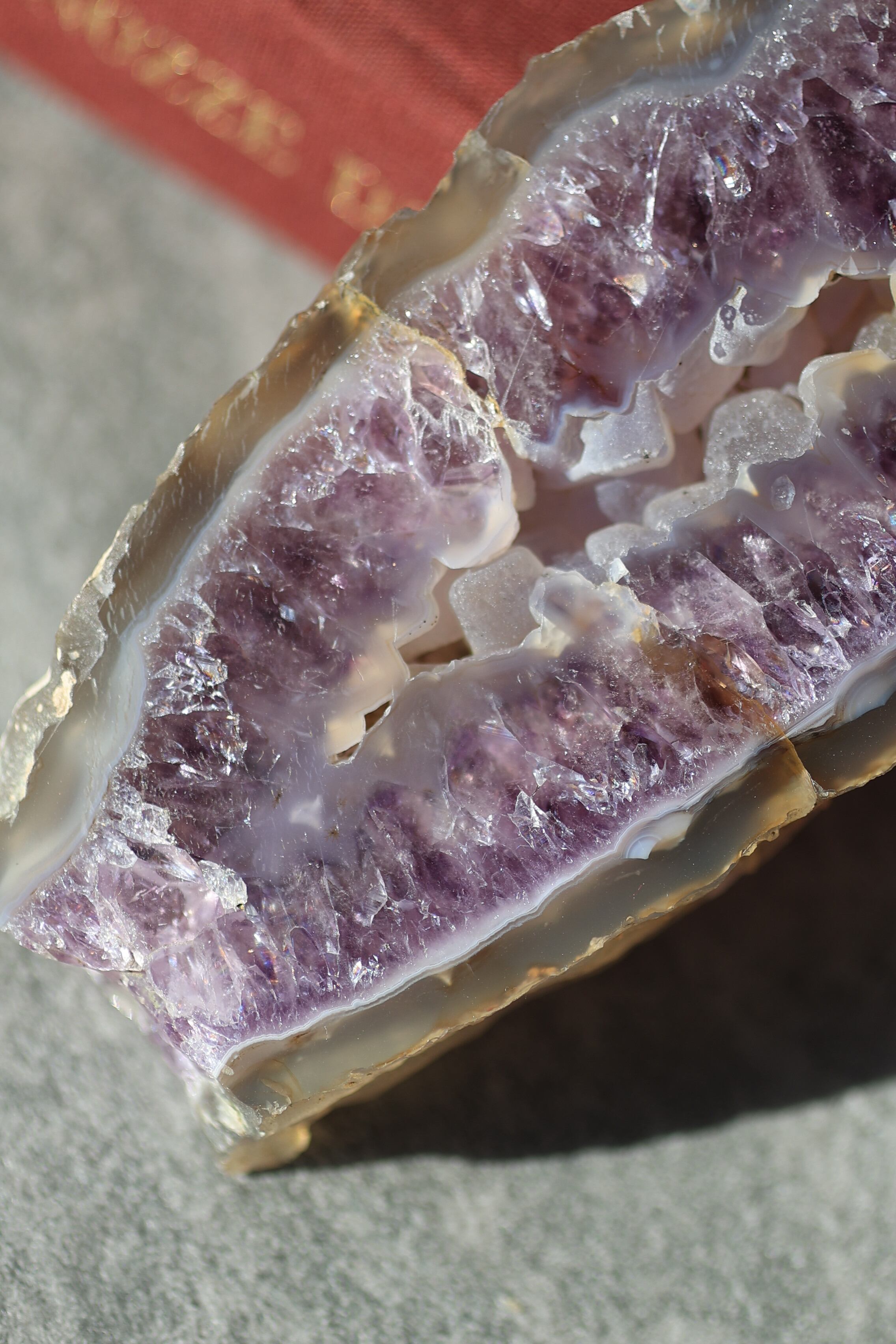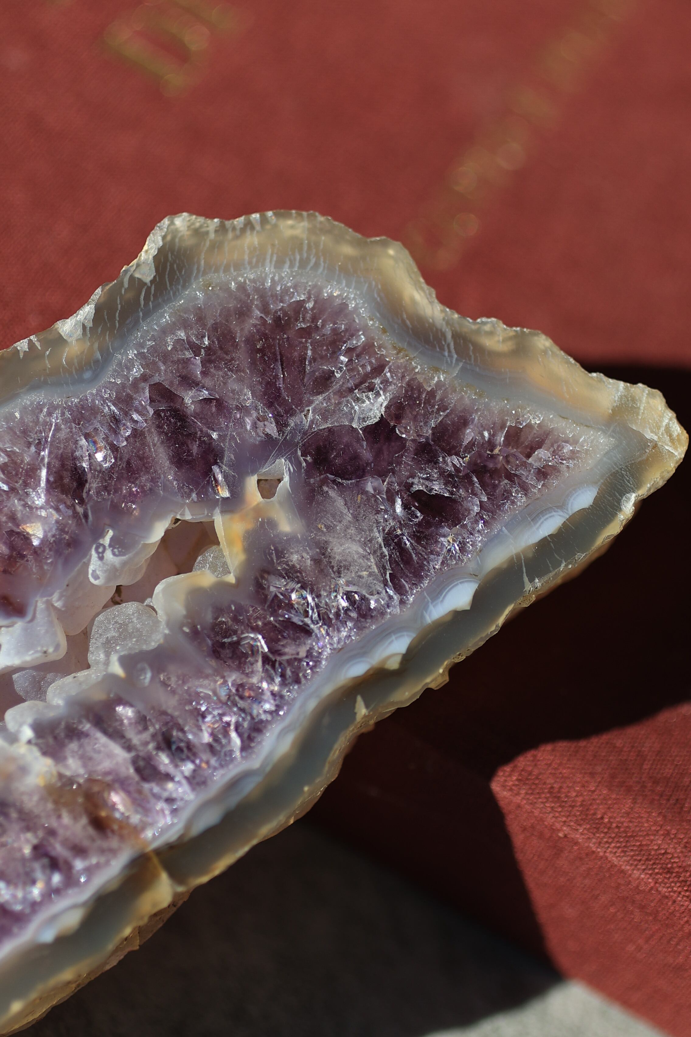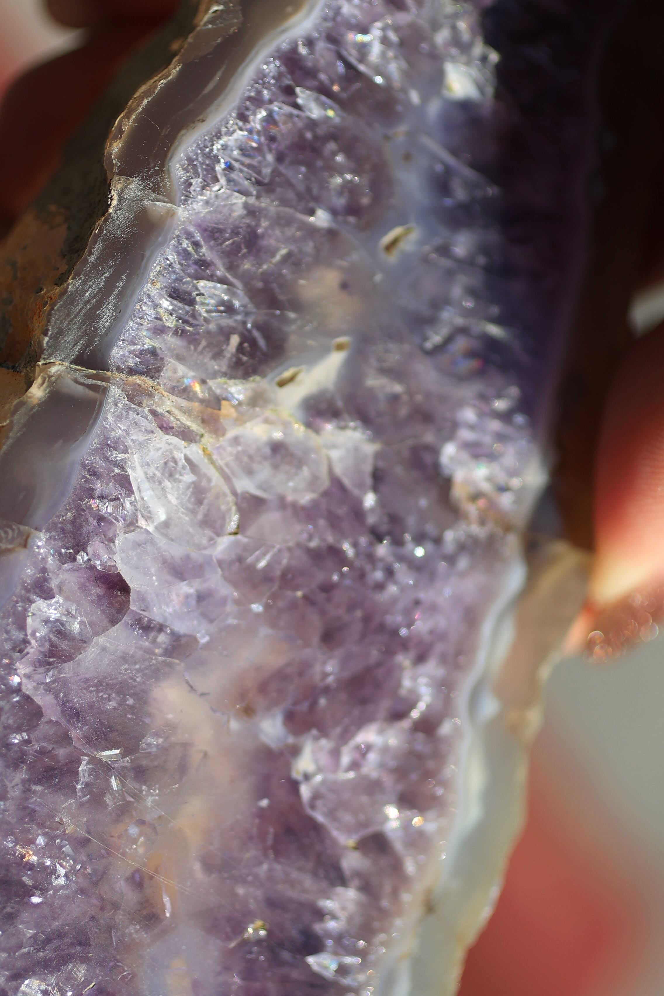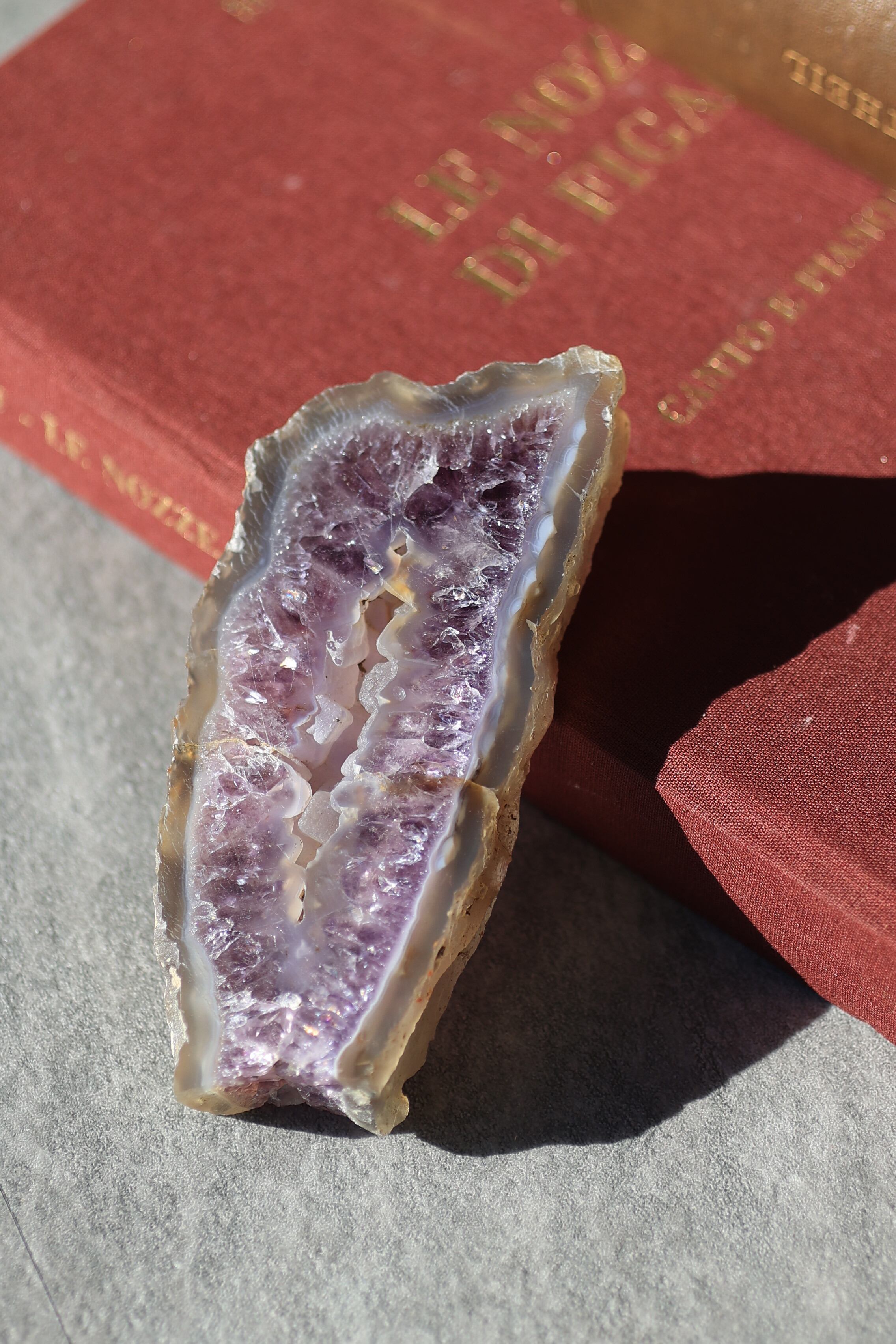 スライスされたアメジストは、原石の力強さと上品さが共存しており、