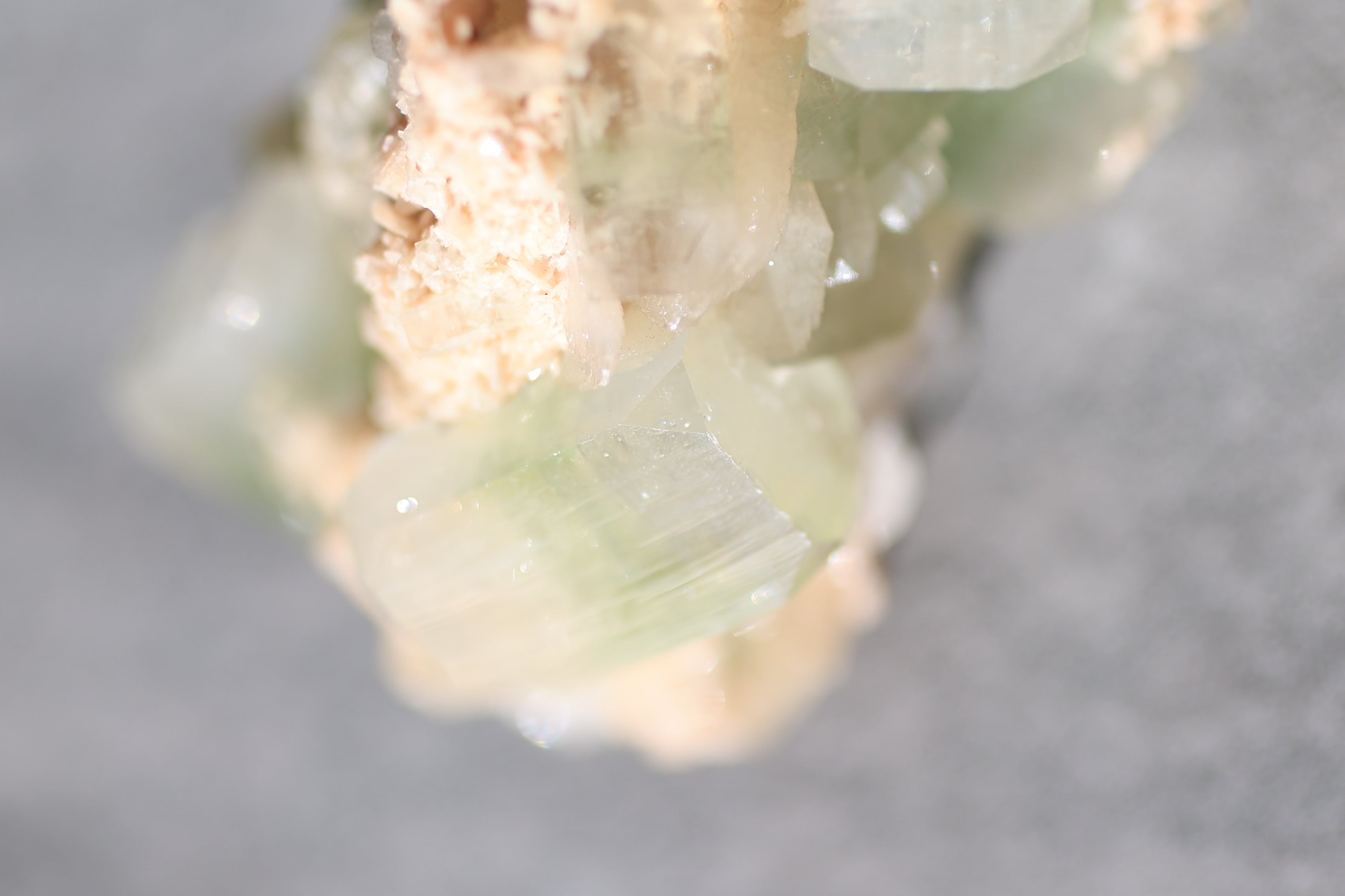 柔らかなグリーンアポフィライトとスティルバイトが共生したペールトーンの色味が愛らしいストーンです。