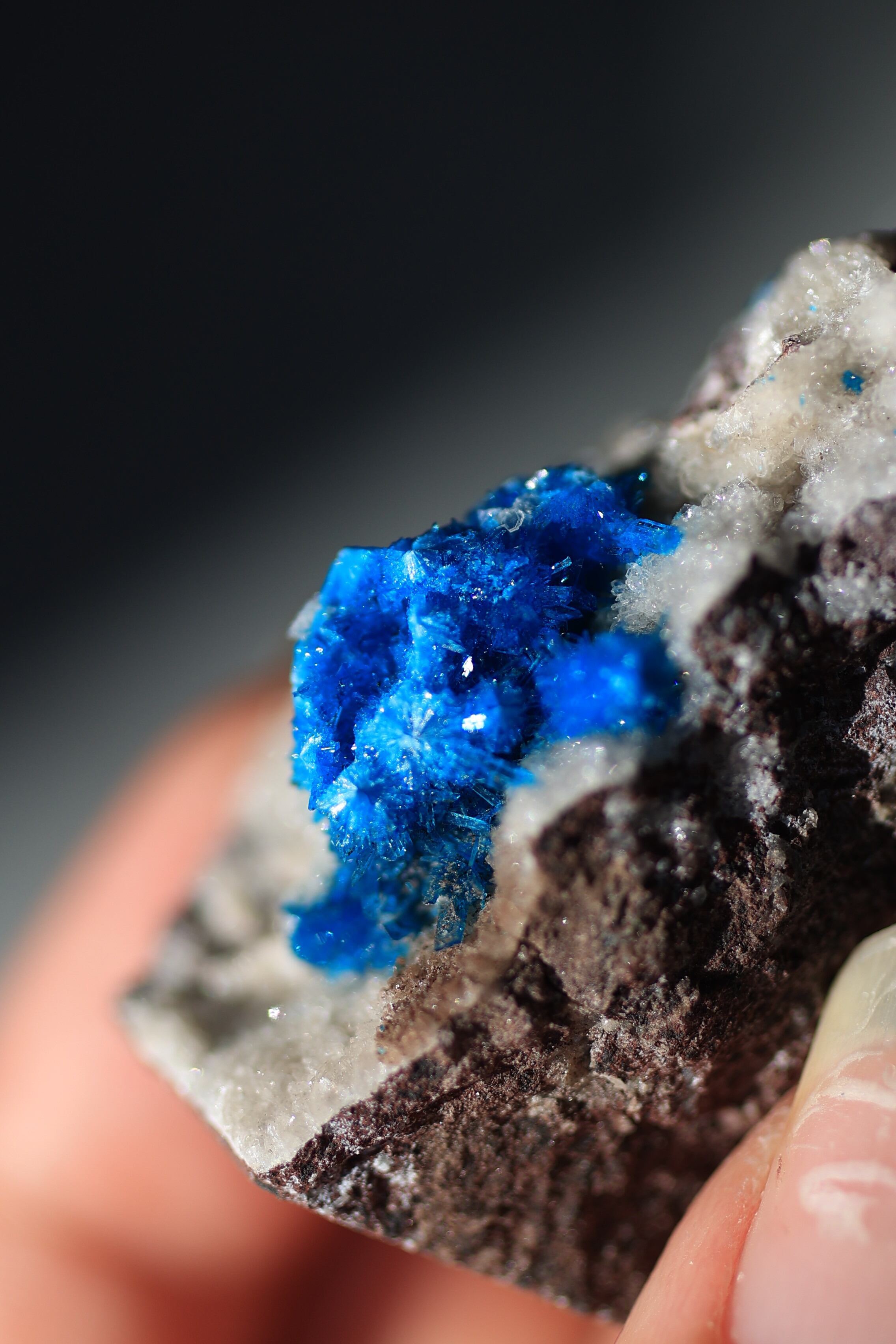 ペンタゴナイトは、その希少性と美しさから、コレクターだけでなく感覚的に惹かれる人にも選ばれる石。濃くも透き通るようなブルーと、放射状にのびる繊細な結晶が生み出す佇まいは、まさに自然が生んだ一点ものの芸術です。