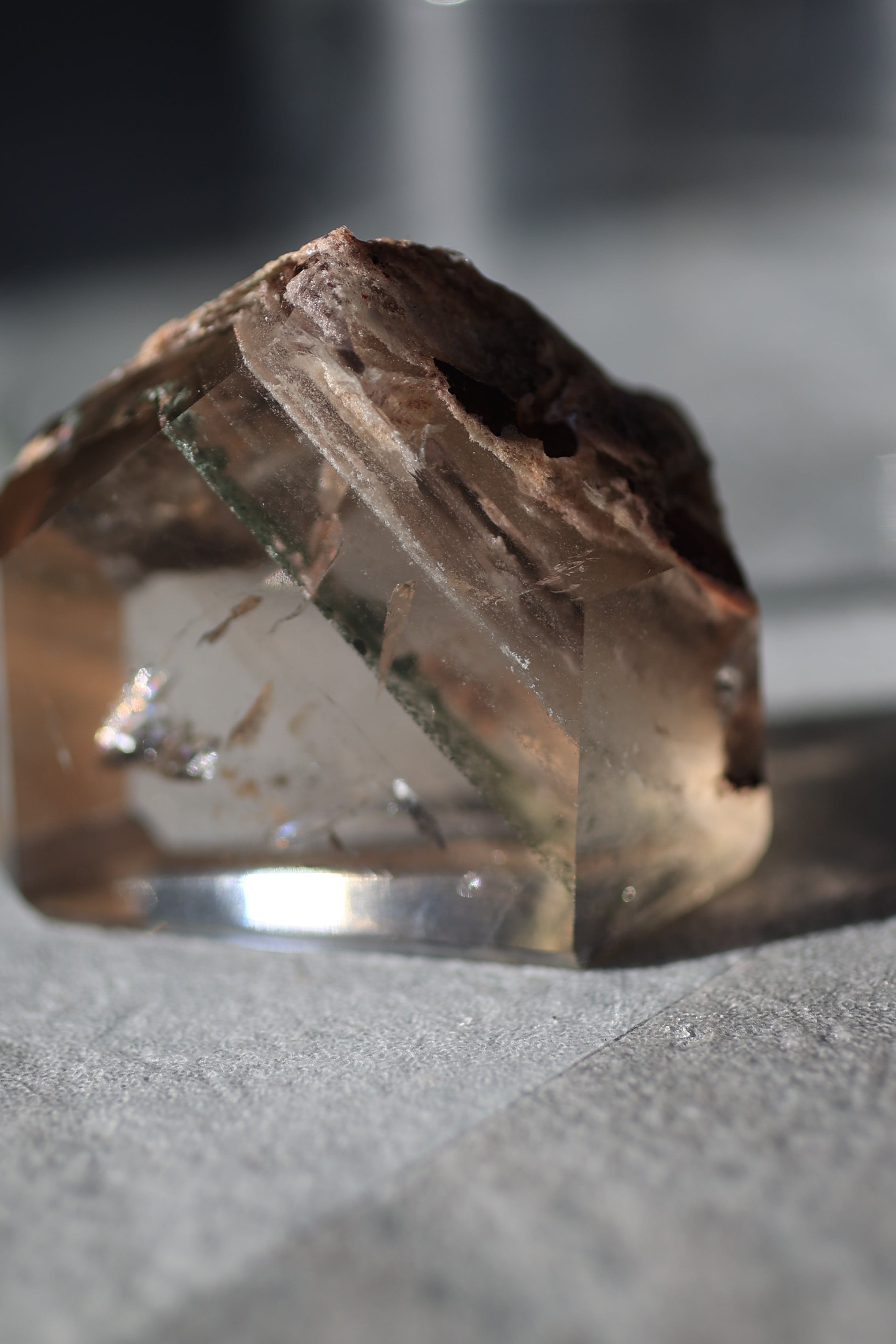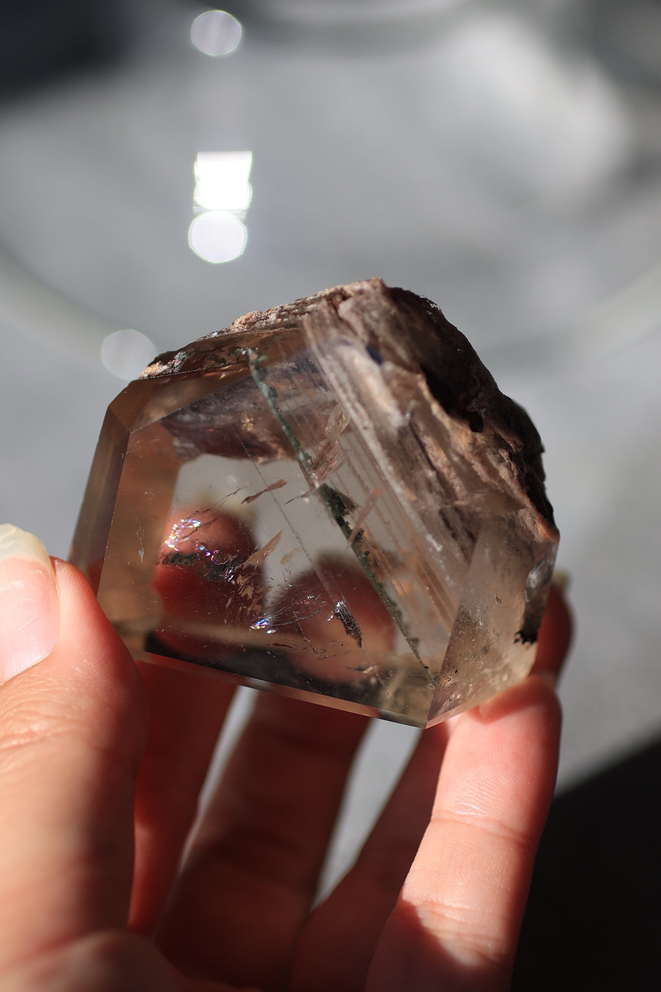 光が差し込むと内部の世界がふわりと浮かび上がり、水晶の中に「時間を閉じ込めた自然のアート」が姿を現します。