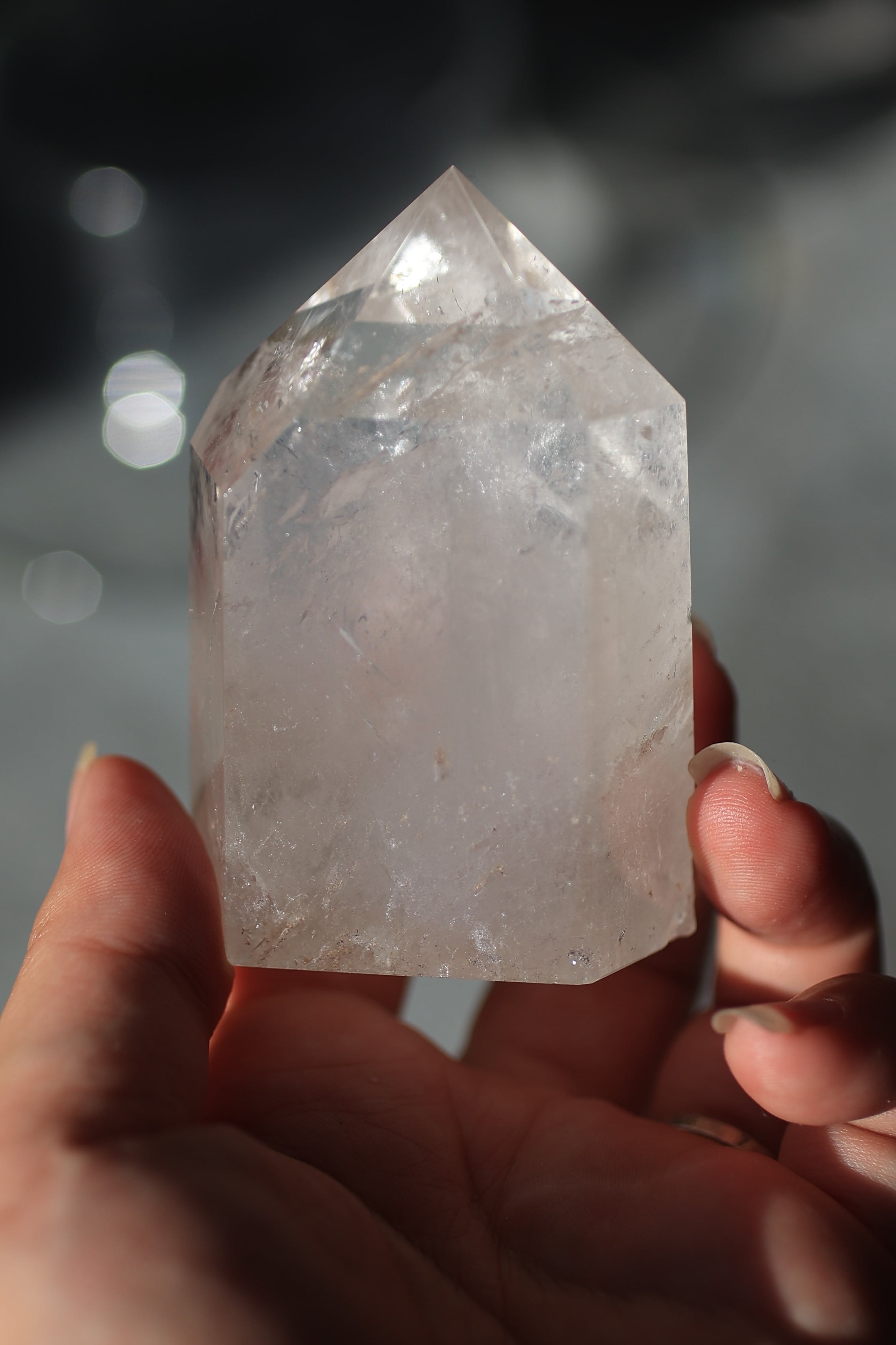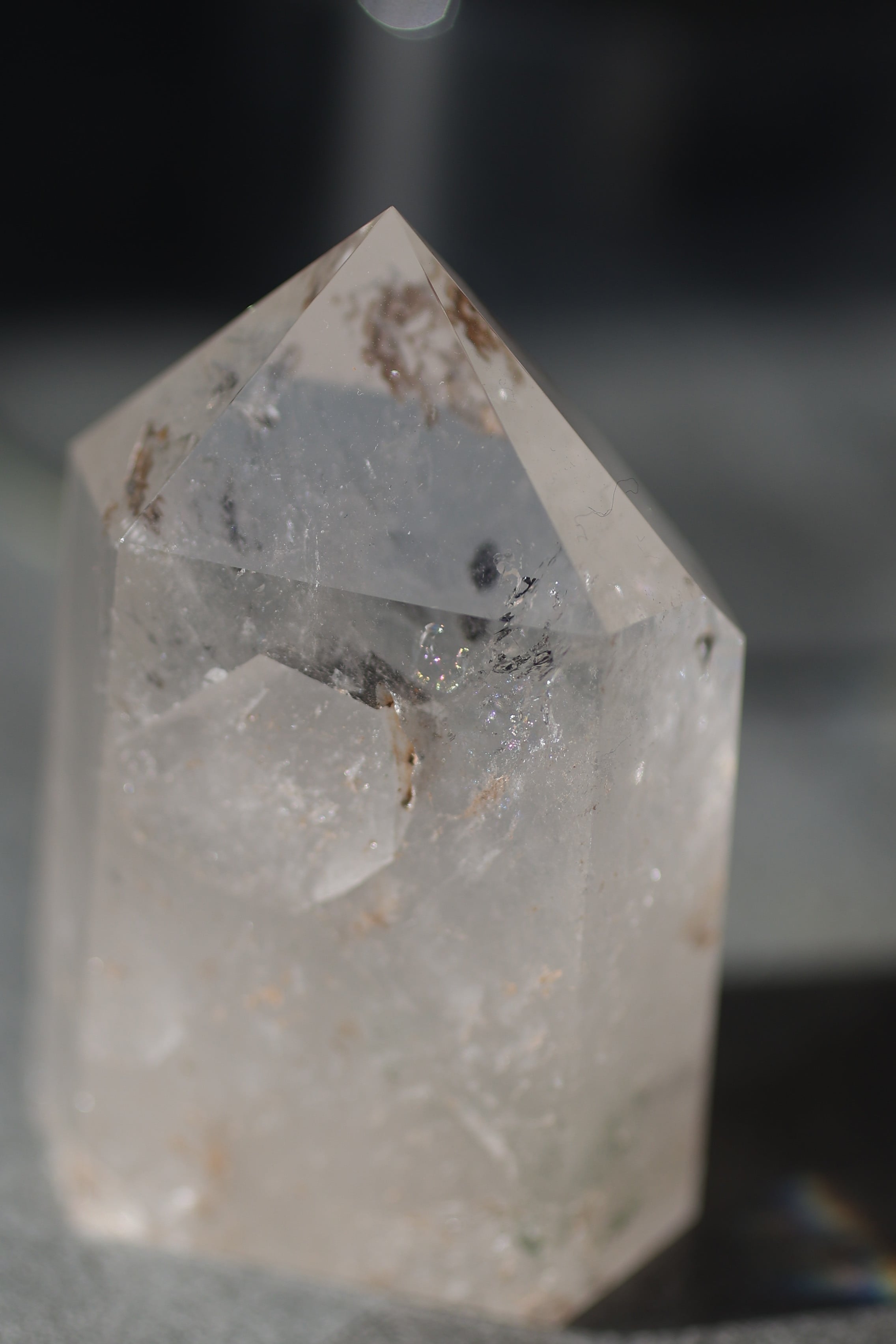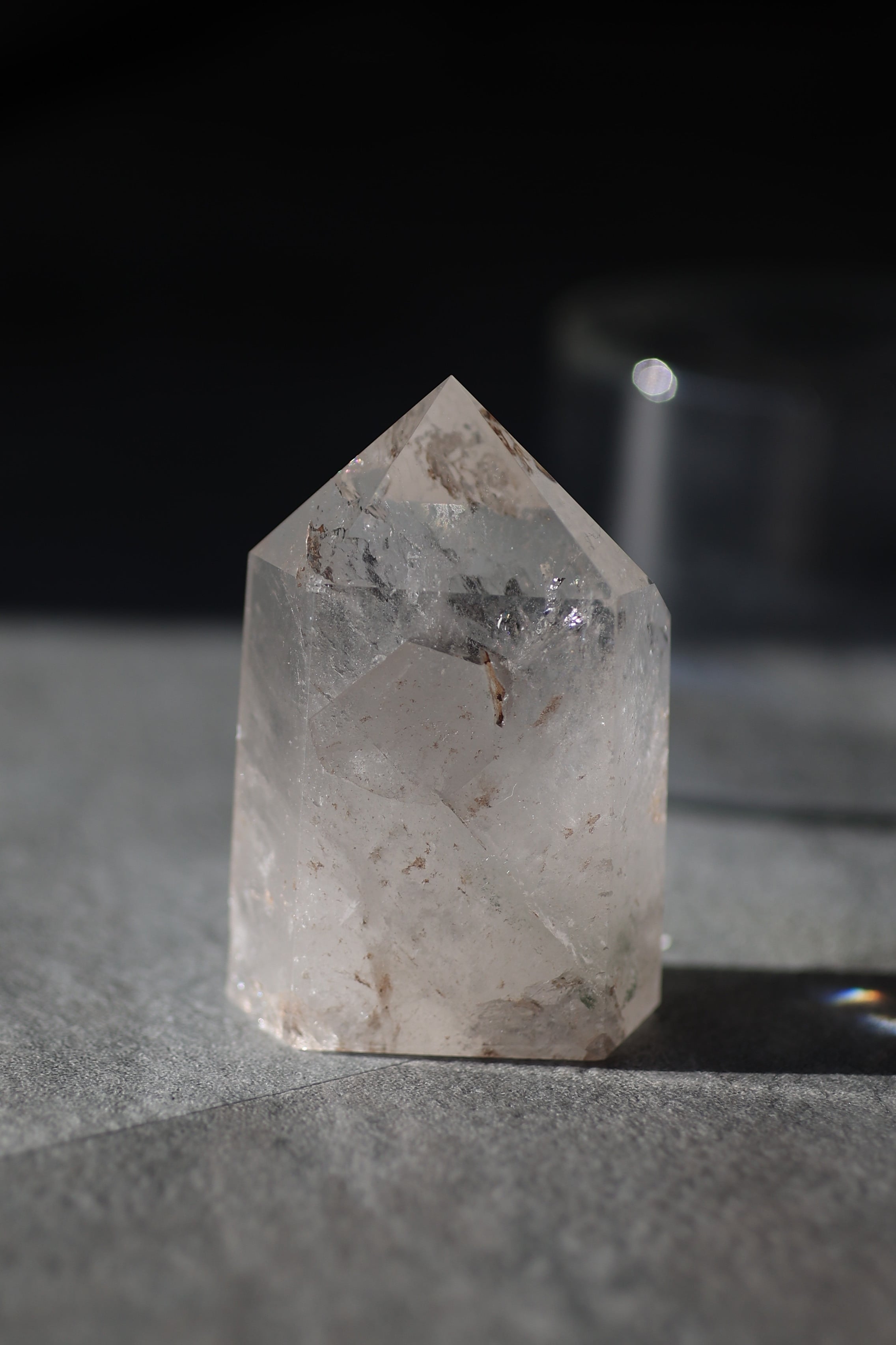 自然が育んだ水晶の内部構造やインクルージョンを活かしながら、丁寧に研磨され、凛とした立ち姿に仕上げられています。