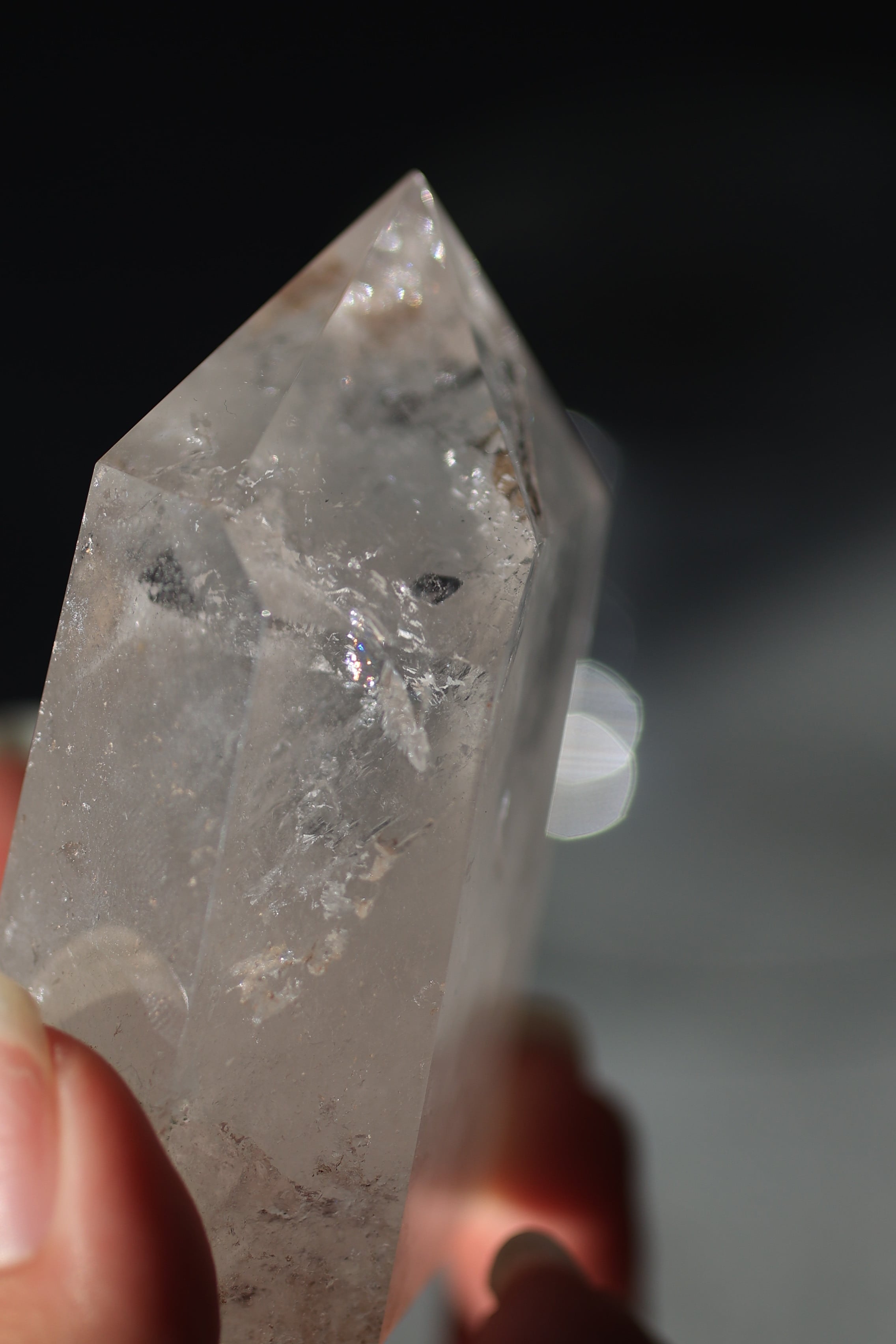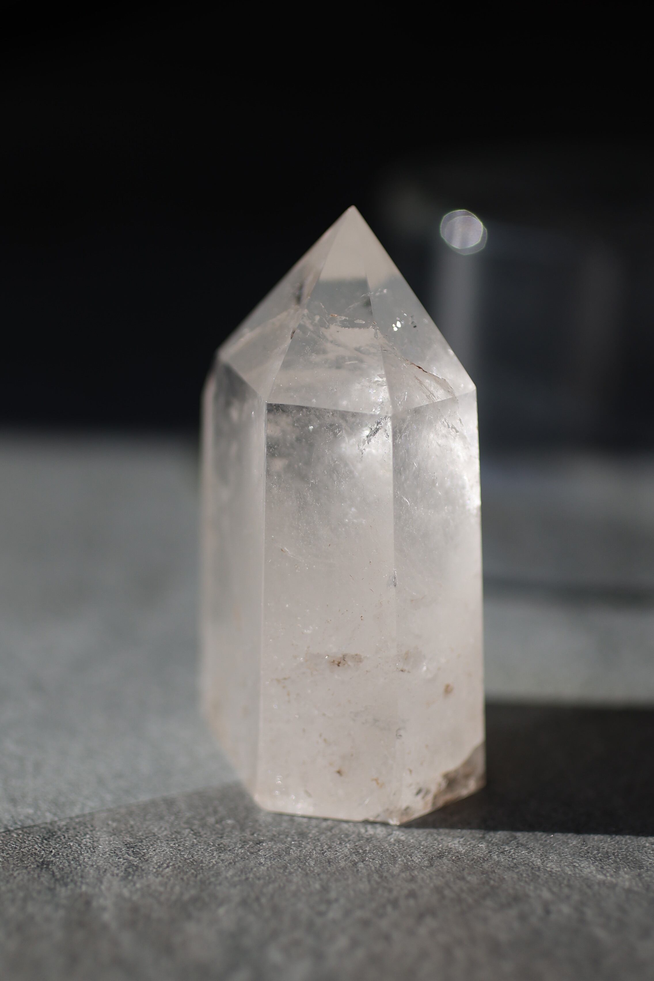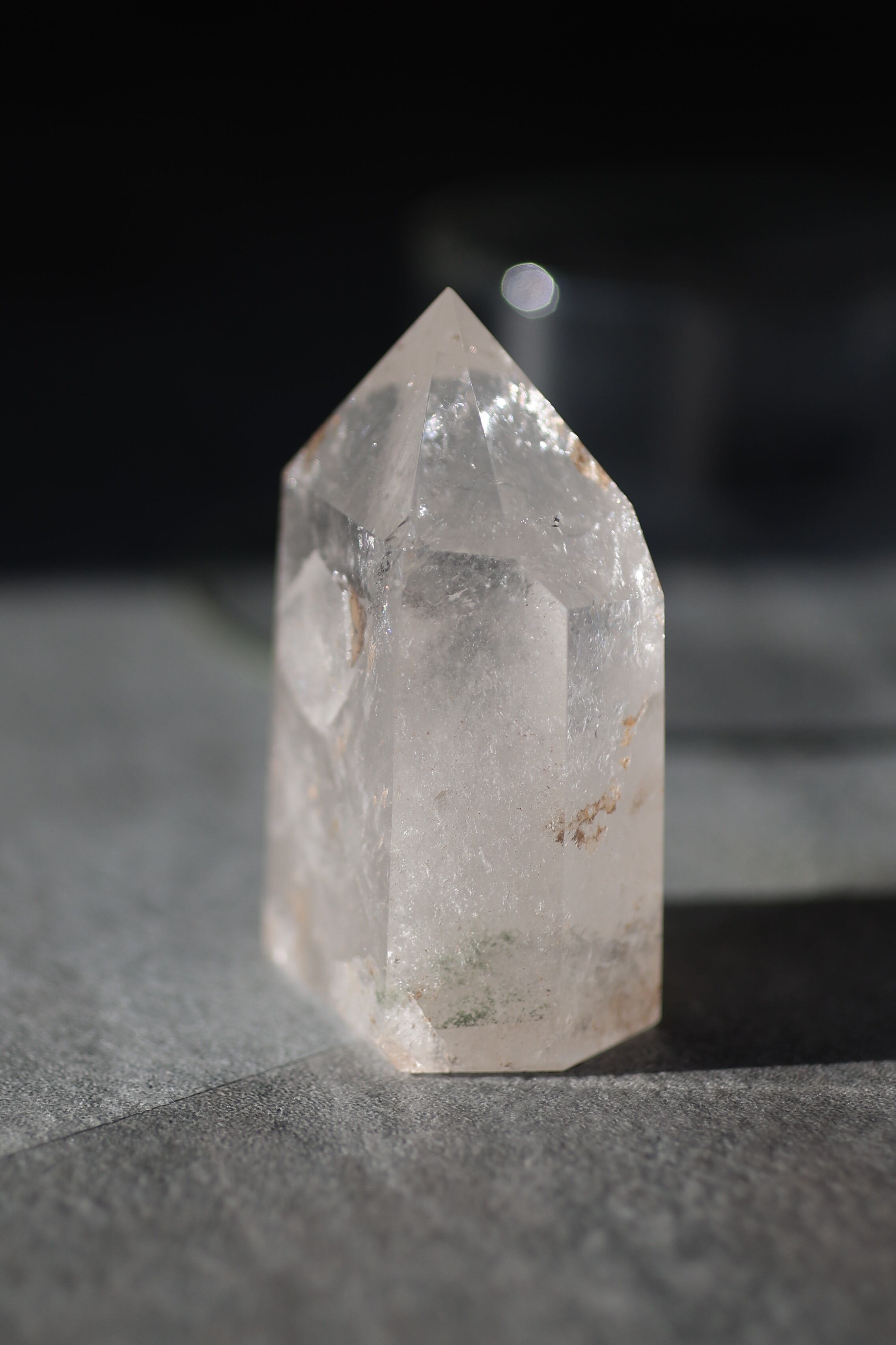 自然が育んだ水晶の内部構造やインクルージョンを活かしながら、丁寧に研磨され、凛とした立ち姿に仕上げられています。