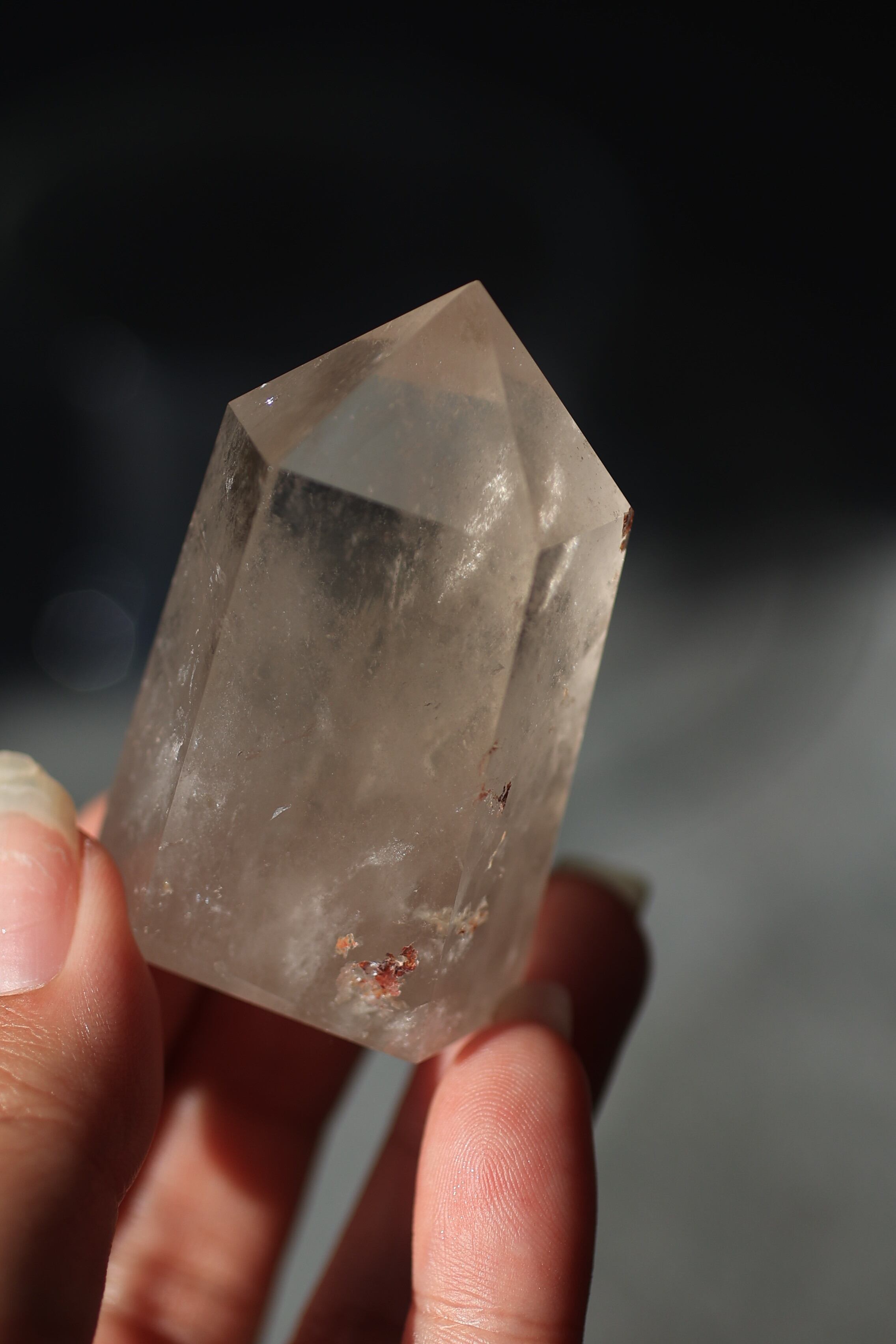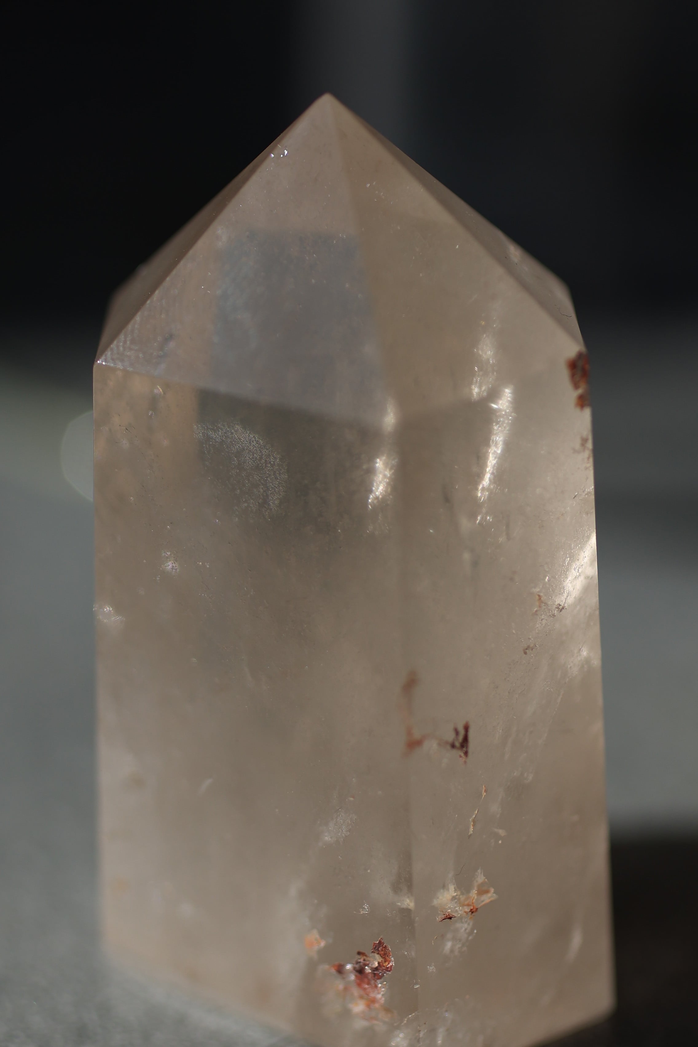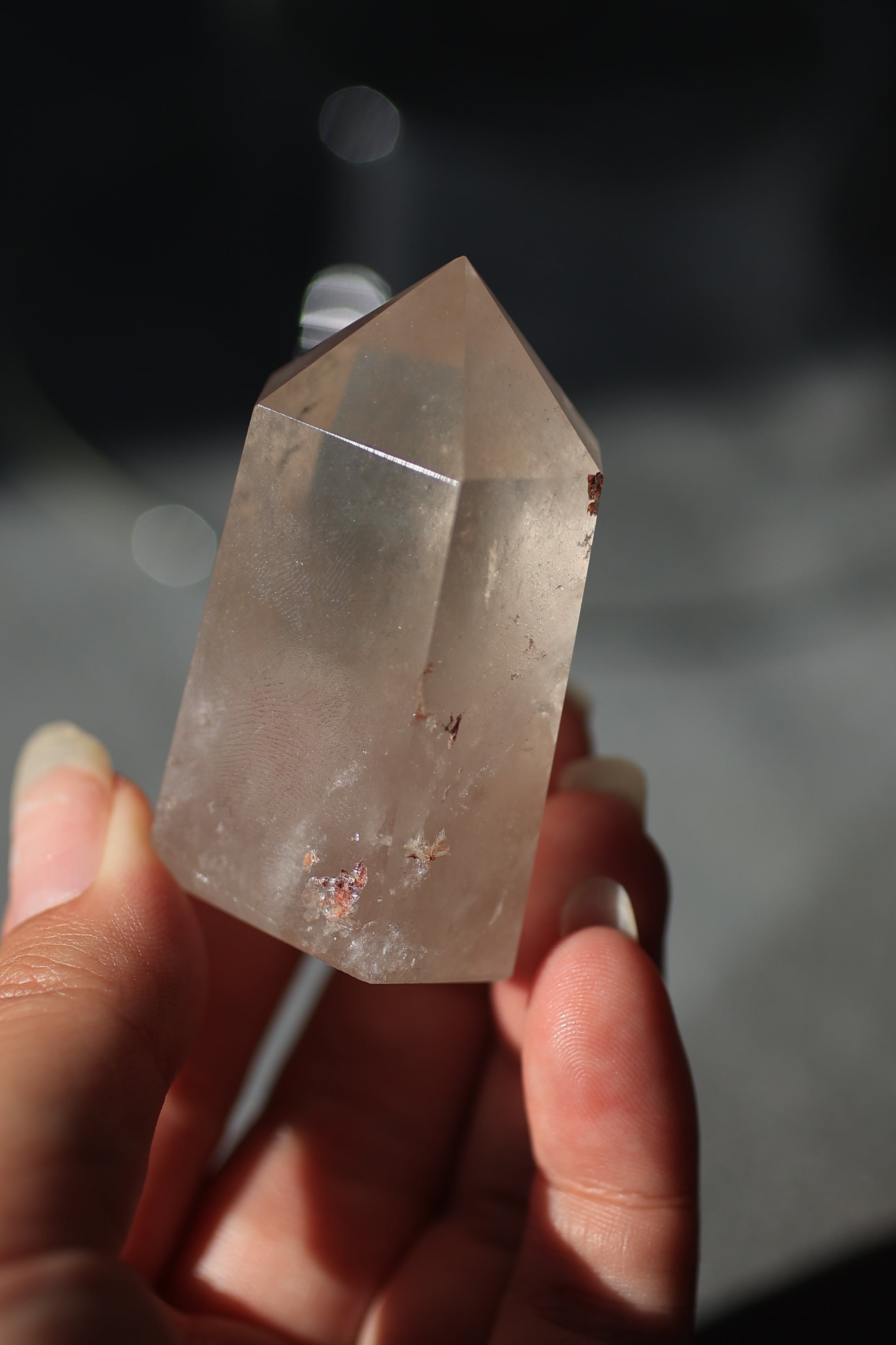 自然が育んだ水晶の内部構造やインクルージョンを活かしながら、丁寧に研磨され、凛とした立ち姿に仕上げられています。