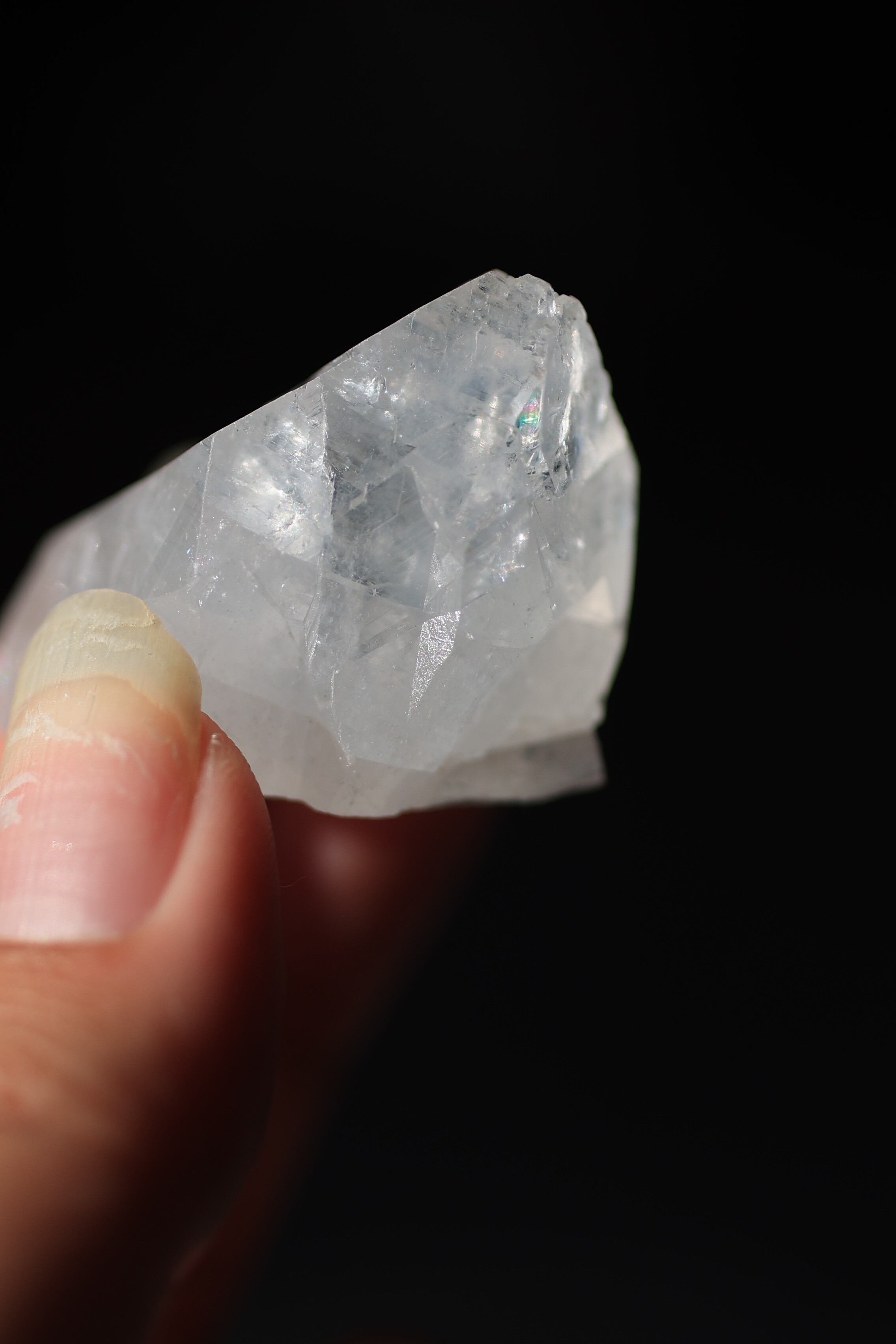 名前のとおり、ダイヤモンドのように光を反射するアポフィライトは、見る角度や光の入り方によって、きらりと表情を変えます。