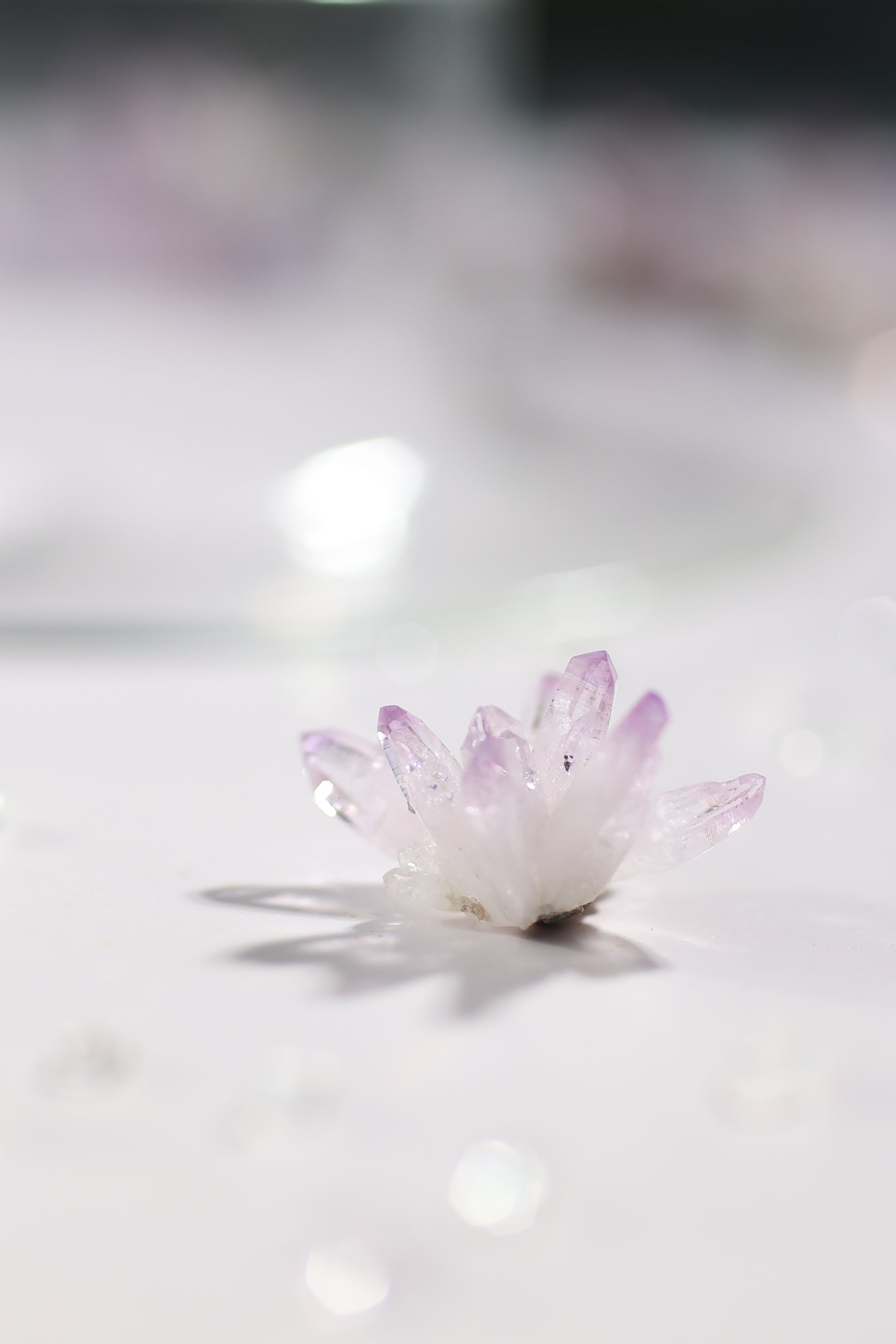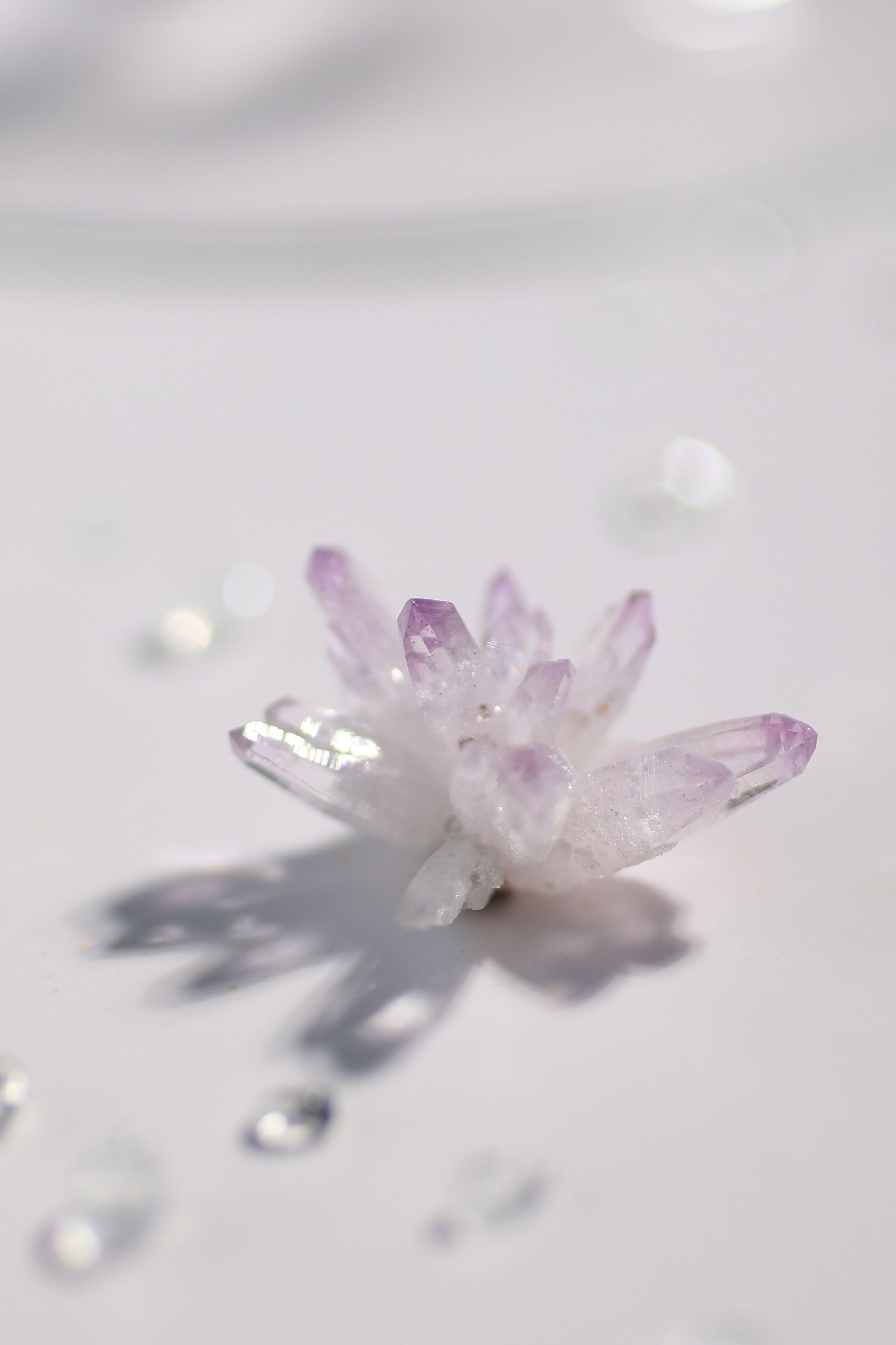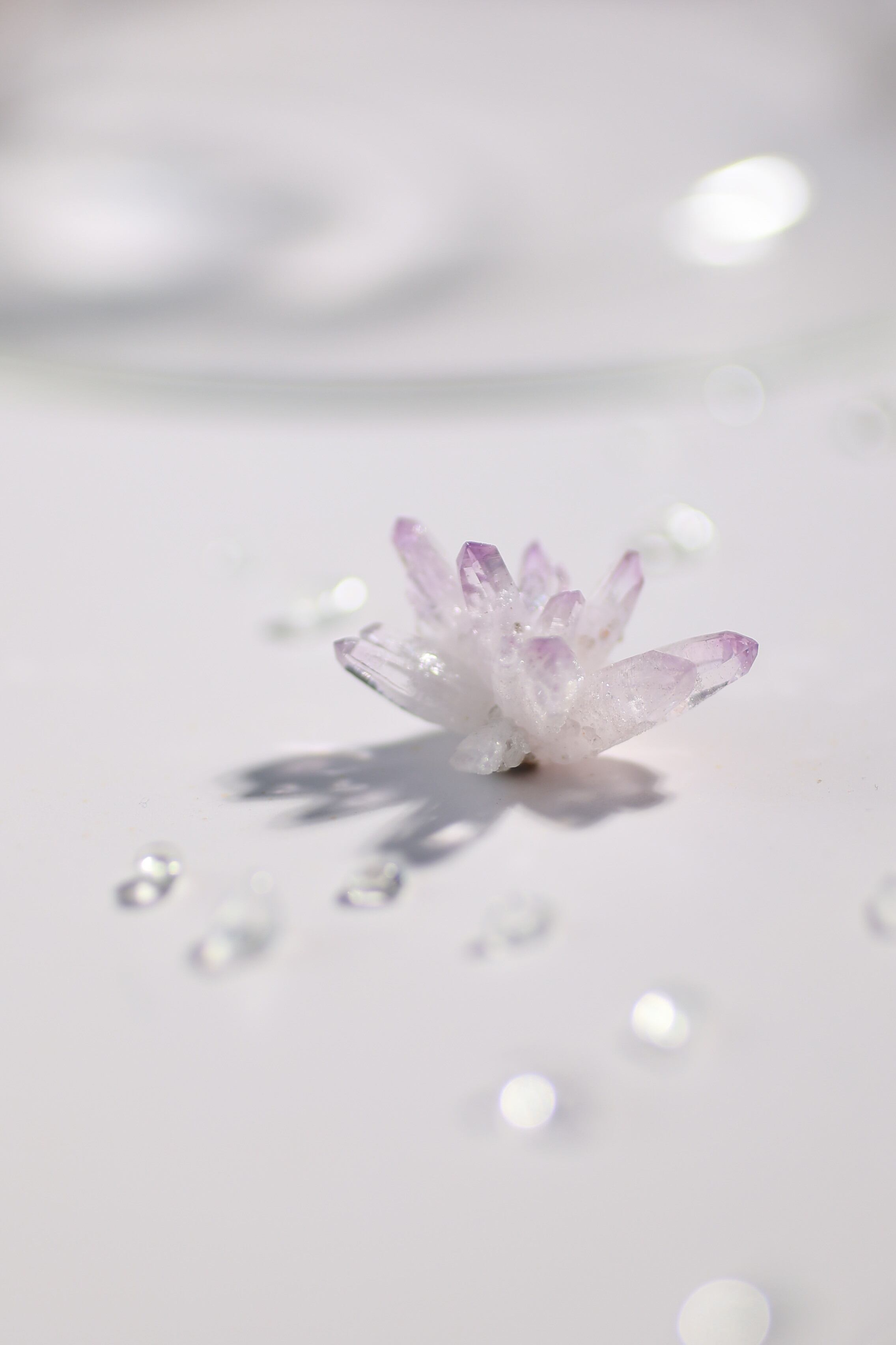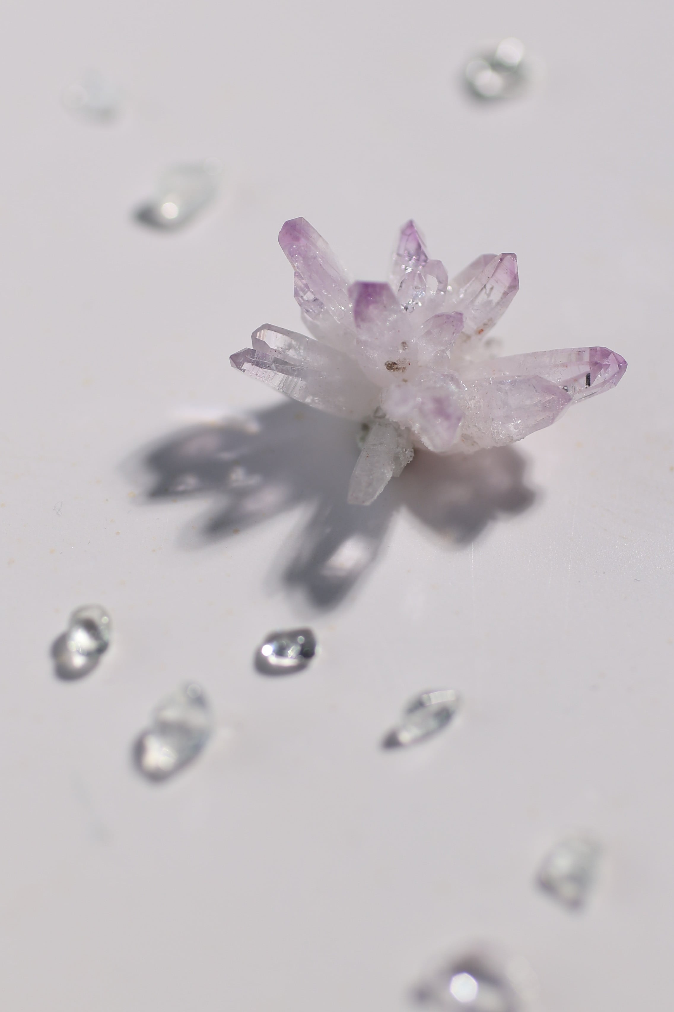 透明度が非常に高く、結晶は細くすらりと伸び、軽やかな印象を与えます。