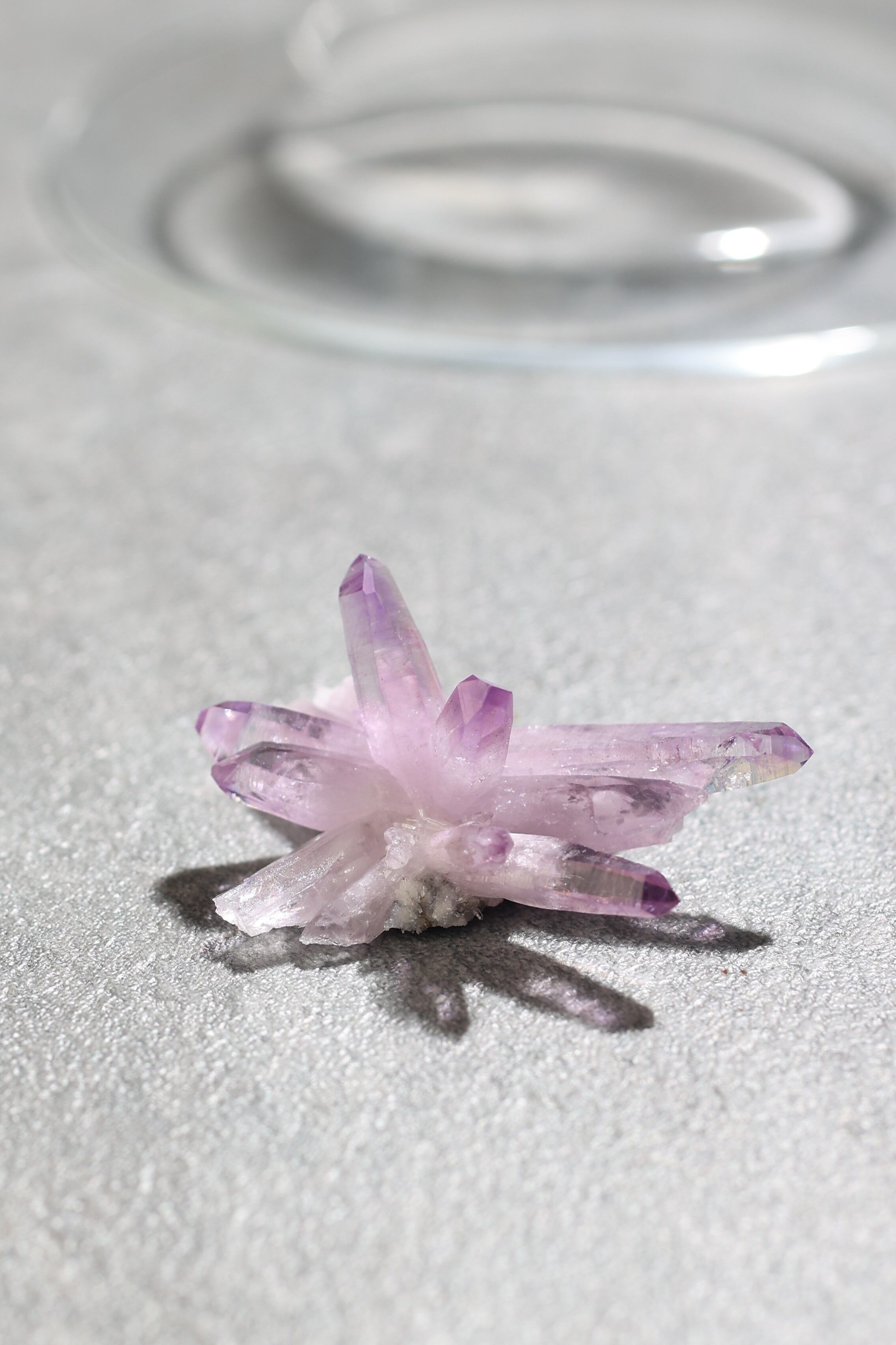 透明度が非常に高く、結晶は細くすらりと伸び、軽やかな印象を与えます。