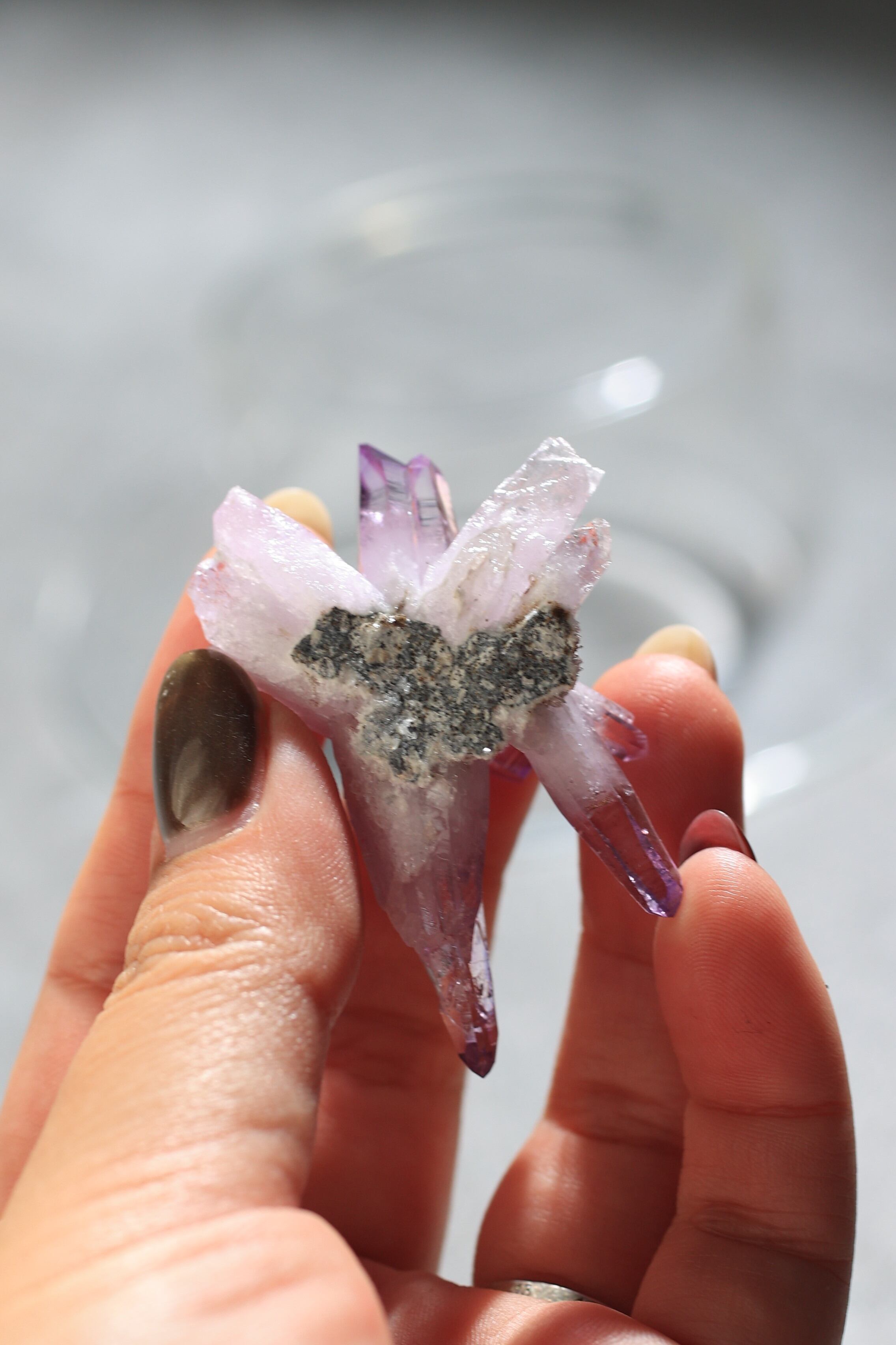 同じアメジストでも、ブラジル産の濃い紫とは一線を画す、