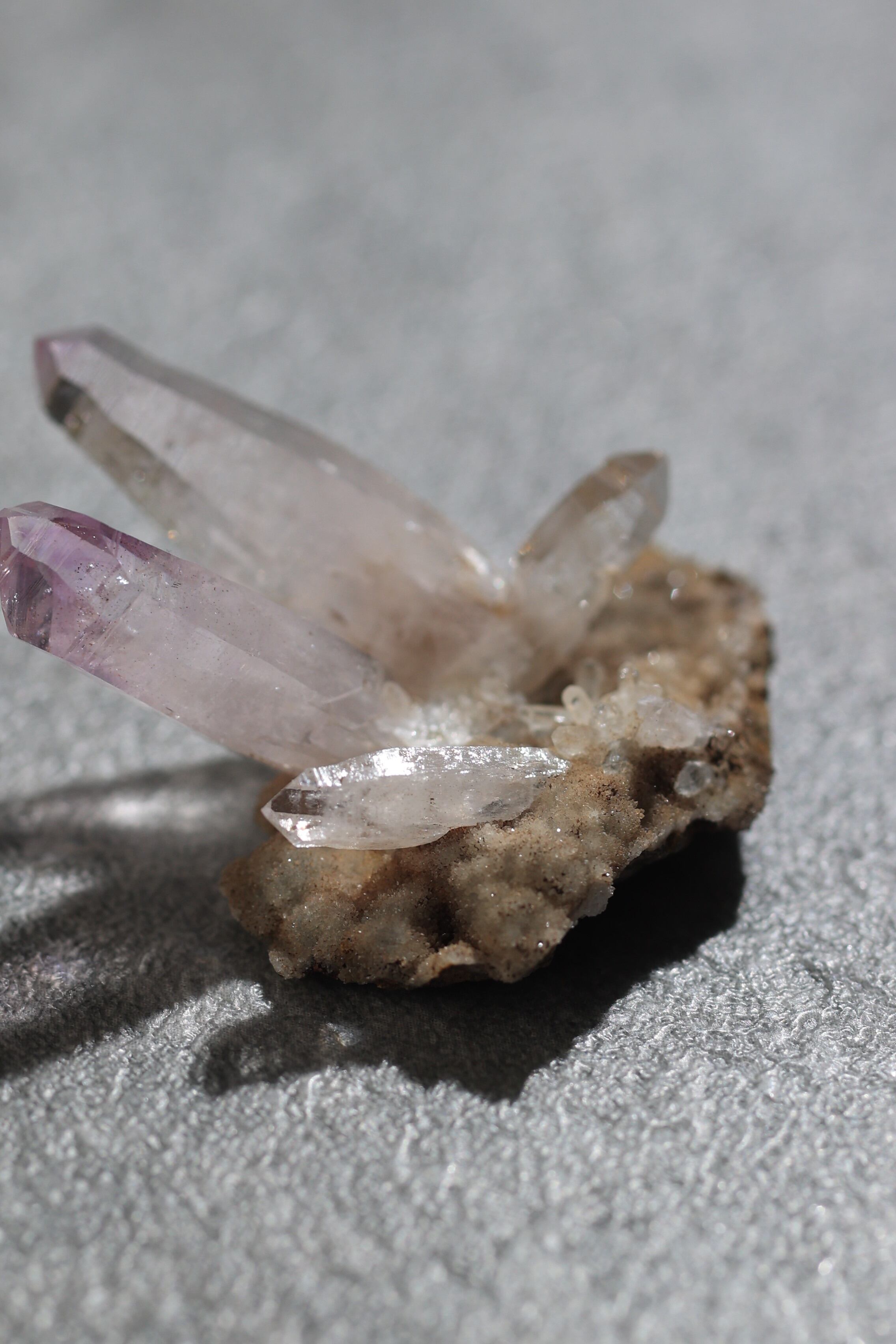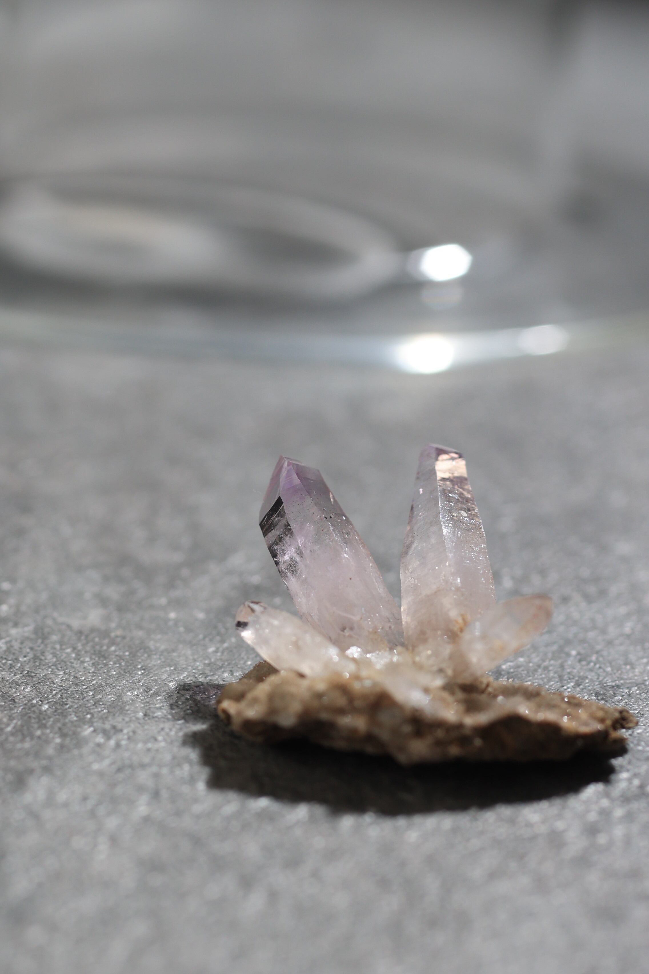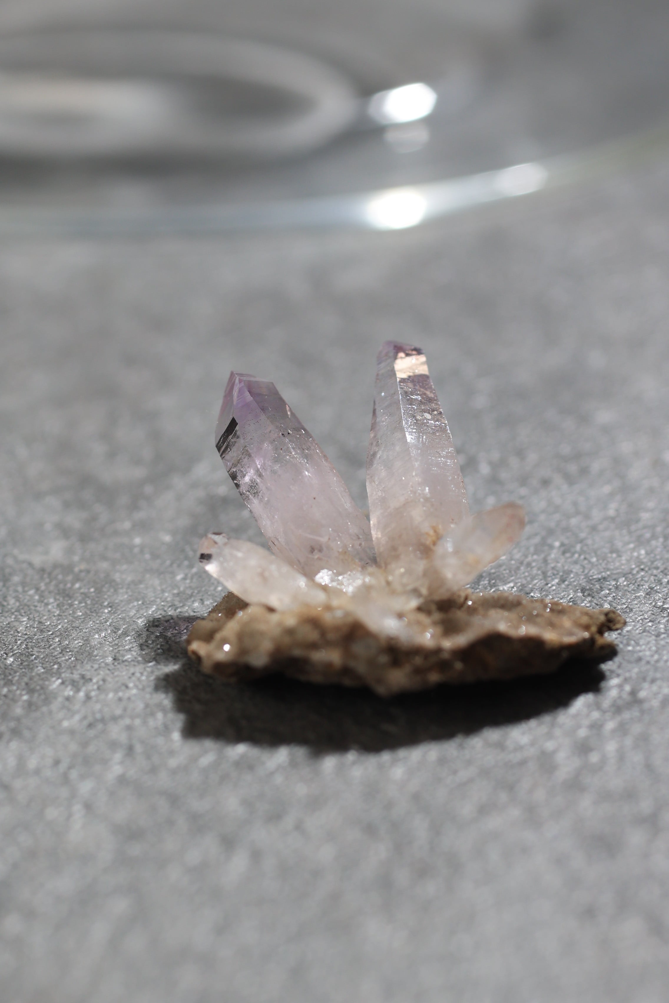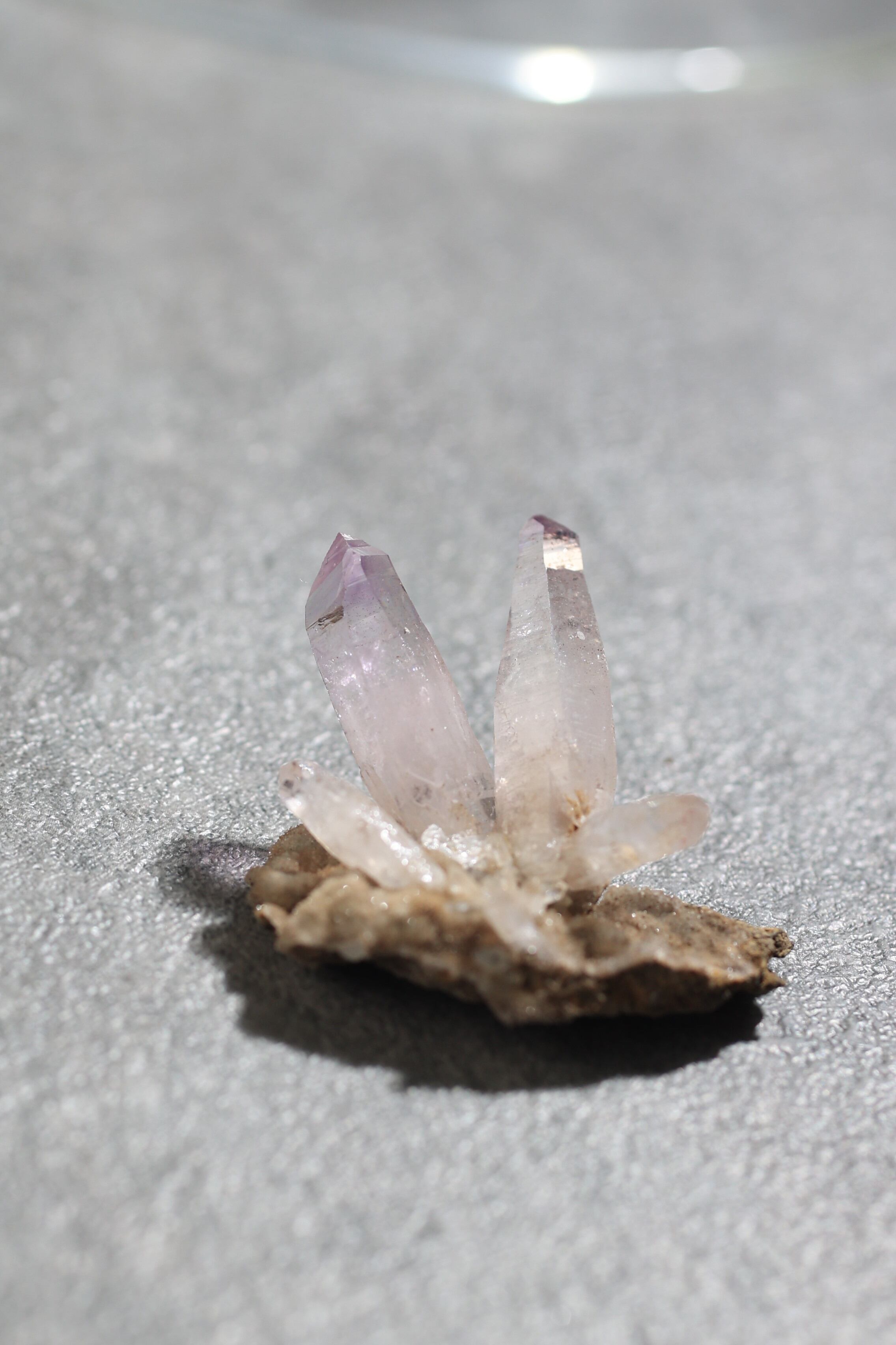 透明度が非常に高く、結晶は細くすらりと伸び、軽やかな印象を与えます。