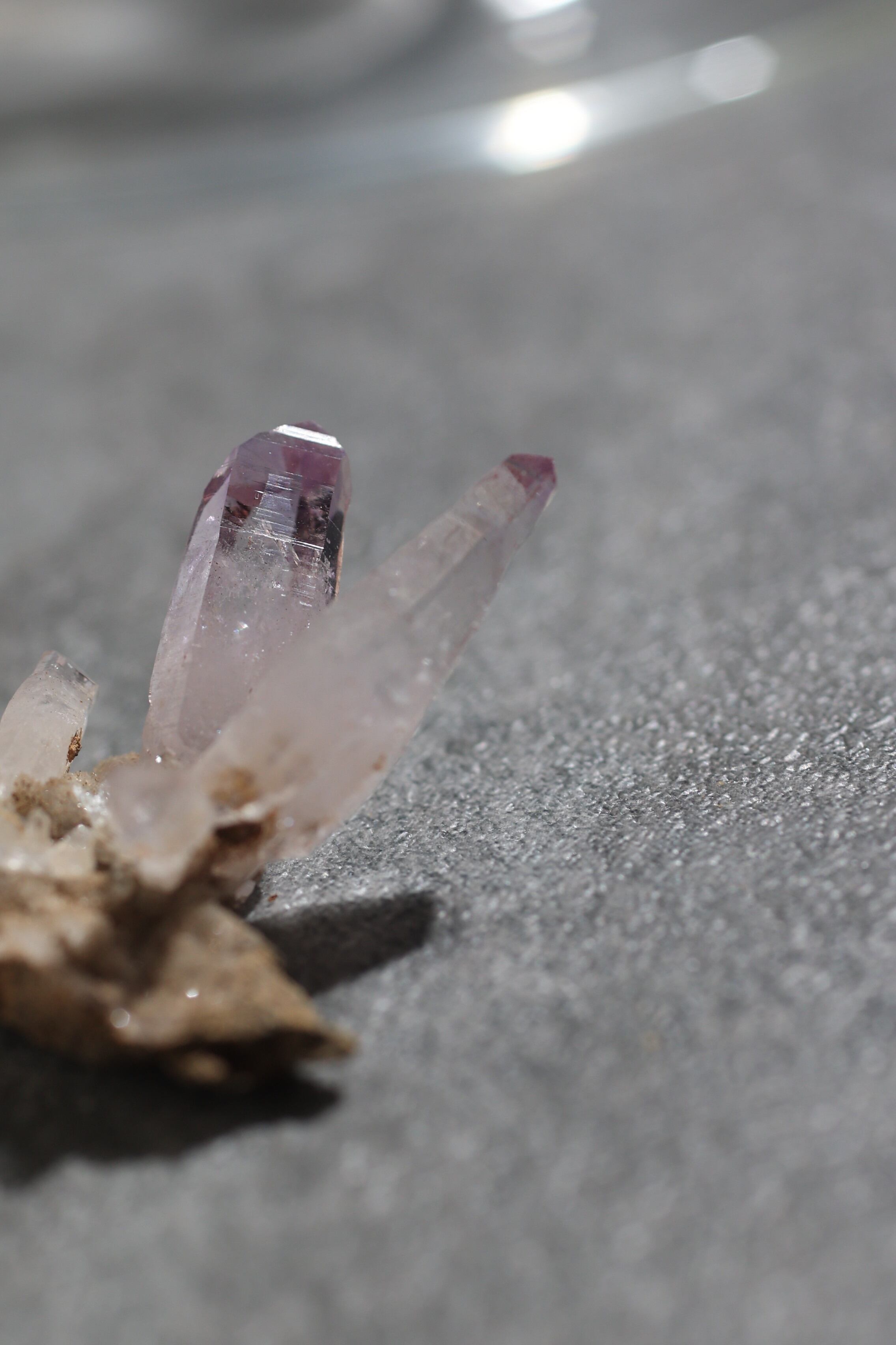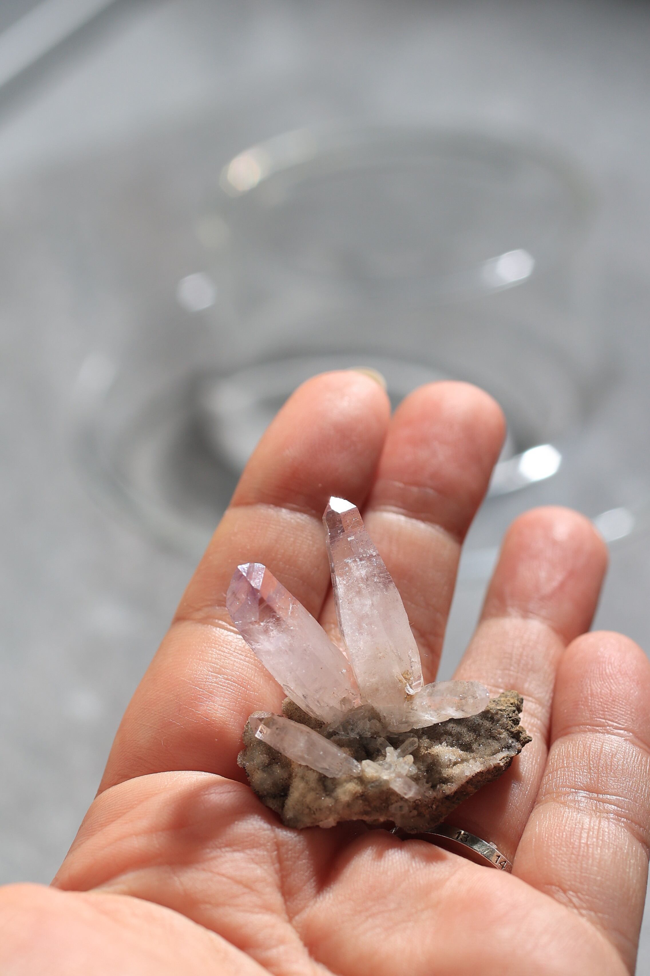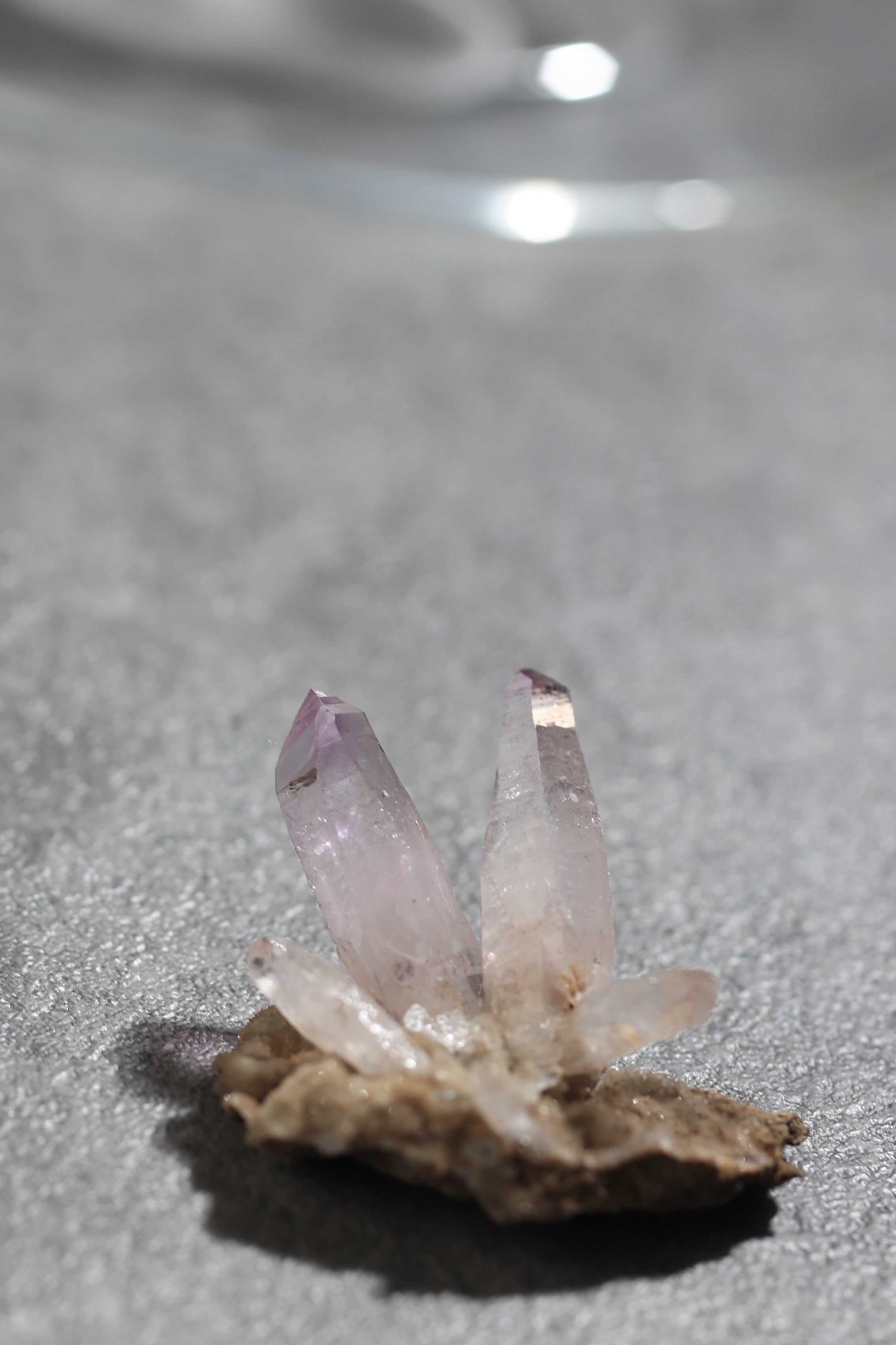 透明度が非常に高く、結晶は細くすらりと伸び、軽やかな印象を与えます。