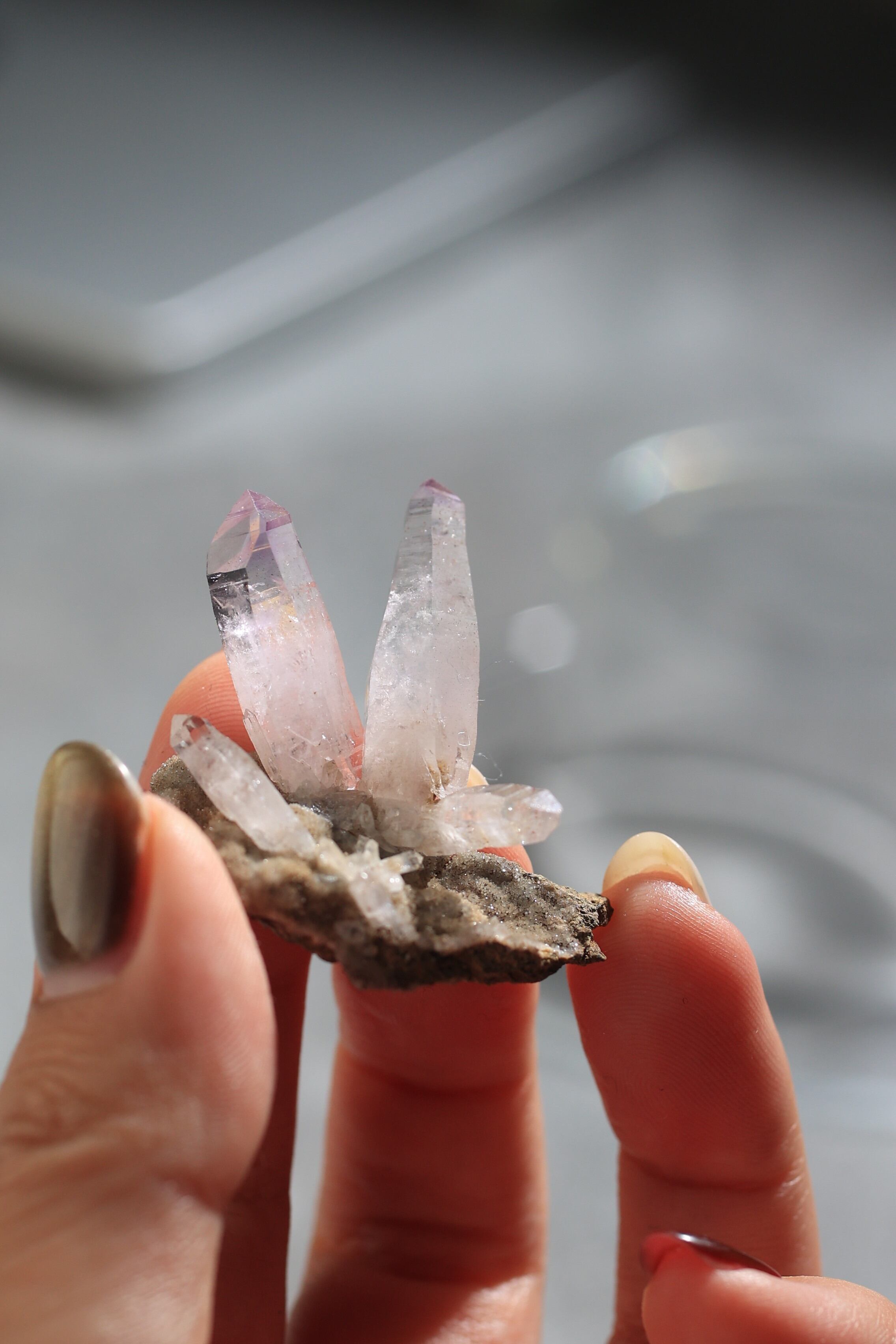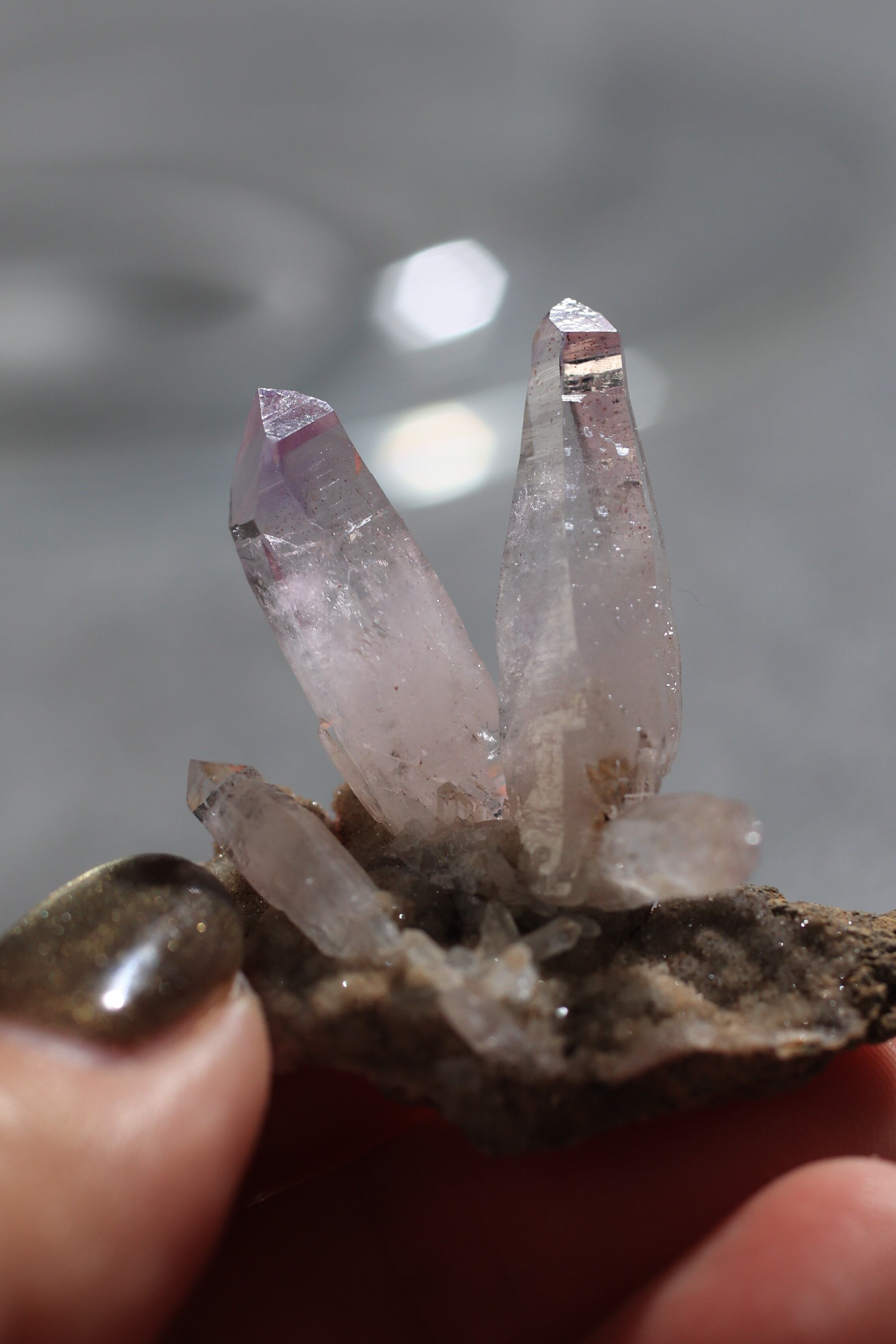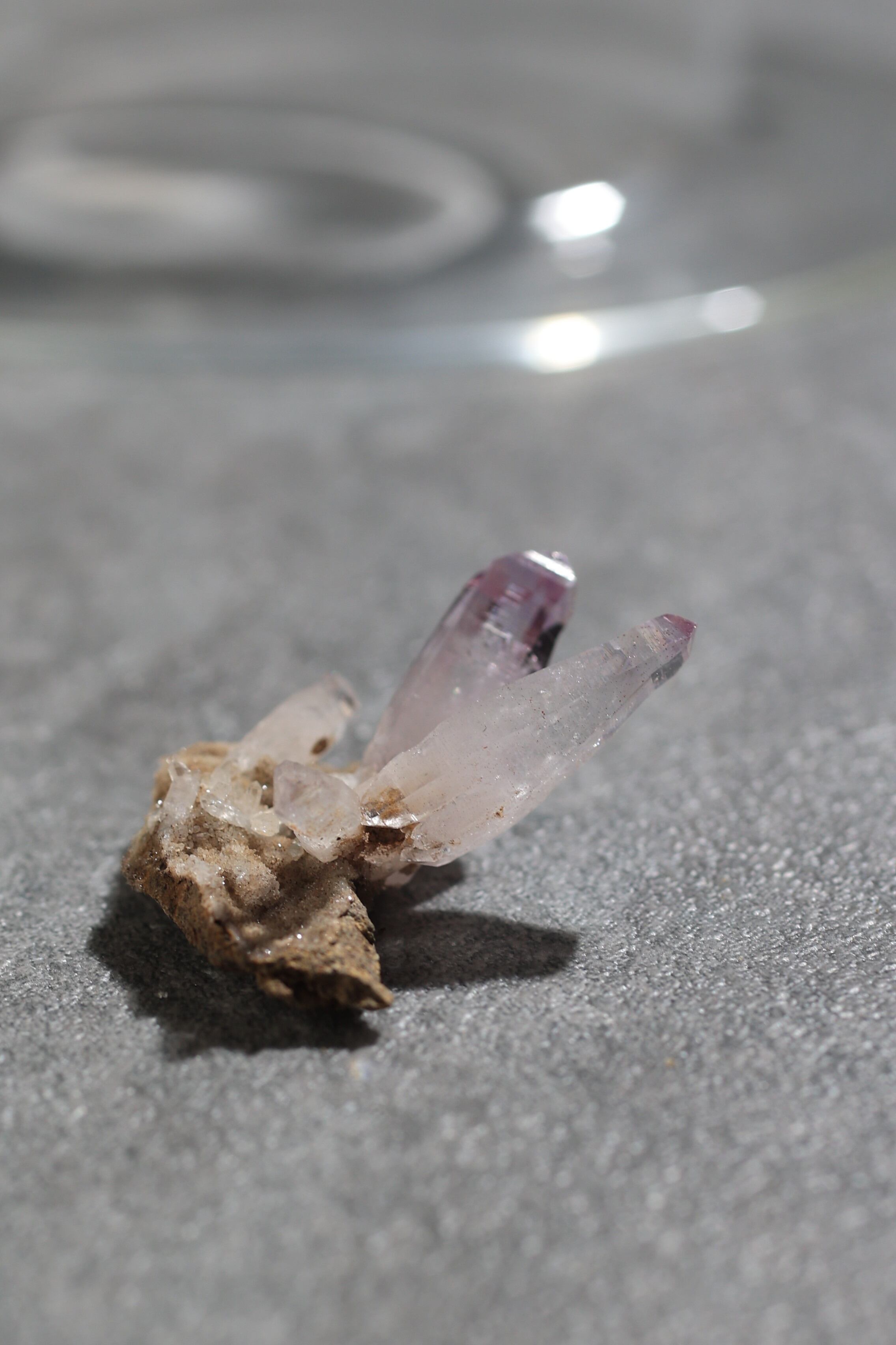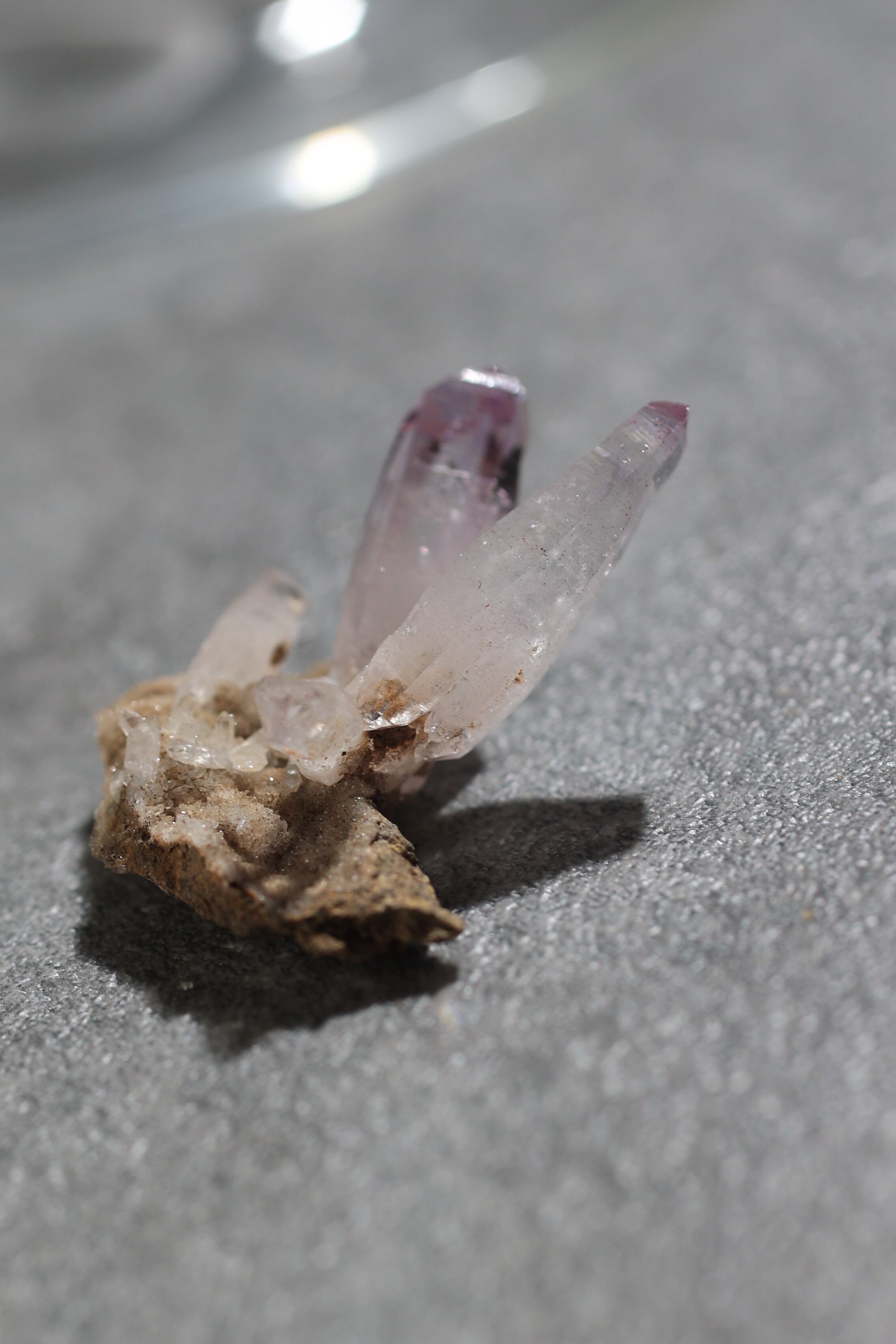 透明度が非常に高く、結晶は細くすらりと伸び、軽やかな印象を与えます。