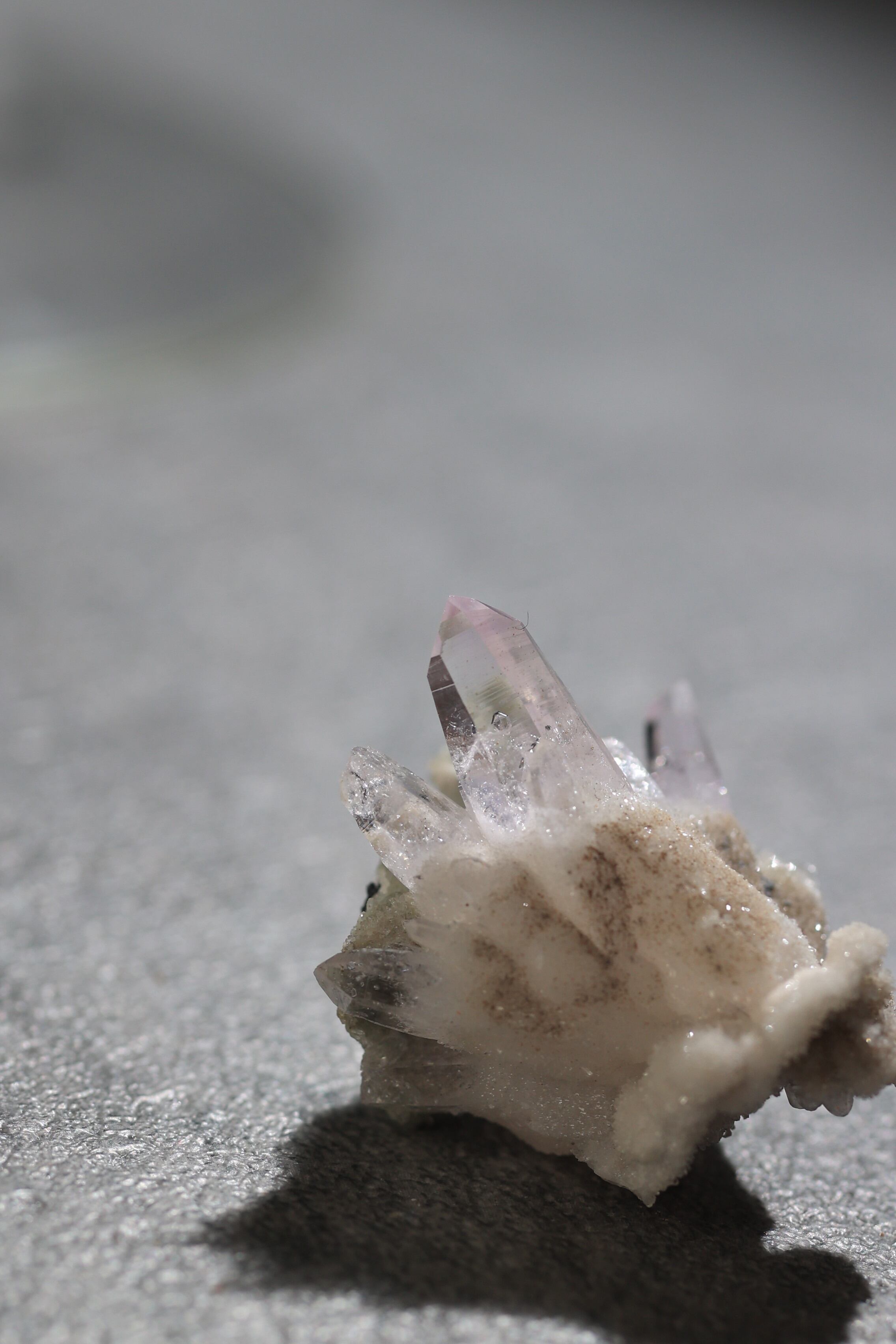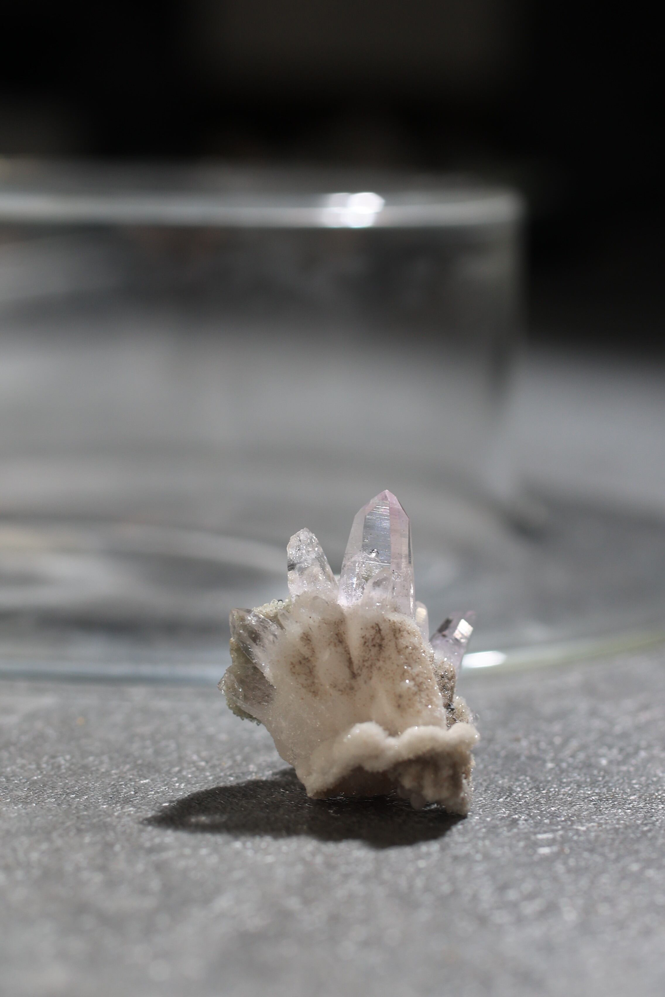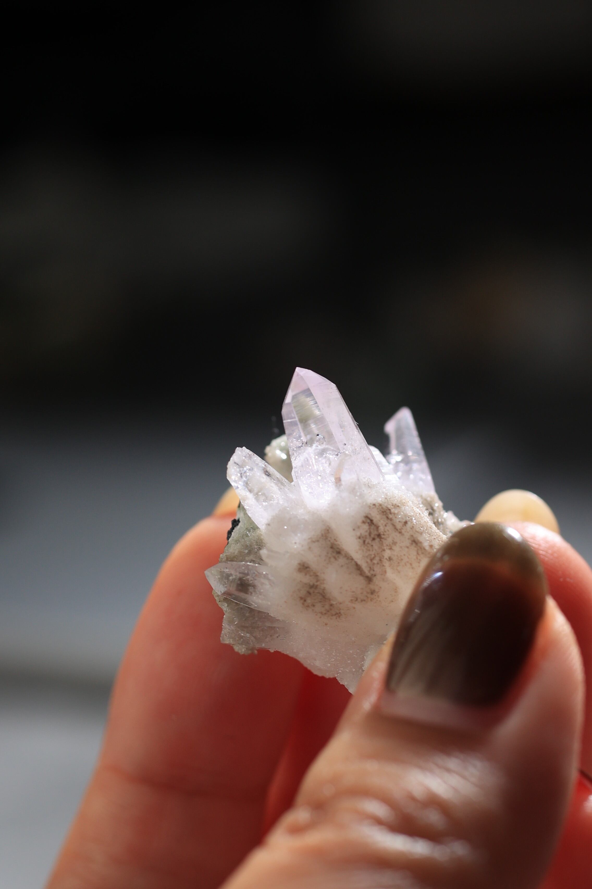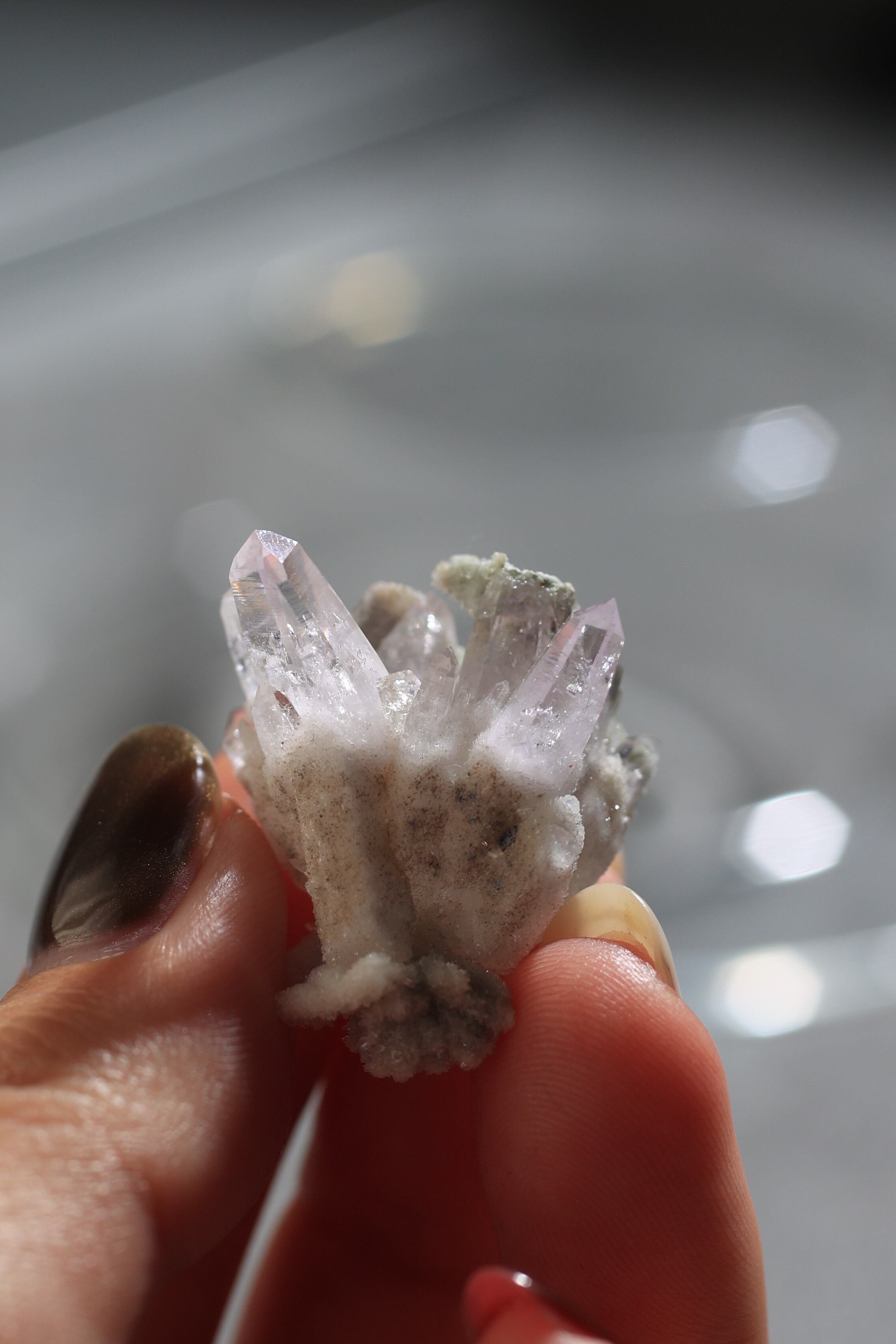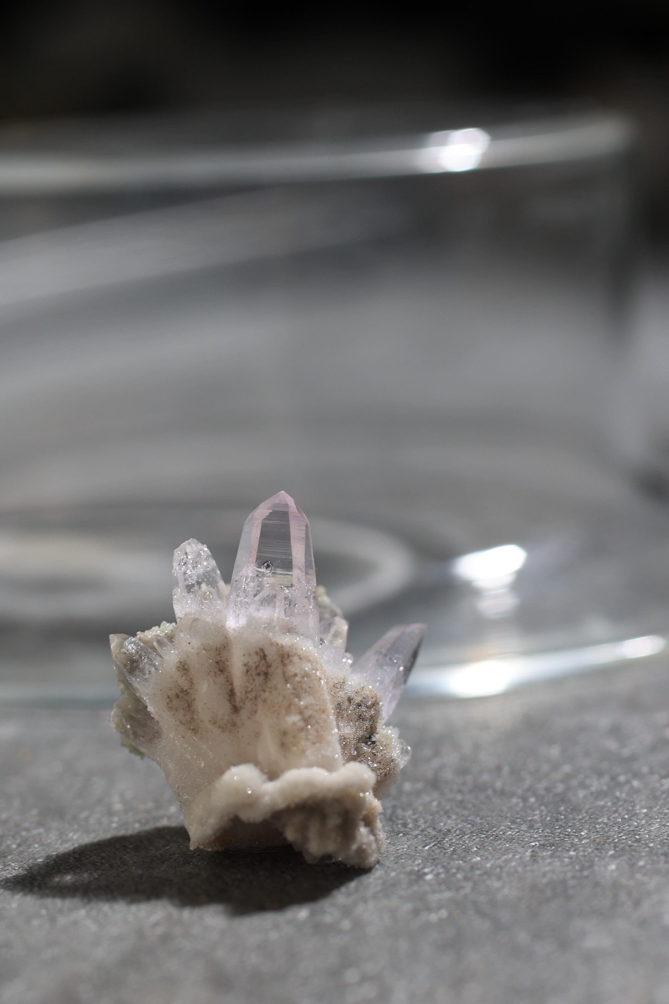 透明度が非常に高く、結晶は細くすらりと伸び、軽やかな印象を与えます。