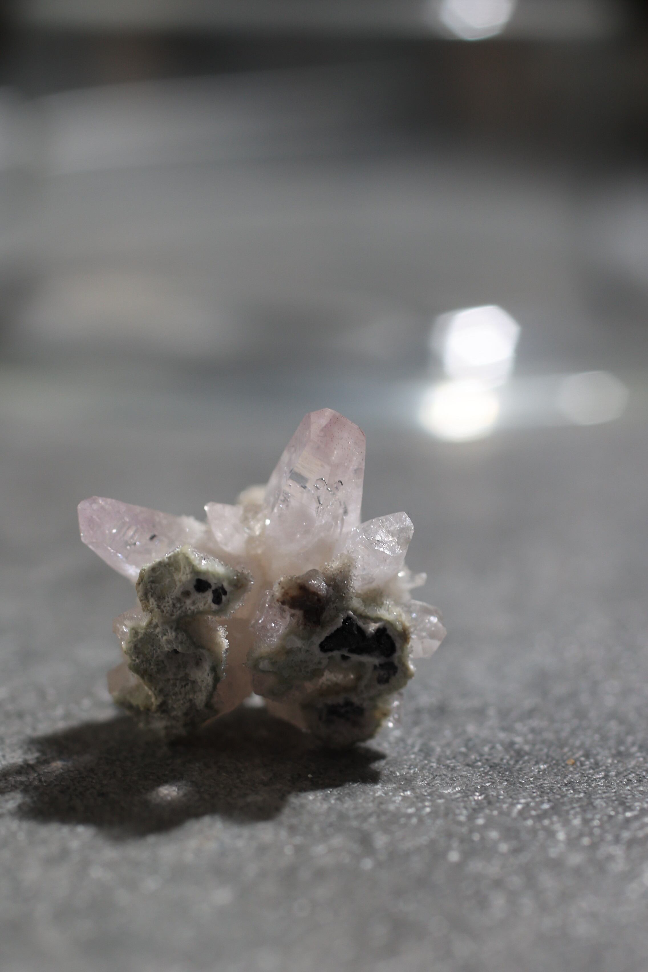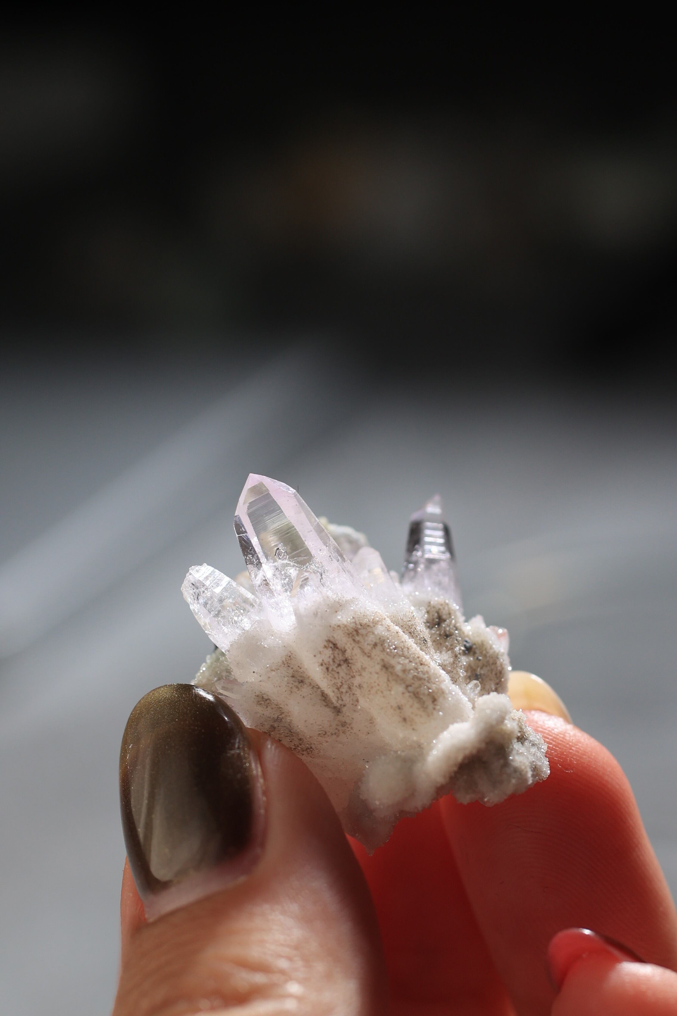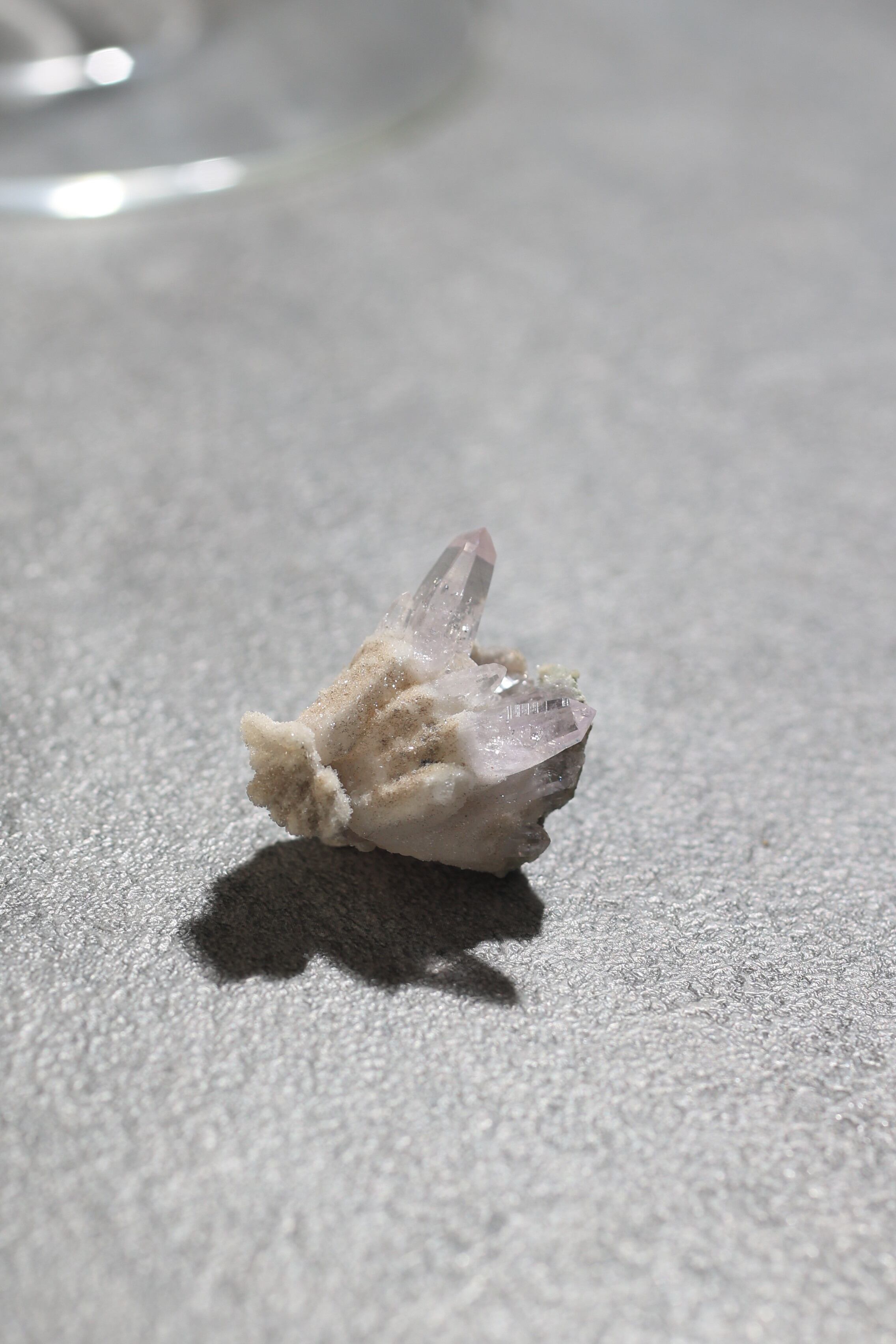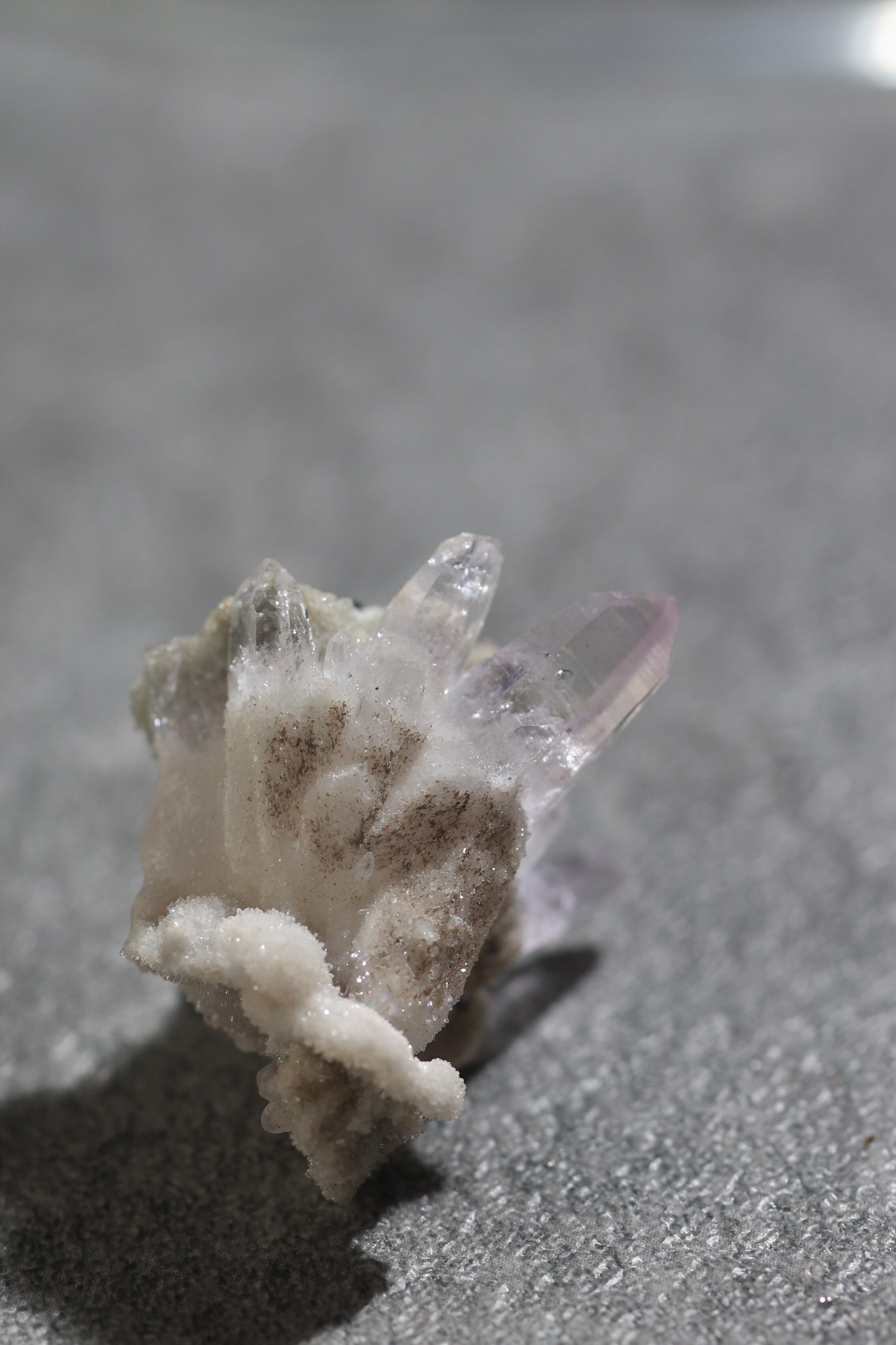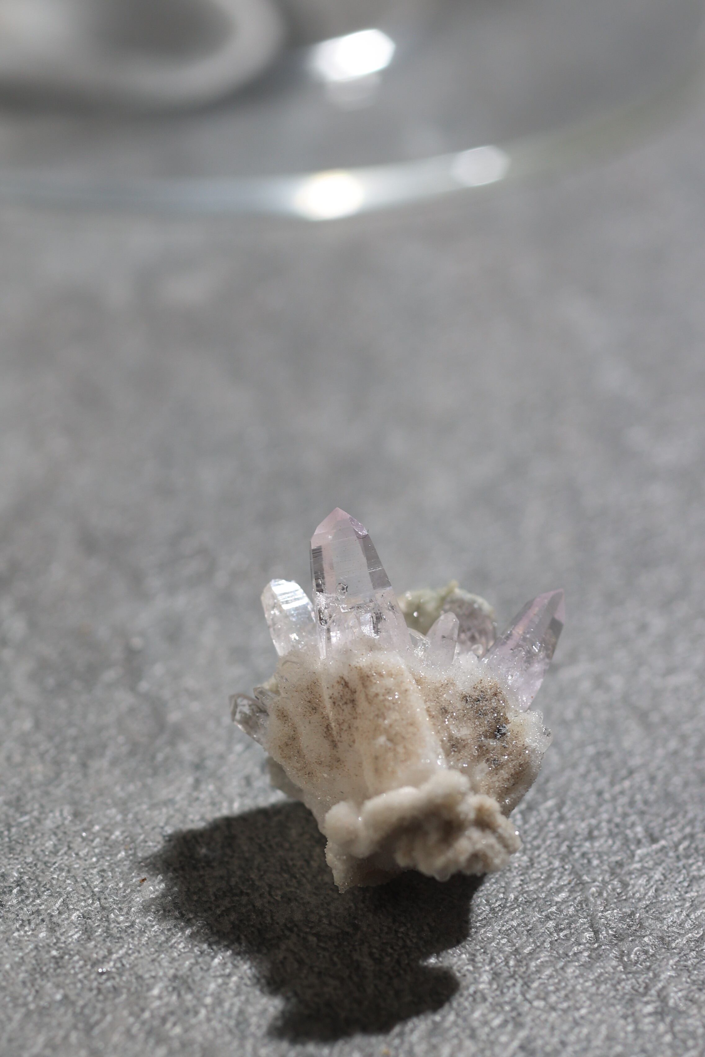 透明度が非常に高く、結晶は細くすらりと伸び、軽やかな印象を与えます。