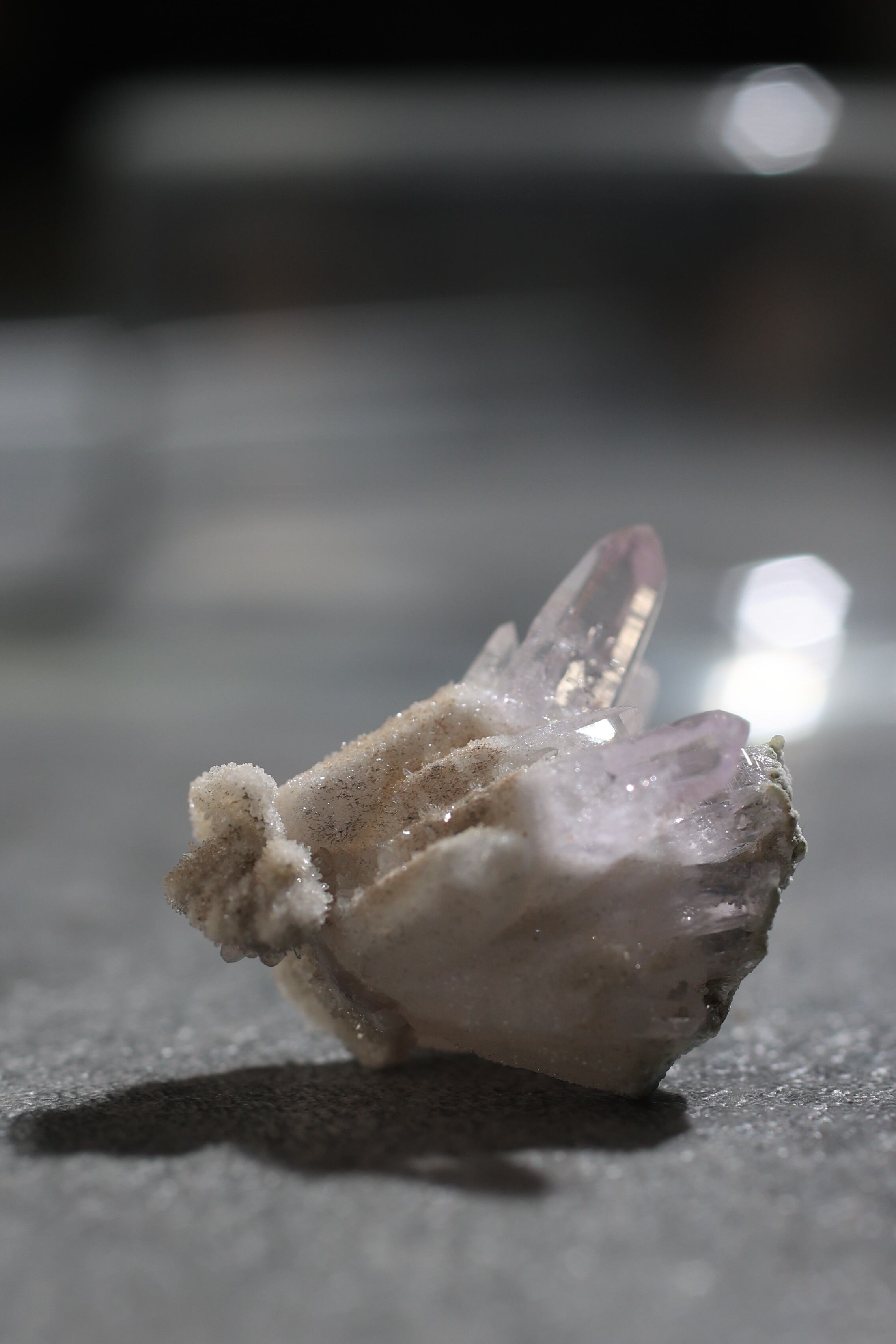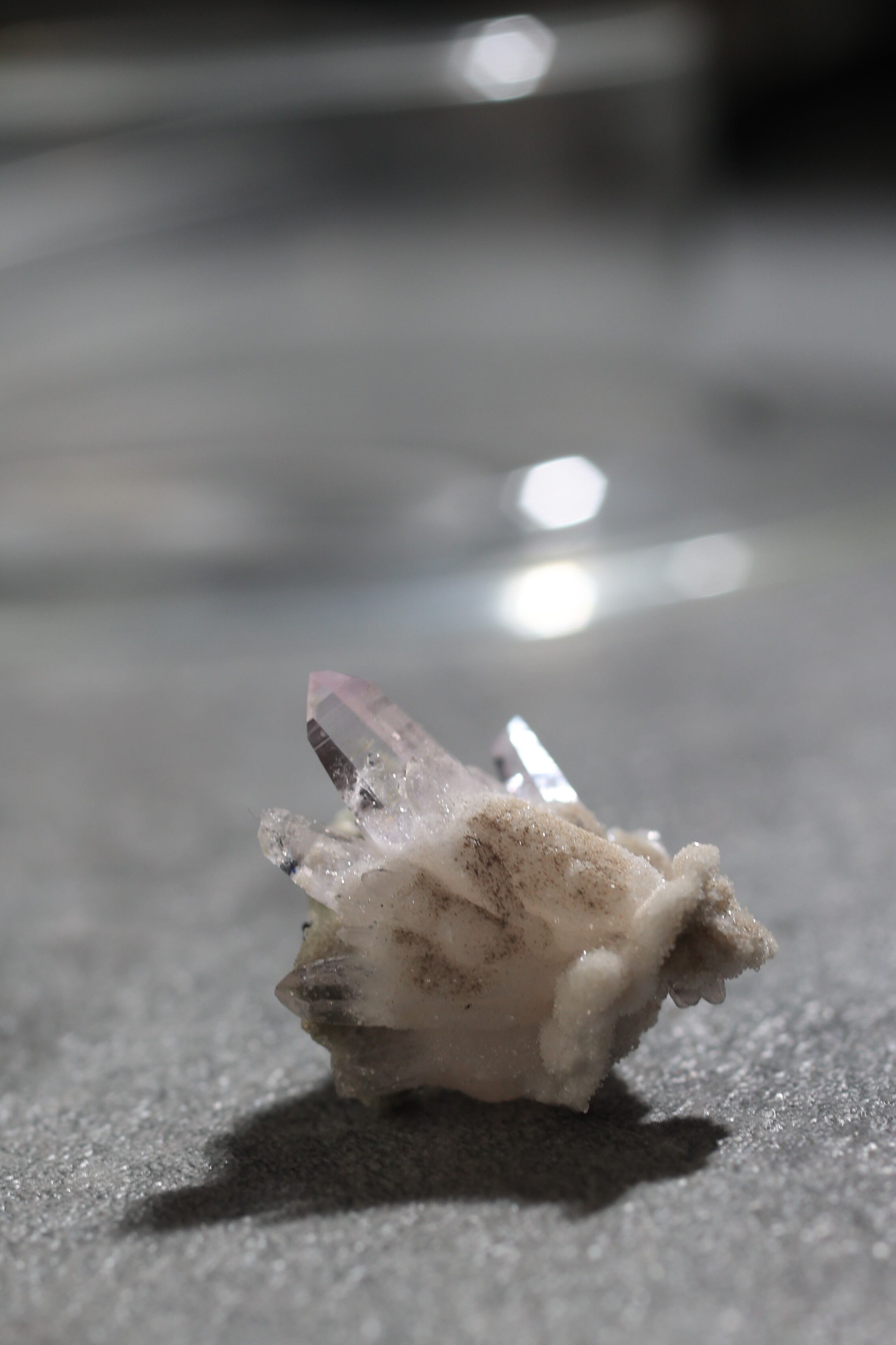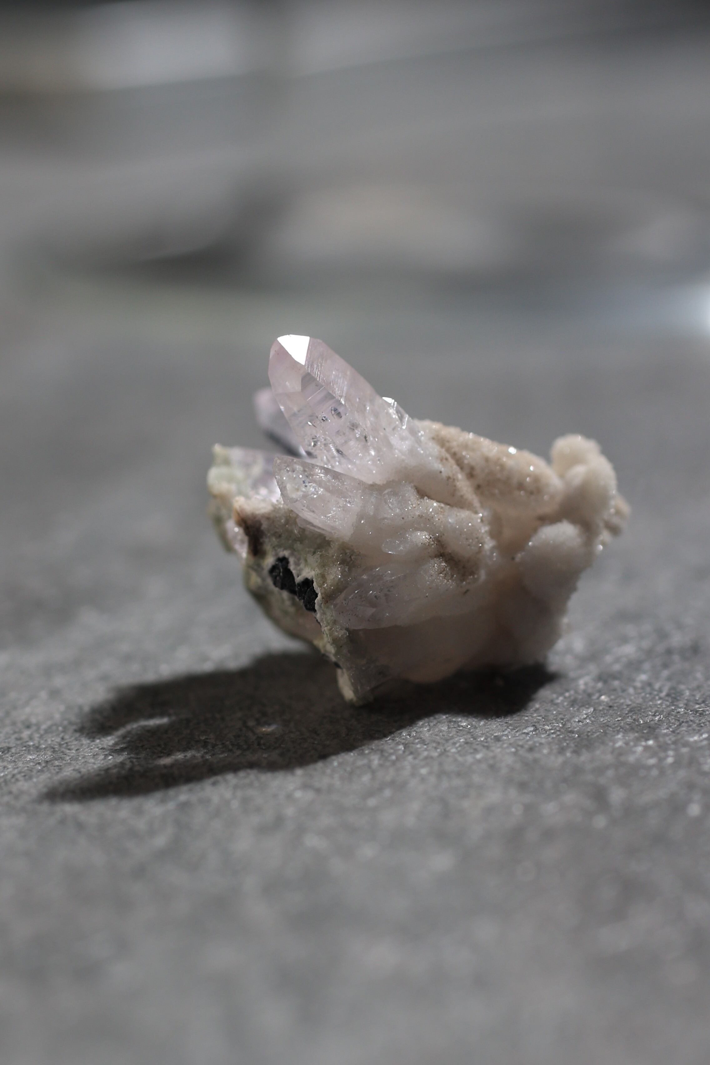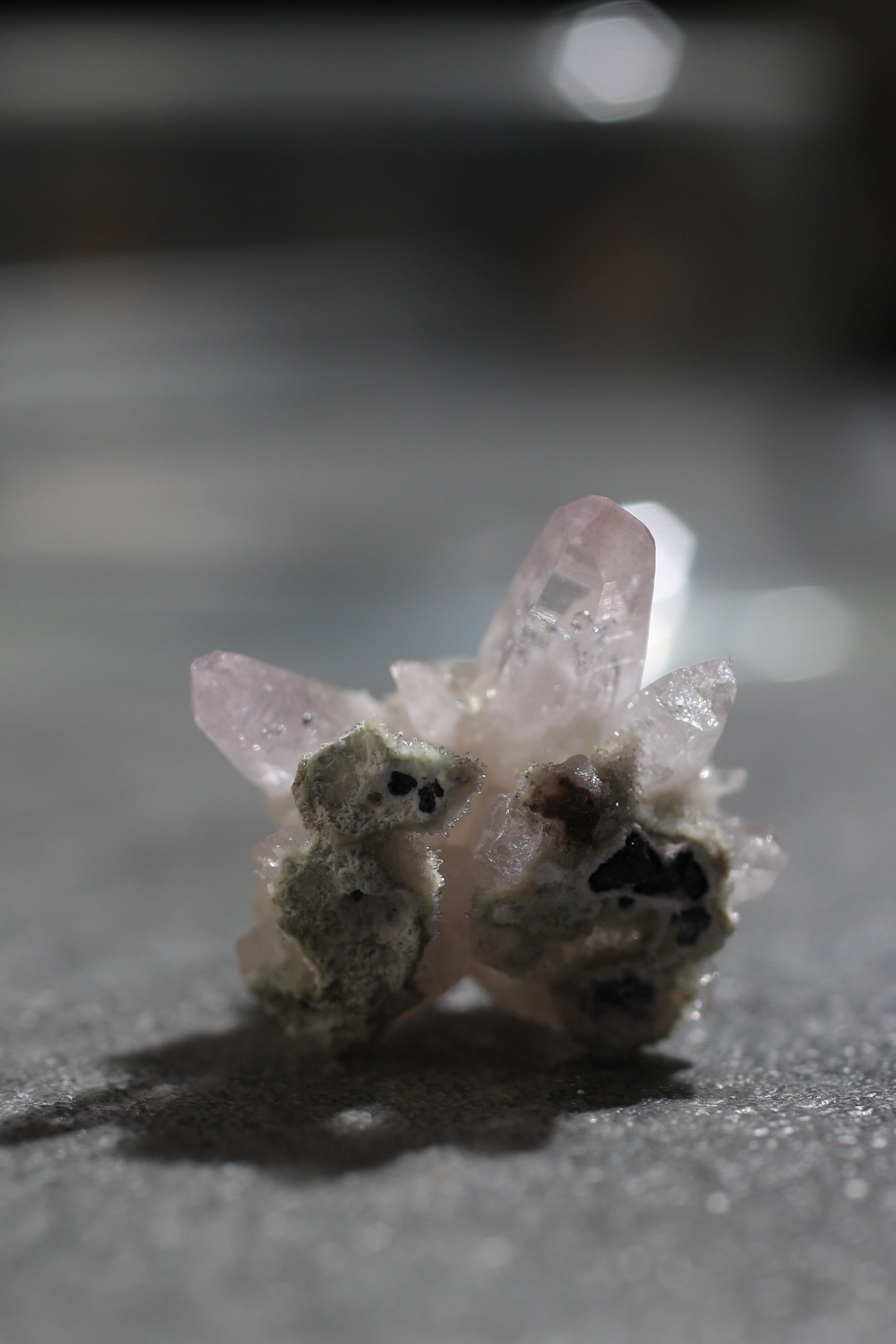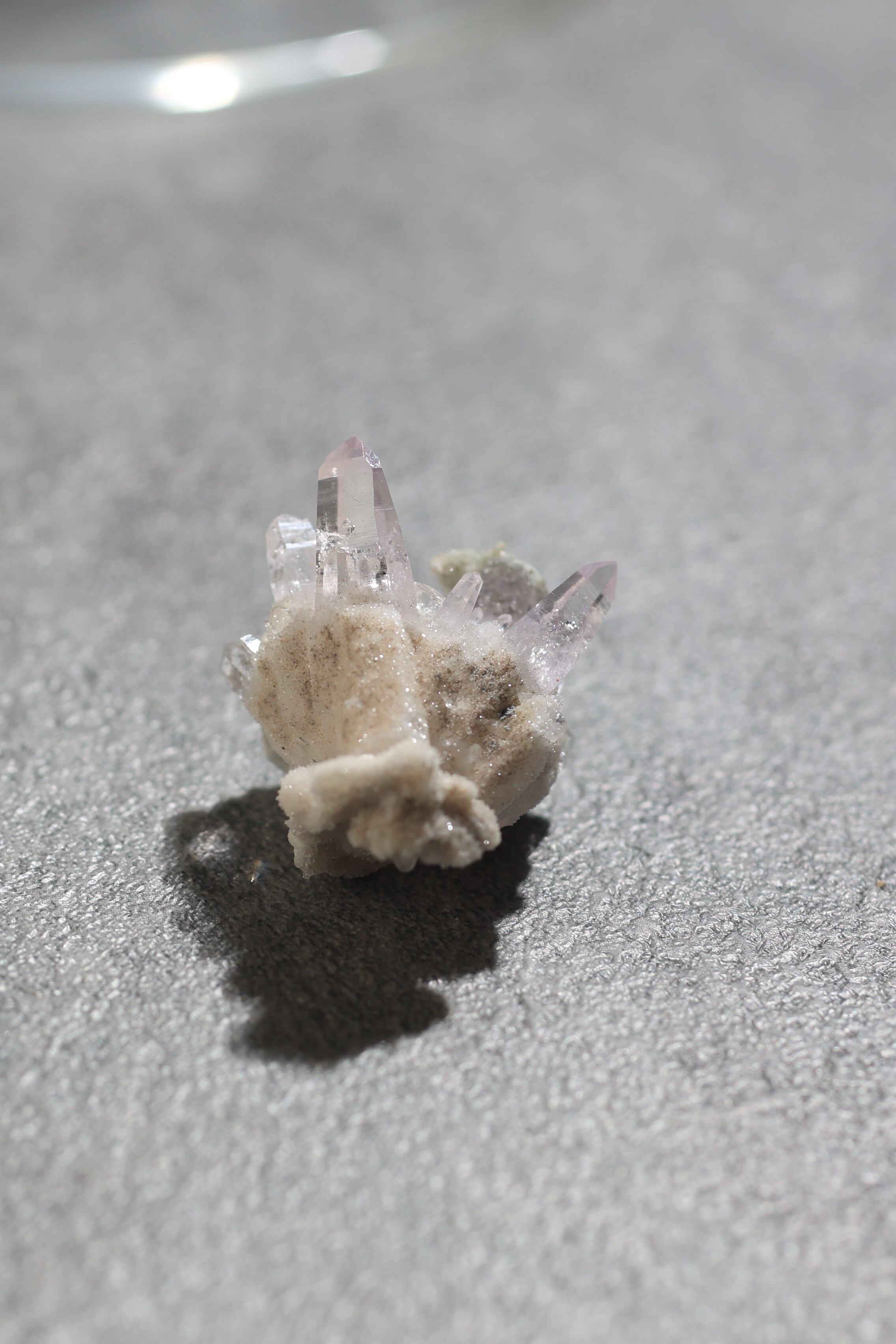 透明度が非常に高く、結晶は細くすらりと伸び、軽やかな印象を与えます。