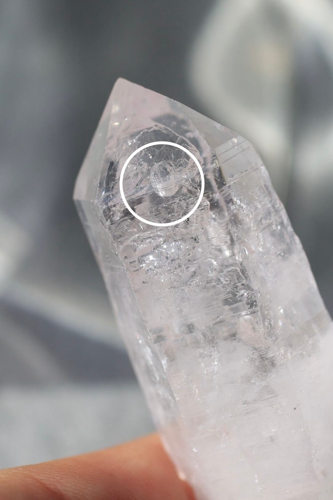 ・結晶をゆっくり傾けるようにすると、水や気泡の動きが見えやすくなります