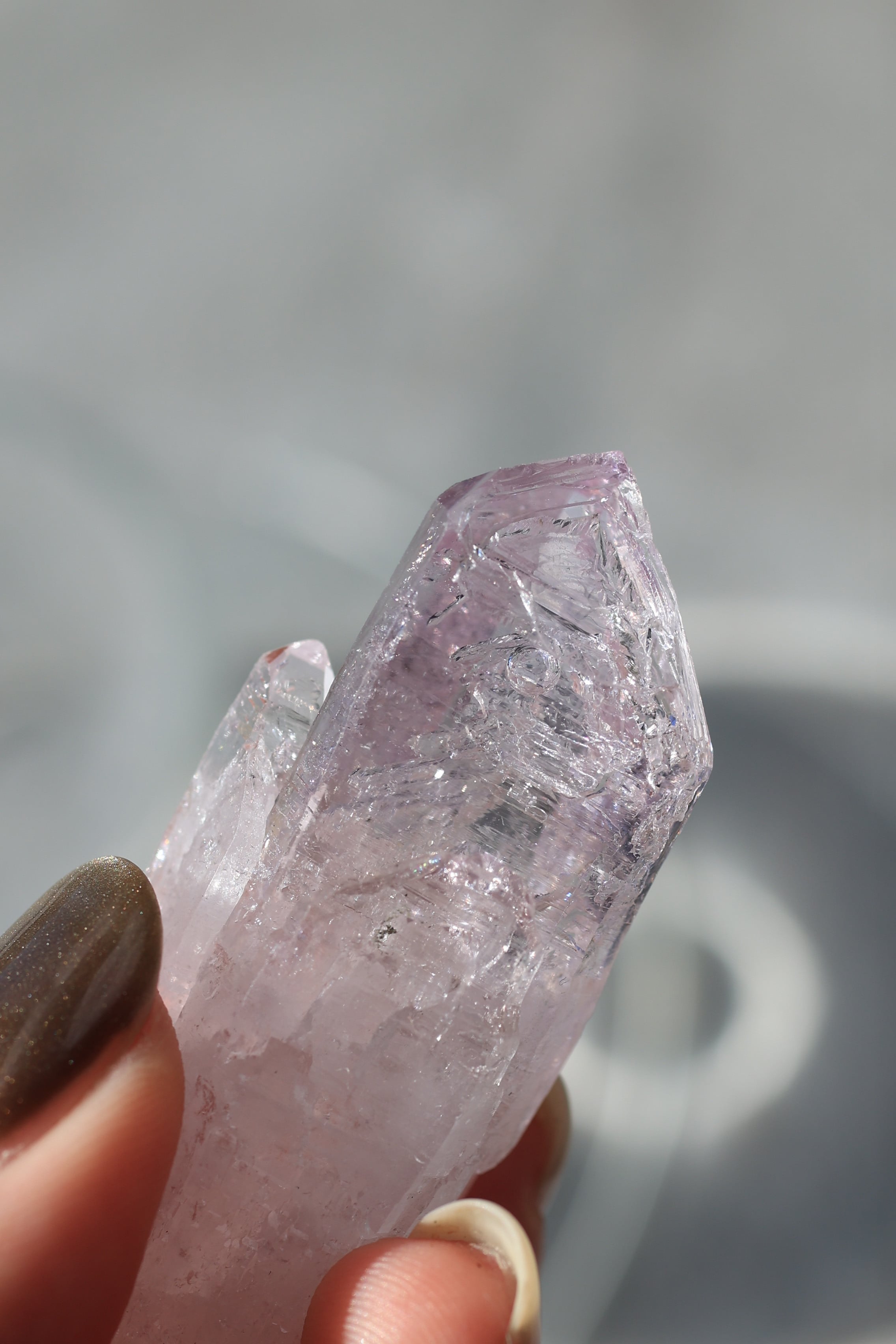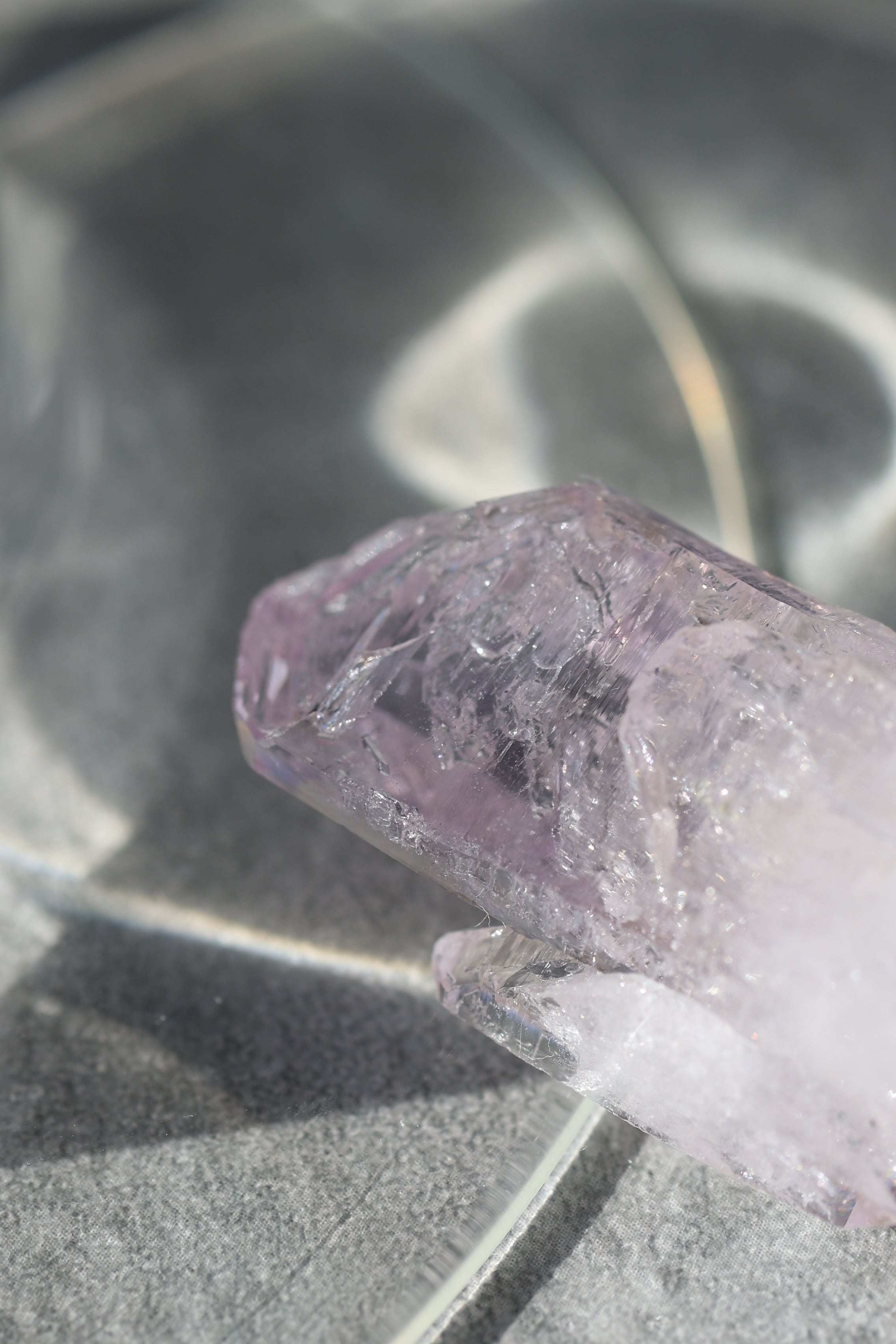 ベラクルスアメジストの透明感の高い結晶だからこそ、その水の存在がはっきりと感じられ、