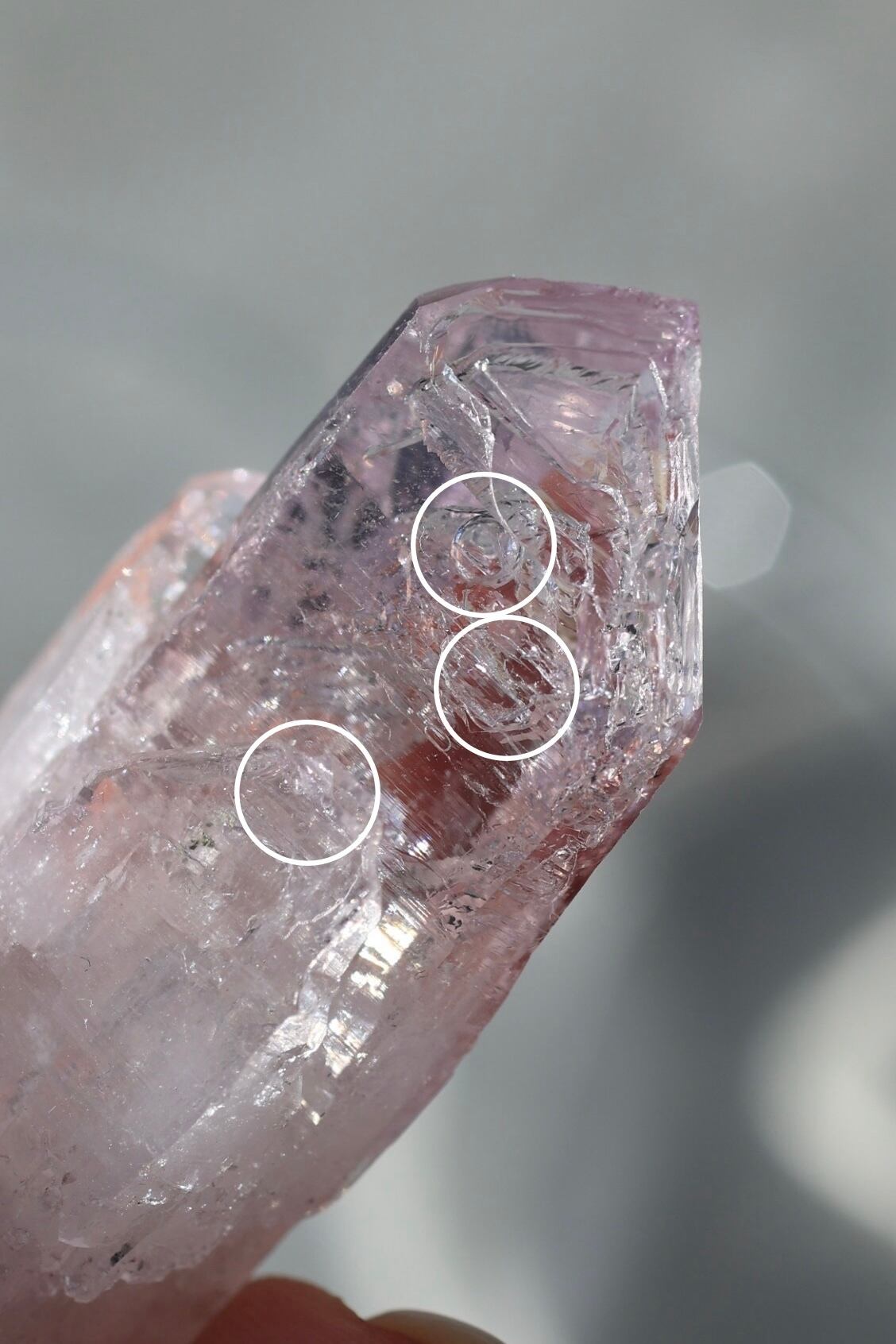 ・結晶をゆっくり傾けるようにすると、水や気泡の動きが見えやすくなります