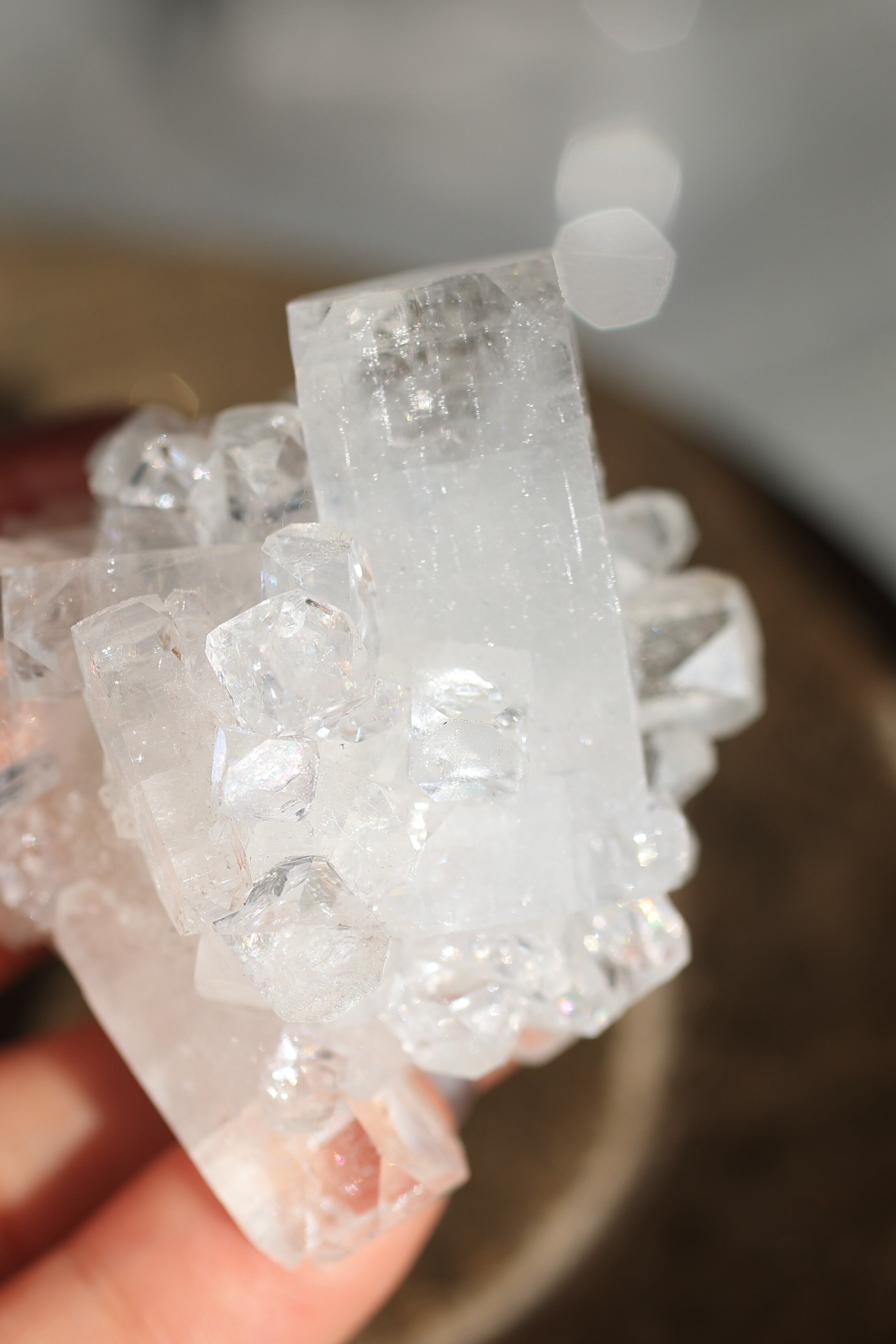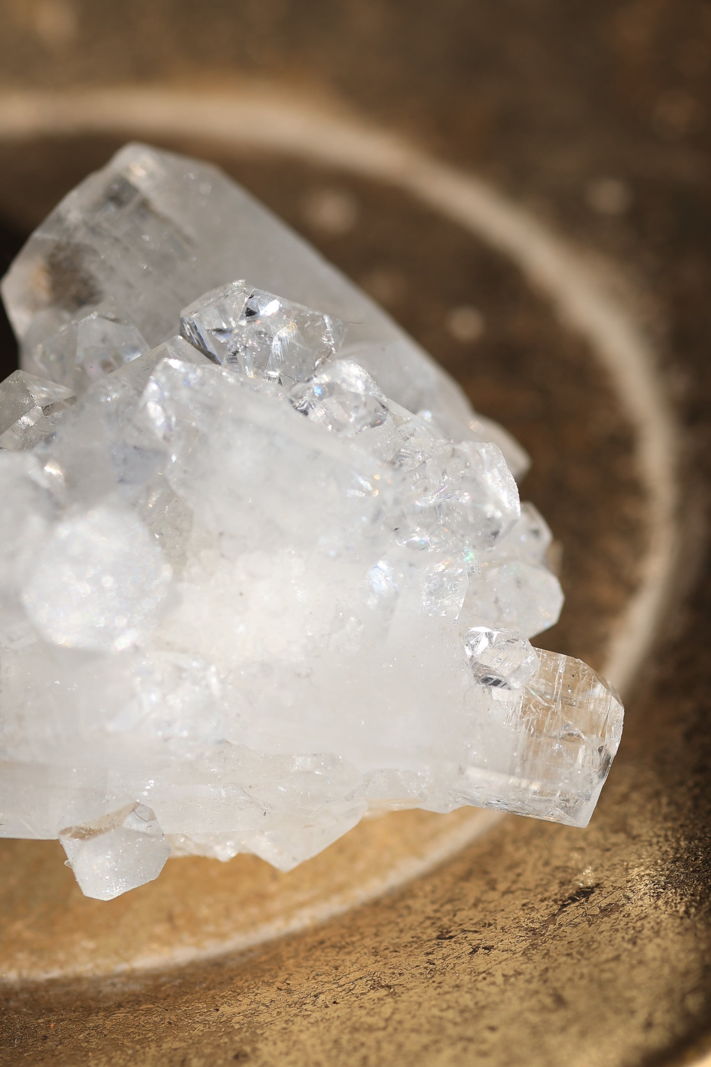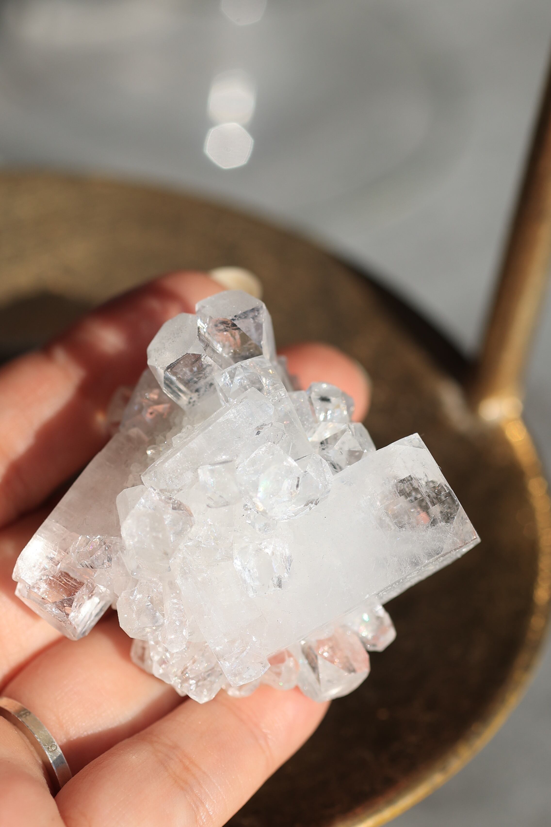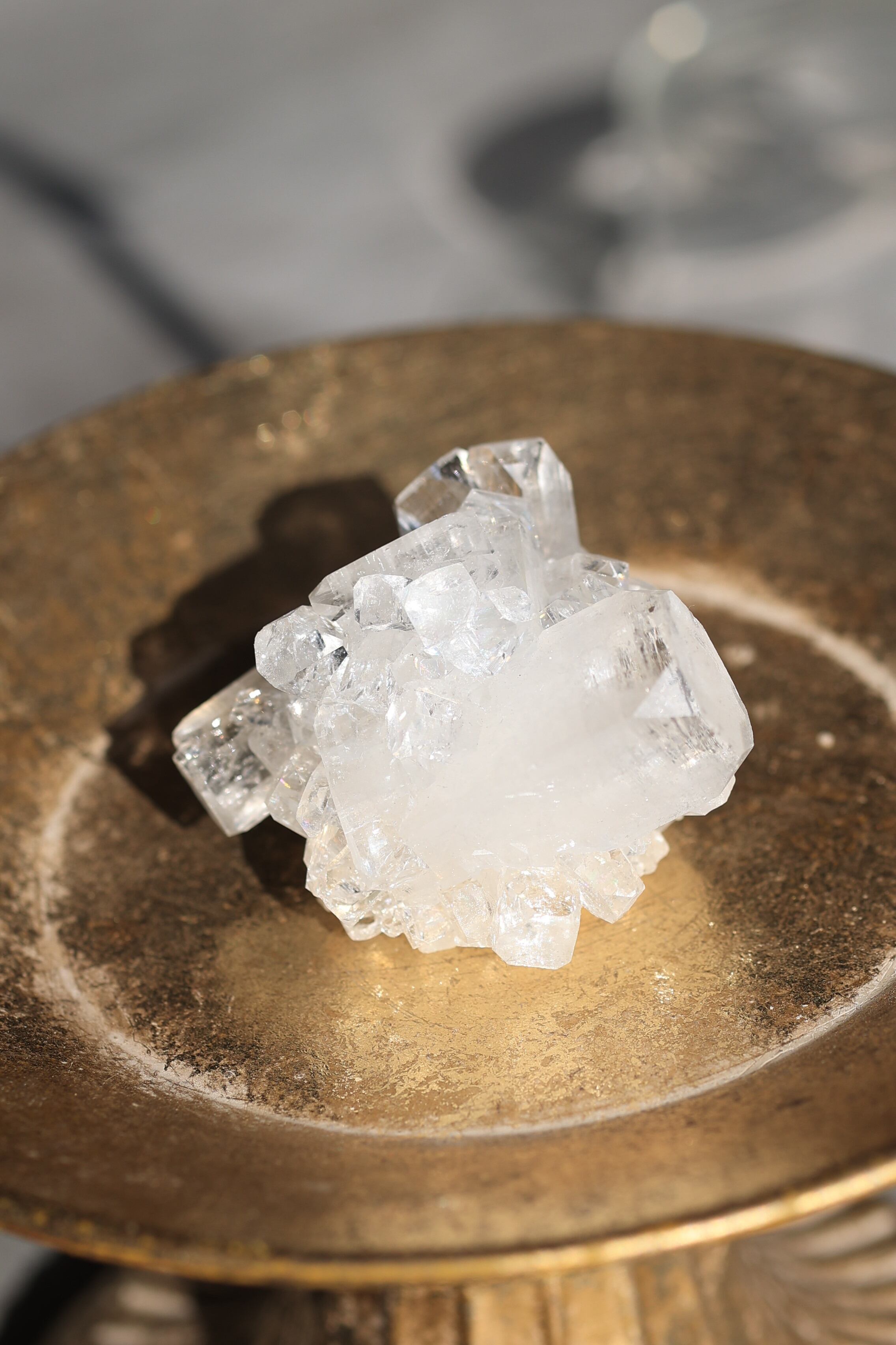 インド産アポフィライトは、透明感のある結晶と、整った幾何学的な形が特徴の鉱物です。