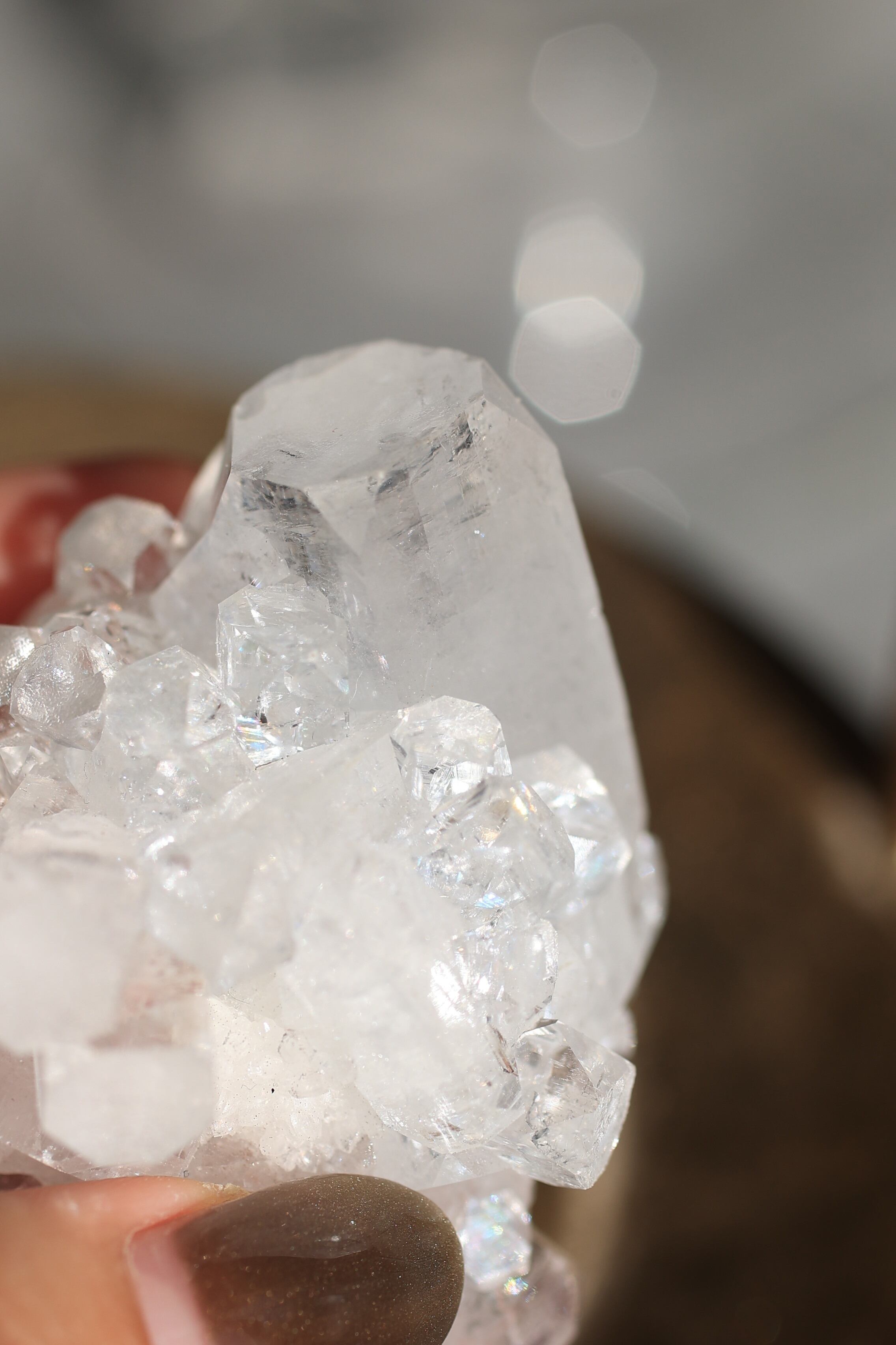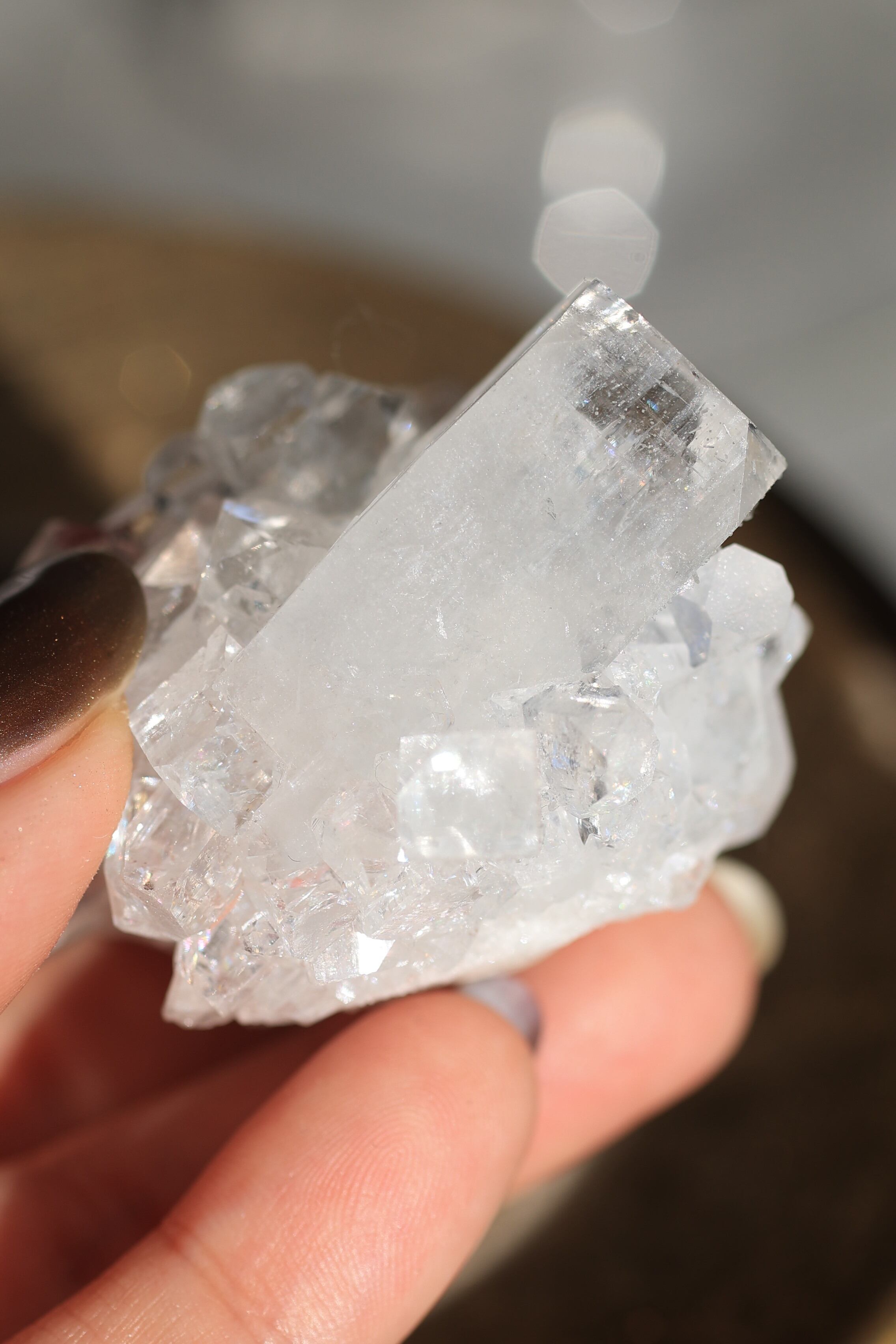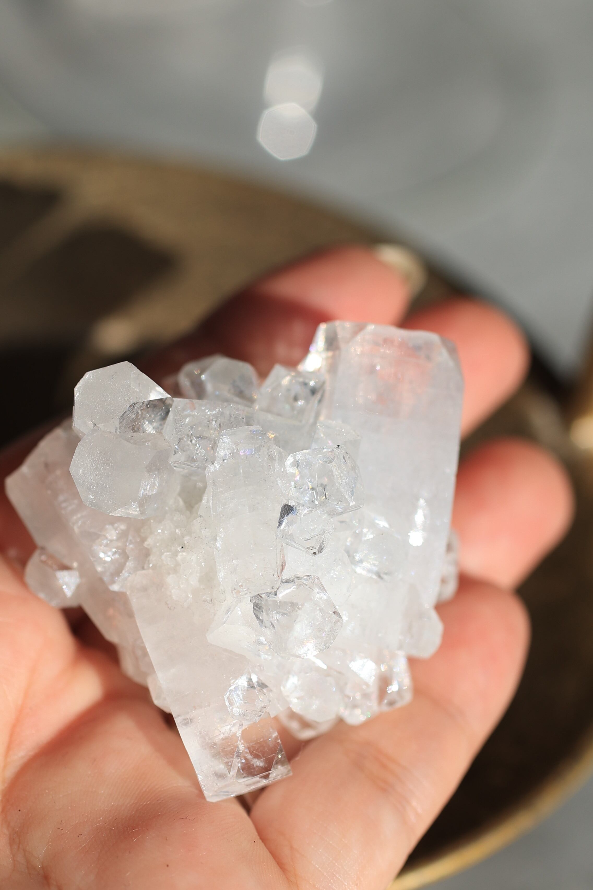 インド産アポフィライトは、透明感のある結晶と、整った幾何学的な形が特徴の鉱物です。