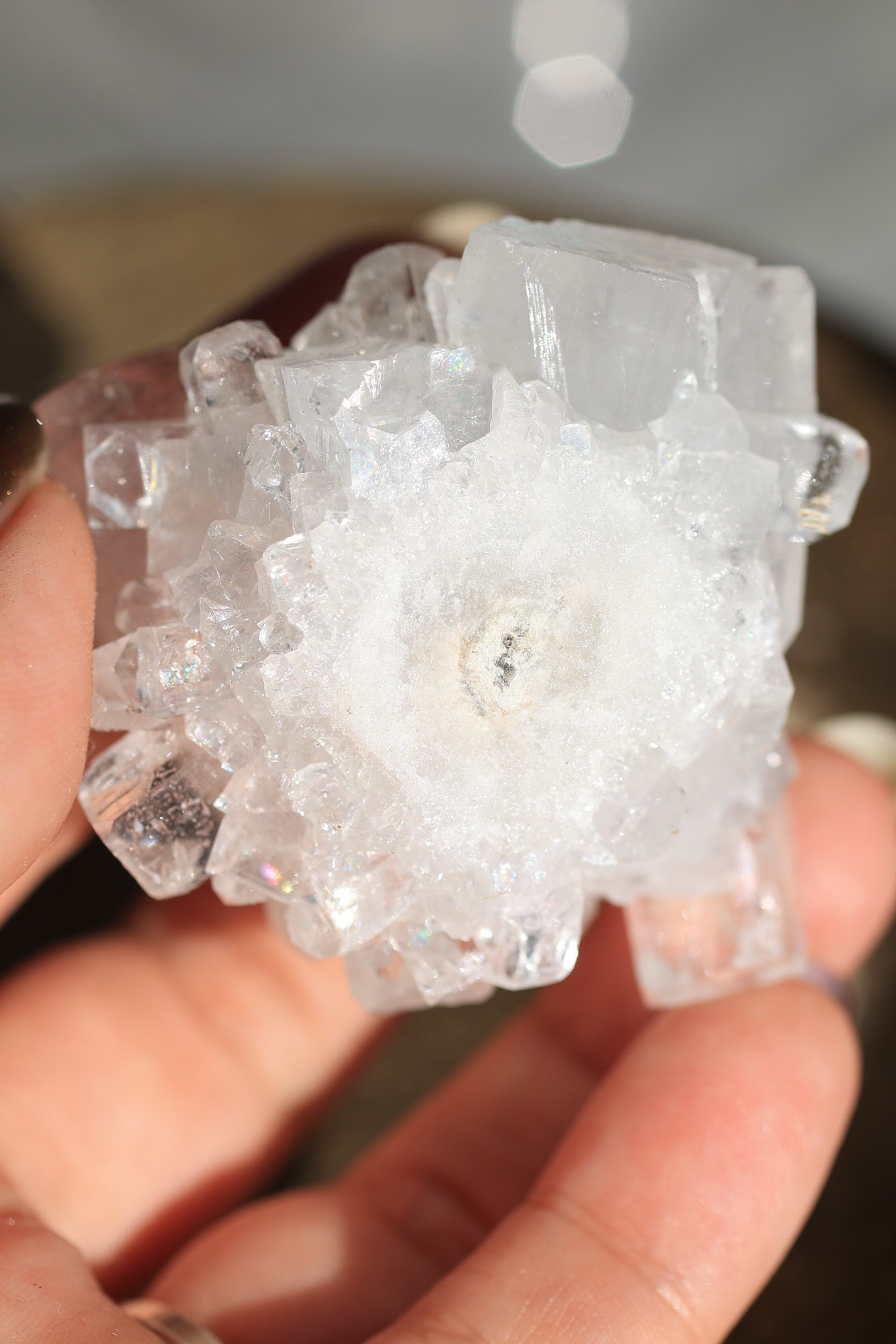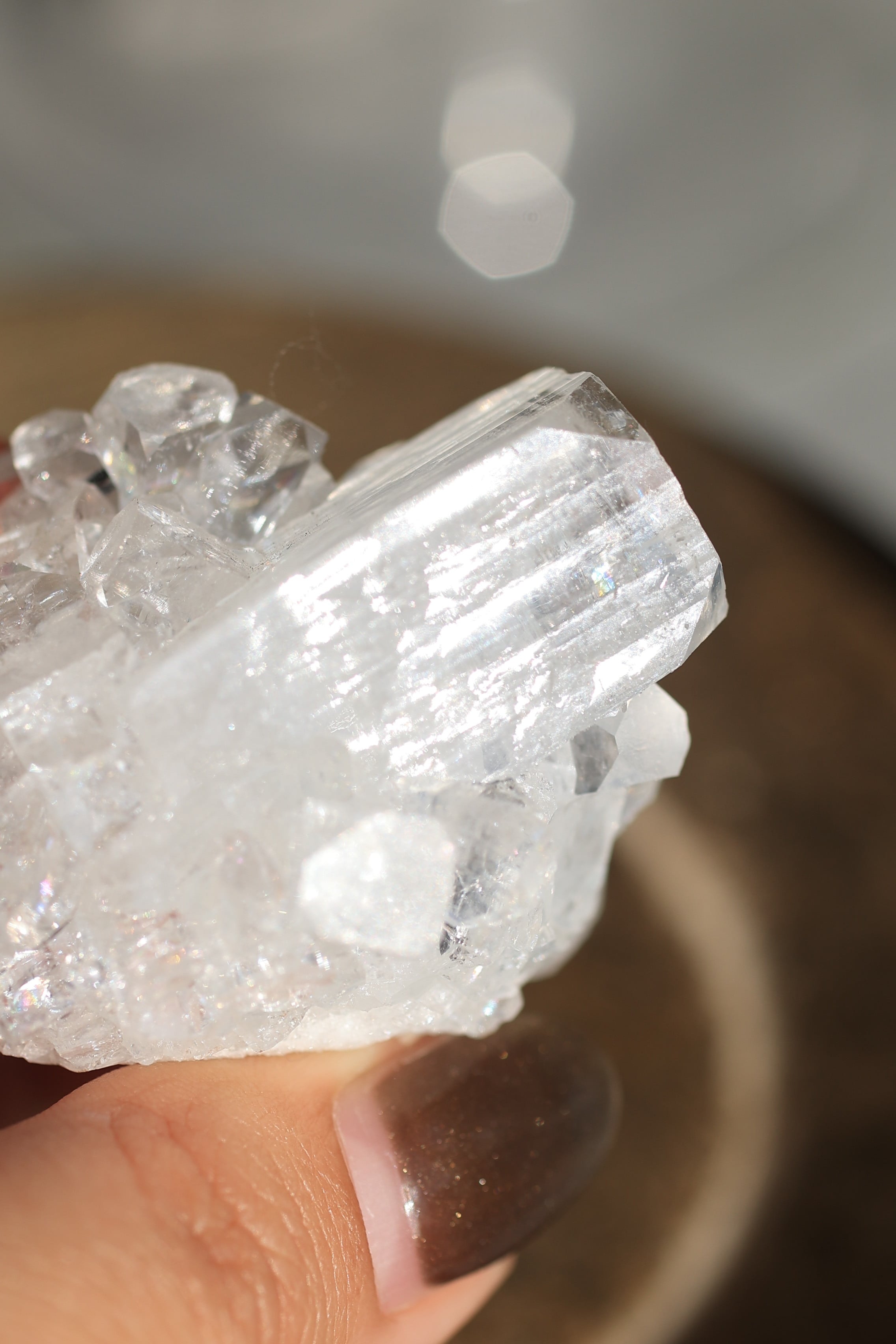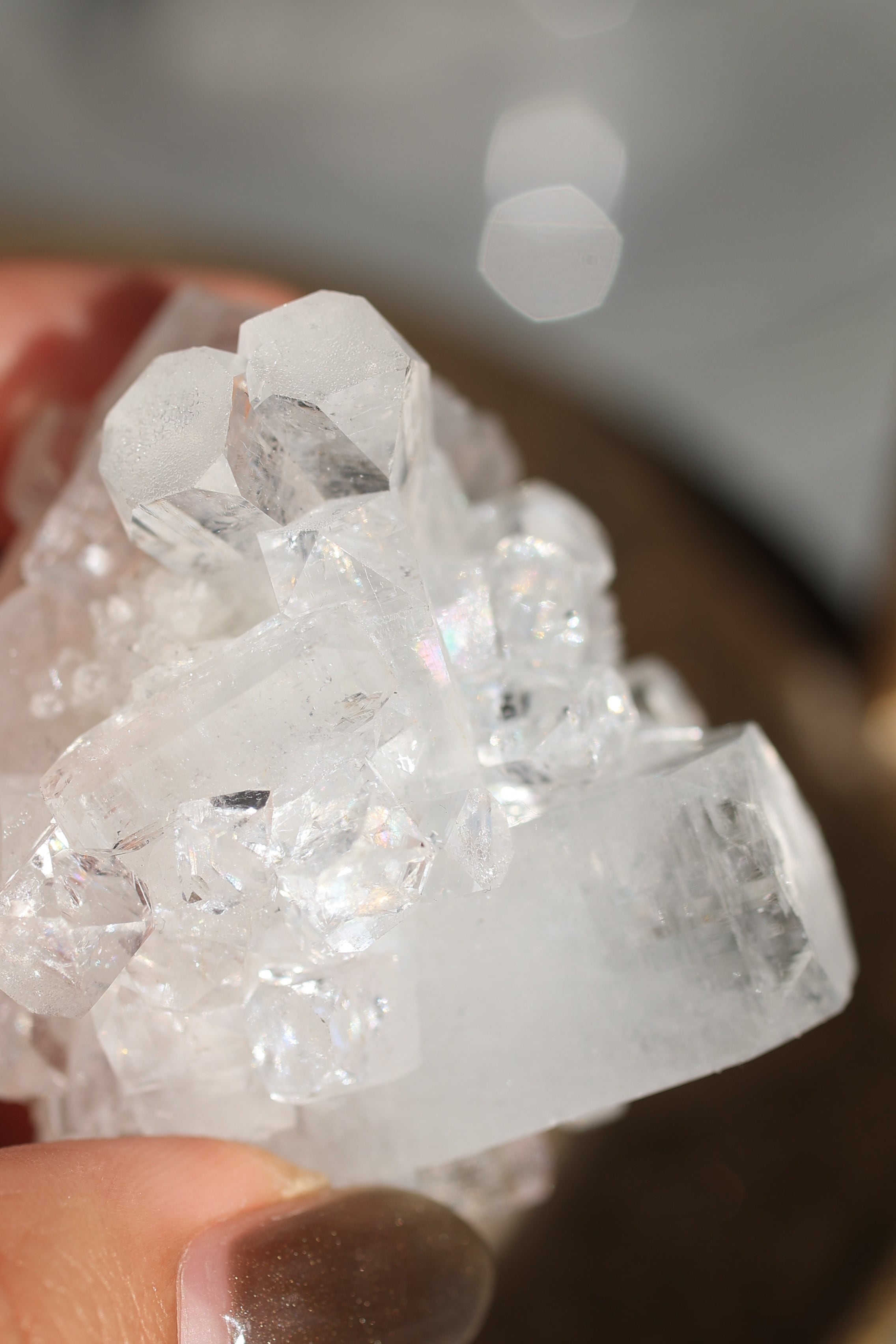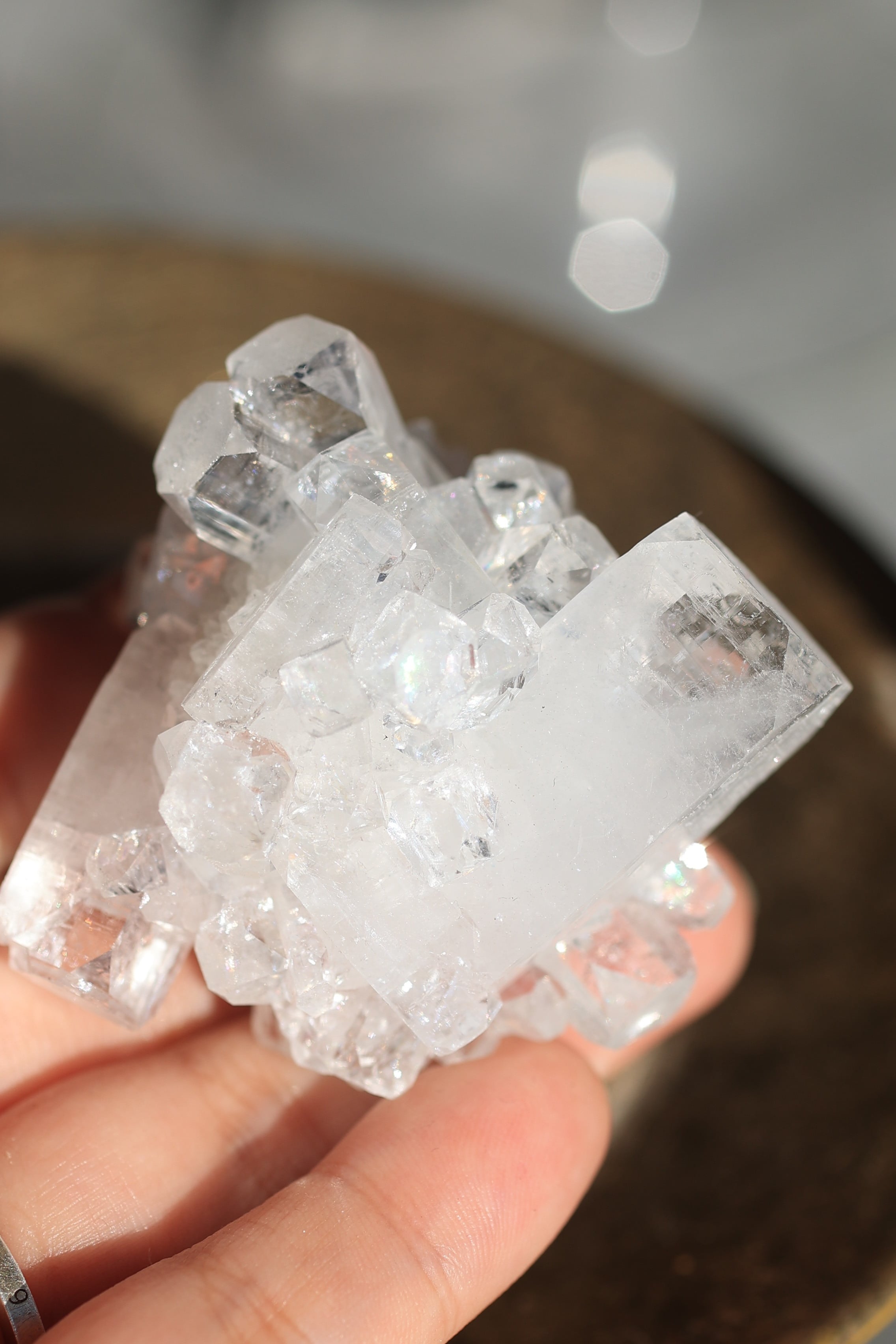 インド産アポフィライトは、透明感のある結晶と、整った幾何学的な形が特徴の鉱物です。