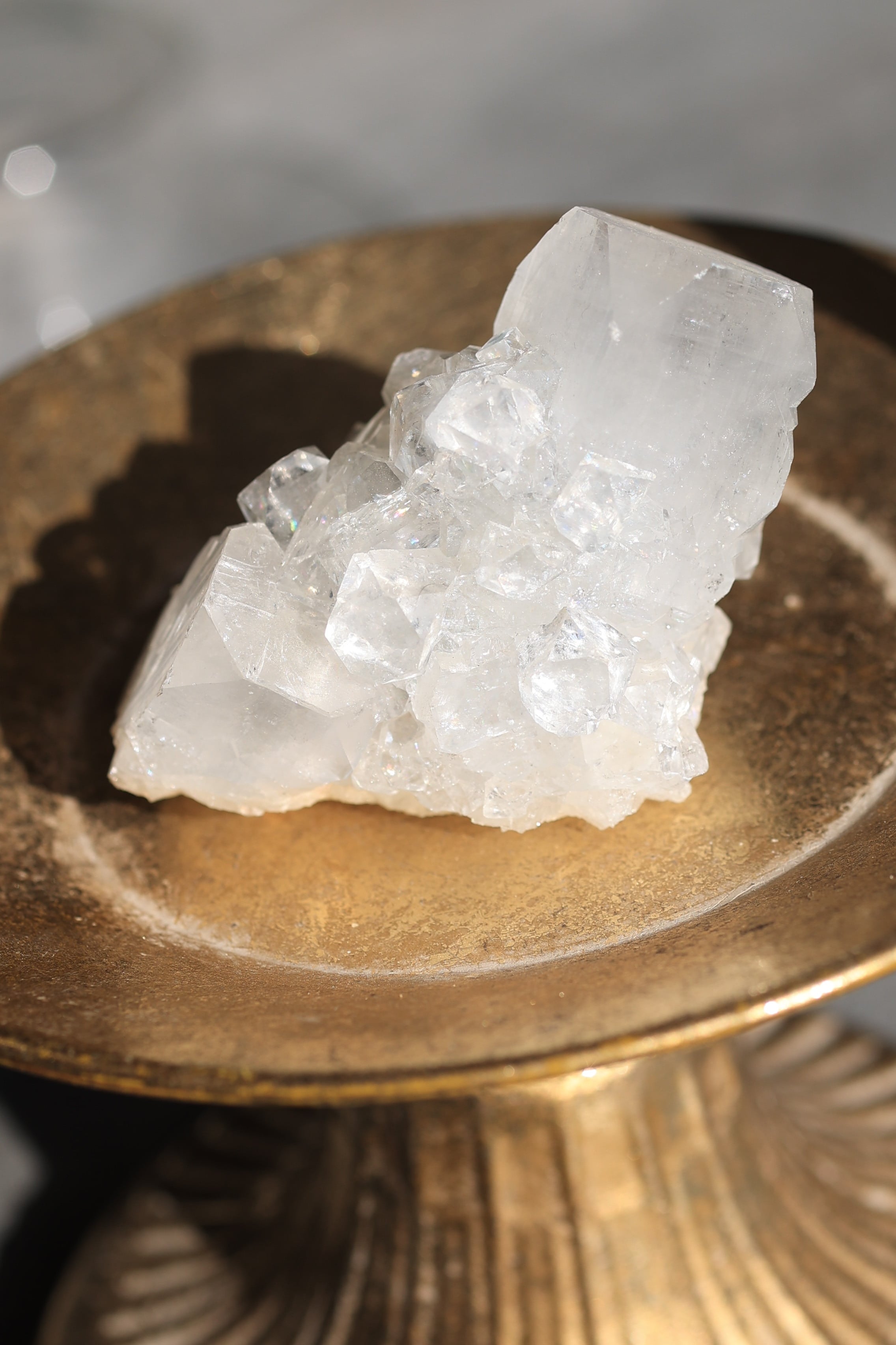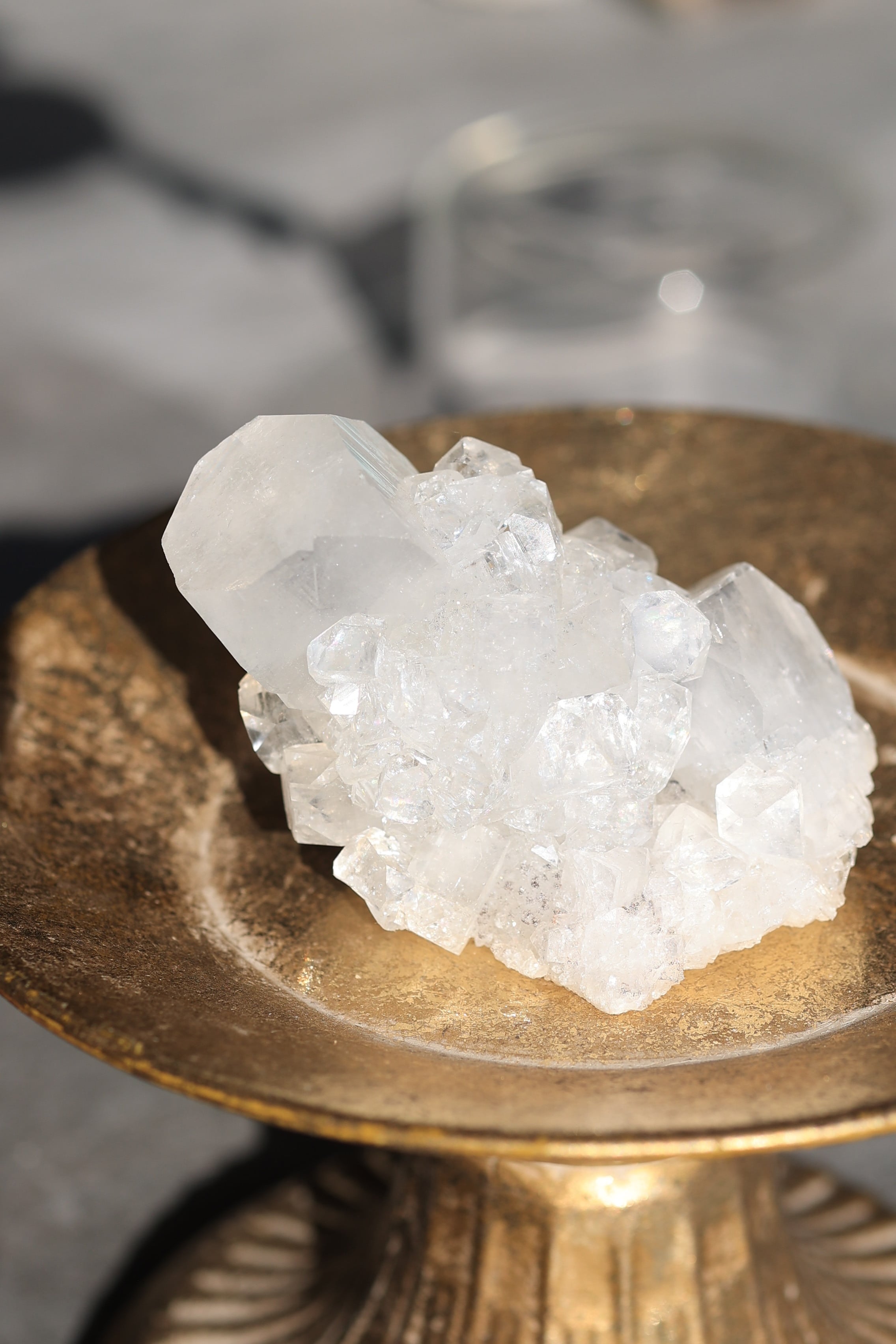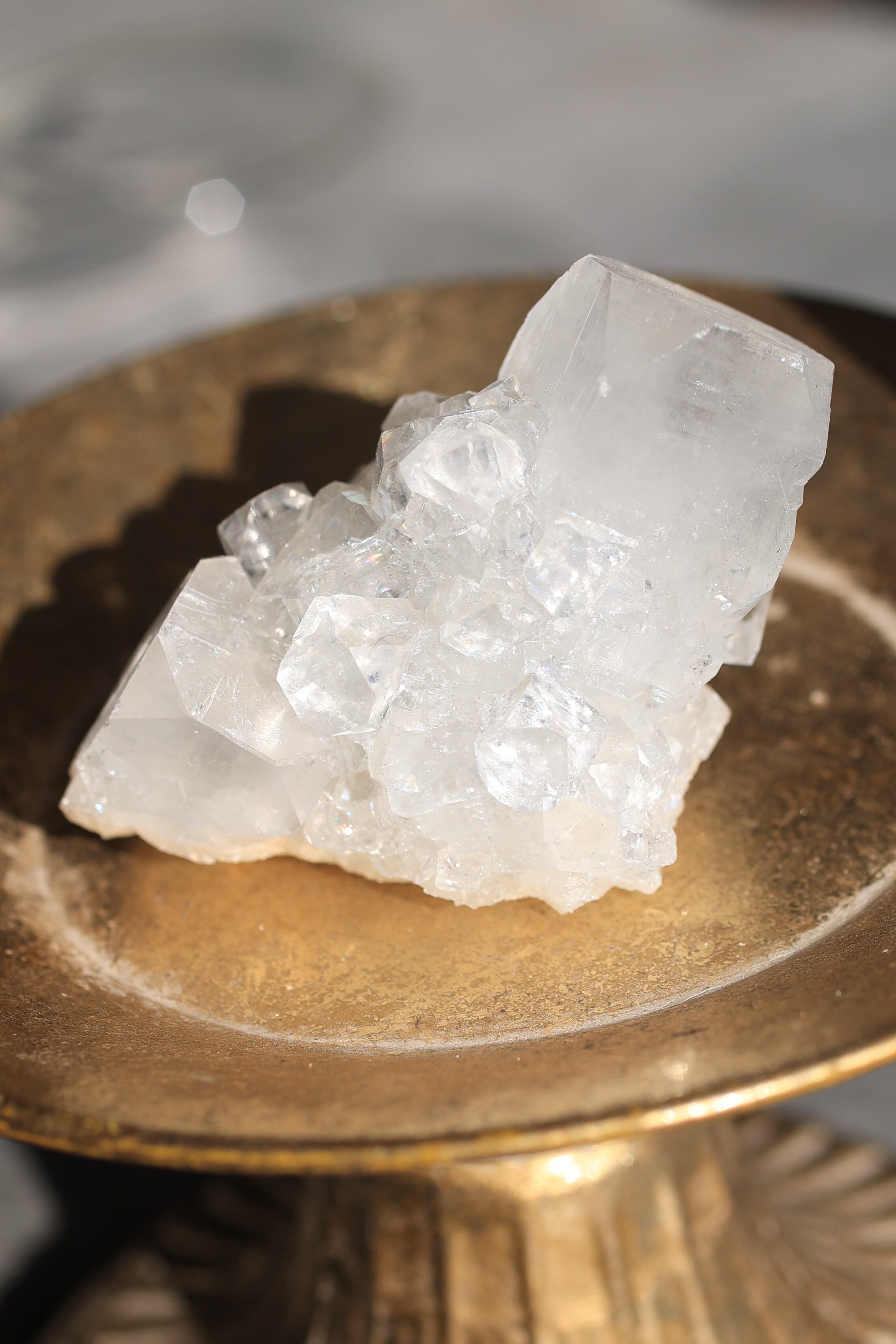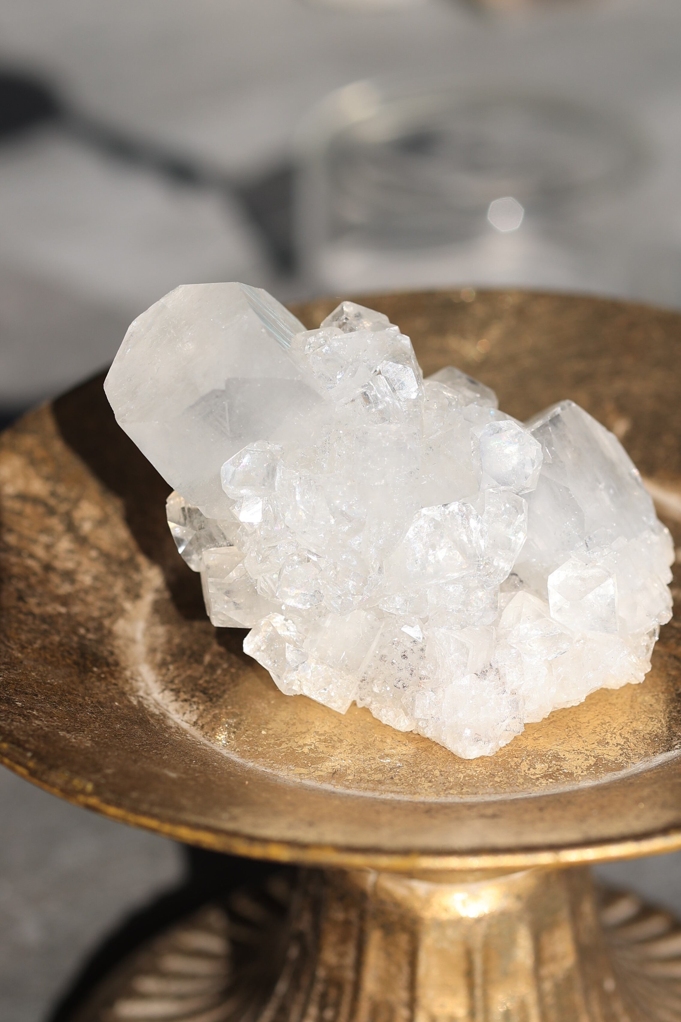 インド産アポフィライトは、透明感のある結晶と、整った幾何学的な形が特徴の鉱物です。