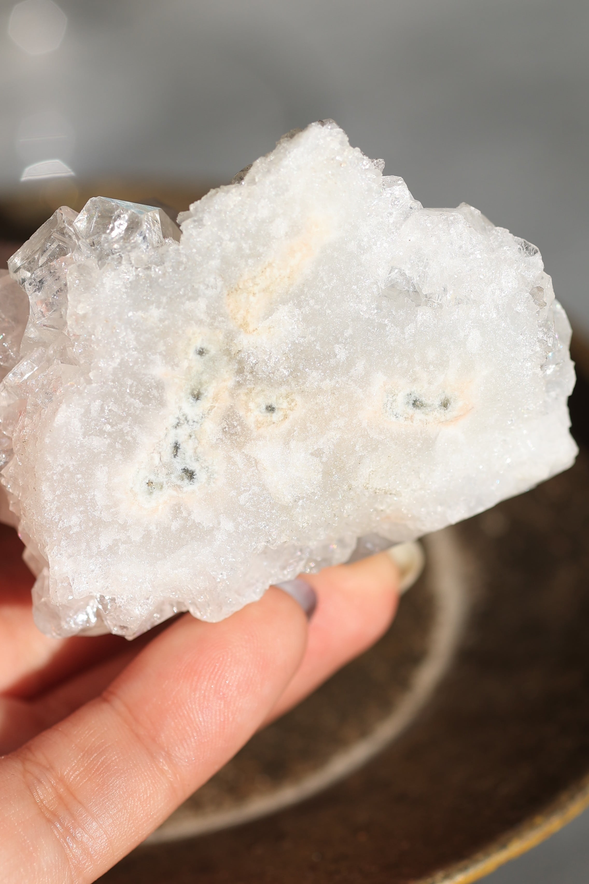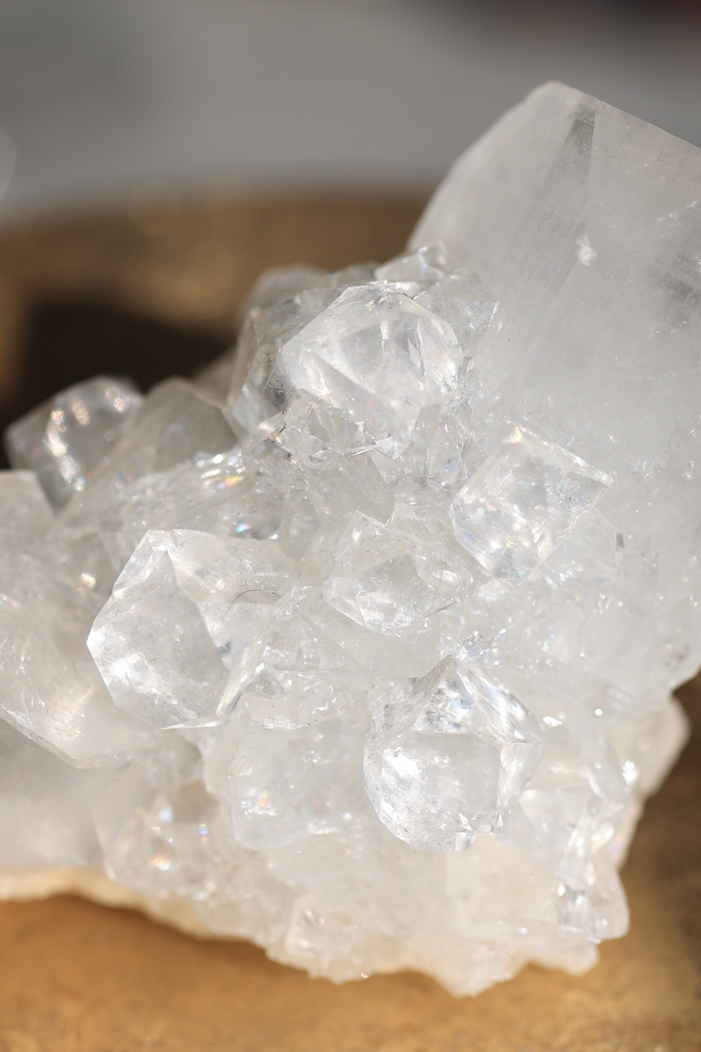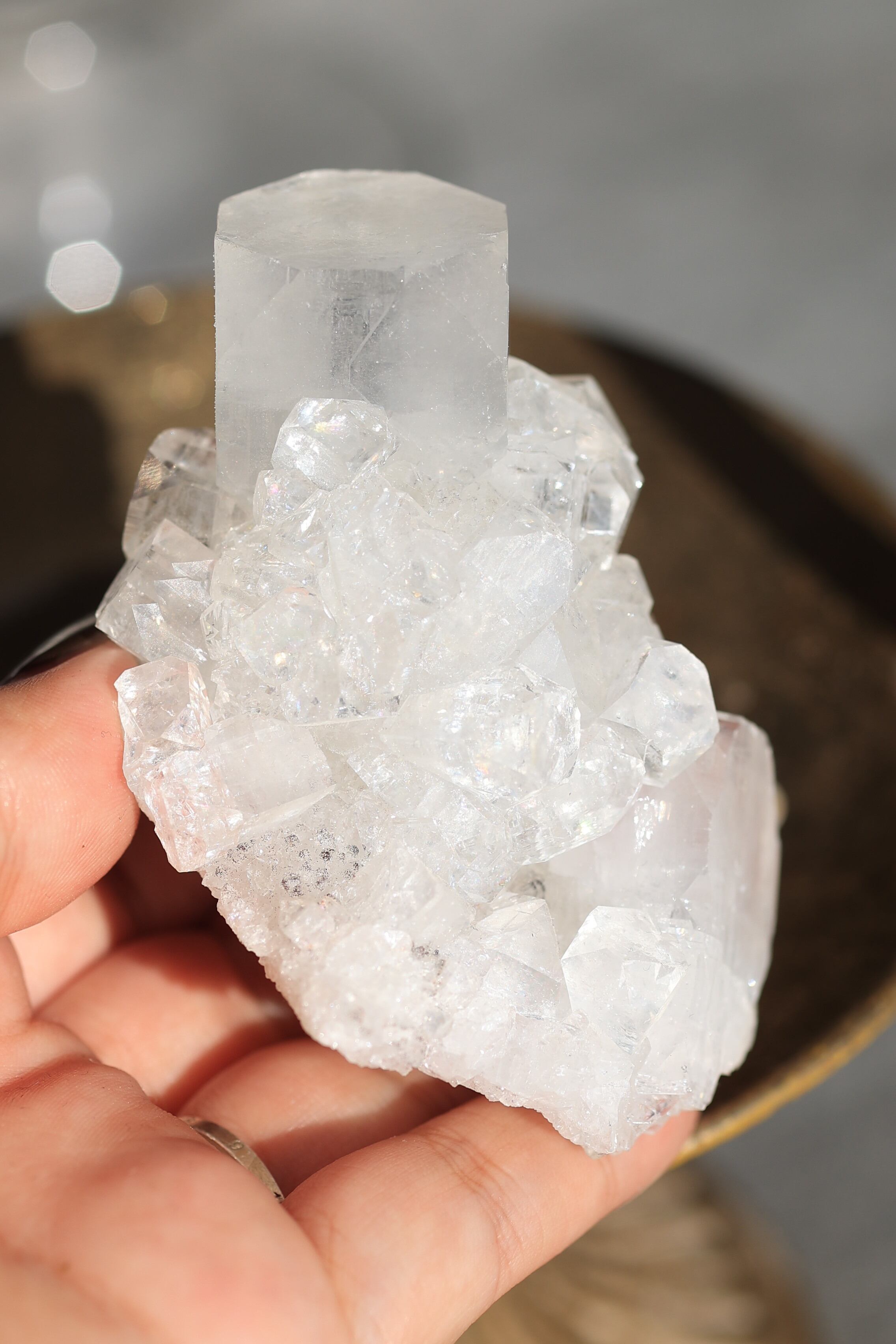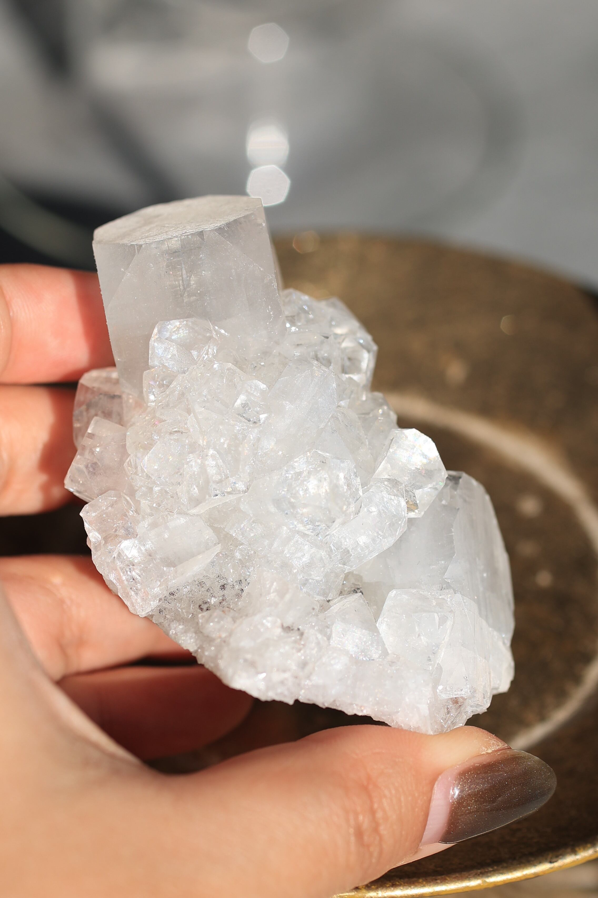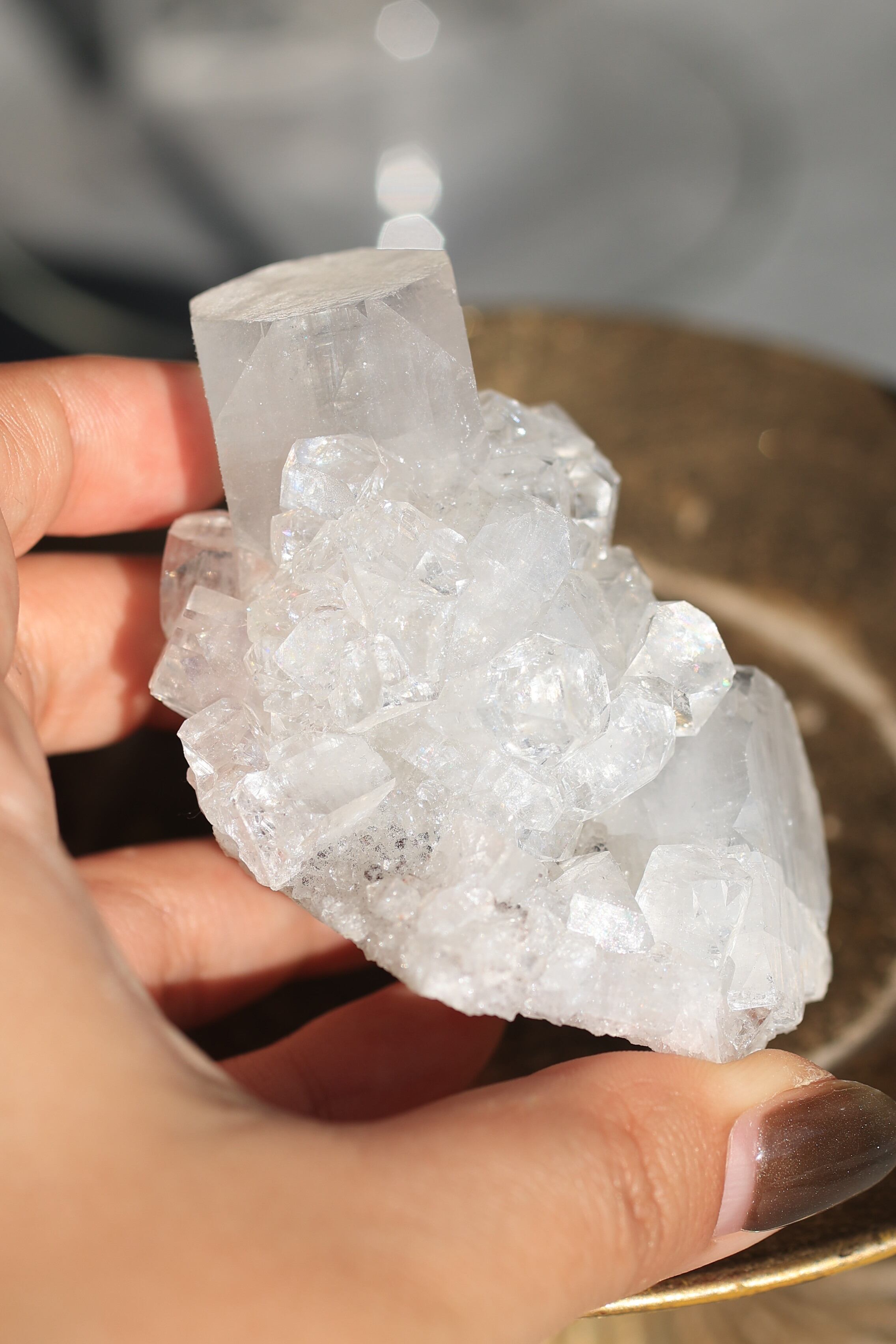 インド産アポフィライトは、透明感のある結晶と、整った幾何学的な形が特徴の鉱物です。