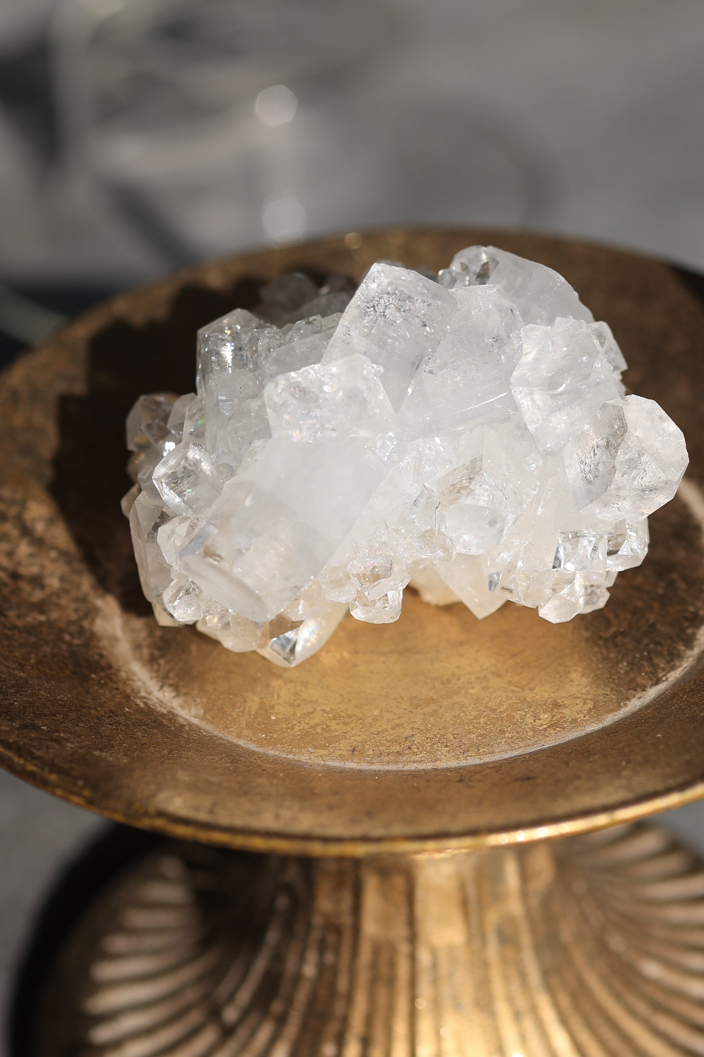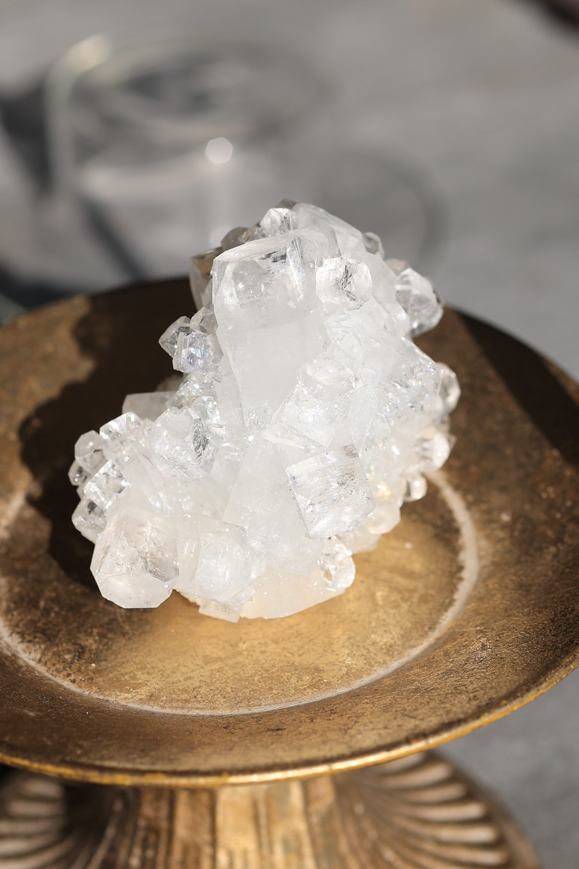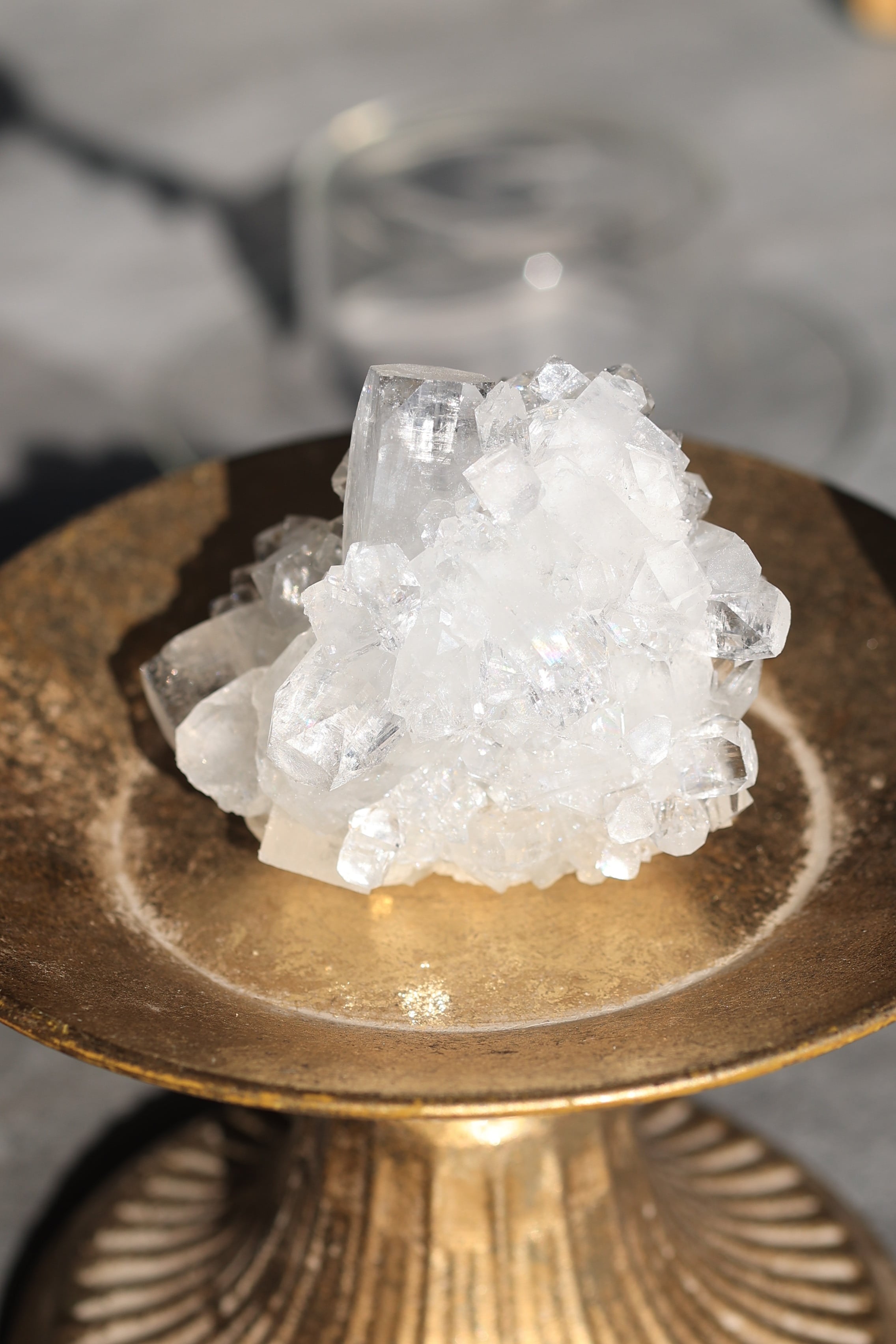 インド産アポフィライトは、透明感のある結晶と、整った幾何学的な形が特徴の鉱物です。