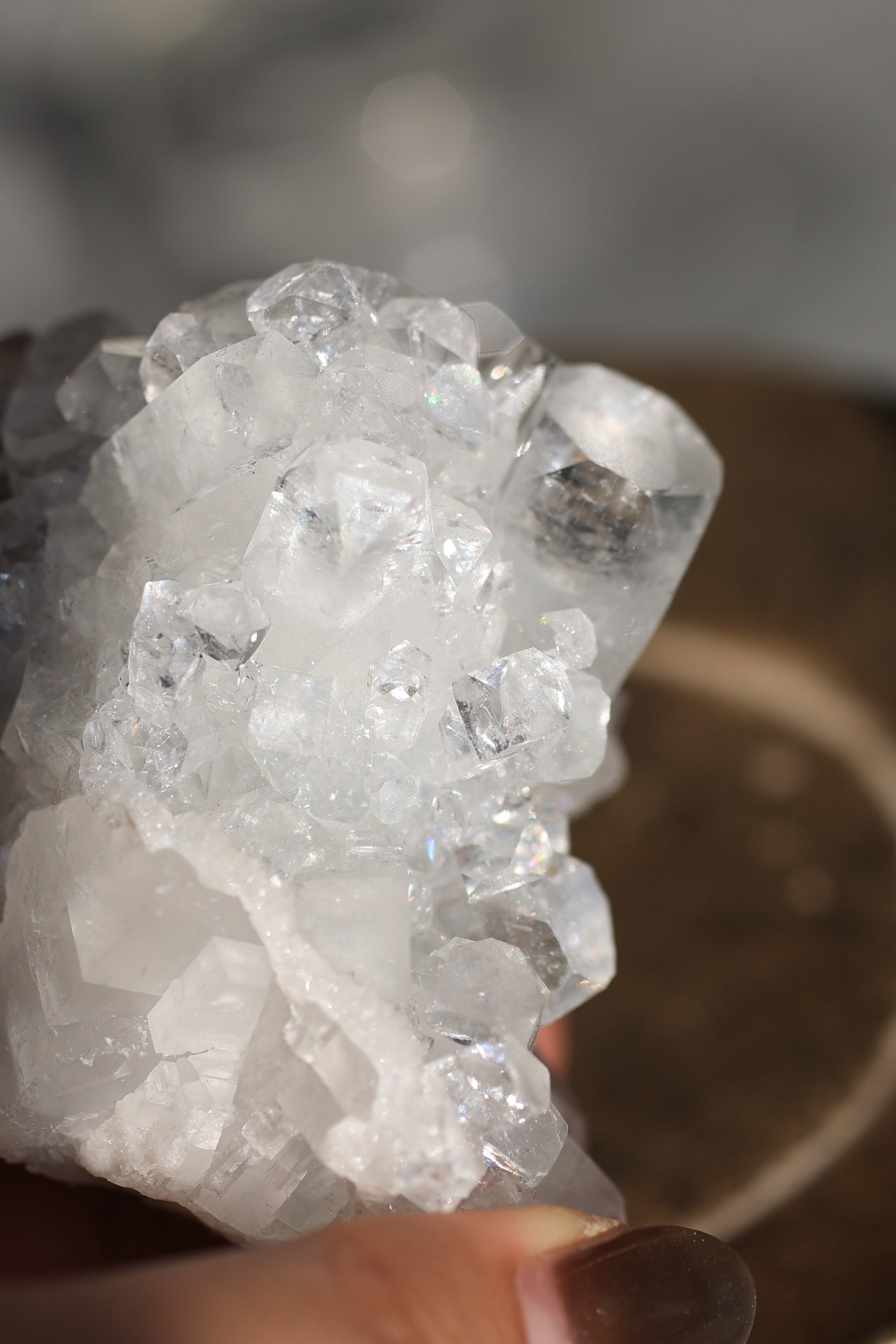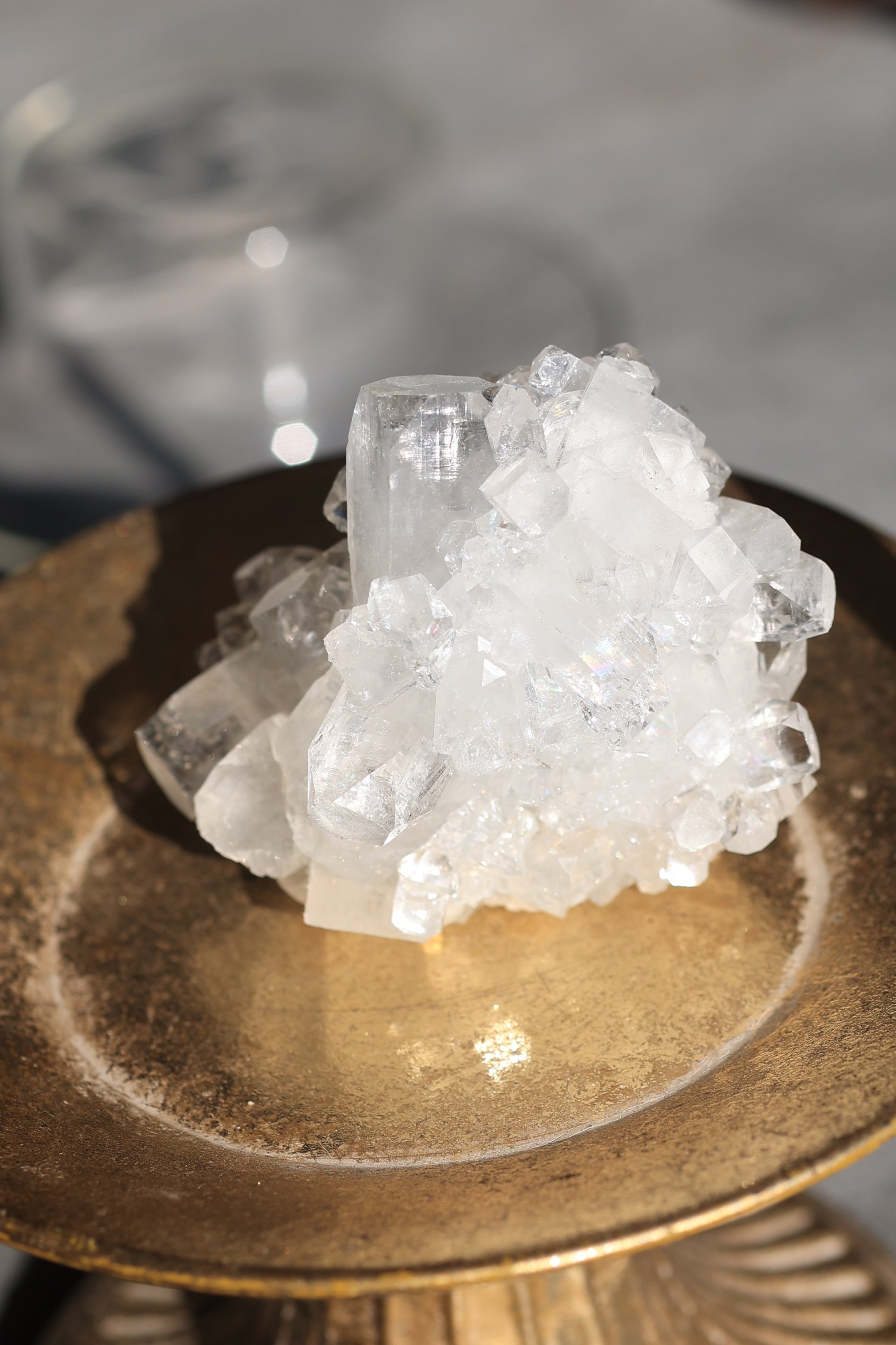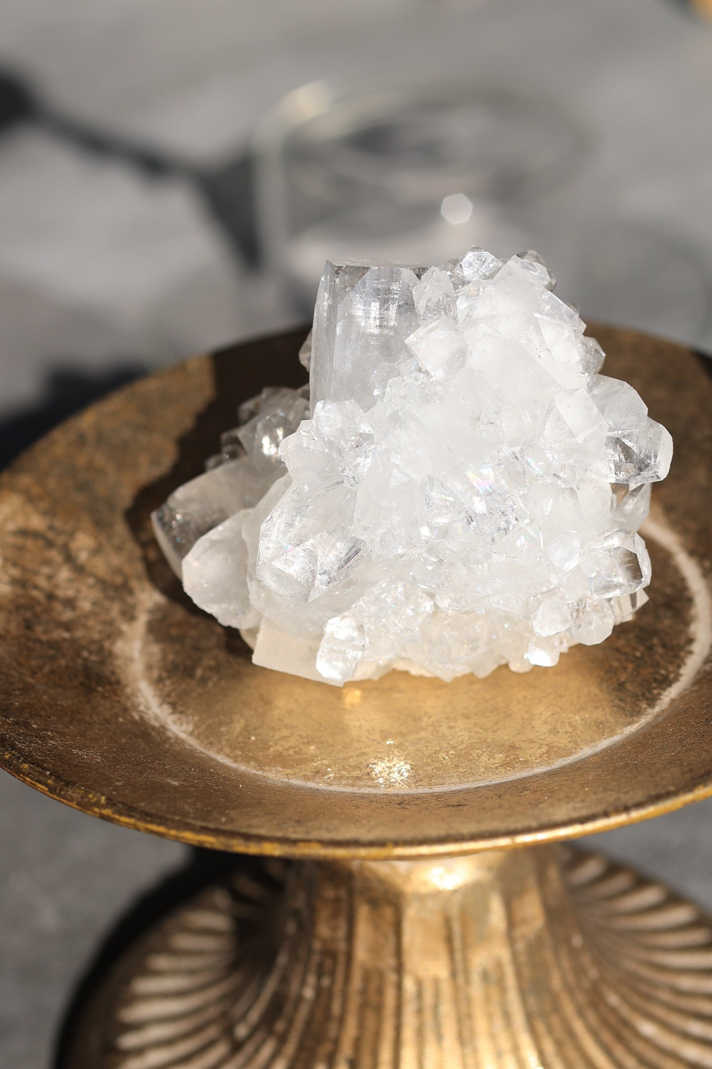 インド産アポフィライトは、透明感のある結晶と、整った幾何学的な形が特徴の鉱物です。