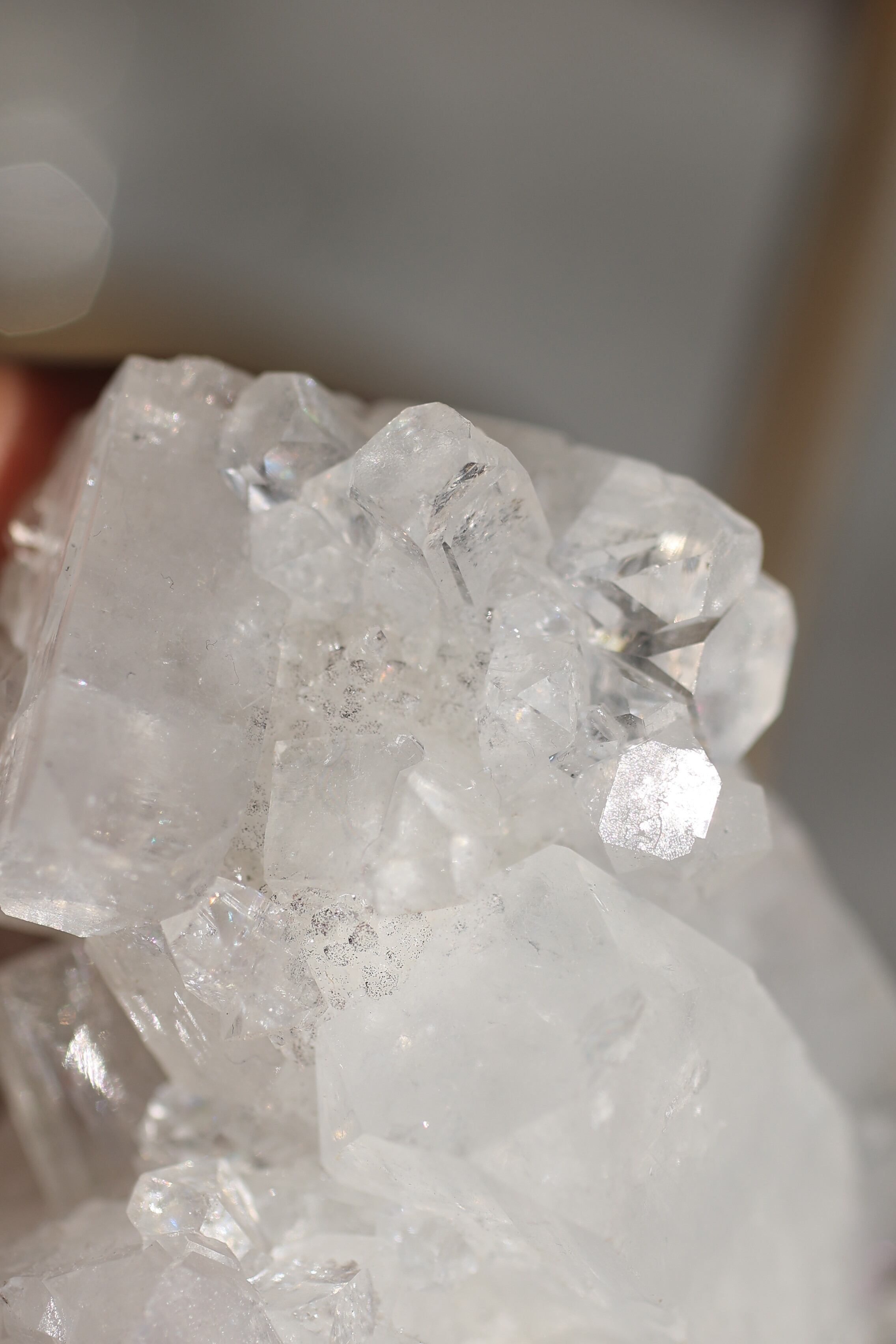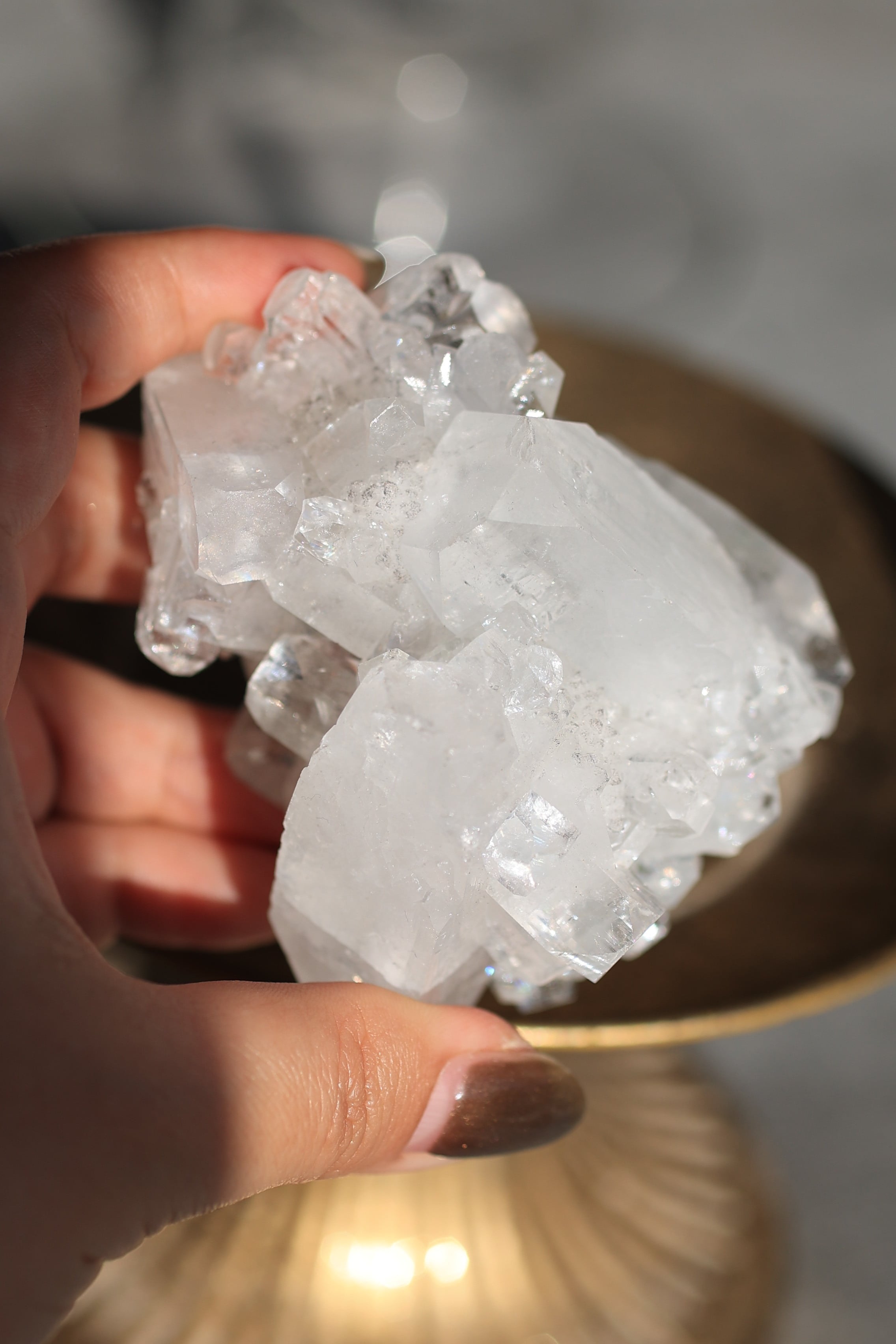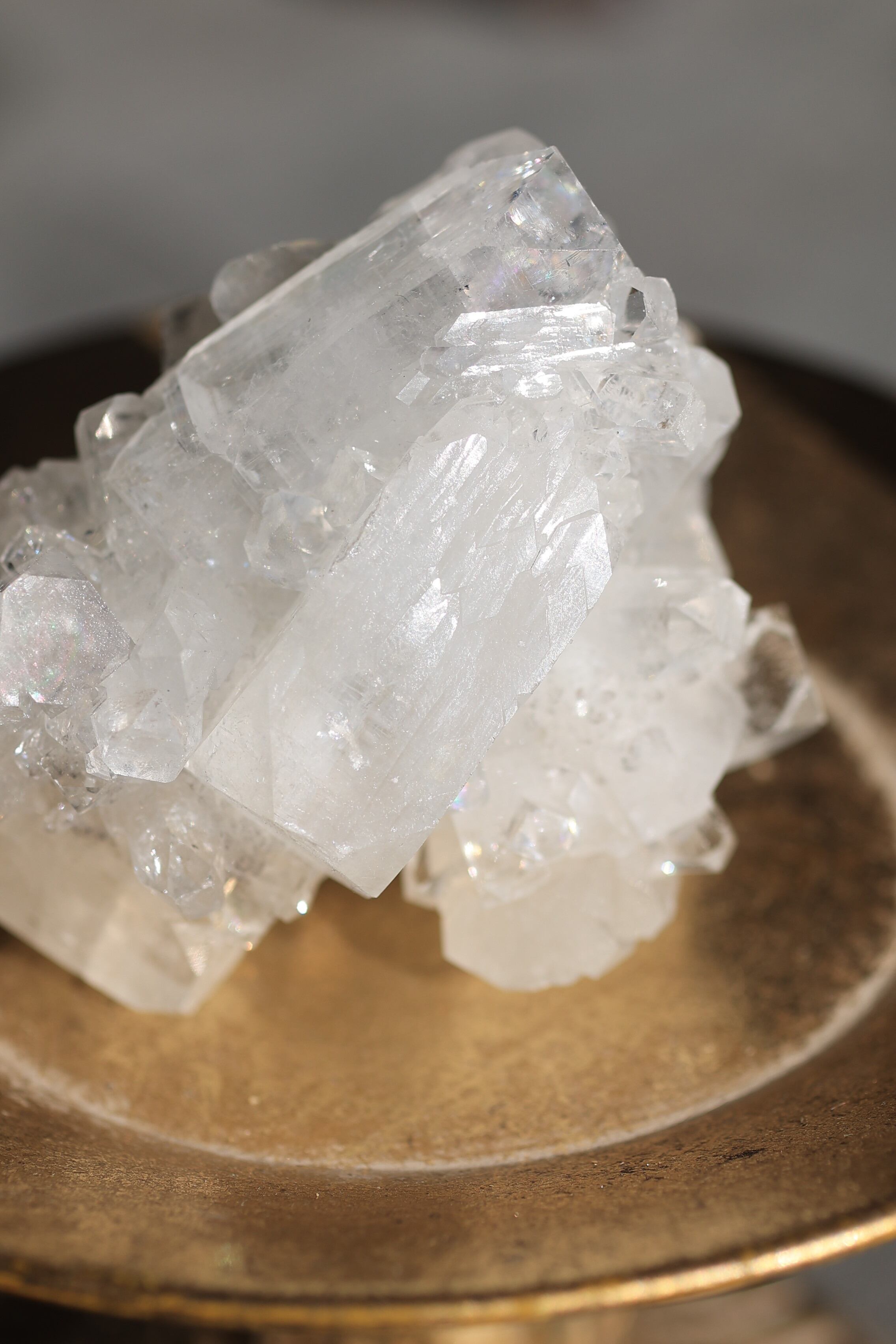 インド産アポフィライトは、透明感のある結晶と、整った幾何学的な形が特徴の鉱物です。
