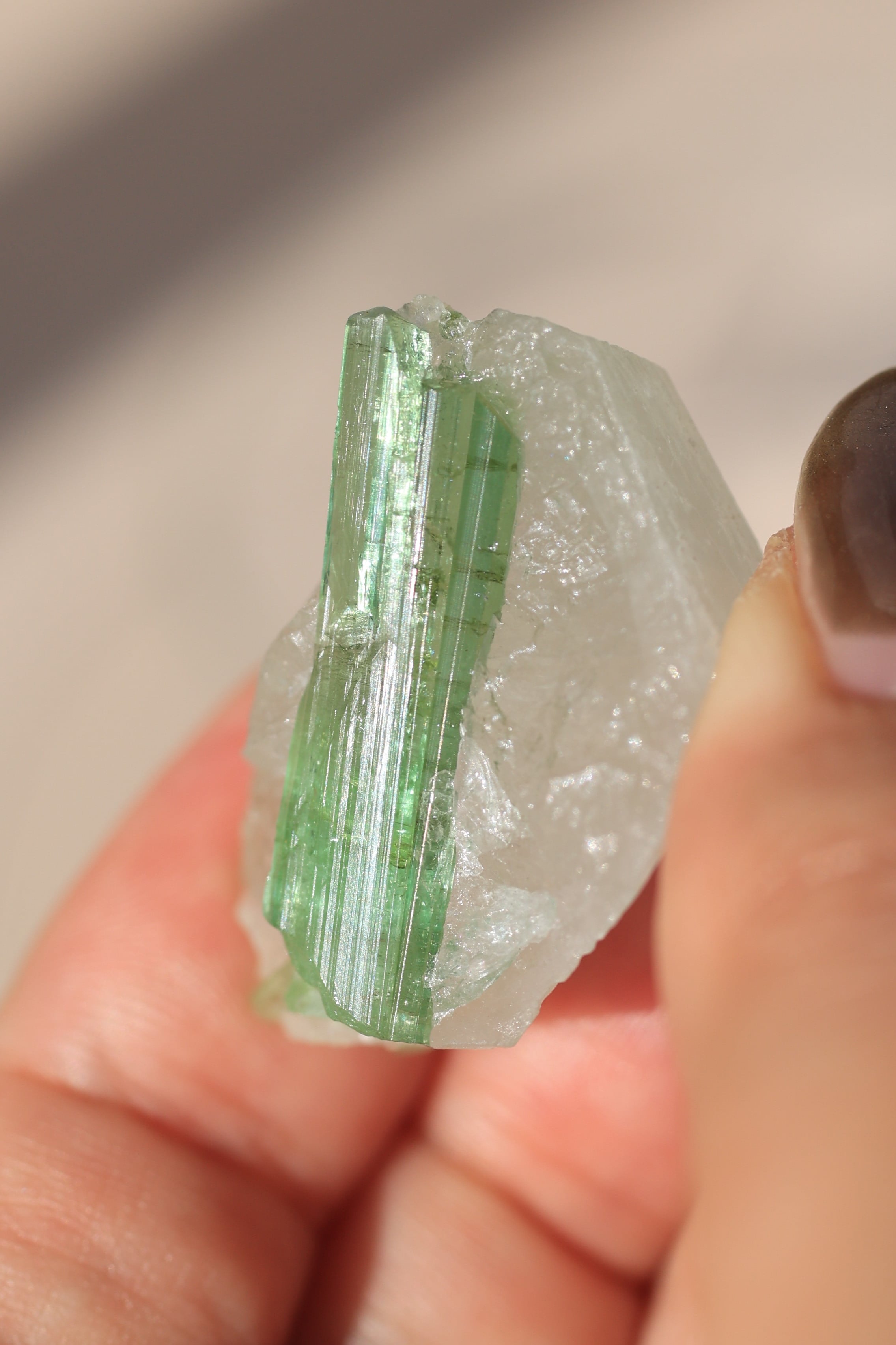 トルマリン特有の透明感や深い色合いが垣間見える瞬間があり、眺めるほどに発見のある石です。