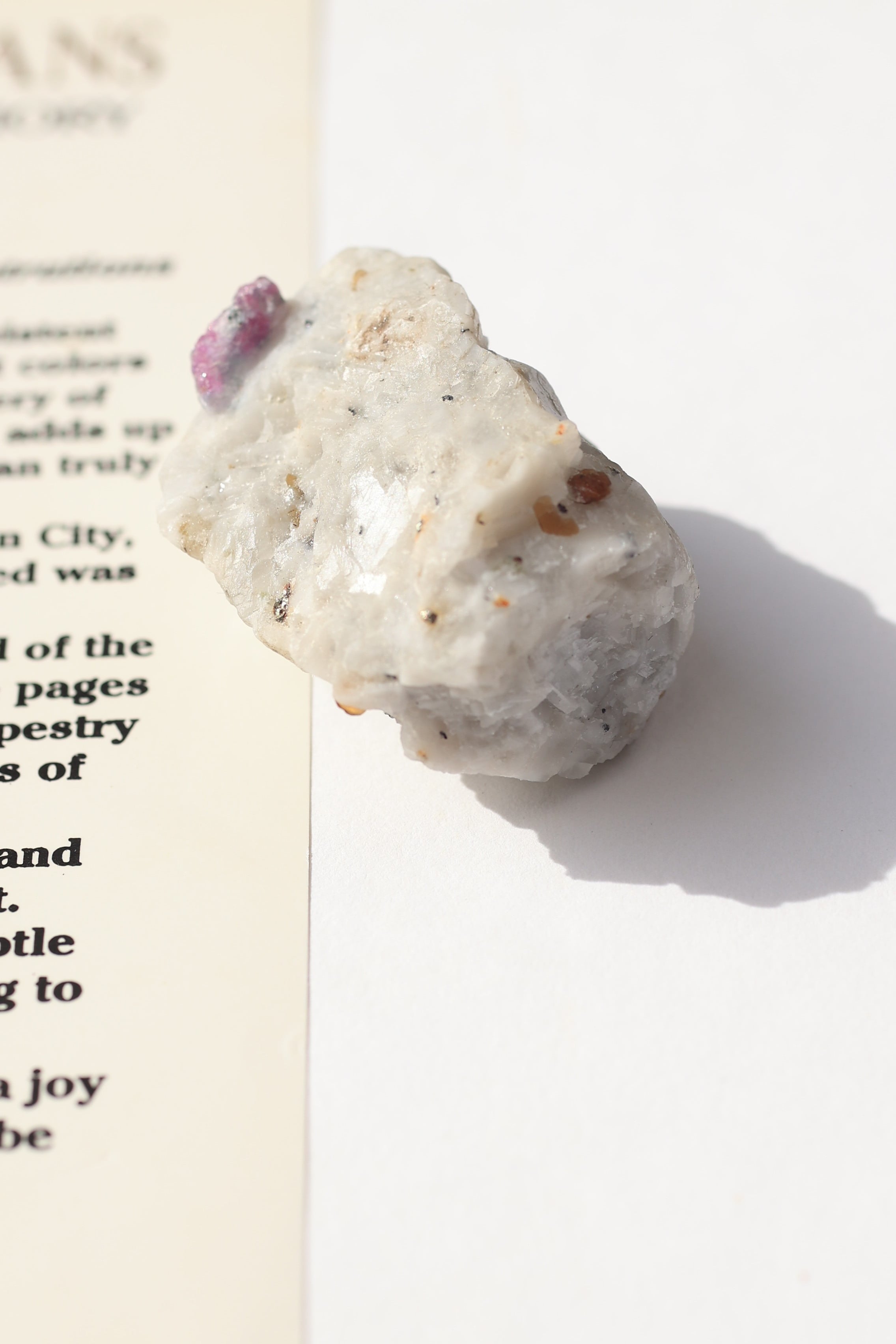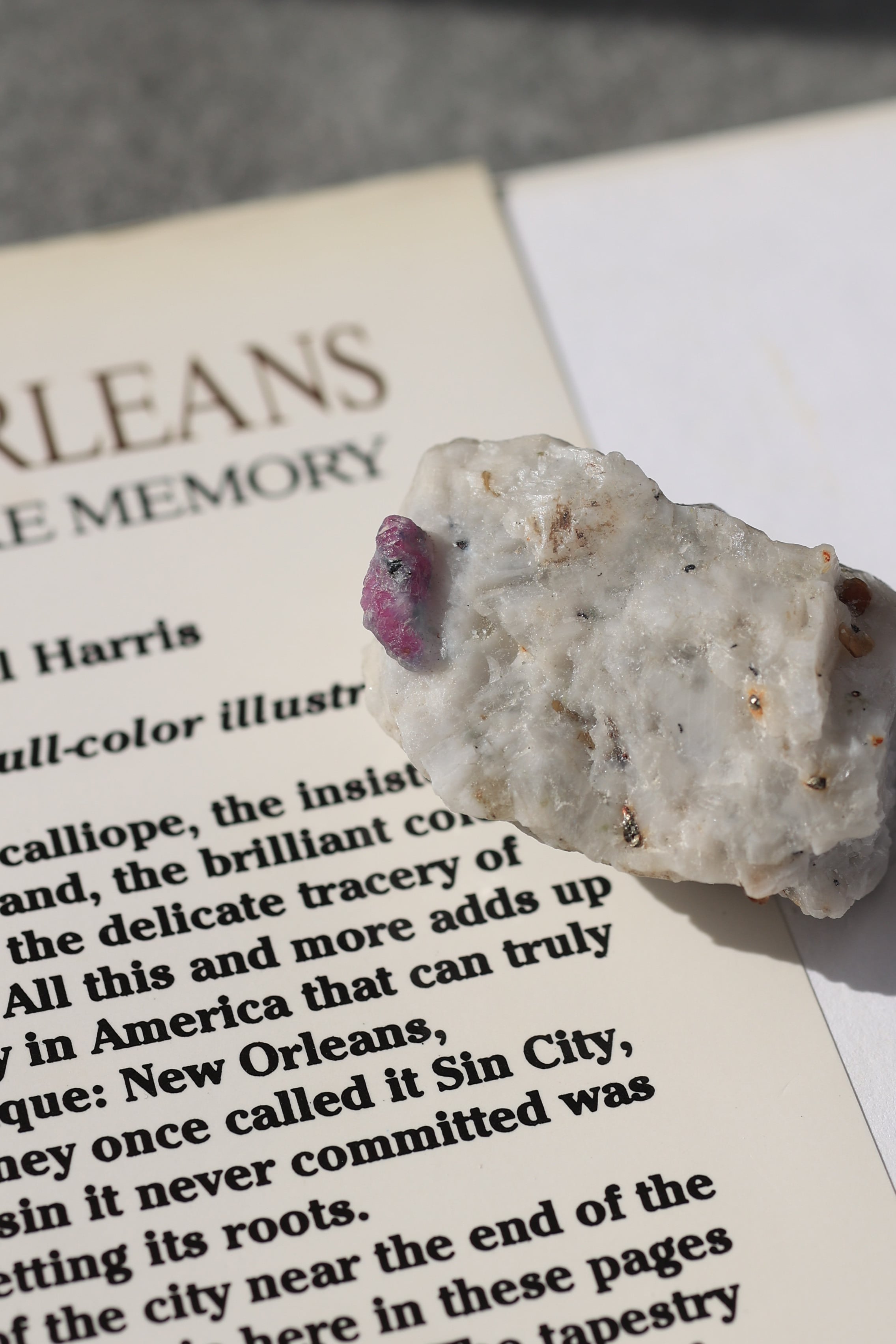ルビーは、深く鮮やかな赤色が印象的な鉱物。原石の状態では、磨かれた宝石とは違い、大地の中で育ったままの力強さと素朴さを感じさせてくれます。