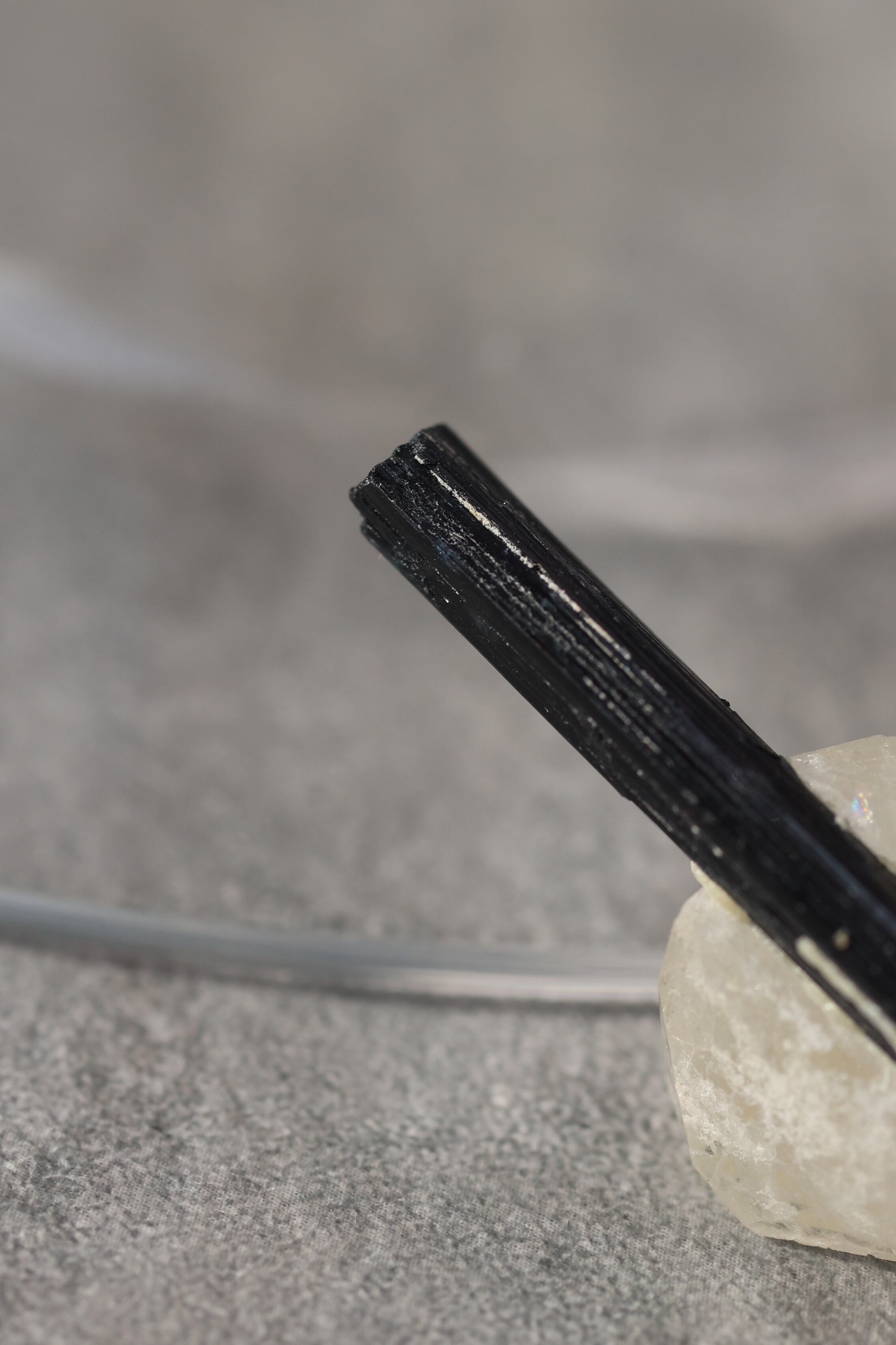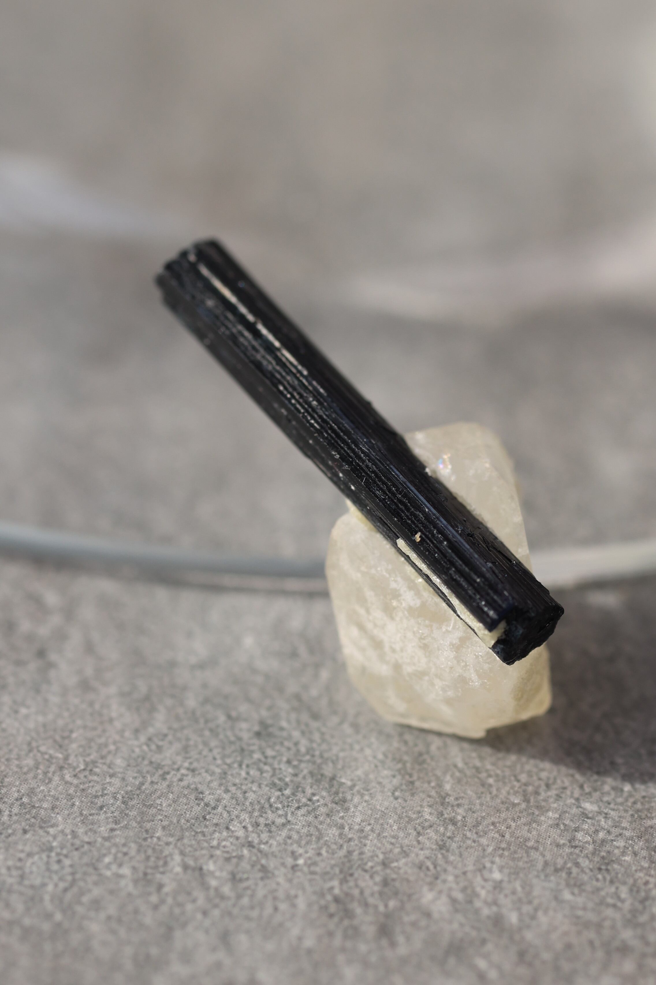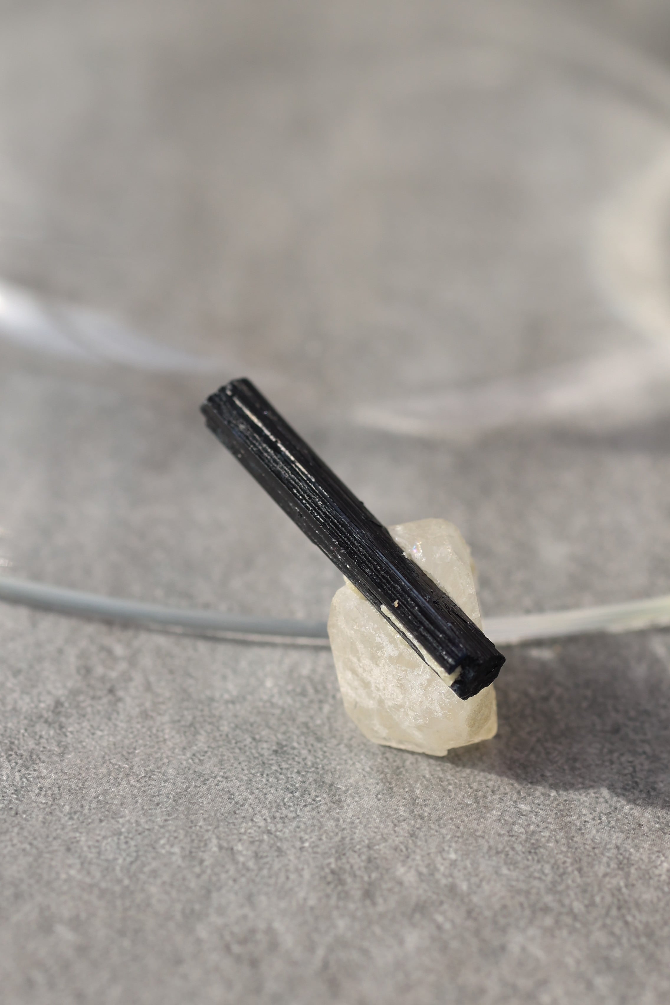 ブラックトルマリンは、深い黒の結晶がすっと伸びる、力強い鉱物。