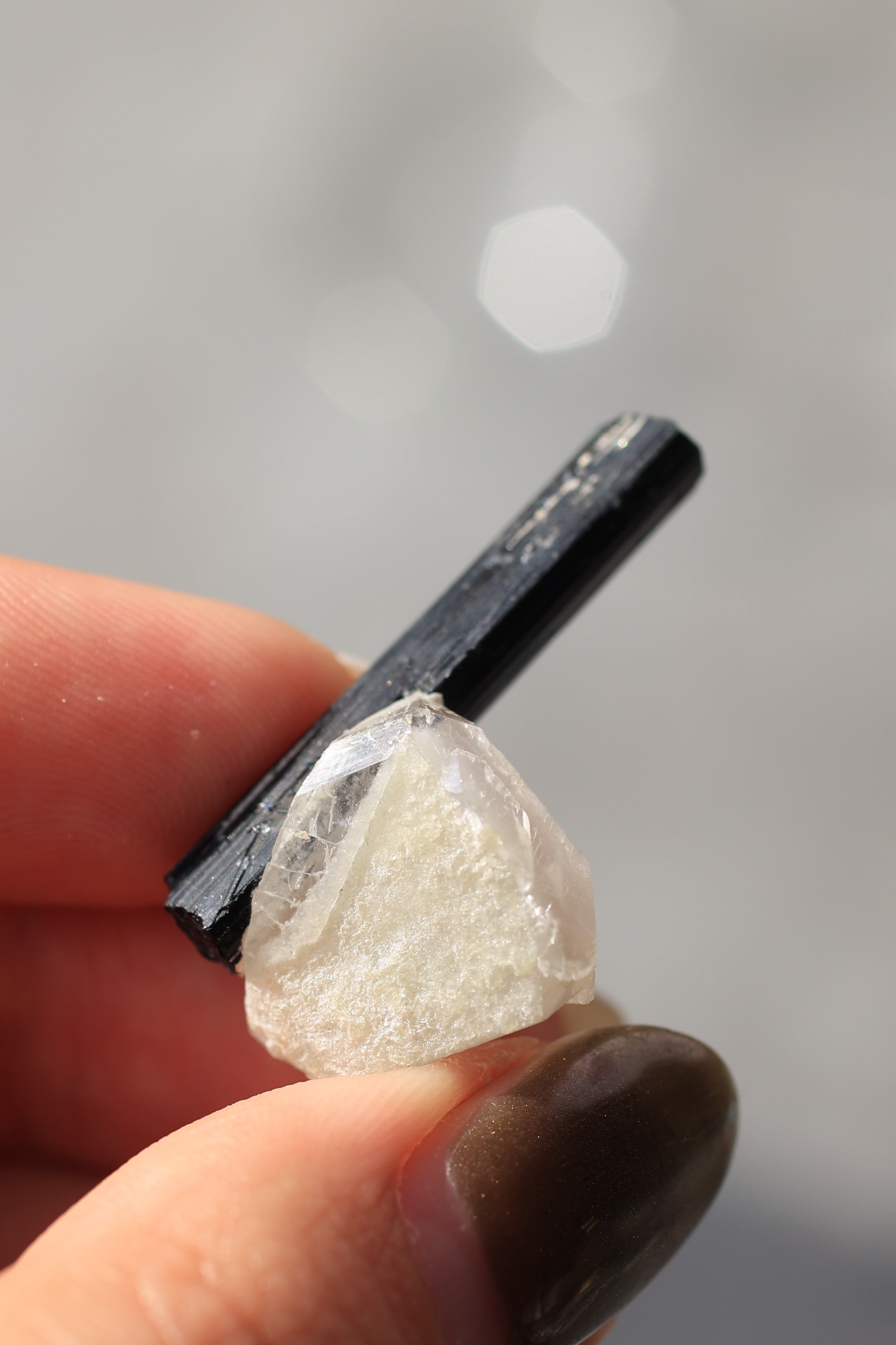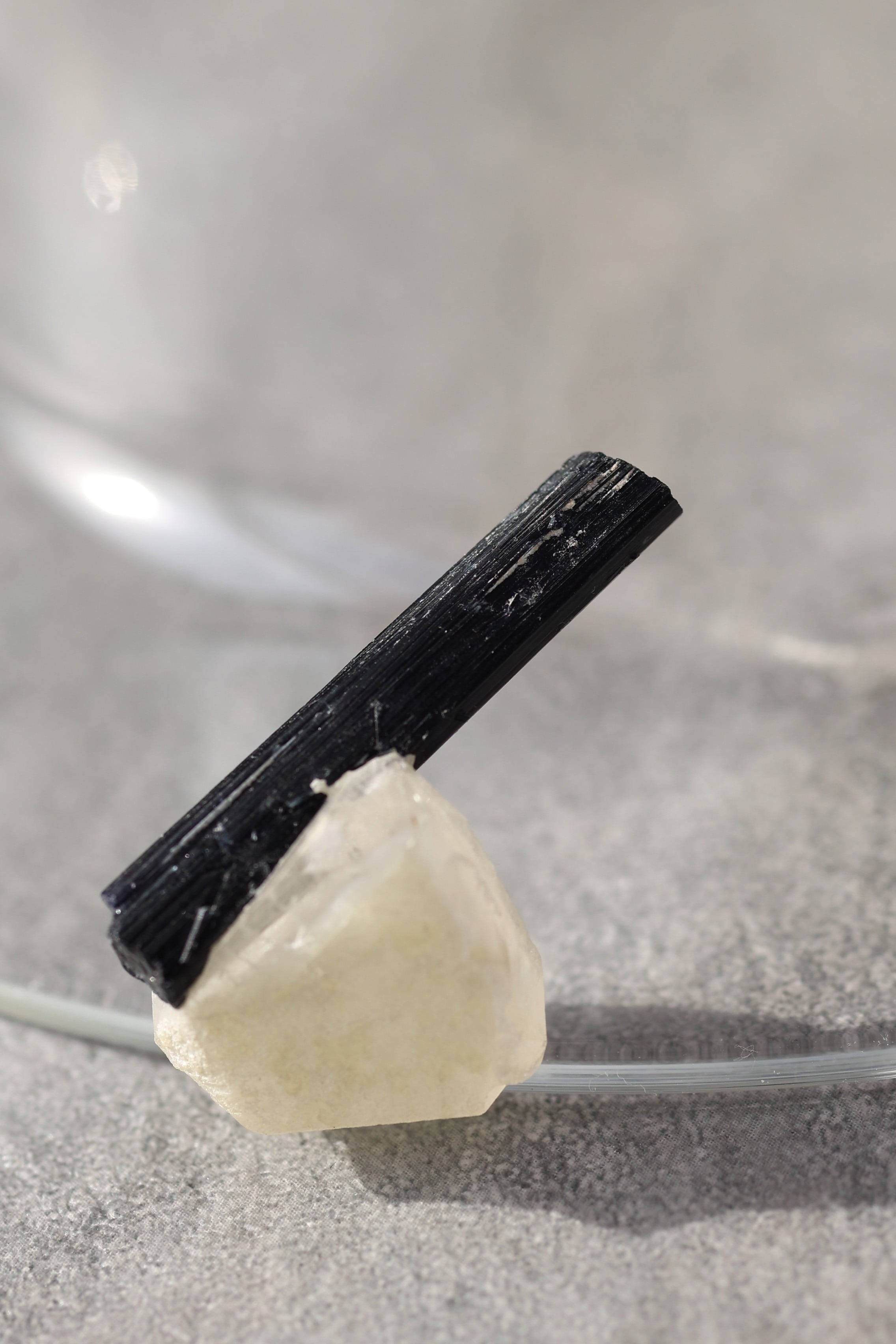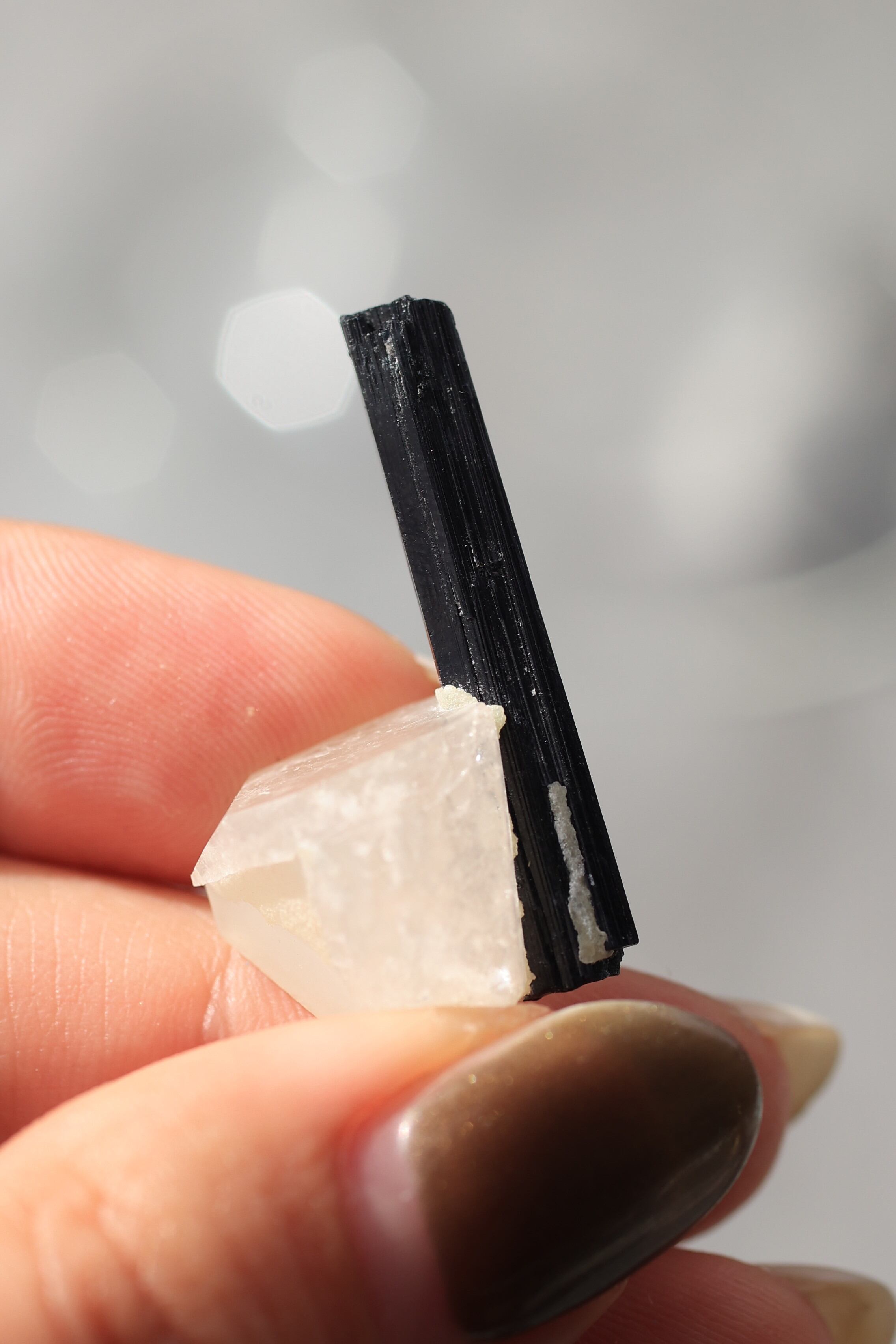 ブラックトルマリンは、深い黒の結晶がすっと伸びる、力強い鉱物。