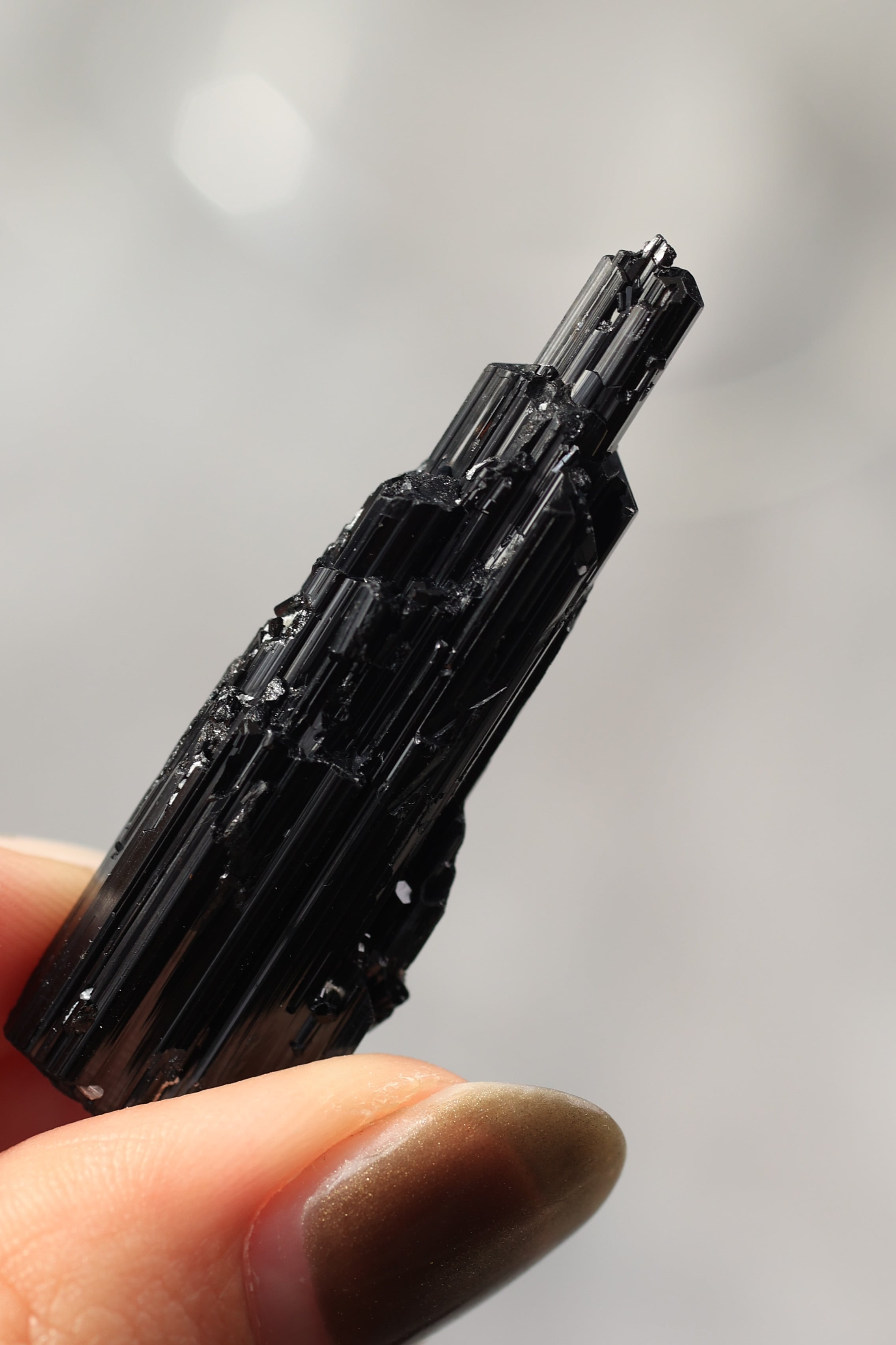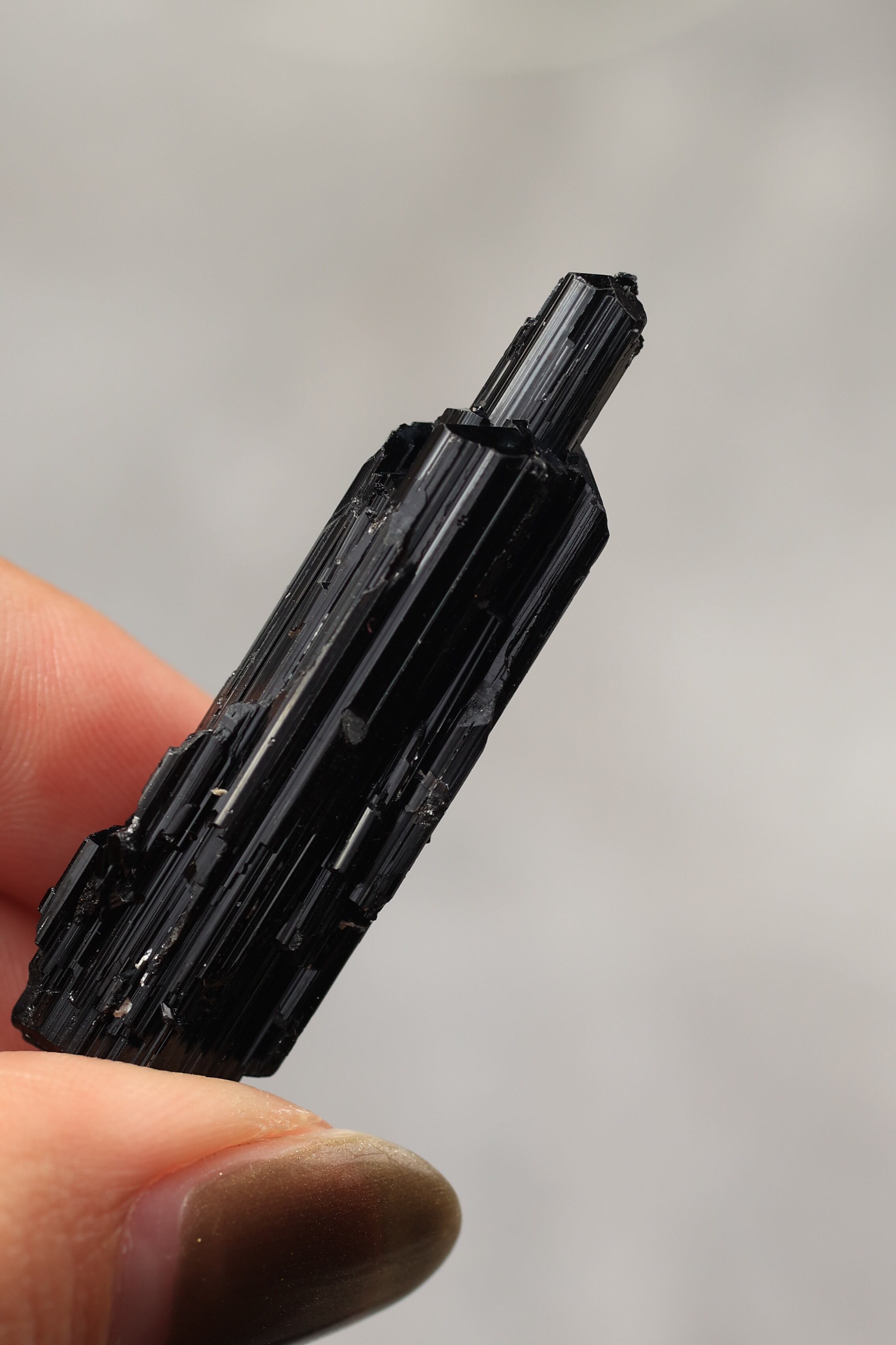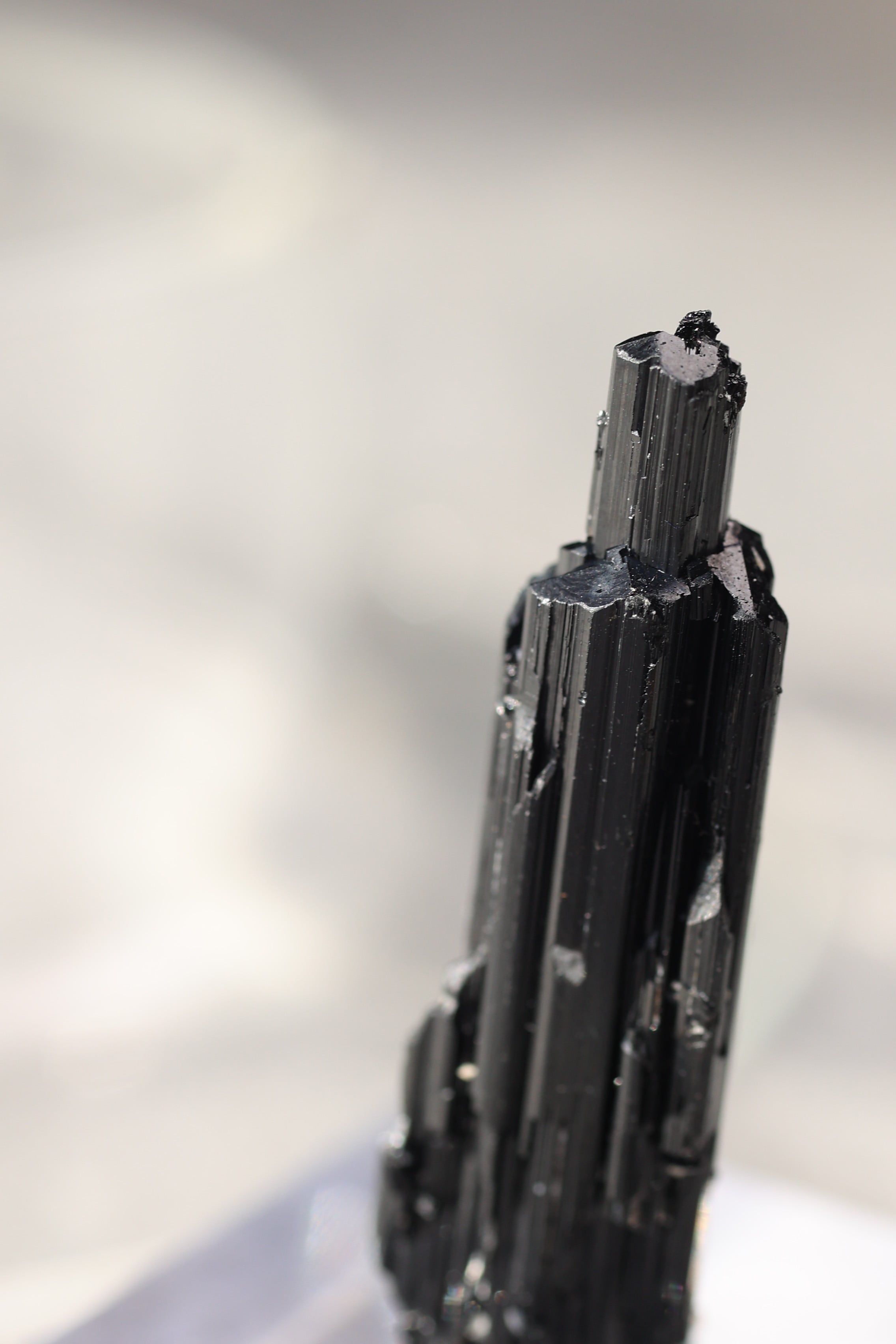 ブラックトルマリンは、柱状に伸びる結晶が特徴で、