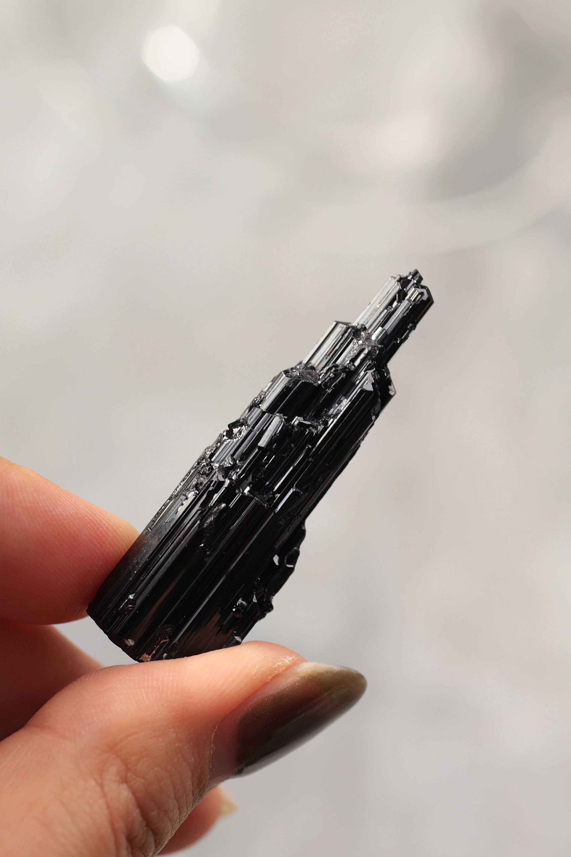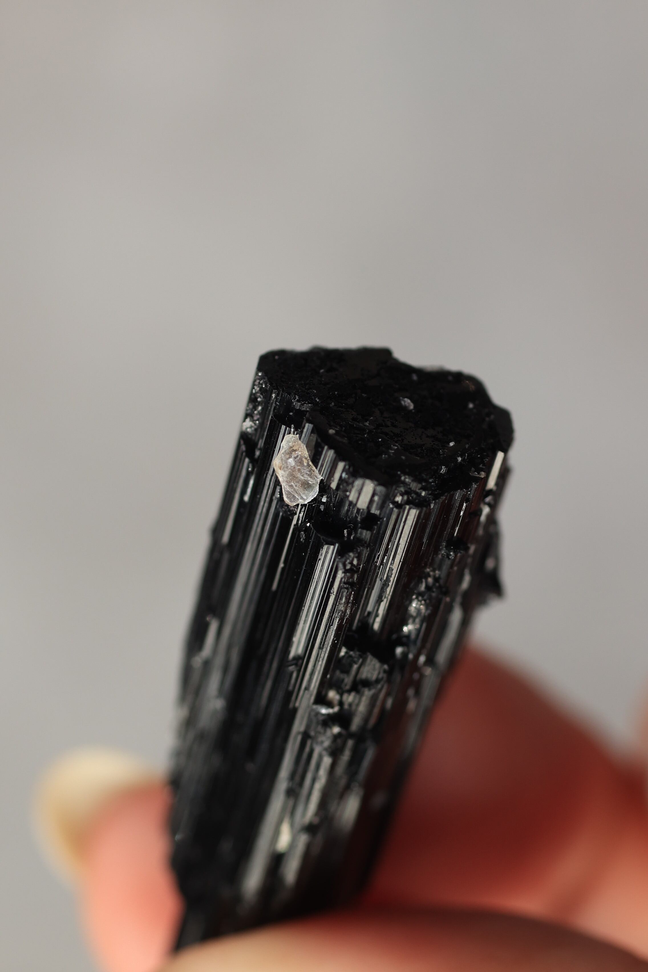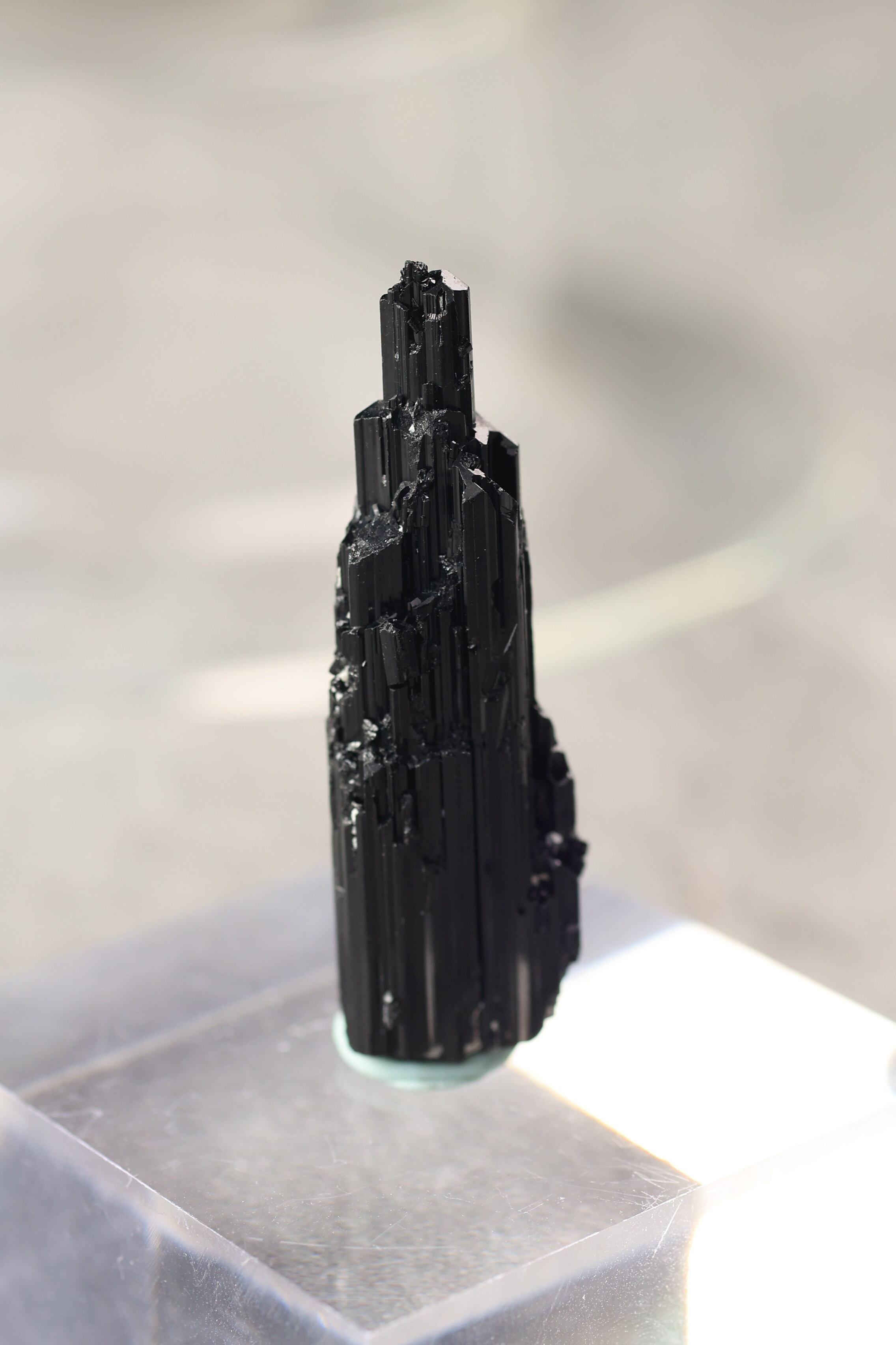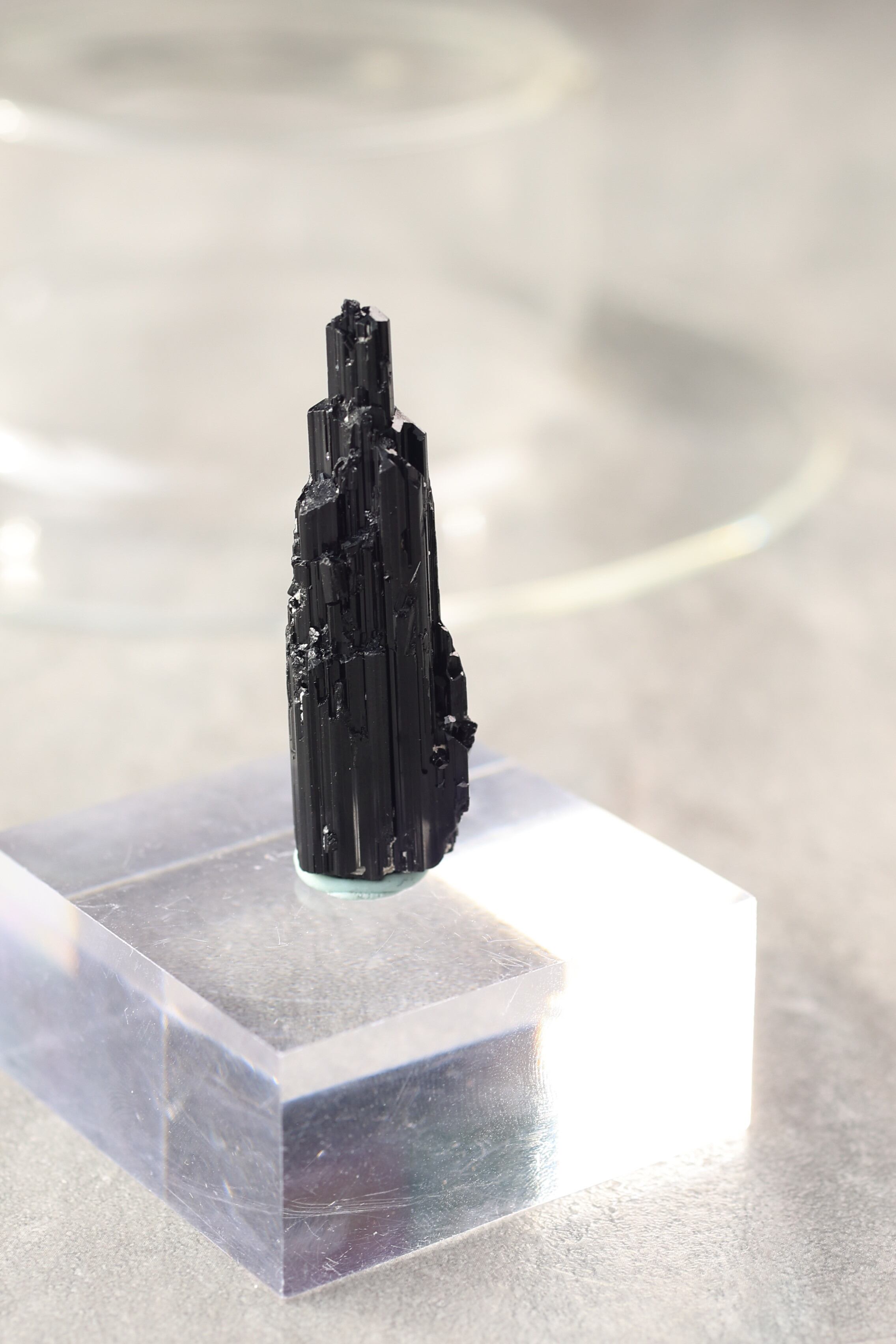 ブラックトルマリンは、深い黒の結晶がすっと伸びる、力強い鉱物。
