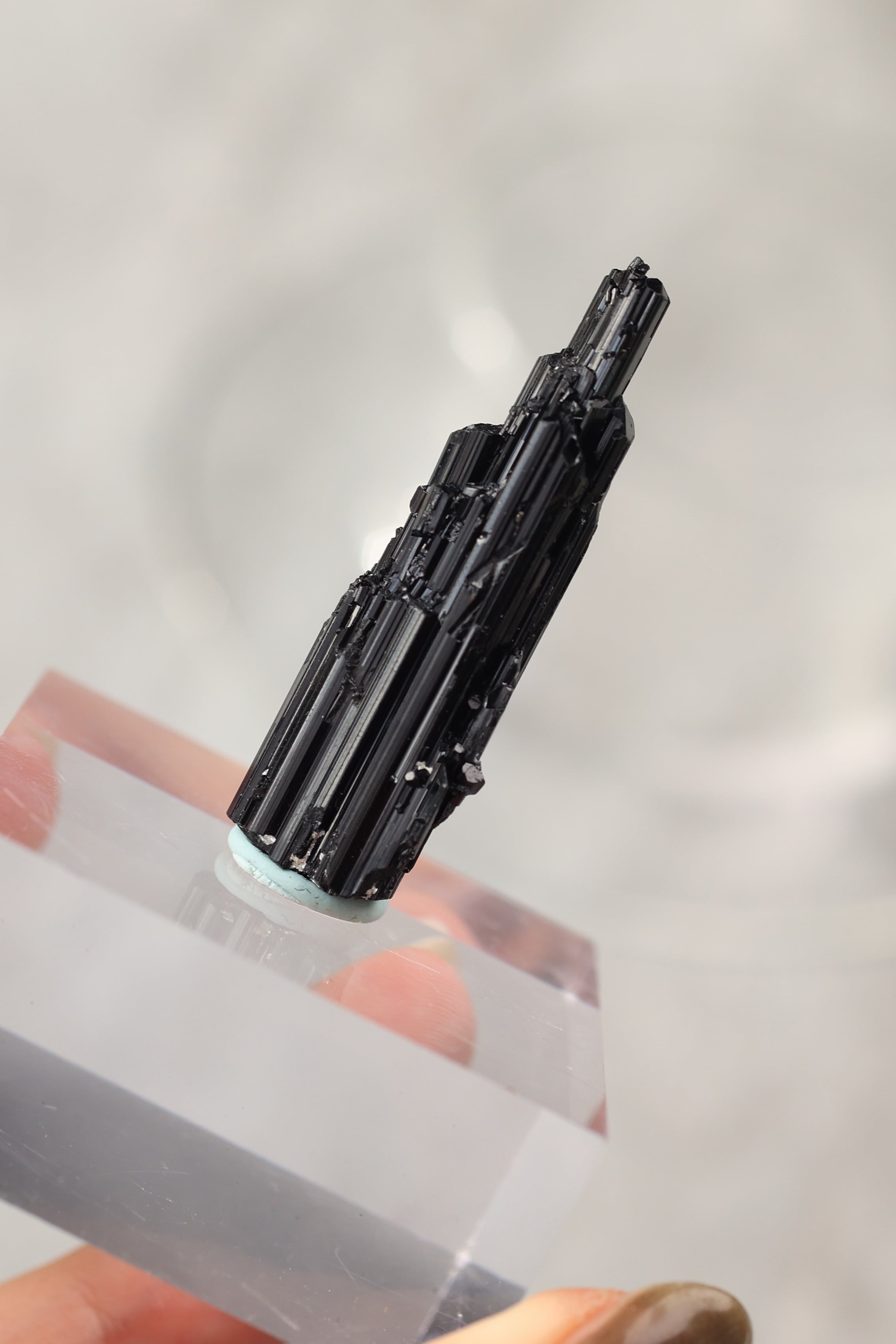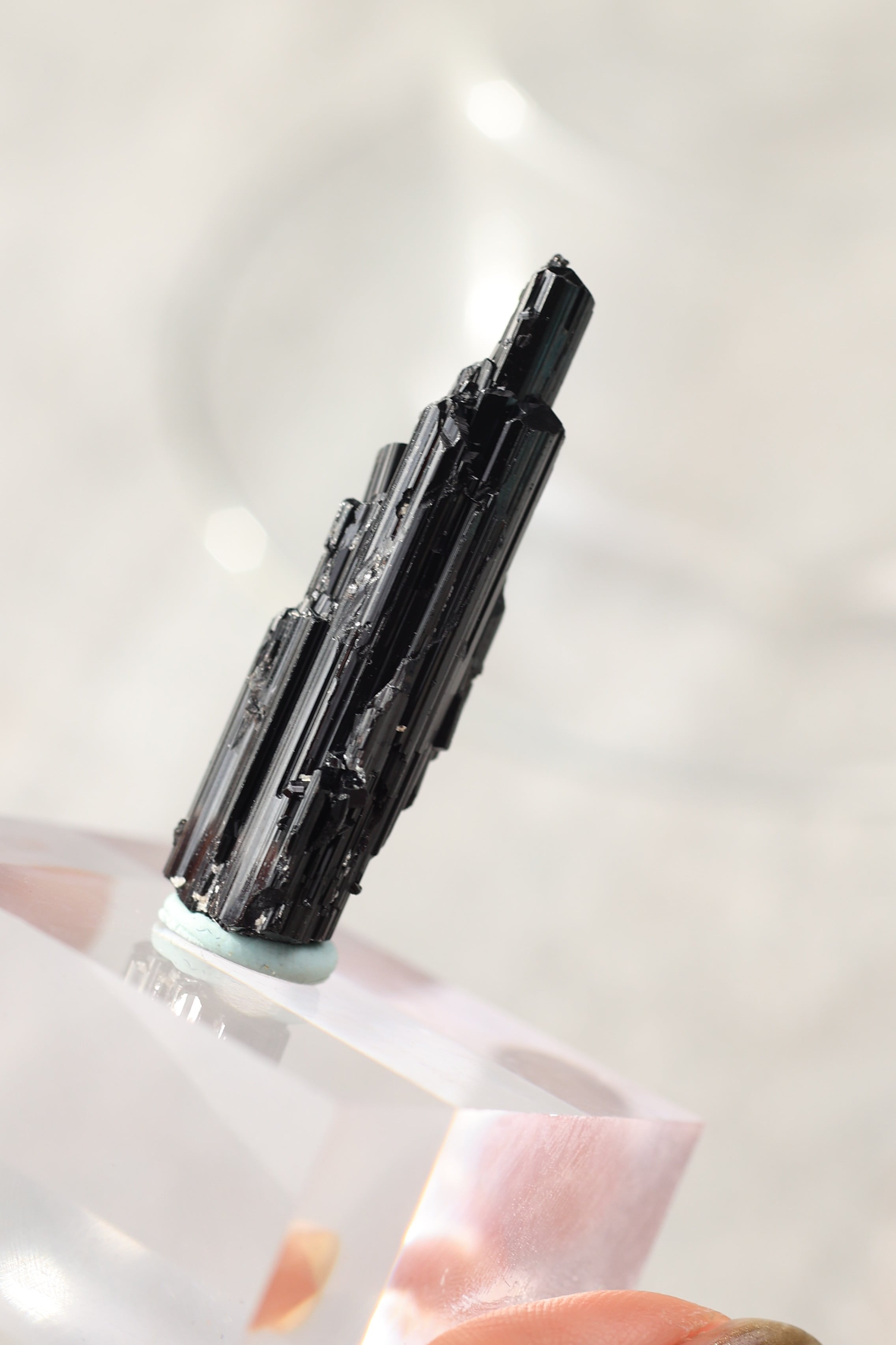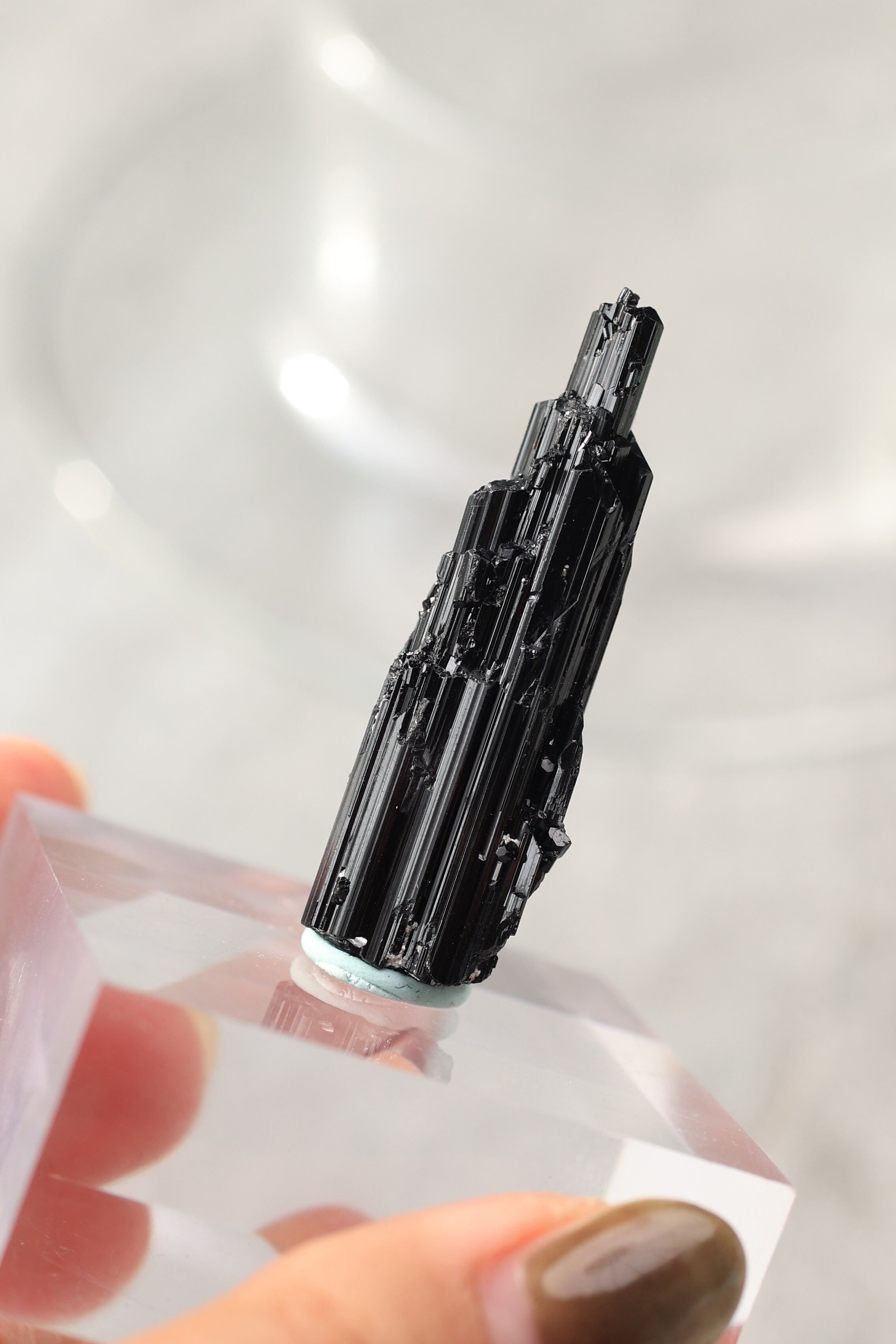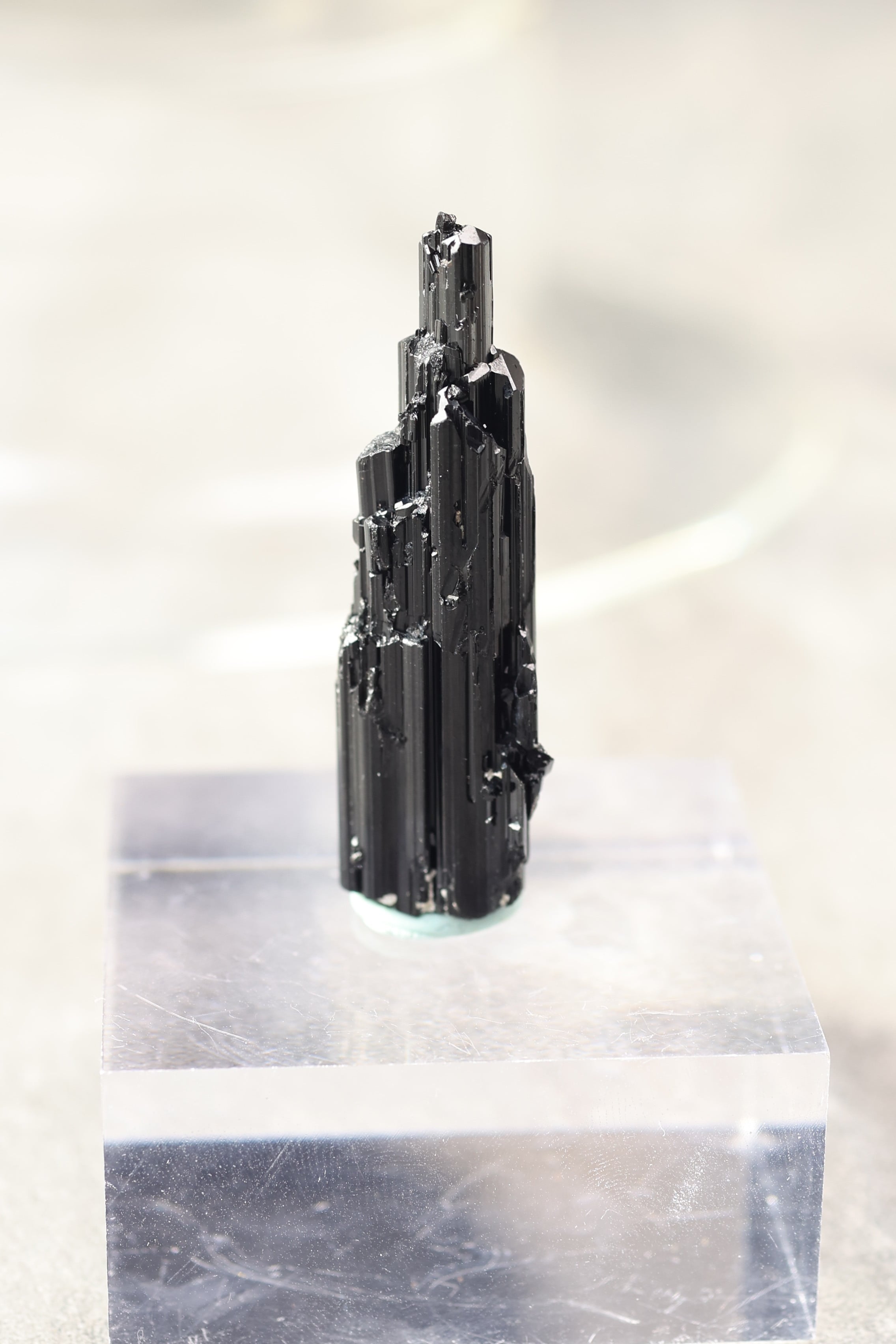 ブラックトルマリンは、深い黒の結晶がすっと伸びる、力強い鉱物。