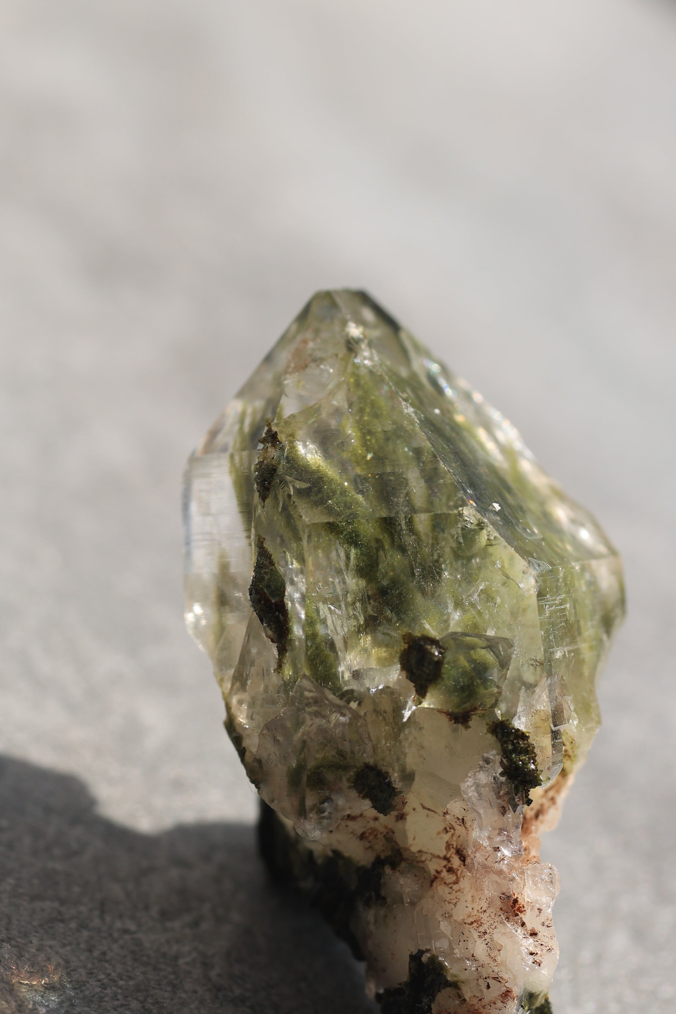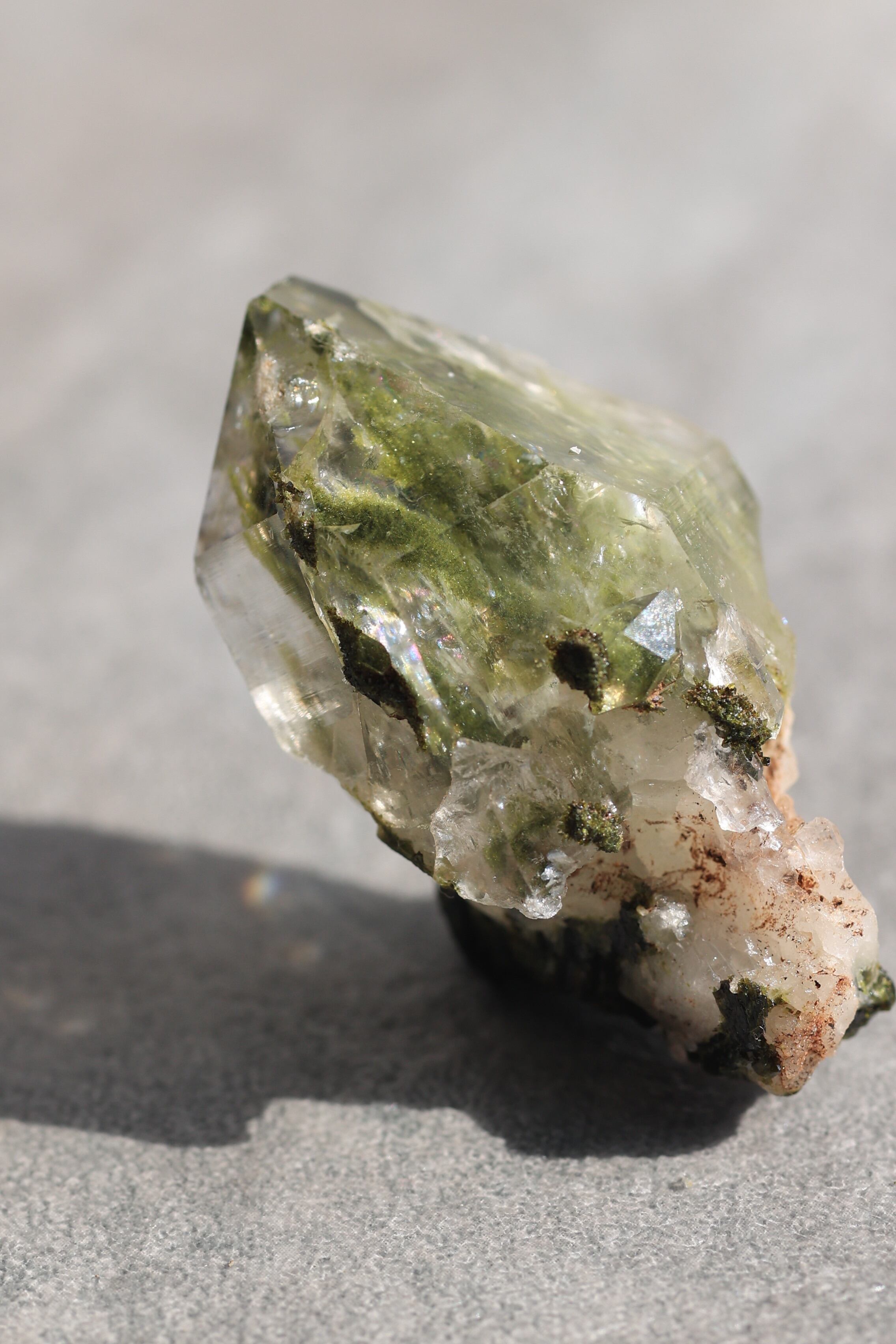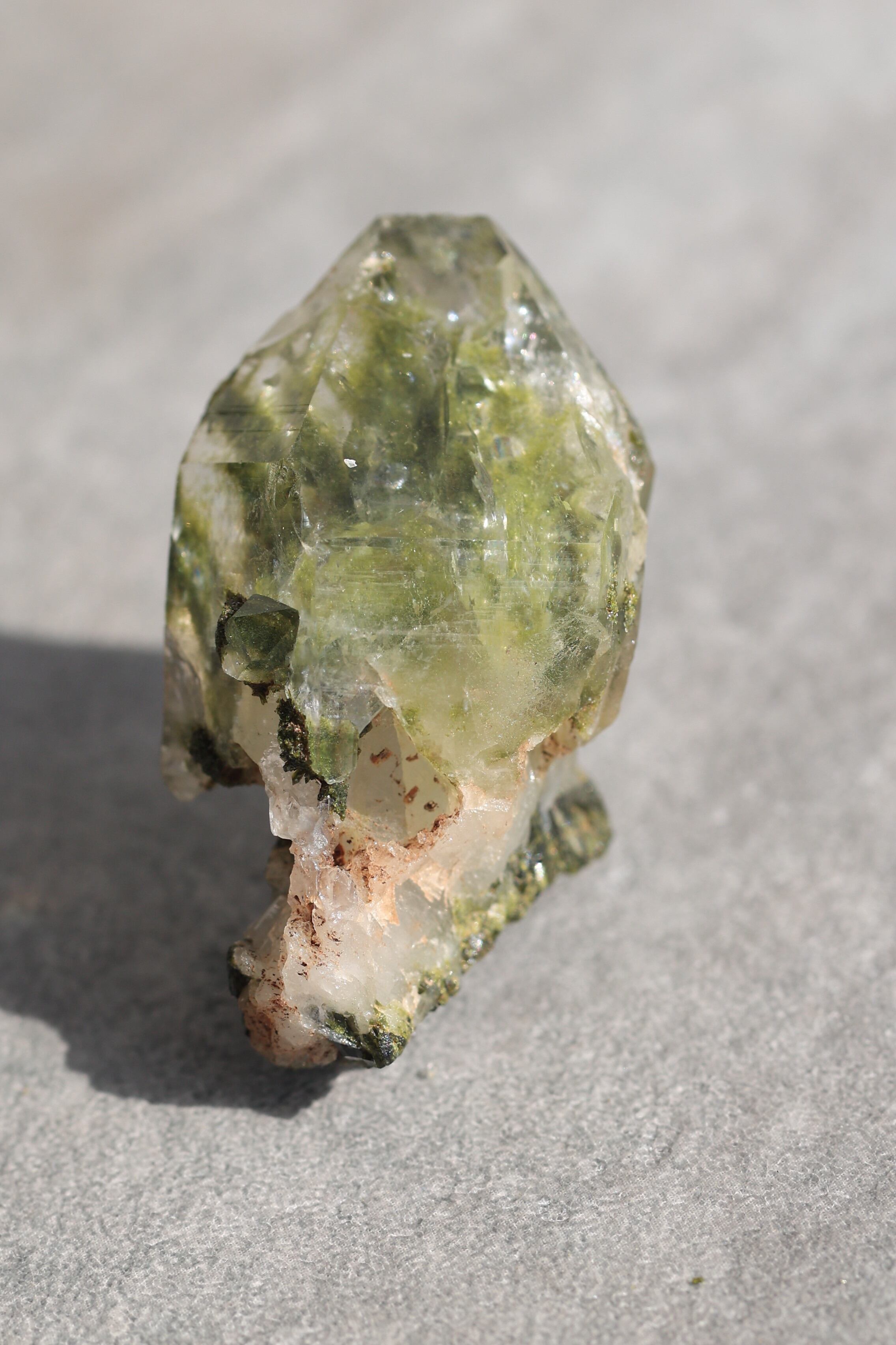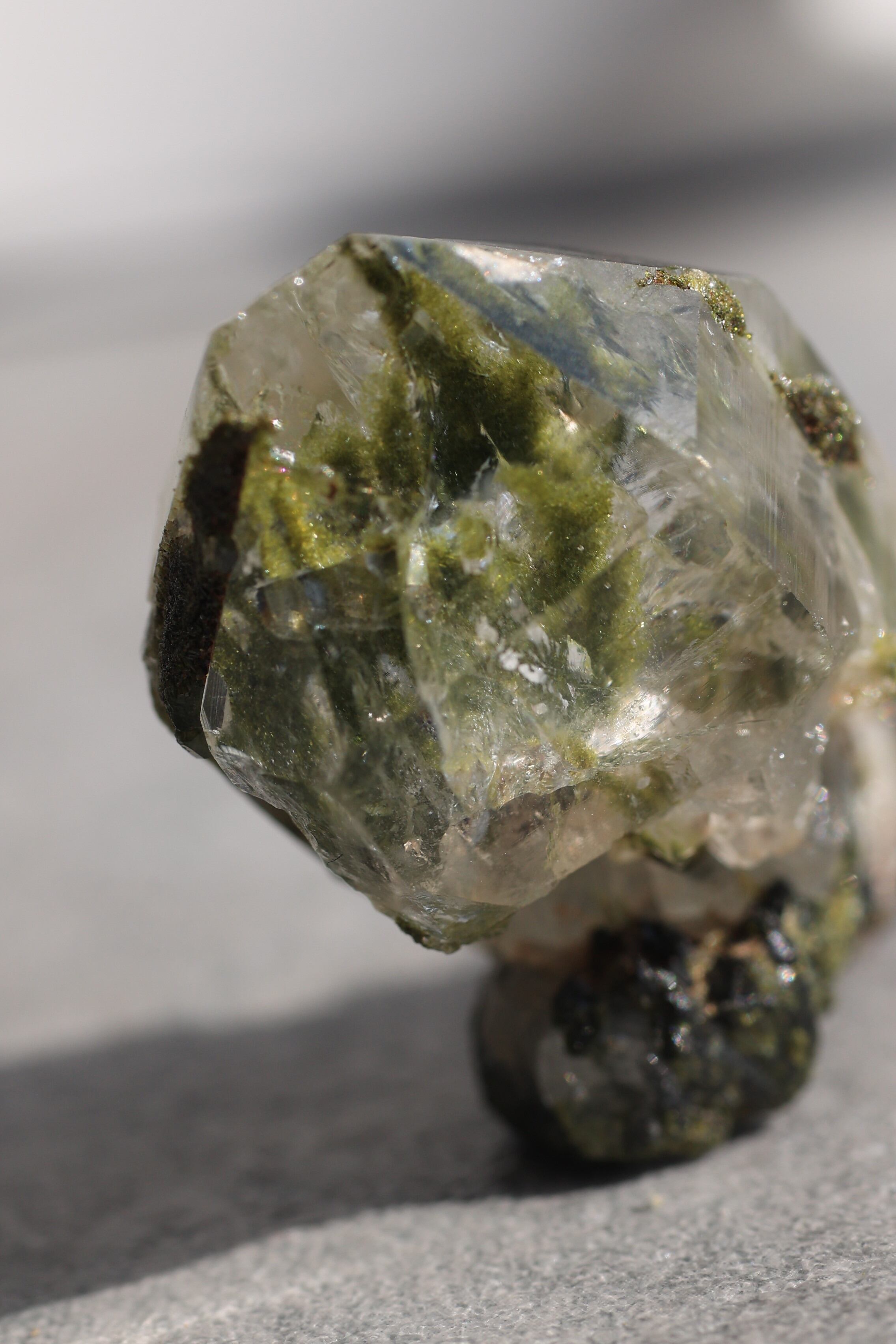 水晶内部にエピドートが内包されている状態